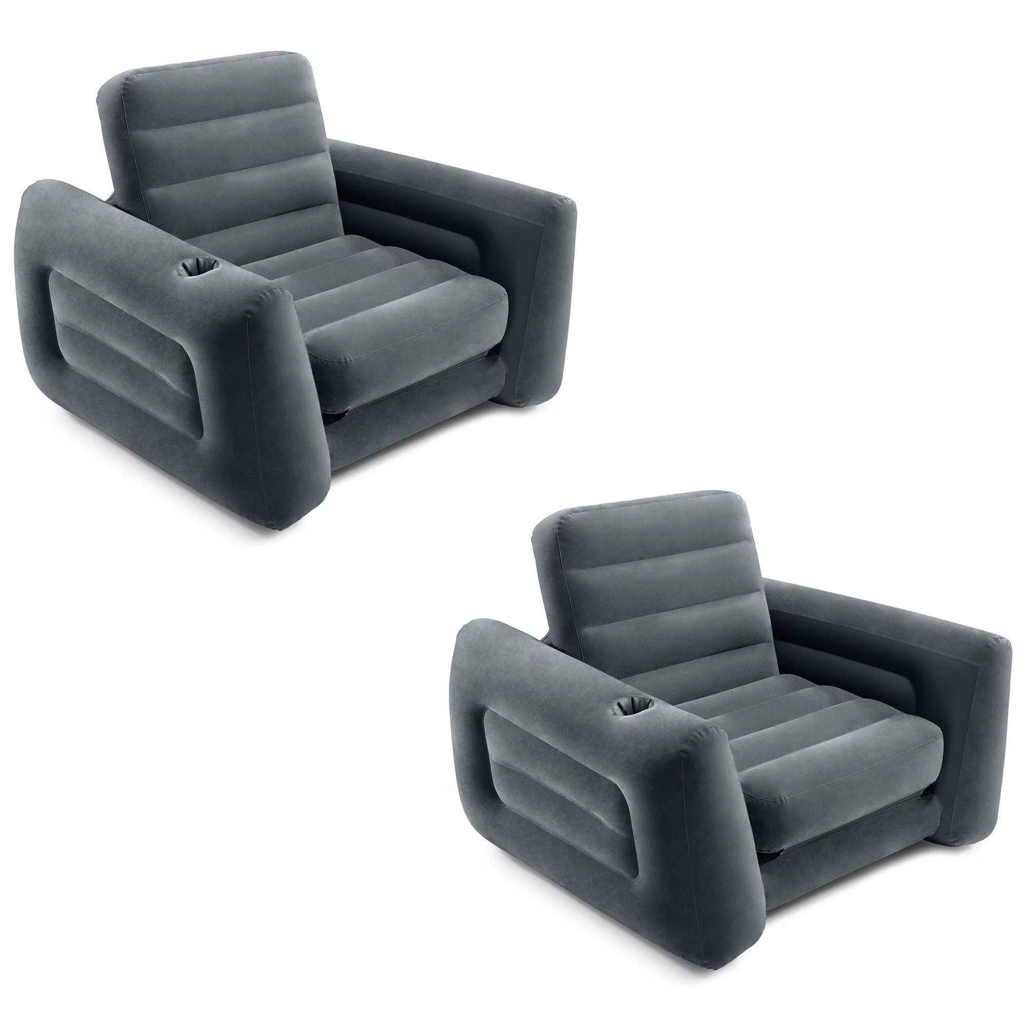 Intex Inflatable Pull Out Sofa Chair Sleeper/Twin Sized Air Mattress (2 Pack)