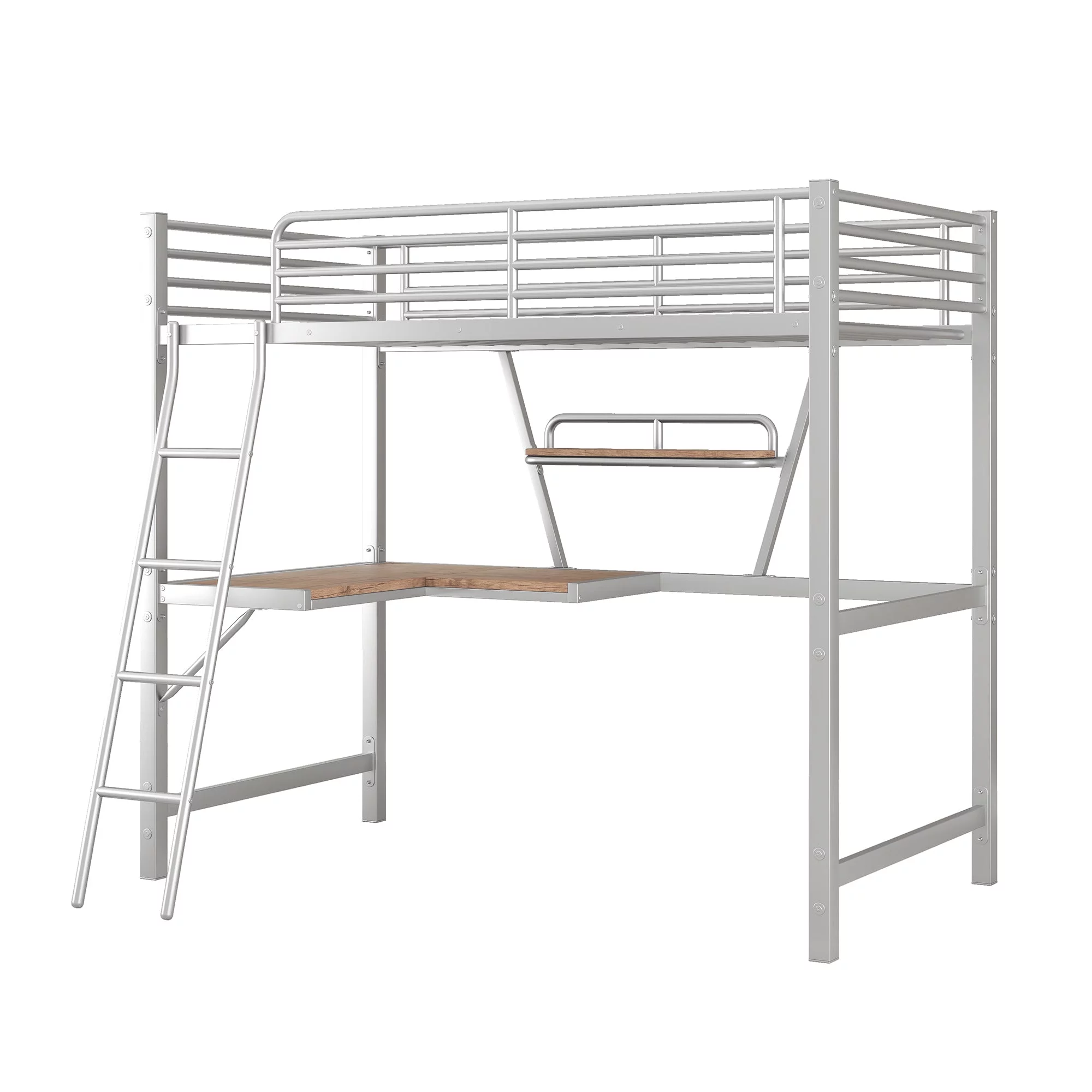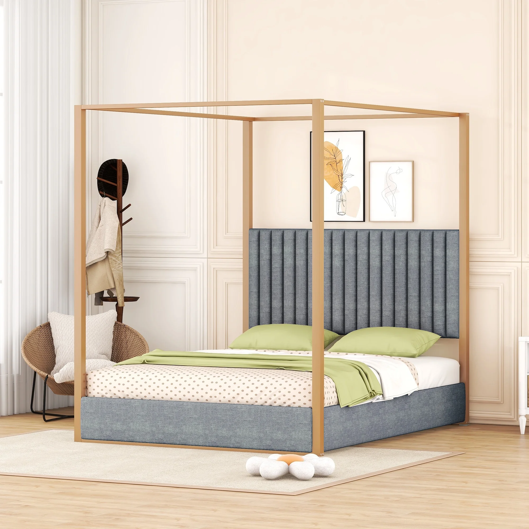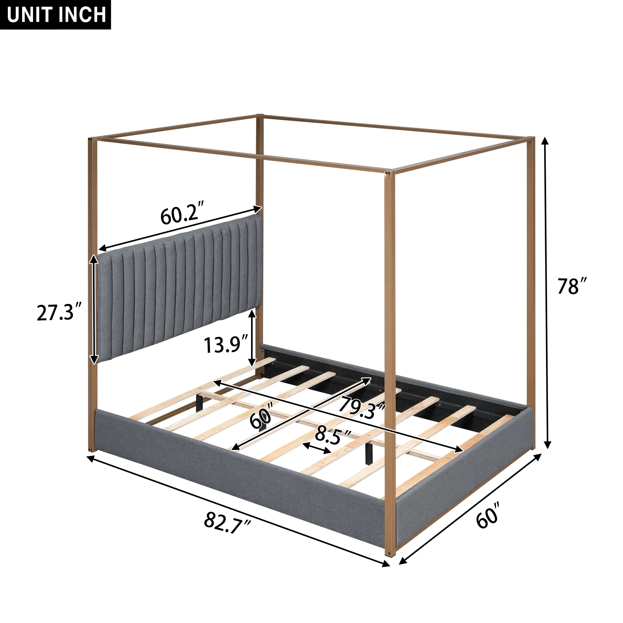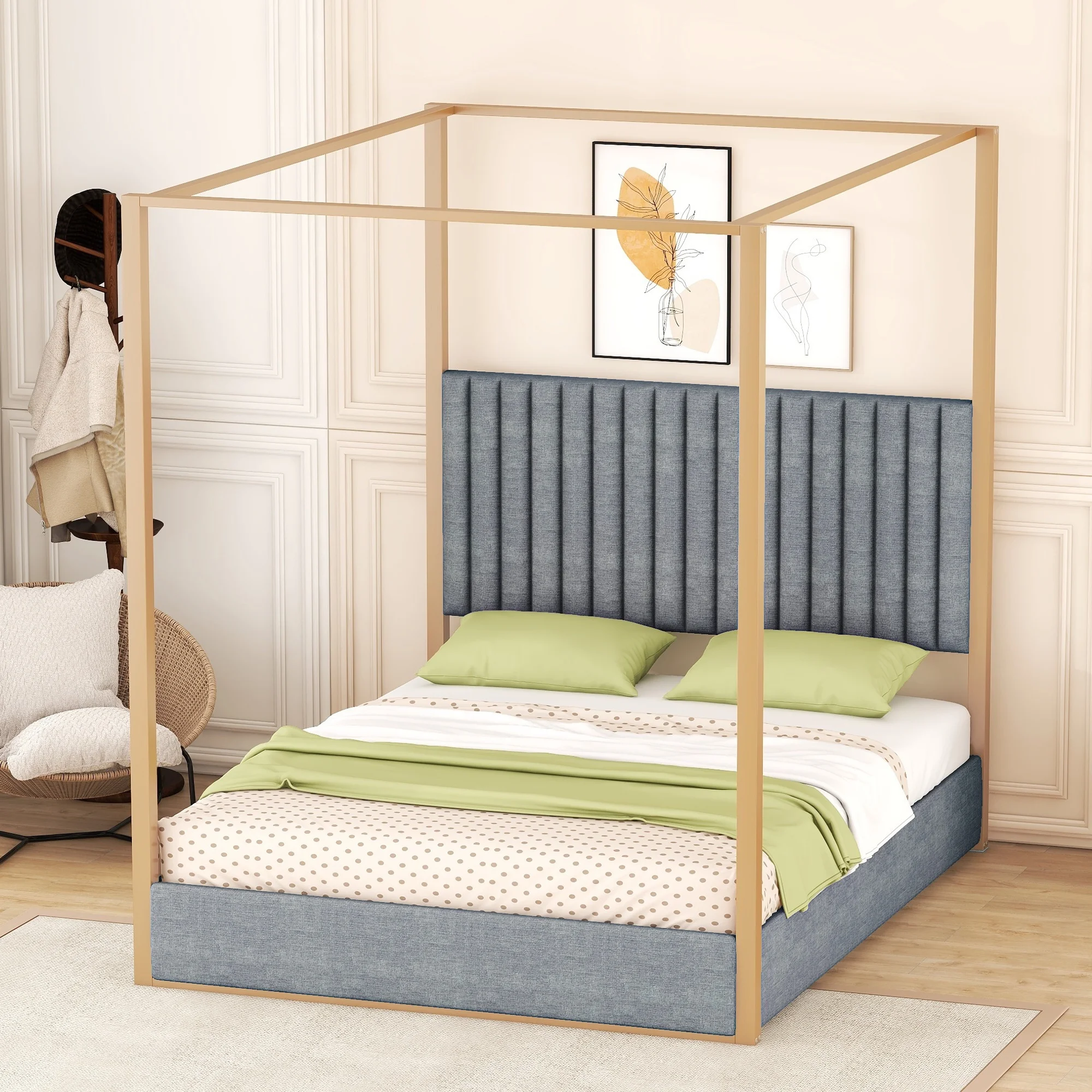 Euroco Upholstery Queen Size Canopy Platform Bed with Upholstery Headboard and Metal Bed Frame, Gray