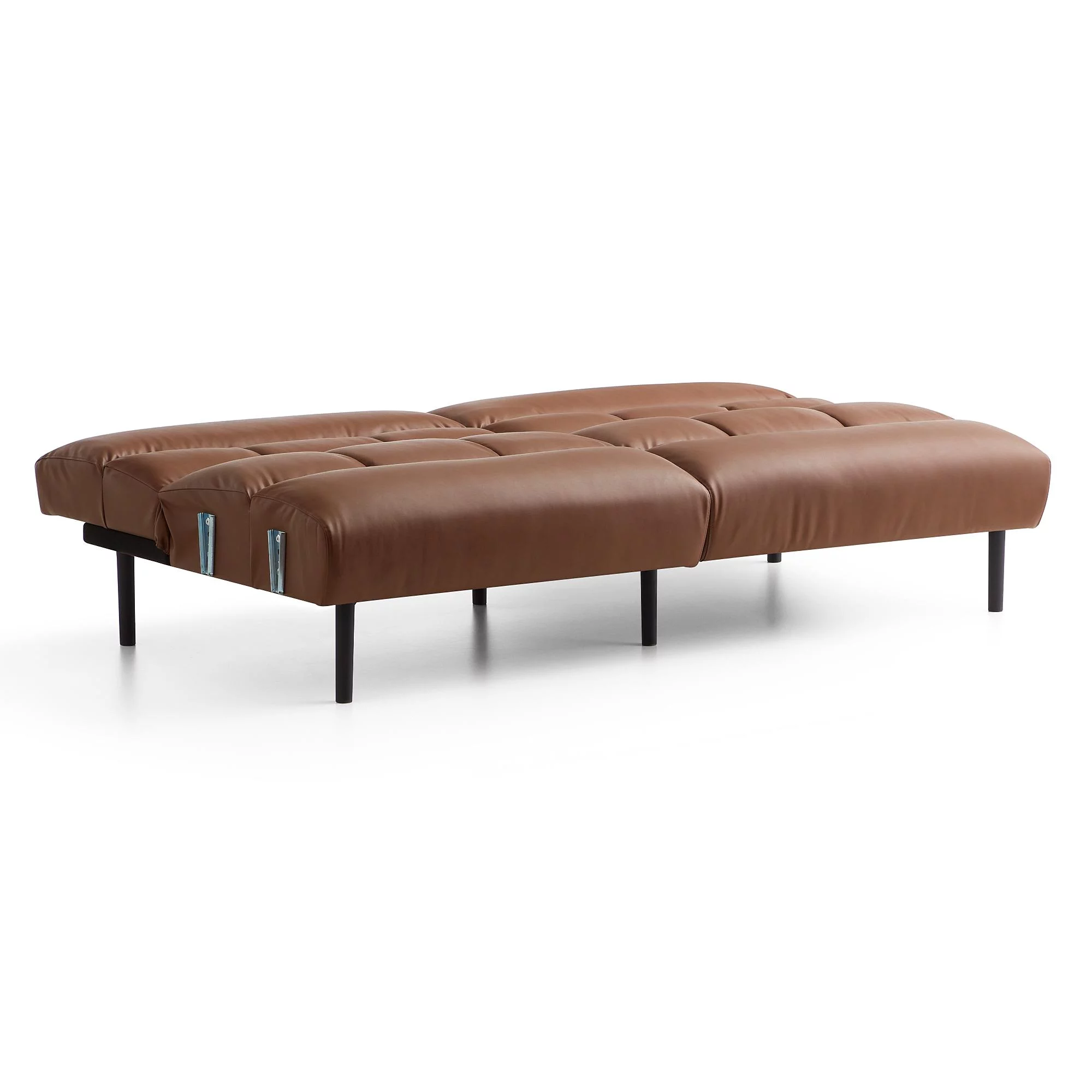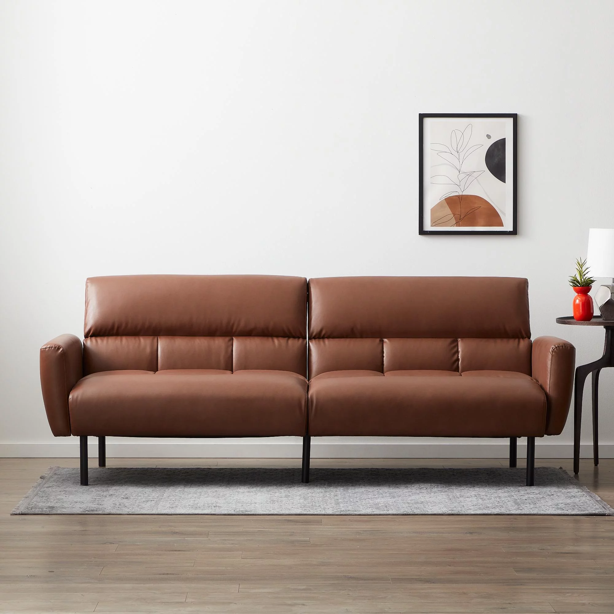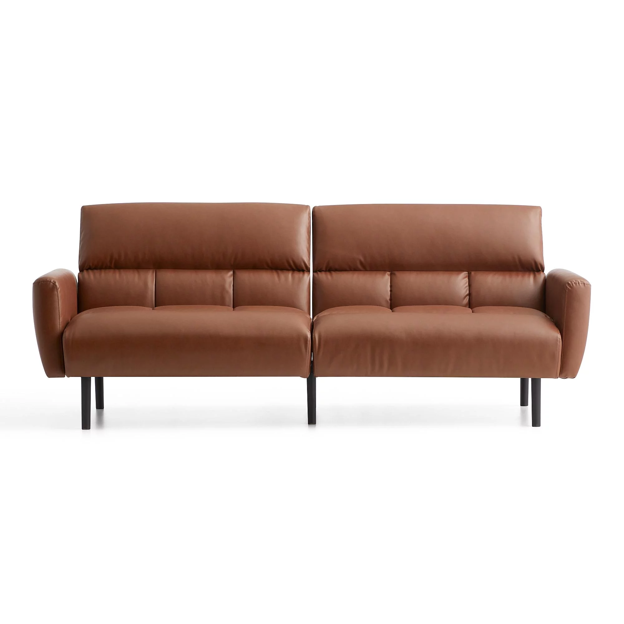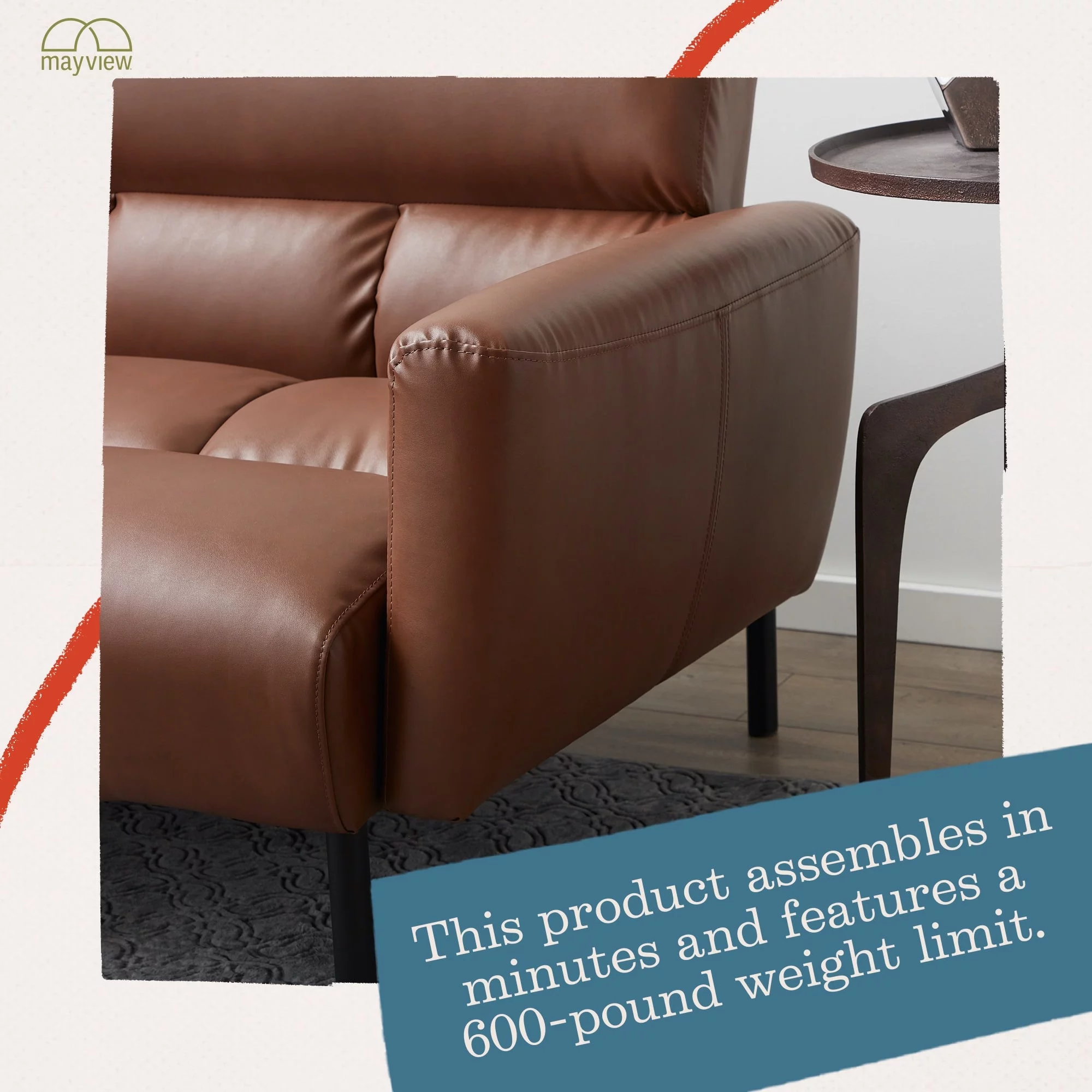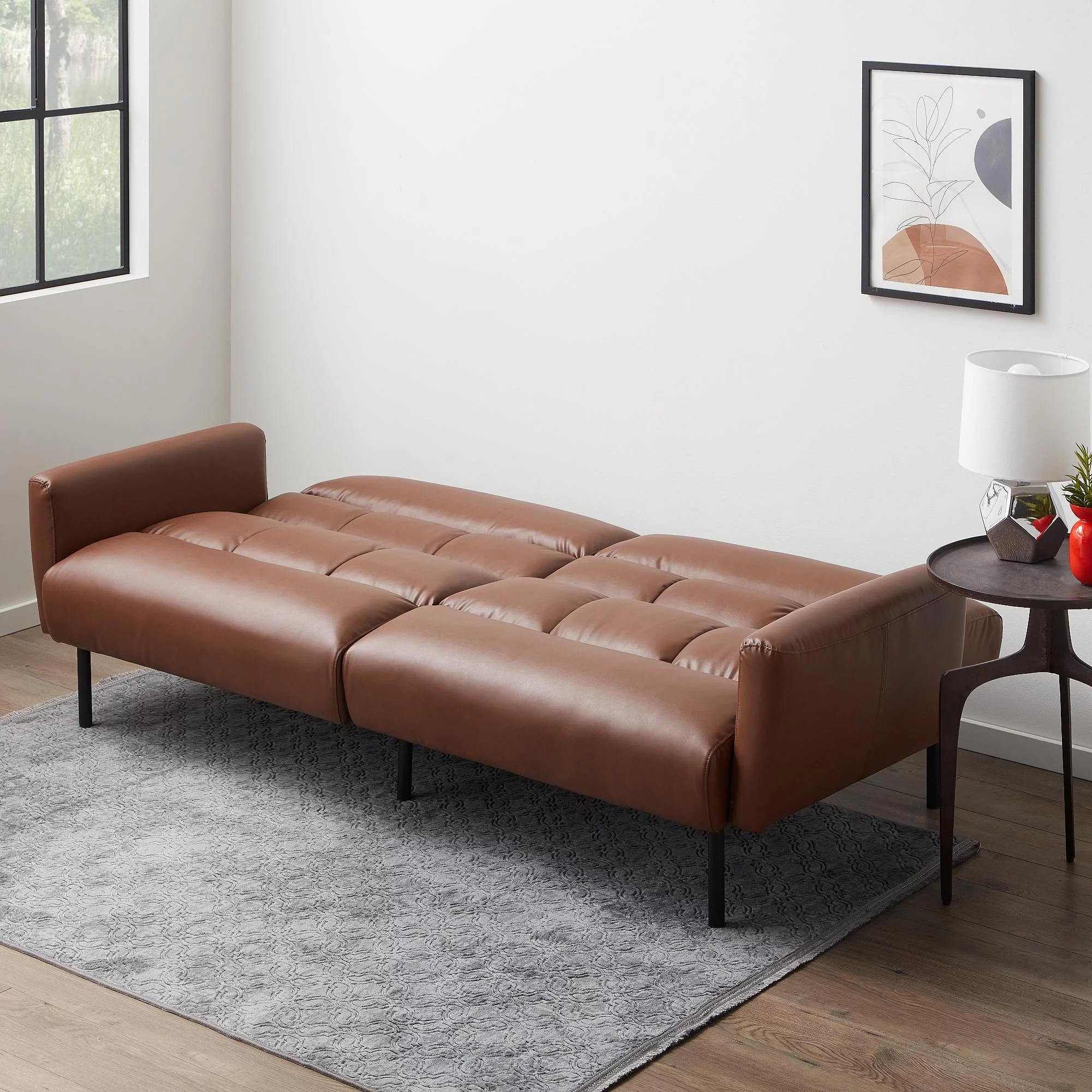 Mayview Sofa Bed with Box Tufting and Removable Arms, Brown Faux Leather