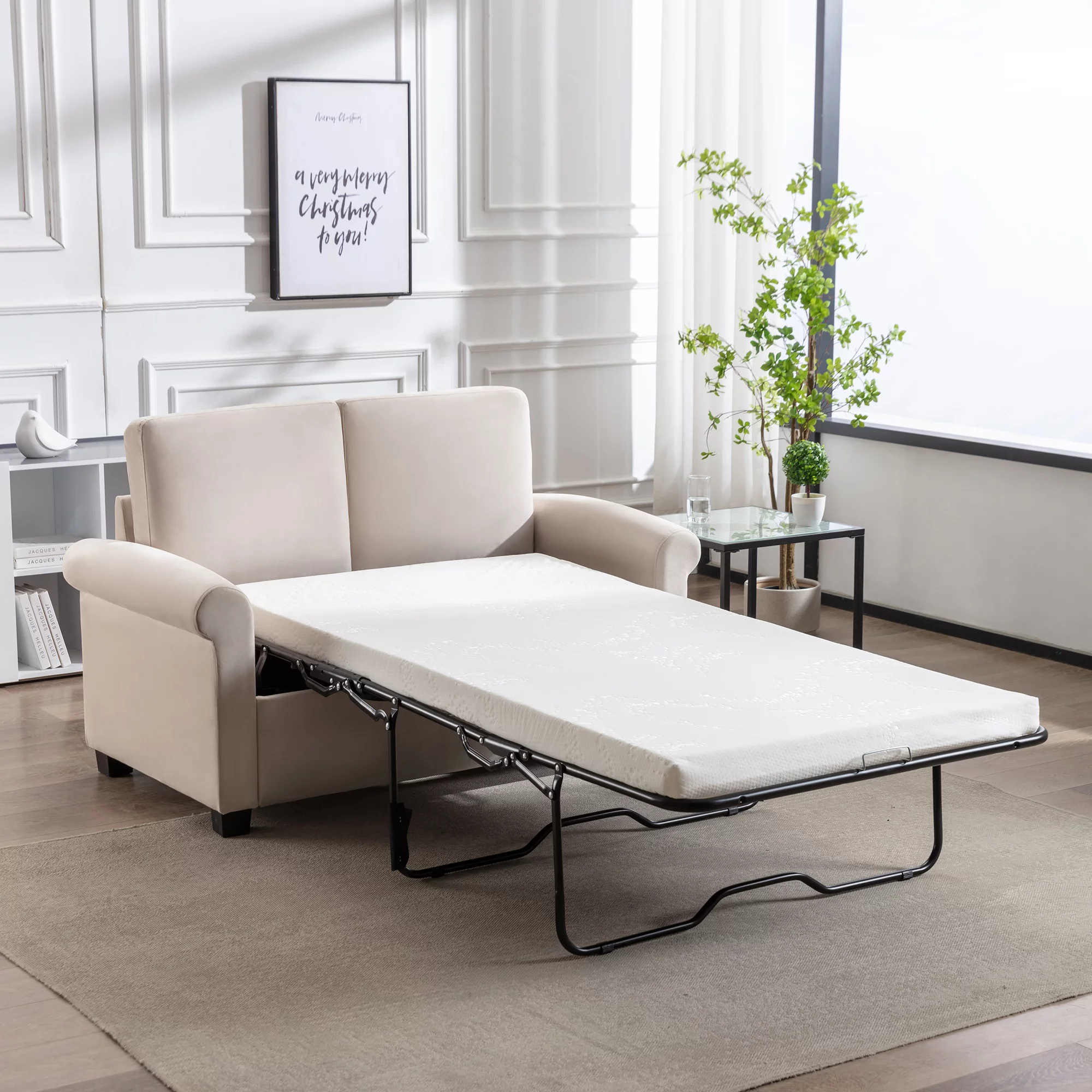 Gewnee 58"Pull Out Sofa Bed, Convertible Sleeper Loveseat with Premium Twin Size Mattress Pad,White