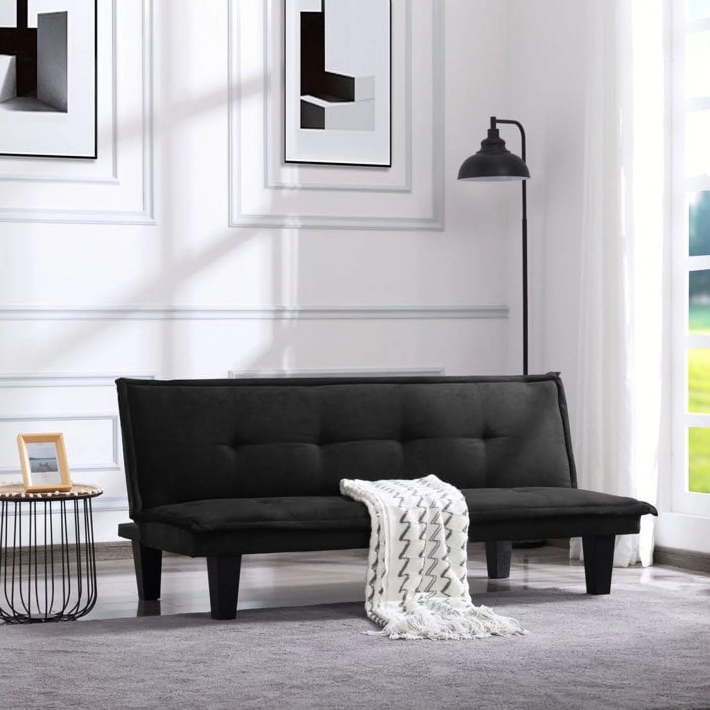 BSHTI 63.8 inch Armless Tufted Convertible Sleeper Futon Sofa Faux Suede Fabric Sofa Sleeper(Black)