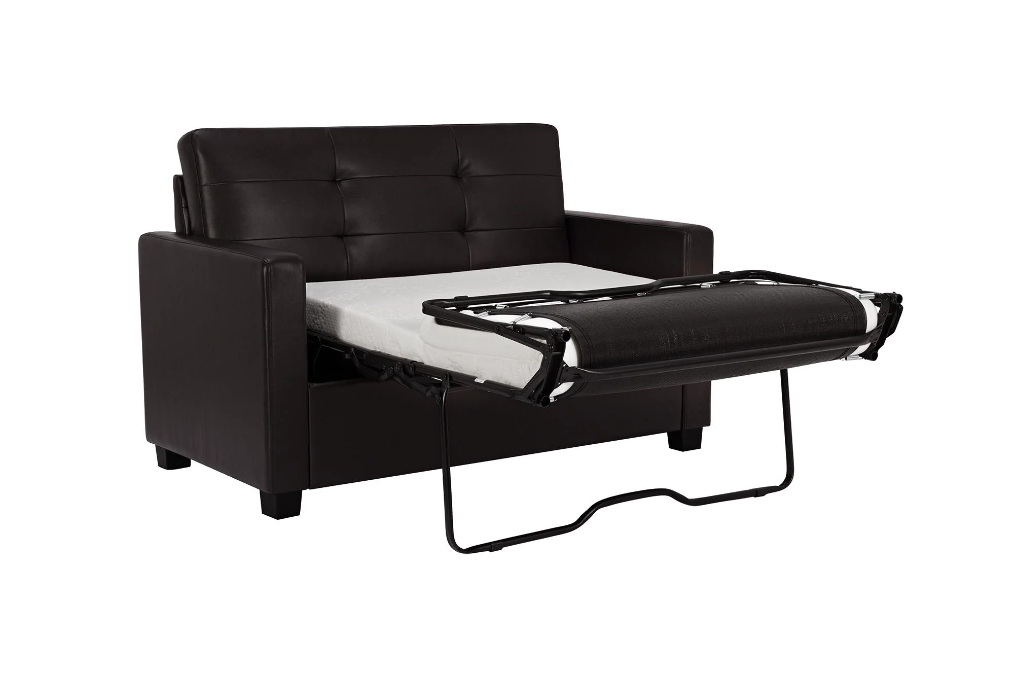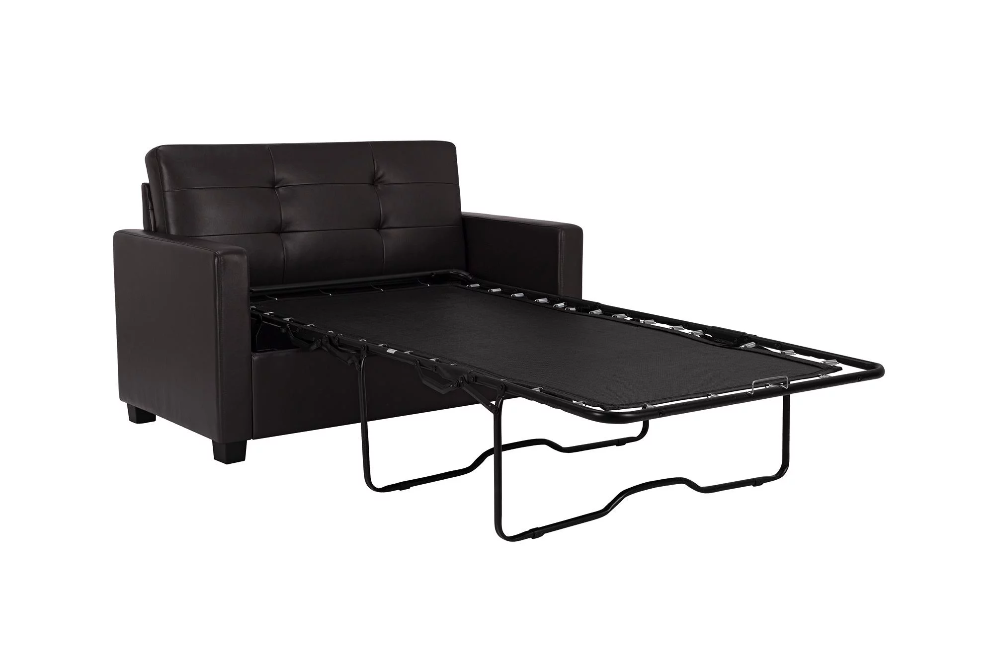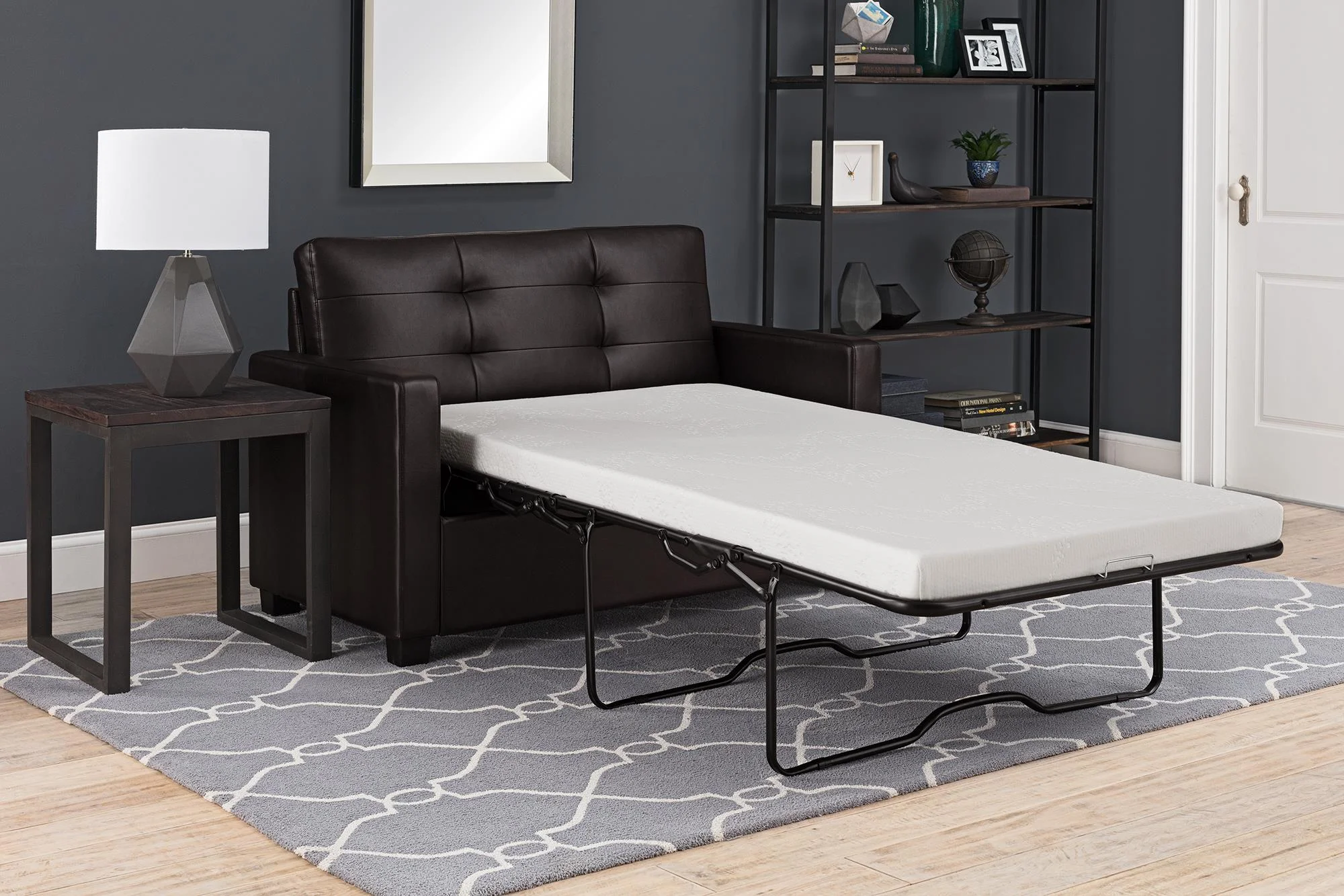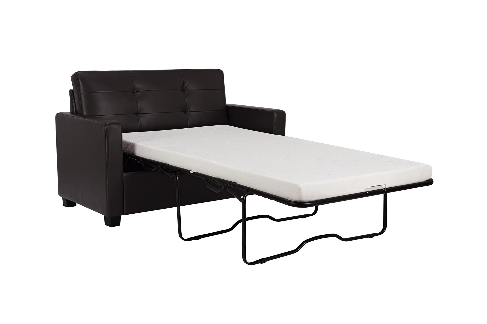 Mainstays Loveseat Sleeper Sofa with Twin Memory Foam Mattress, Chocolate Faux Leather