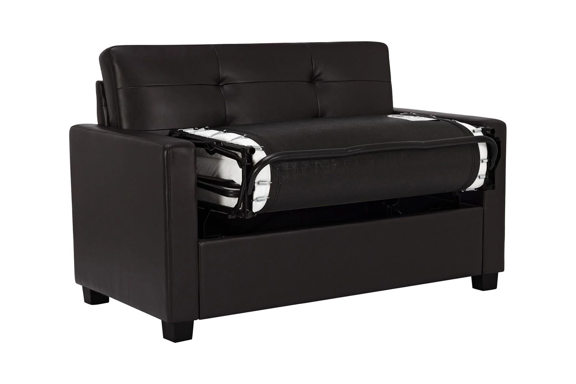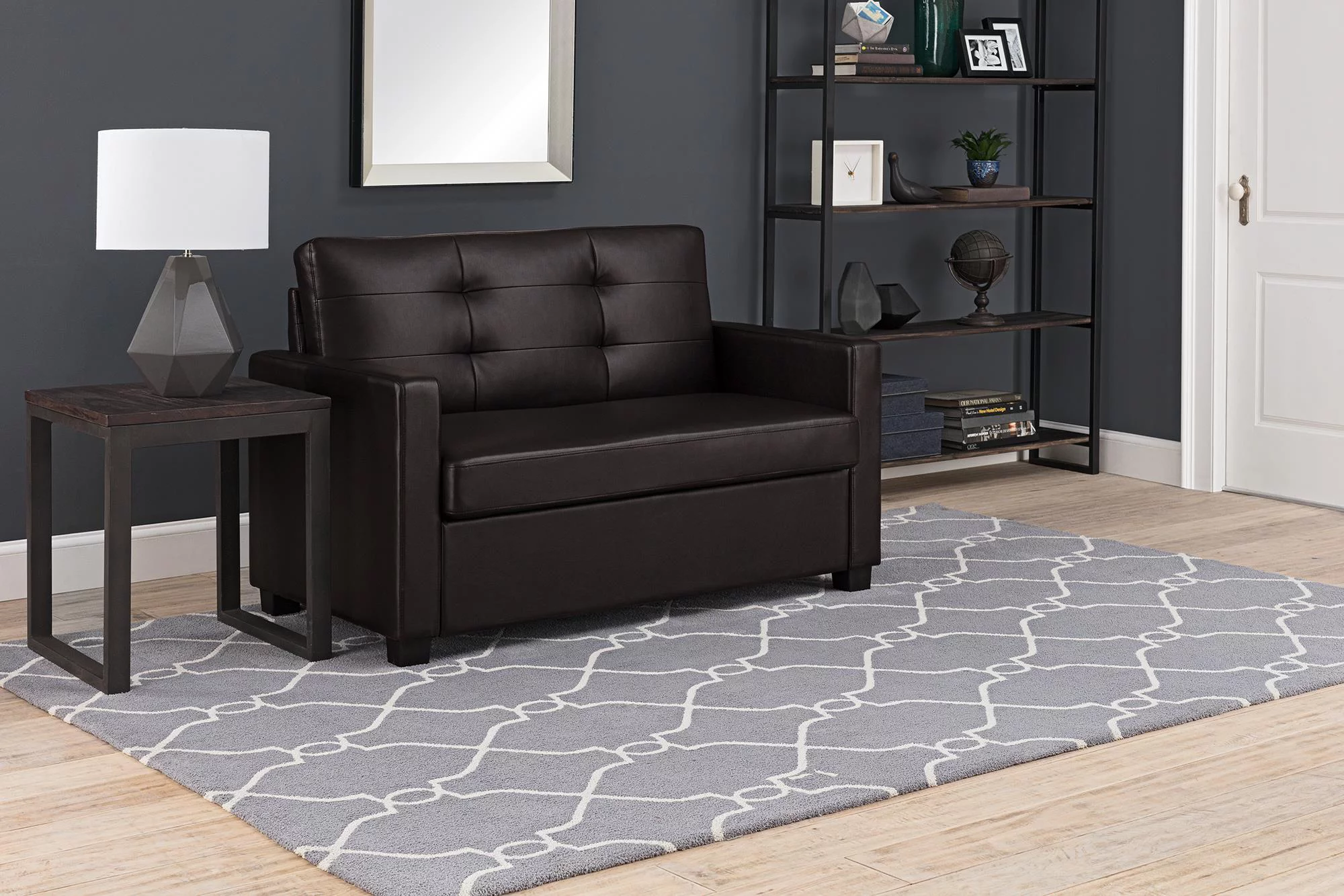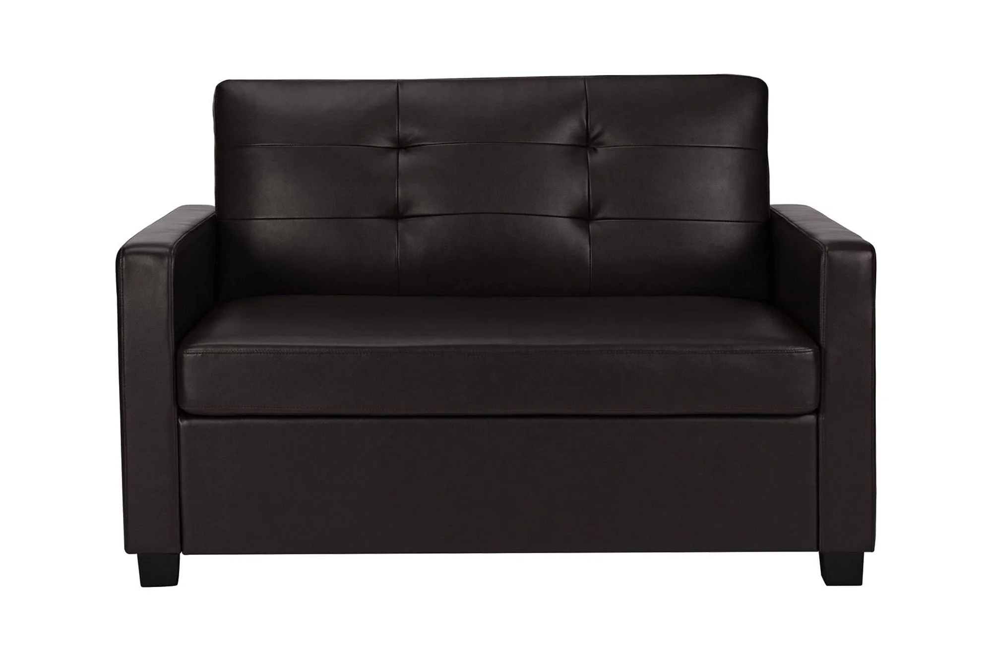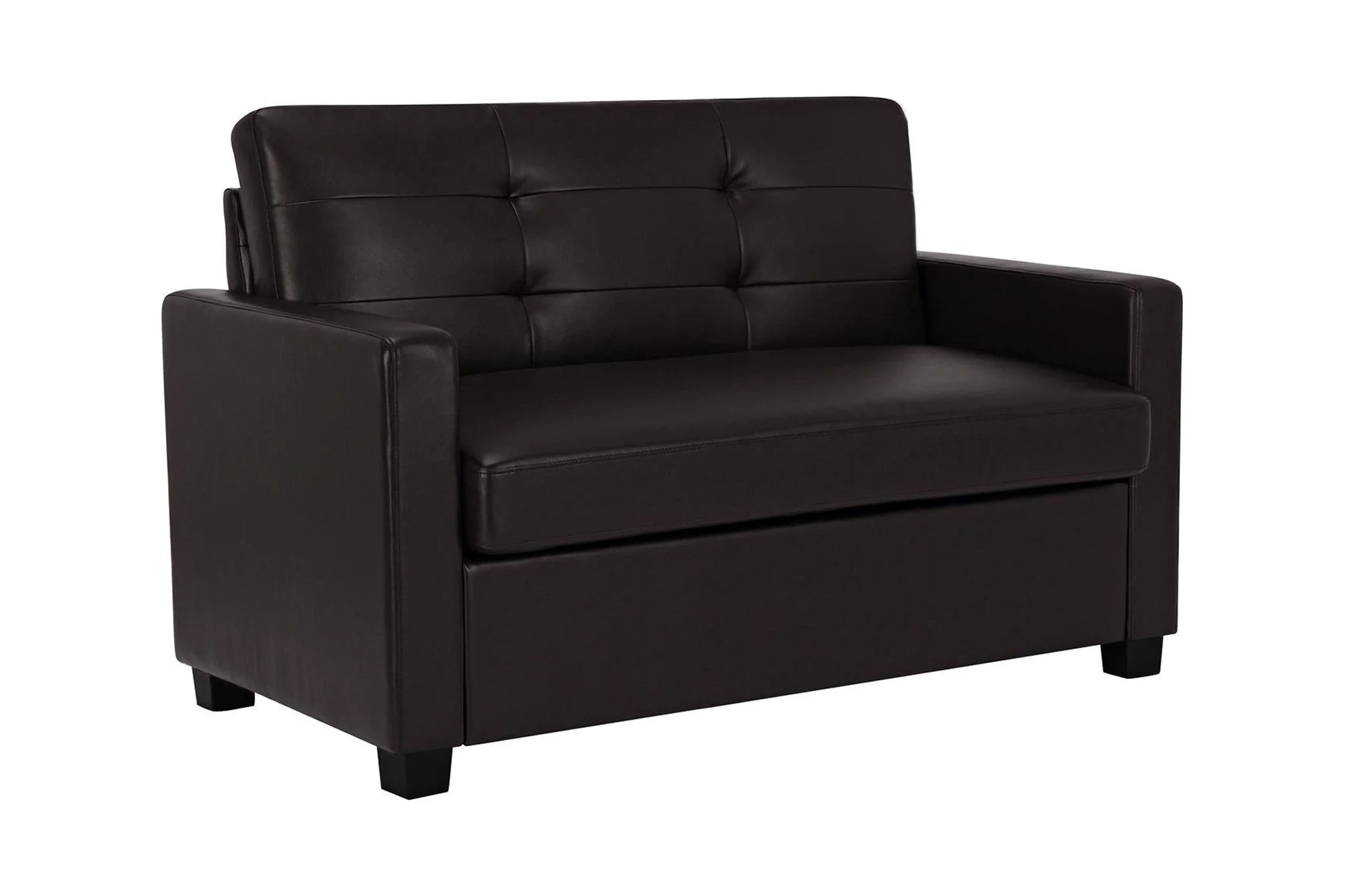Mainstays Loveseat Sleeper Sofa with Twin Memory Foam Mattress, Chocolate Faux Leather
