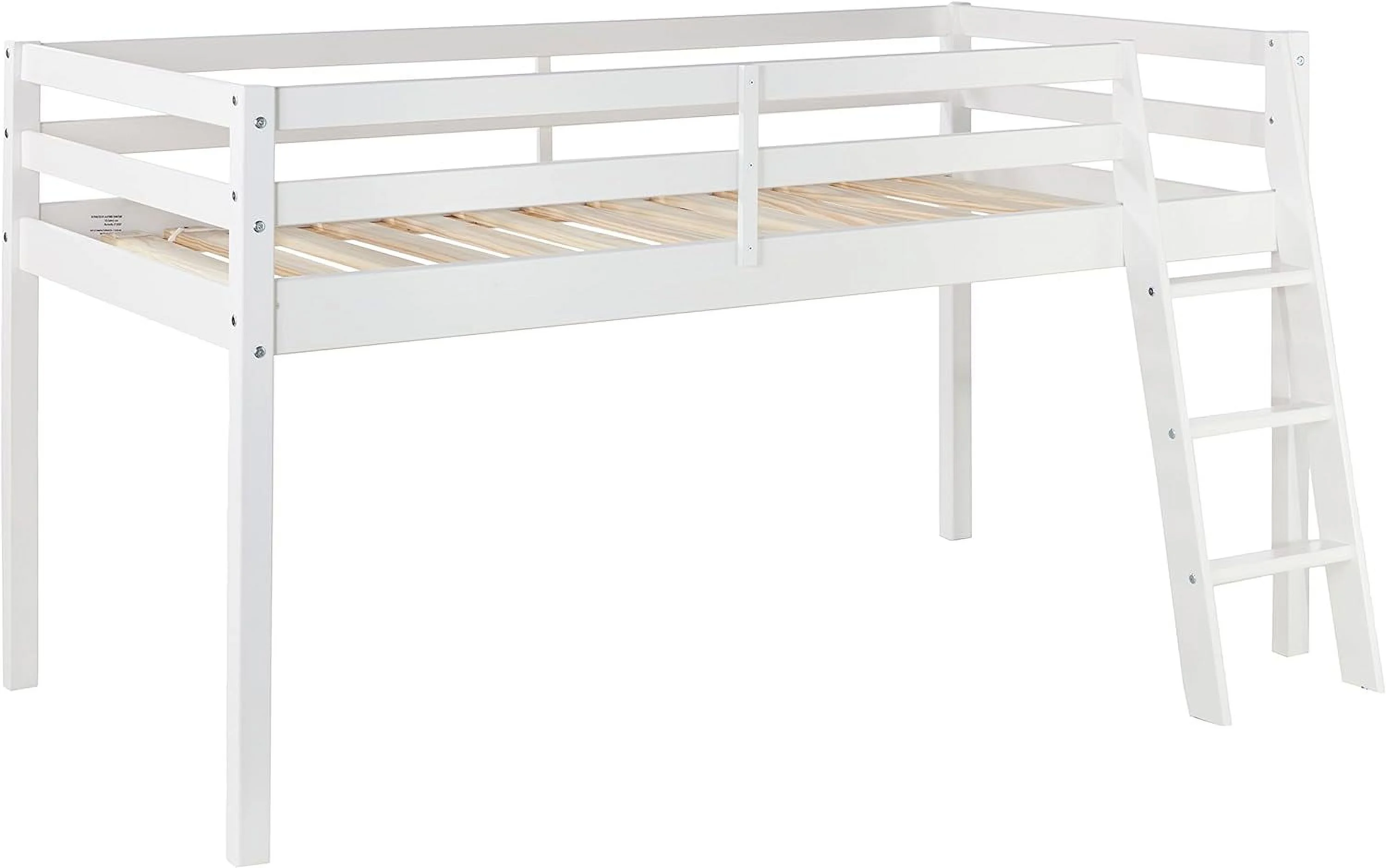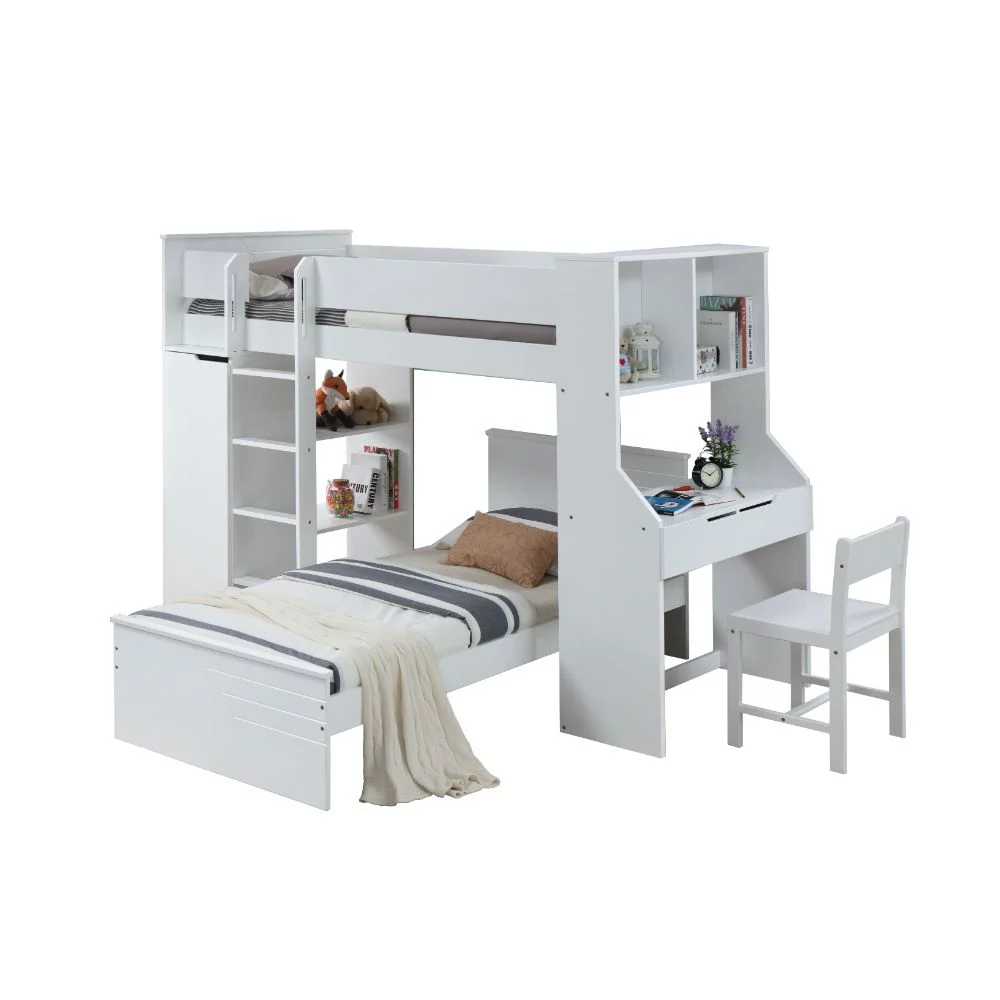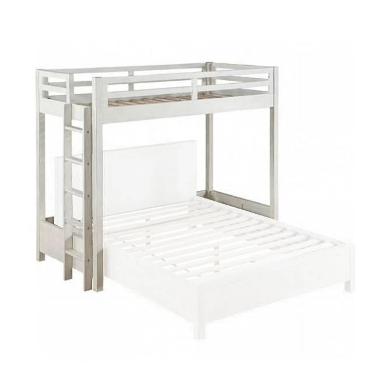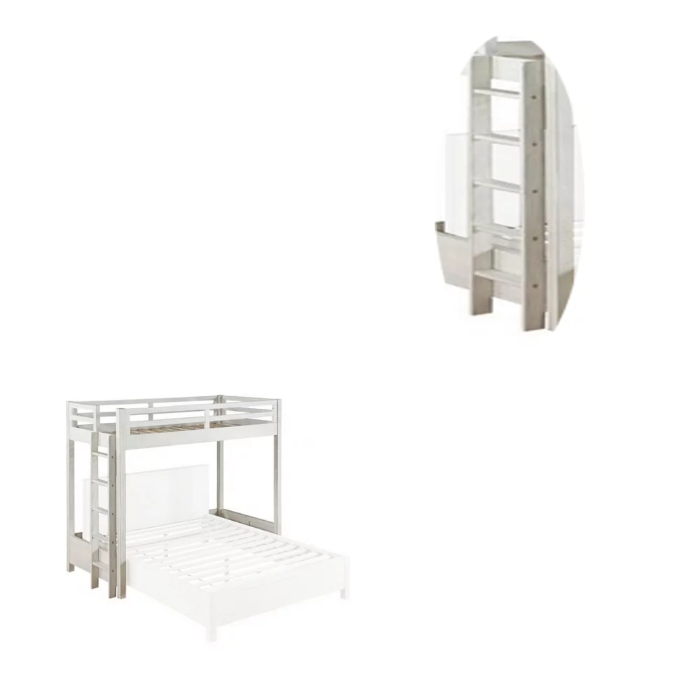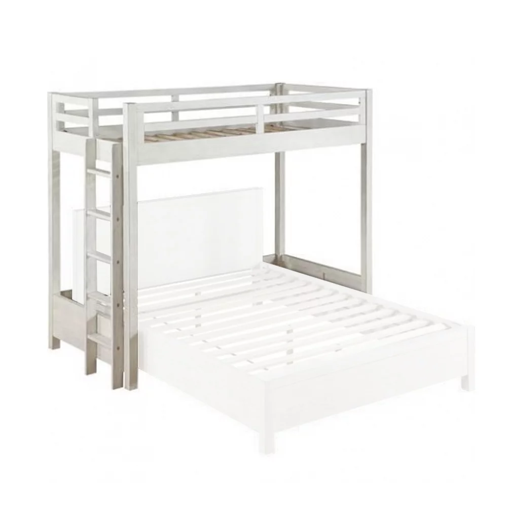 Twin Loft Bed with 1 Queen Bed and Fixed Ladder, White- Saltoro Sherpi