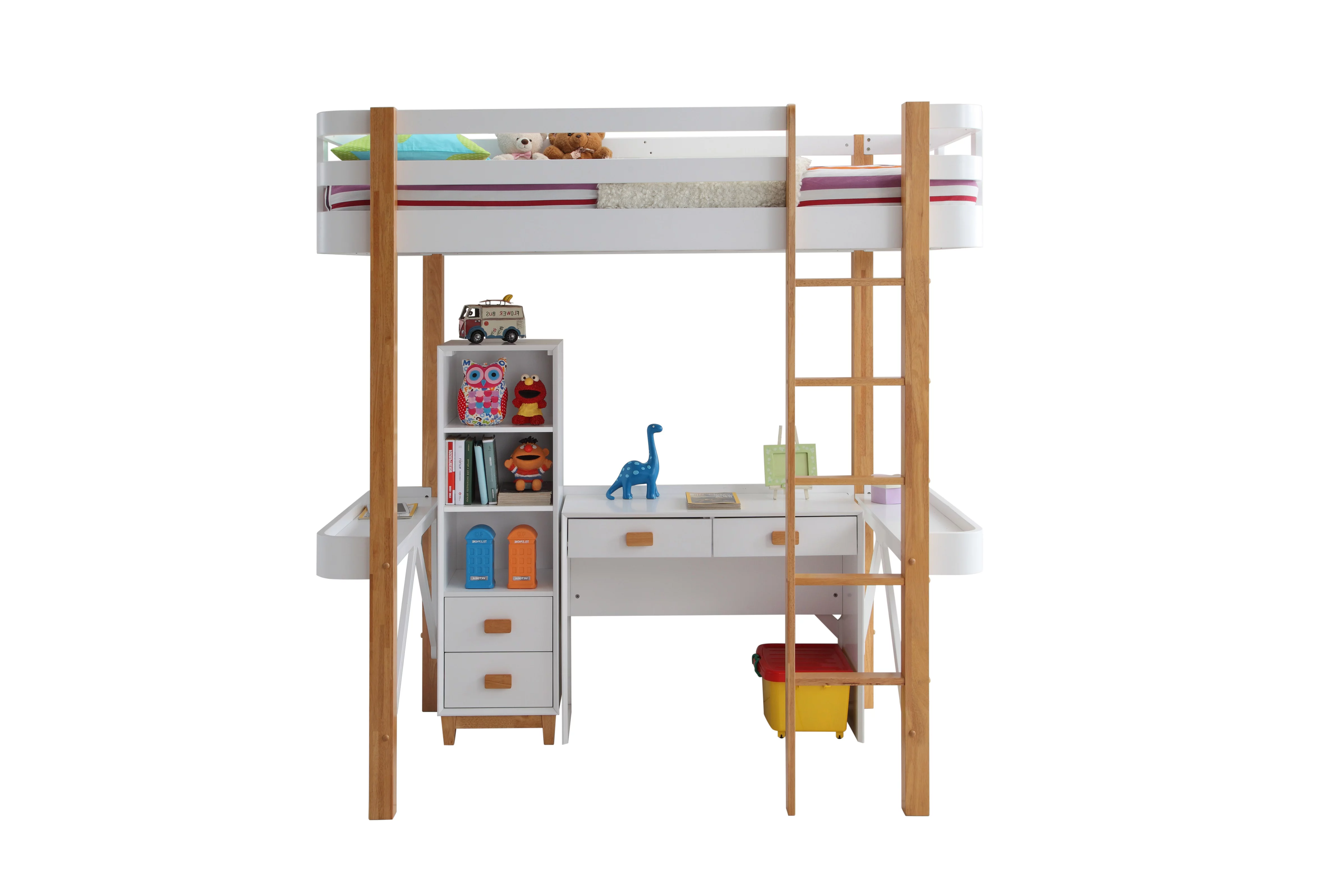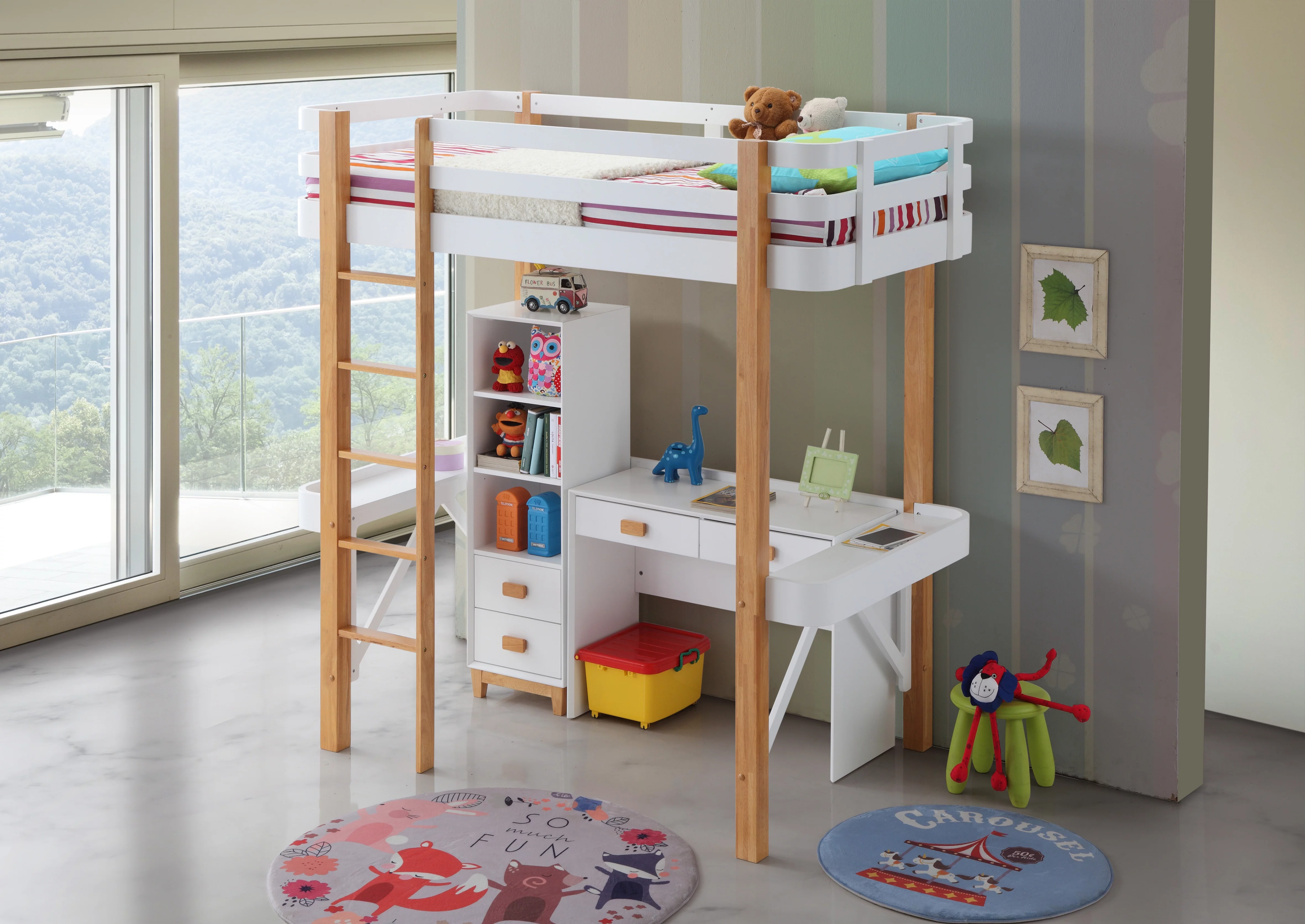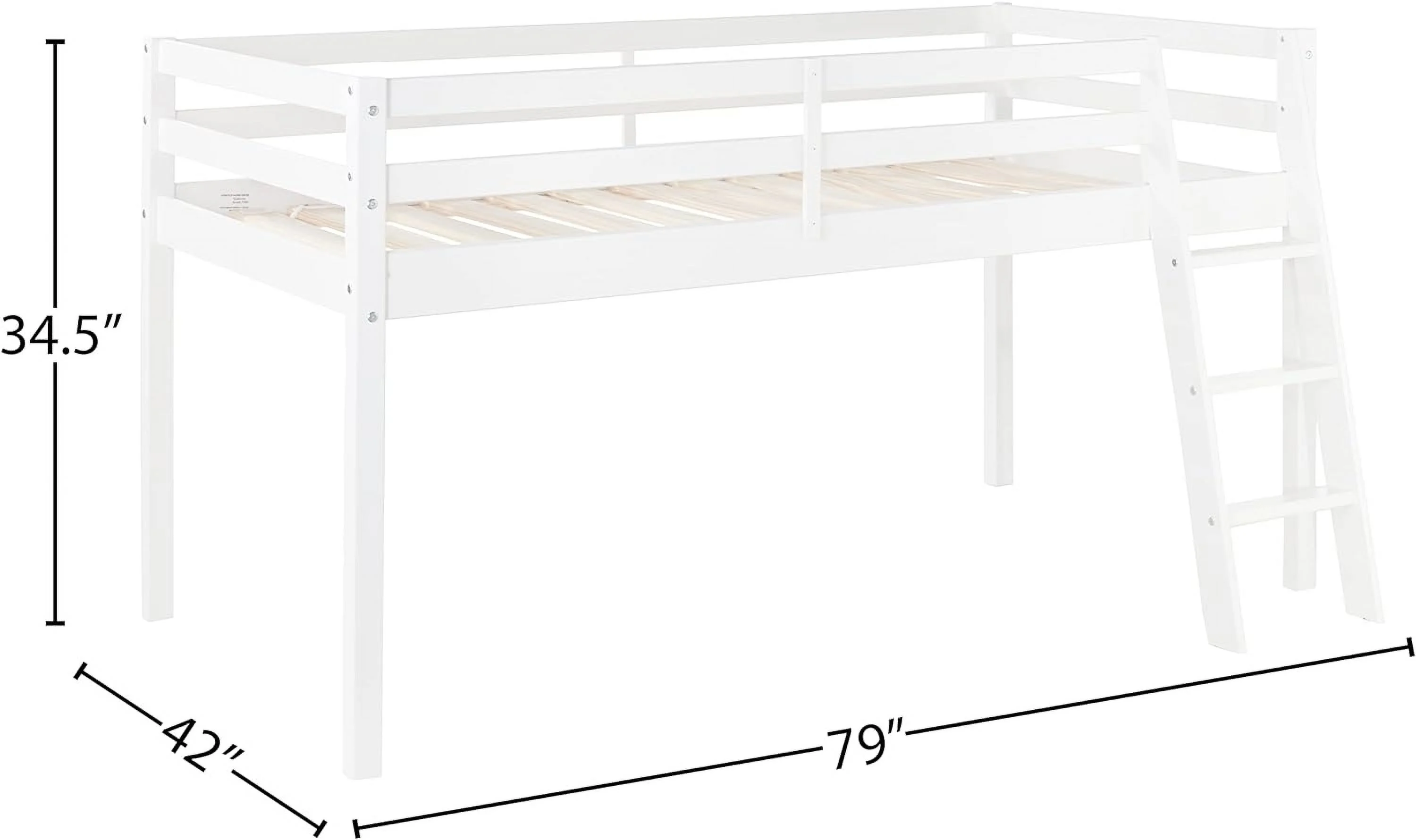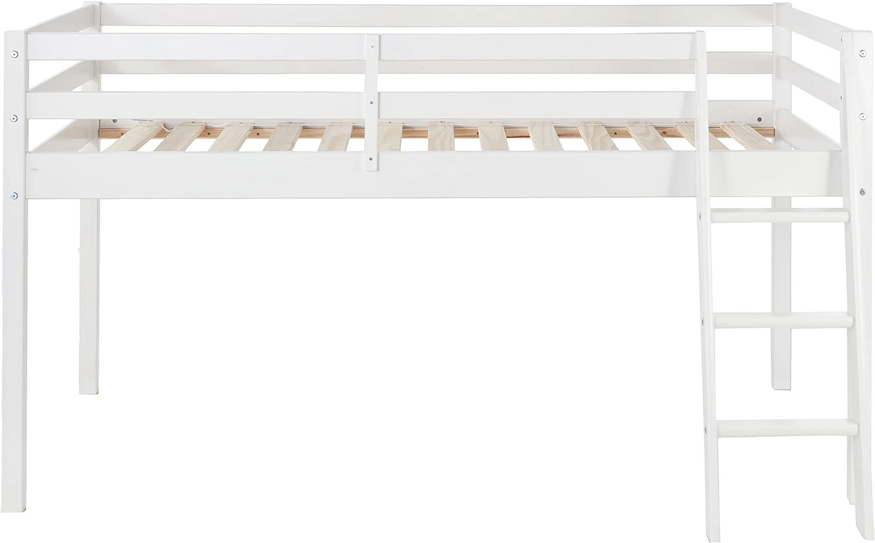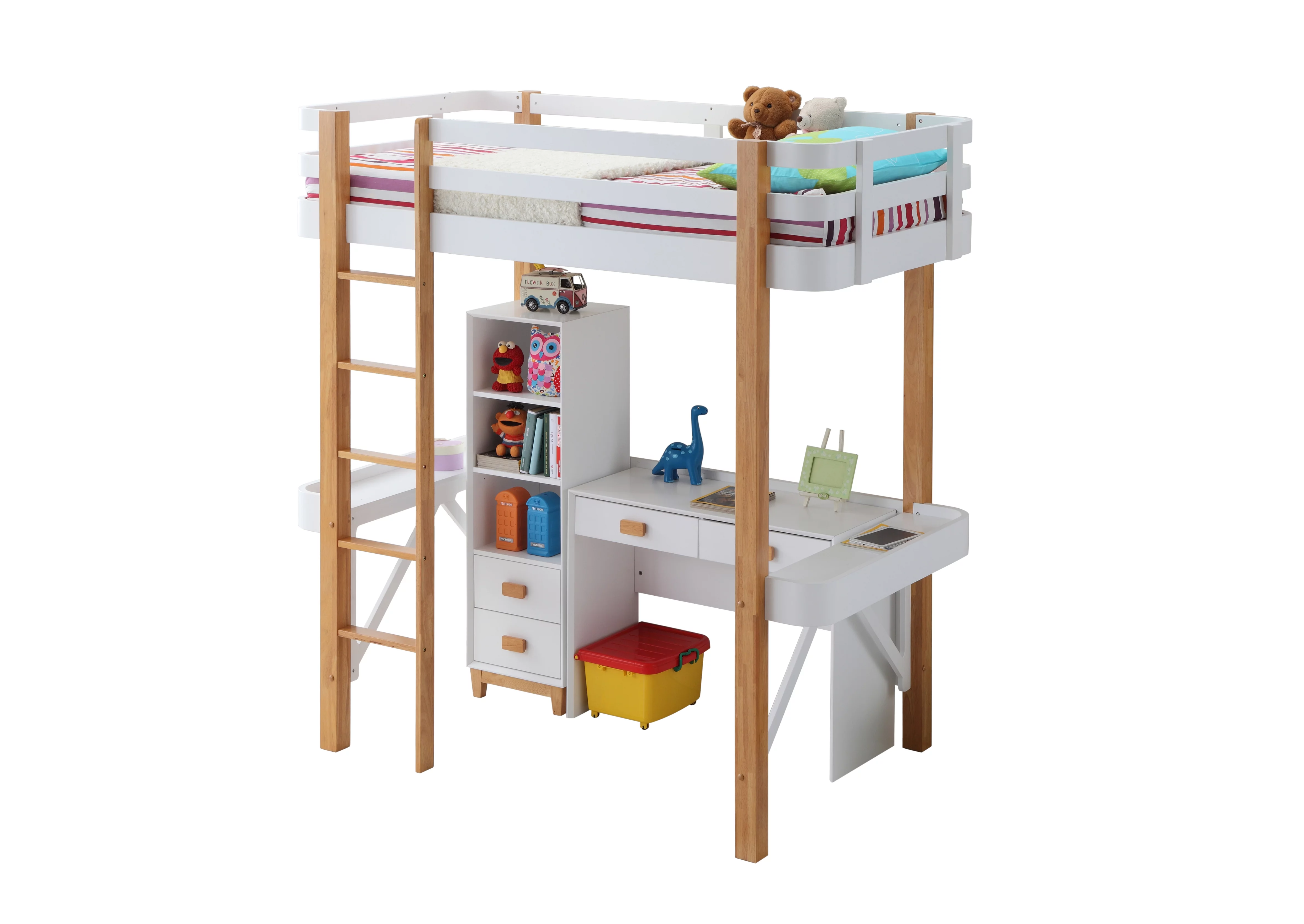 Twin Loft Bed with 1 Queen Bed and Fixed Ladder, White- Saltoro Sherpi