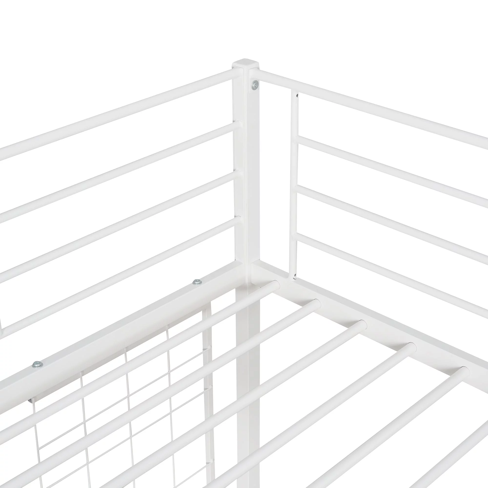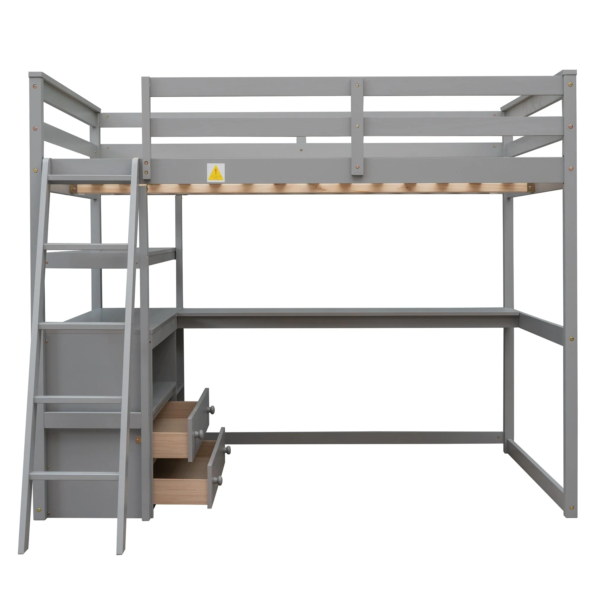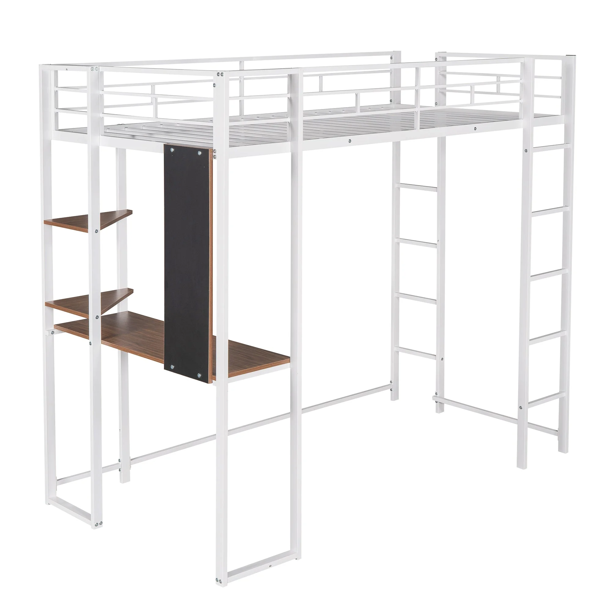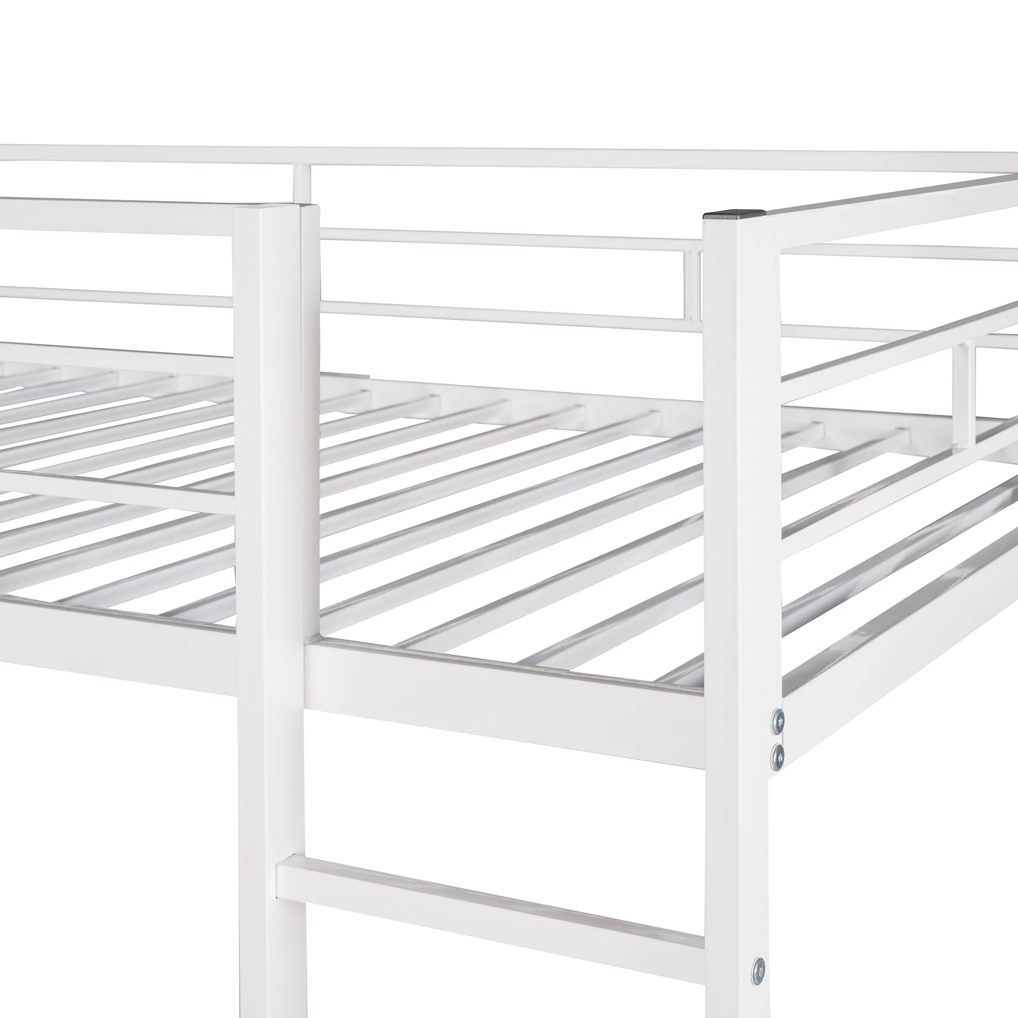 Twin Loft Bed with 1 Queen Bed and Fixed Ladder, White- Saltoro Sherpi