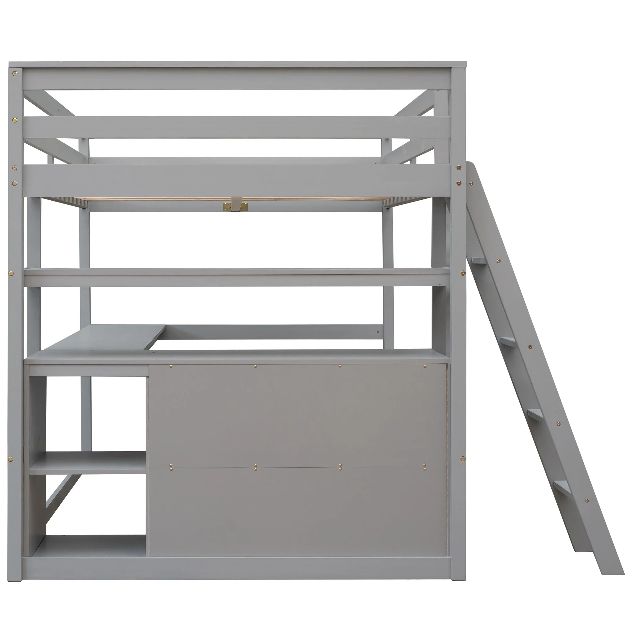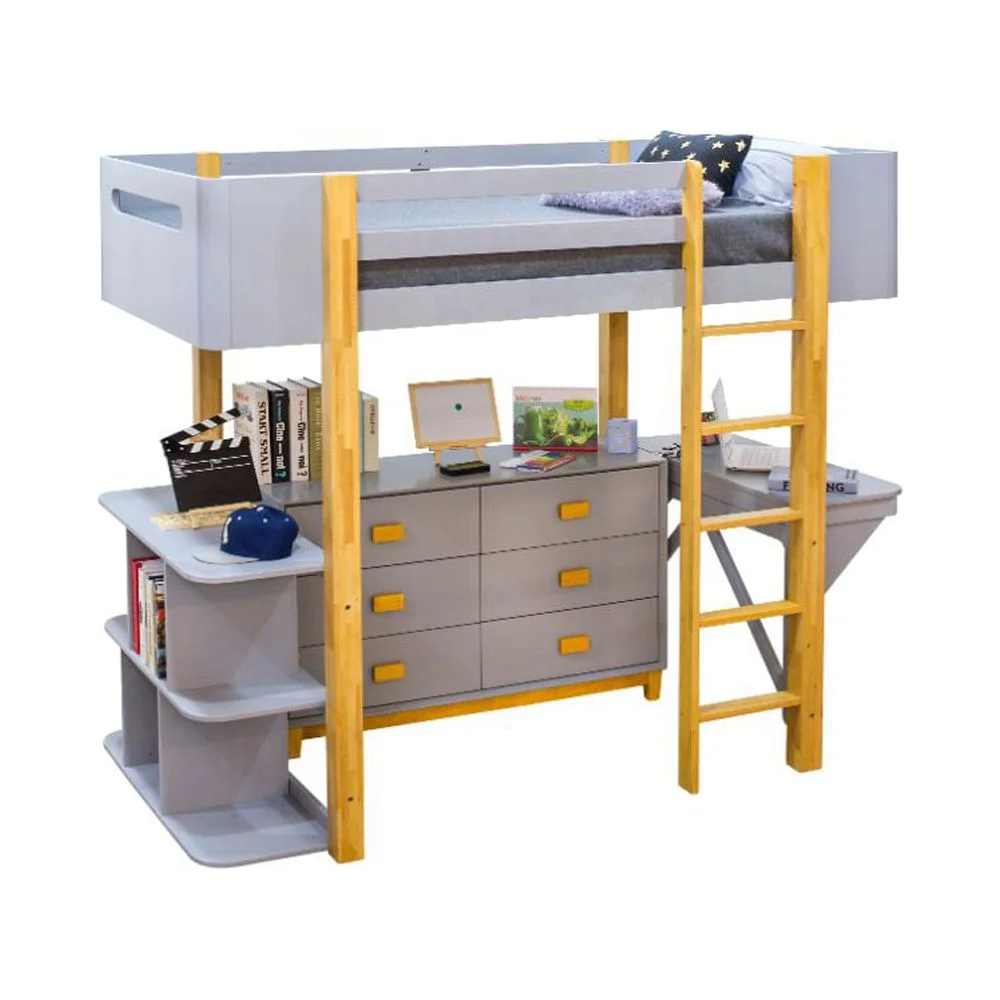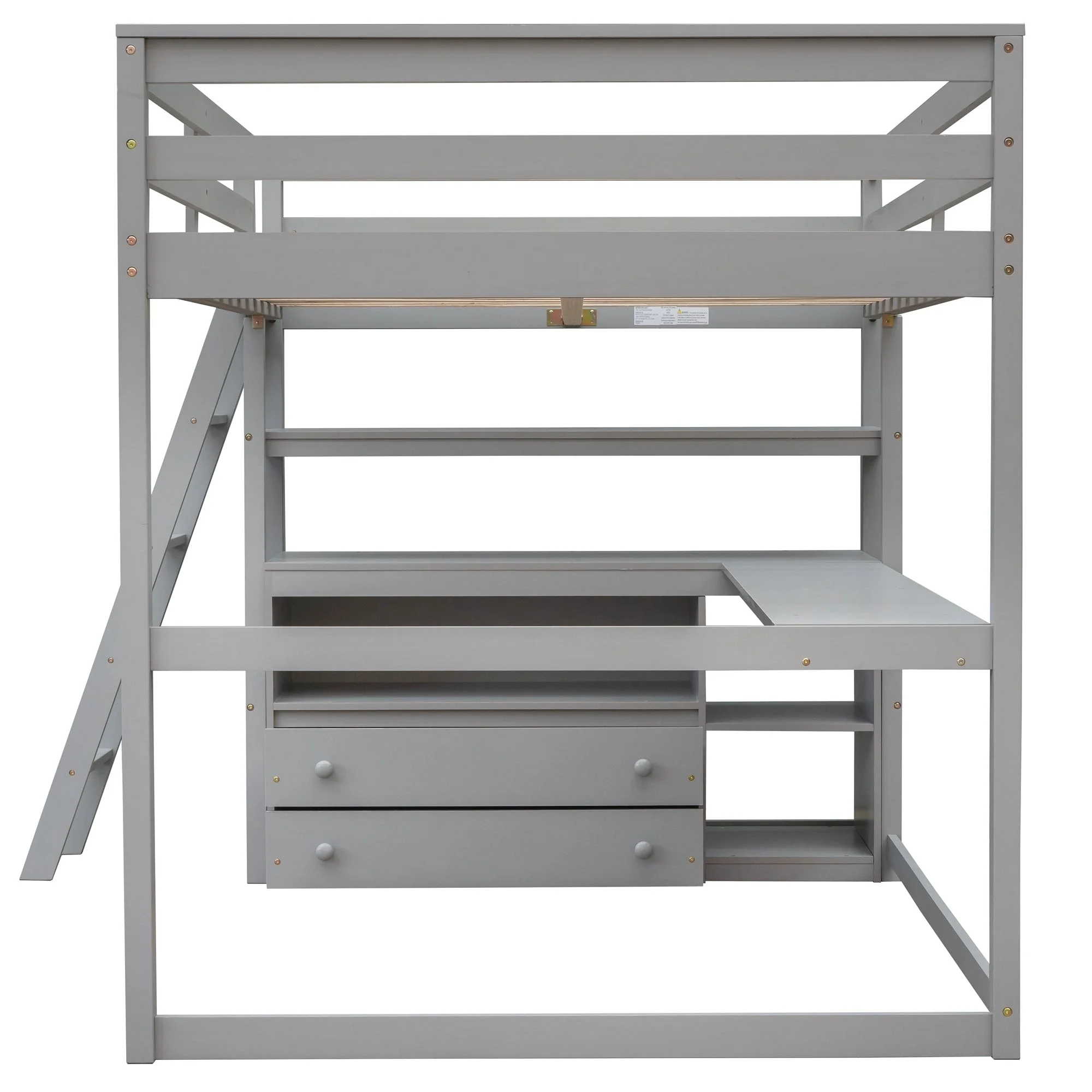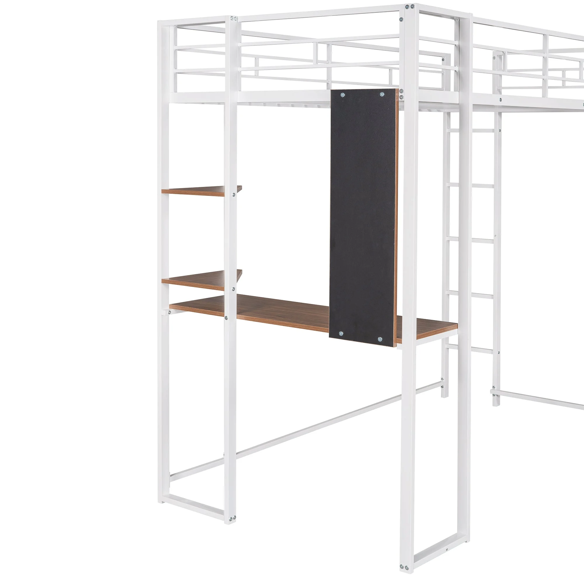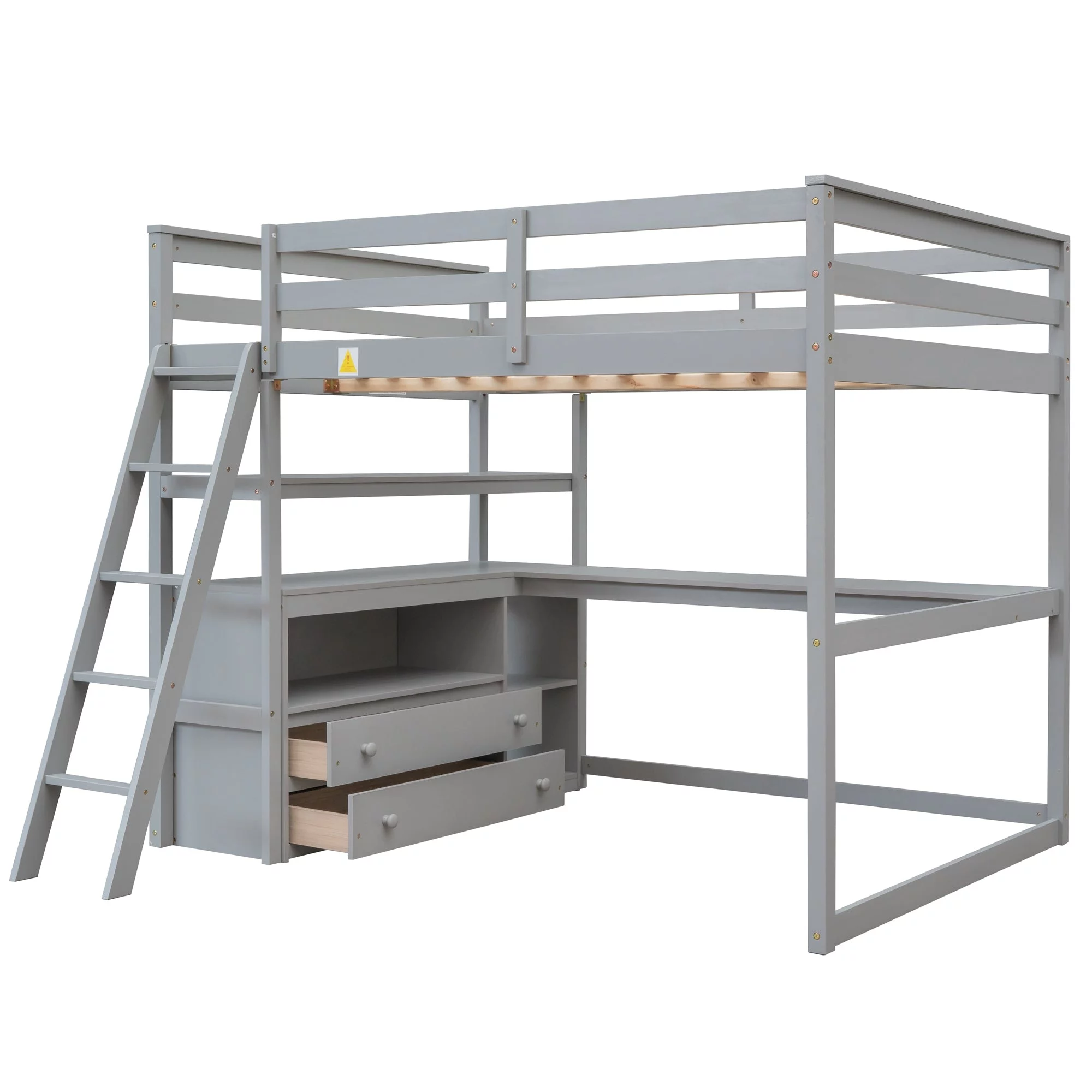 Twin Loft Bed with 1 Queen Bed and Fixed Ladder, White- Saltoro Sherpi