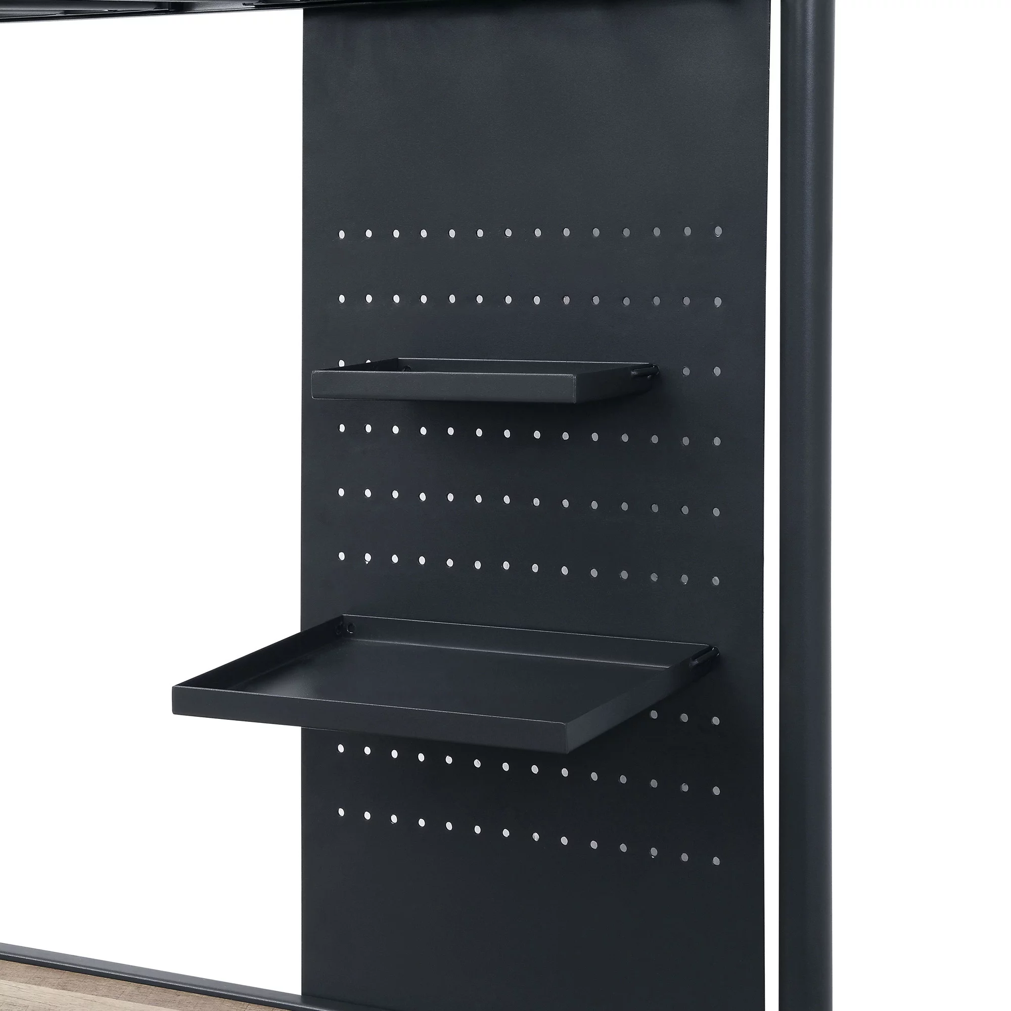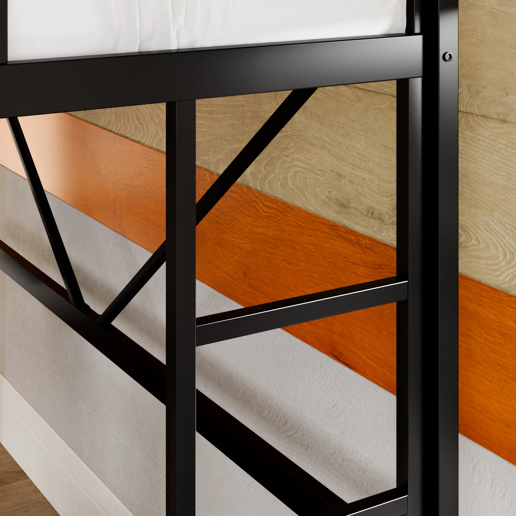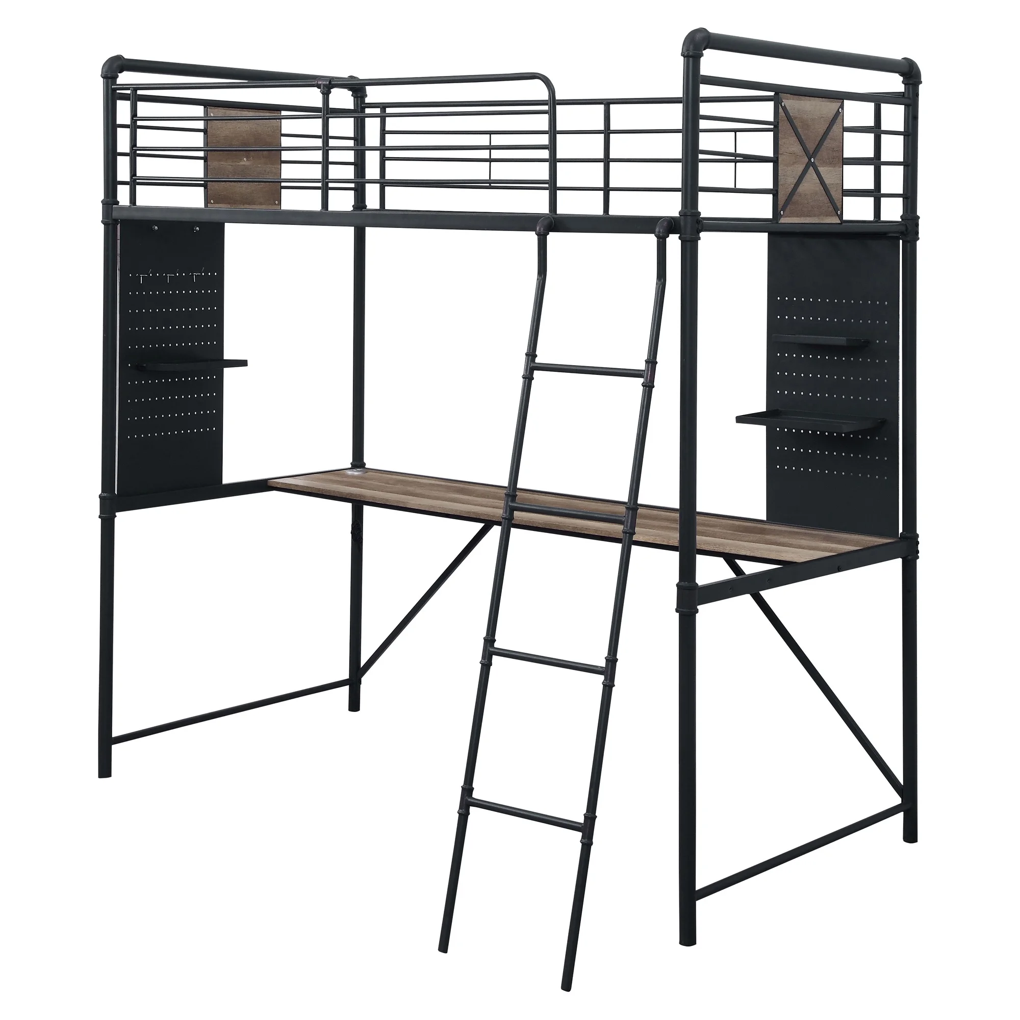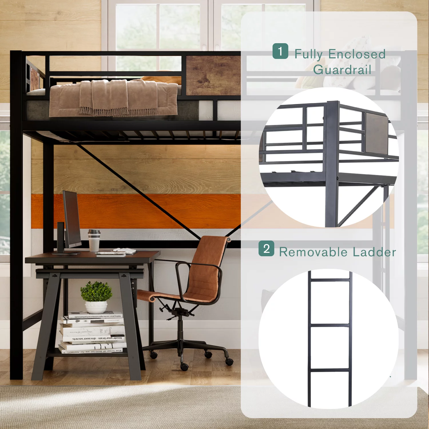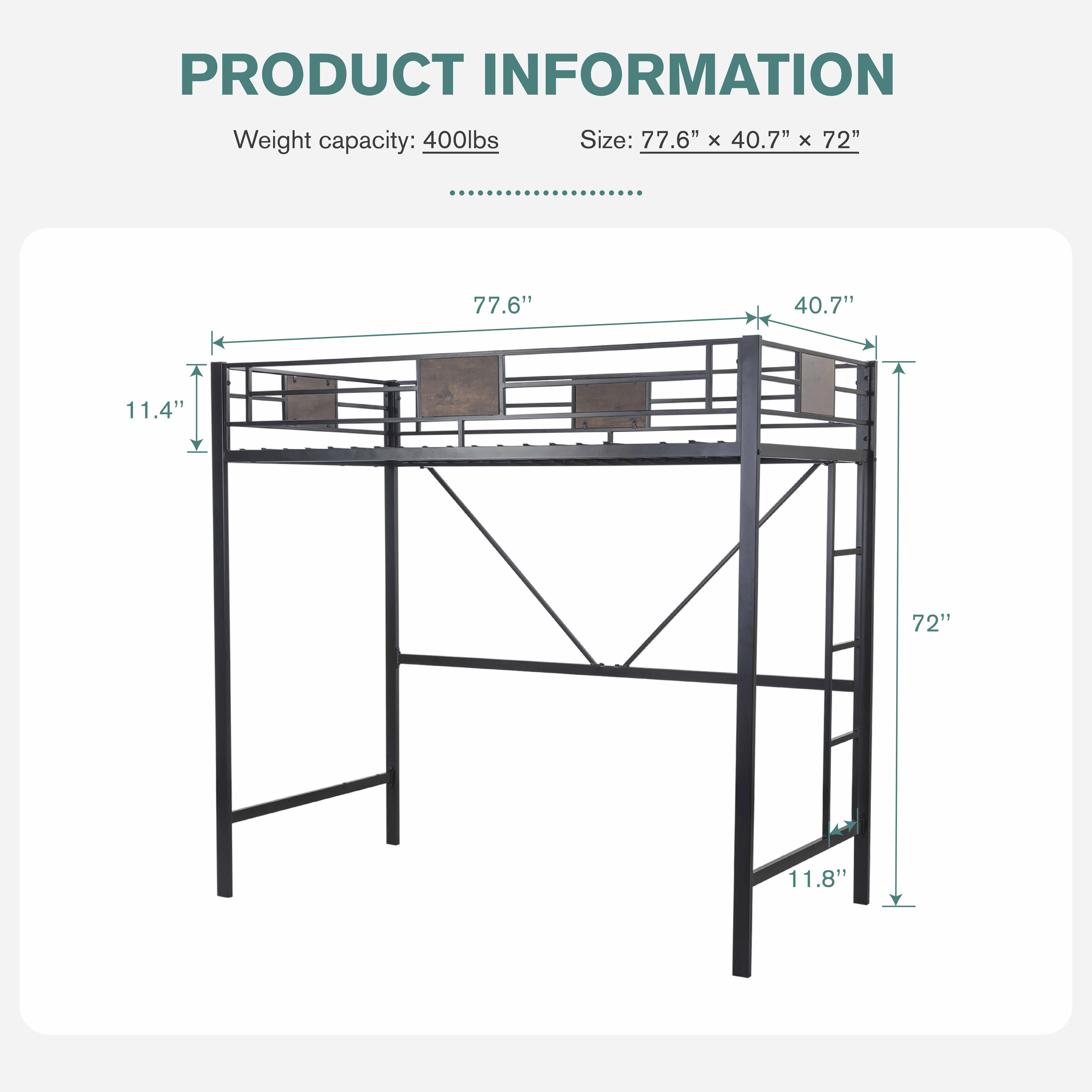 Einfach Twin Size Loft Bed Frame with Fully Enclosed Guardrail and Removable Ladders, Black