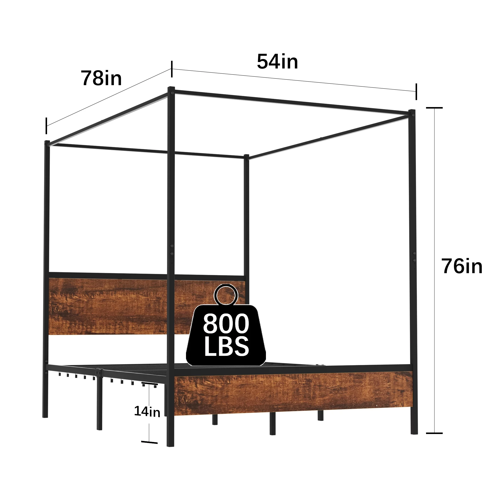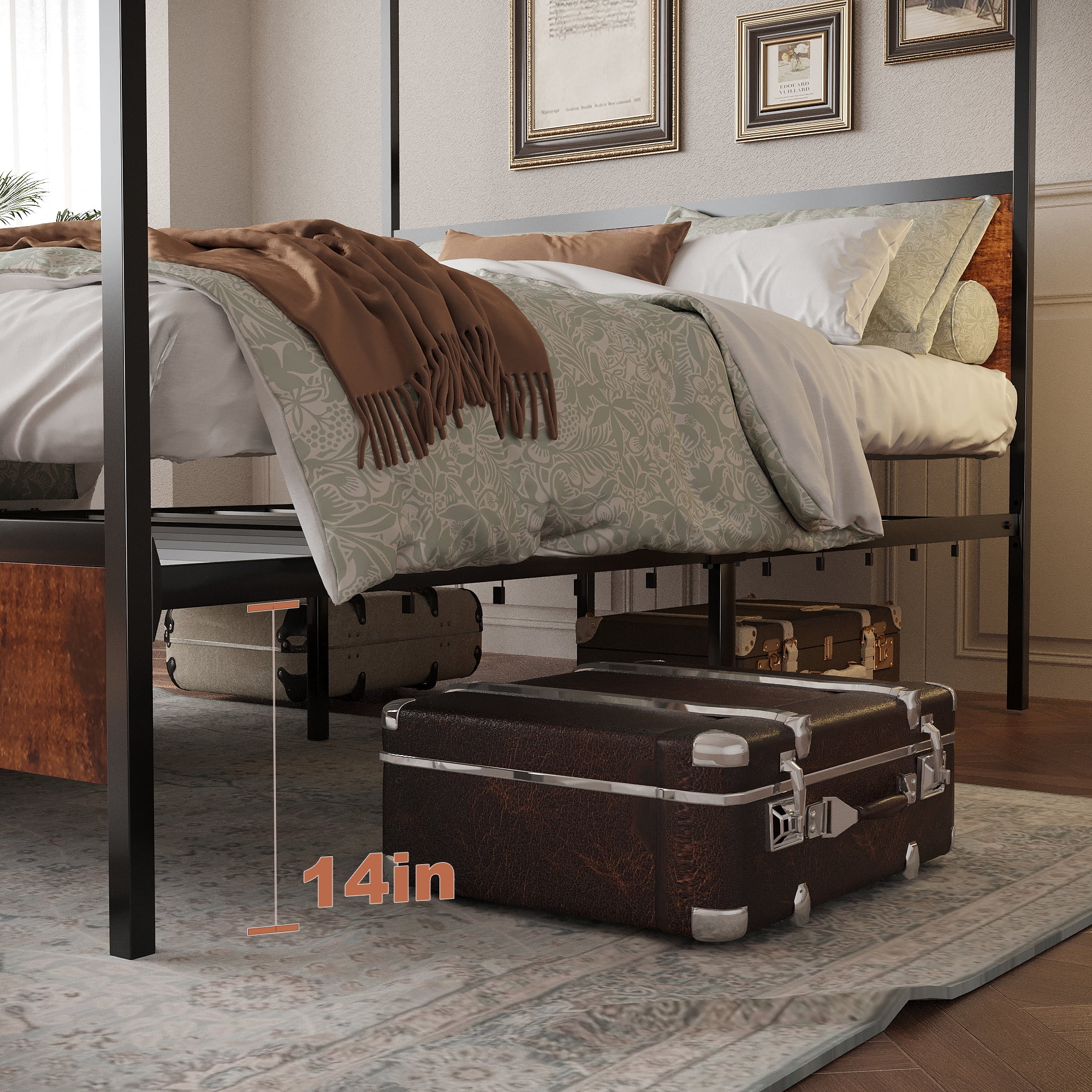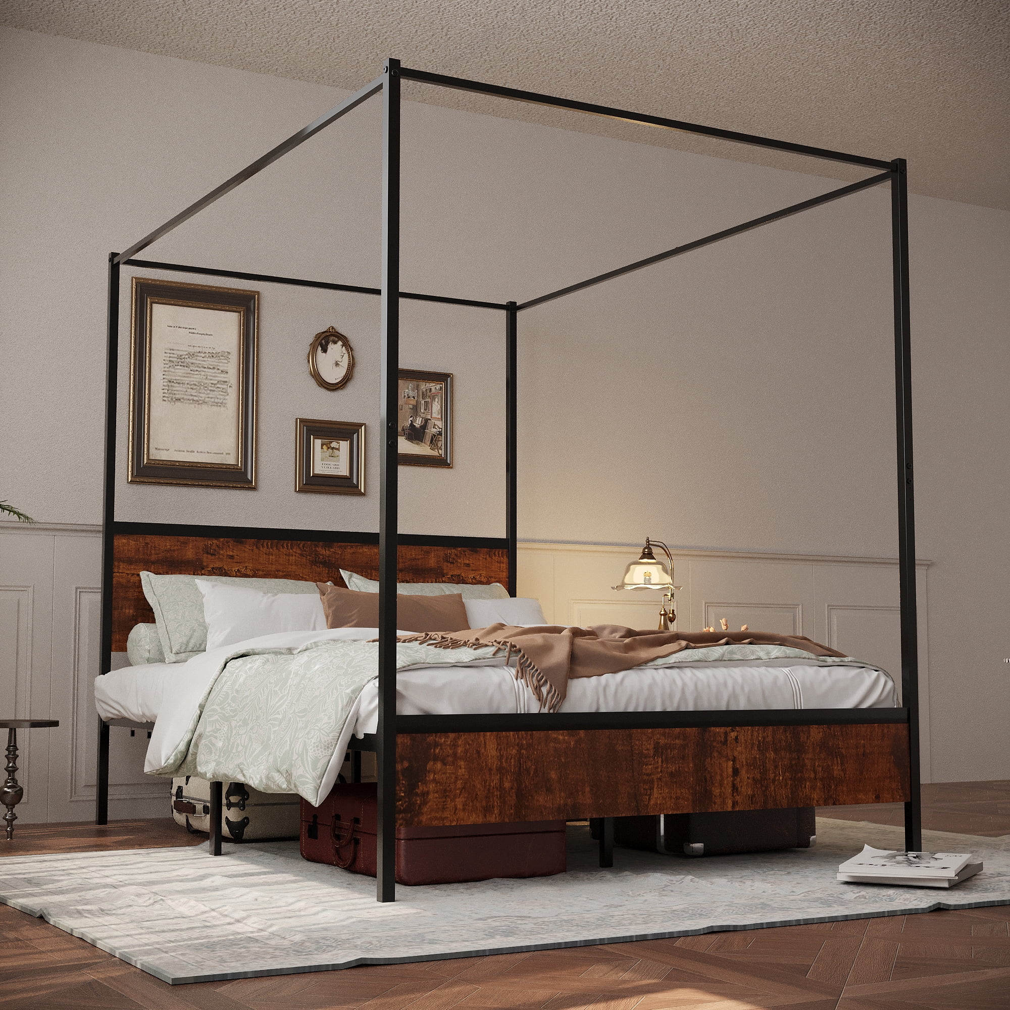 EUROCO Wood Queen Size Canopy Bed, Solid Wood Platform Bed with Headboard for Kids Bedroom, Gray