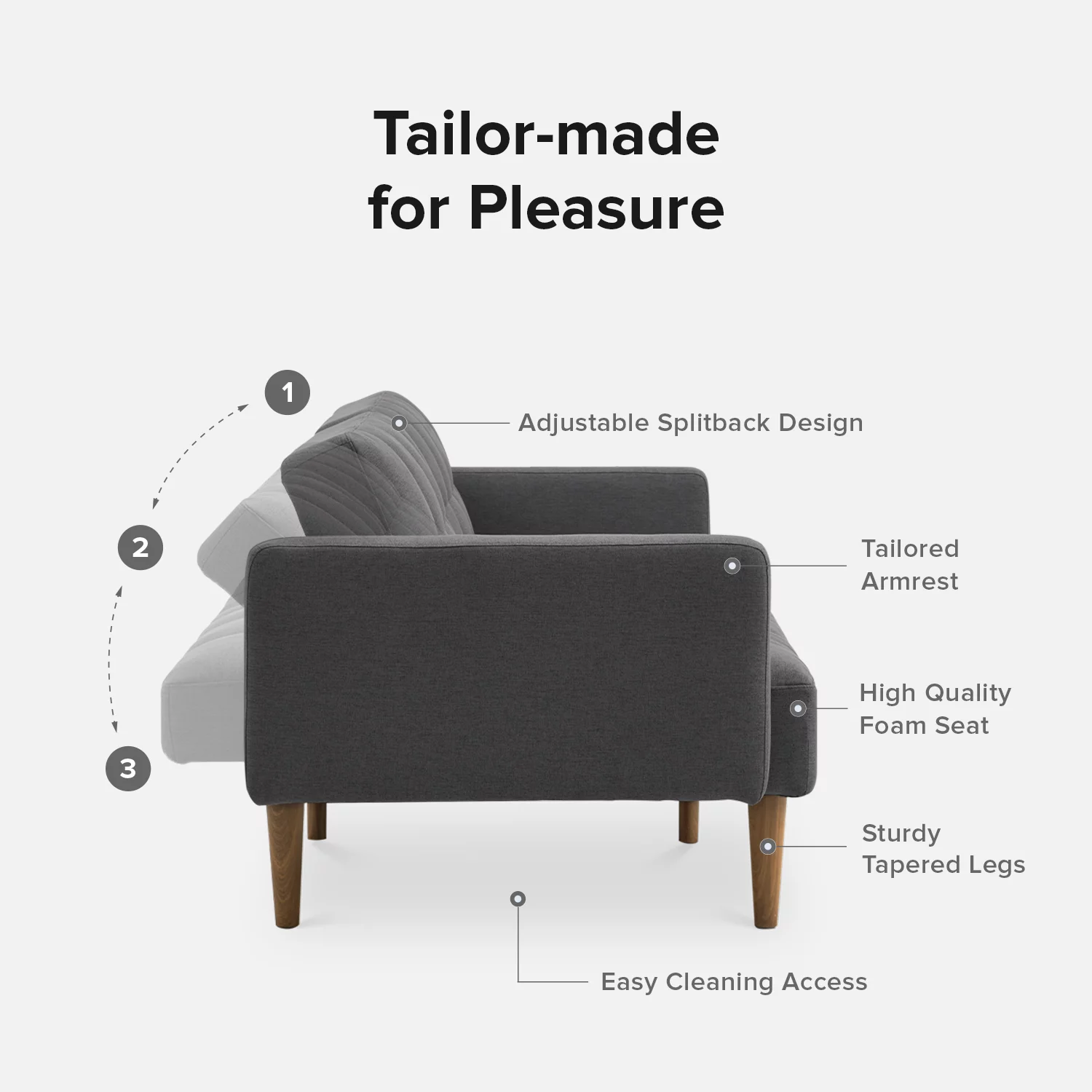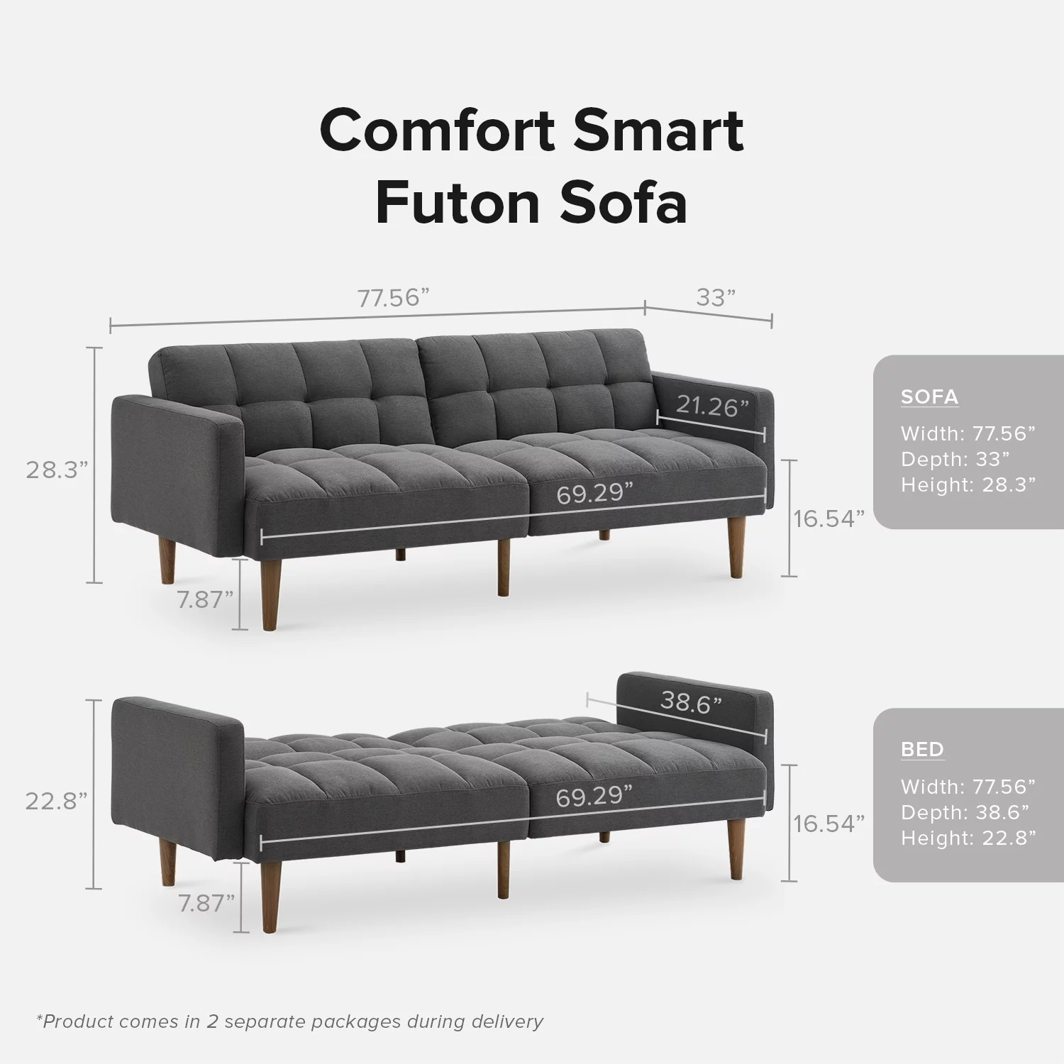 Mopio Aaron Futon Twin Size Convertible Sofa Sleeper Futon with Arms Split Back Design 77.5" Dark Gray Fabric
