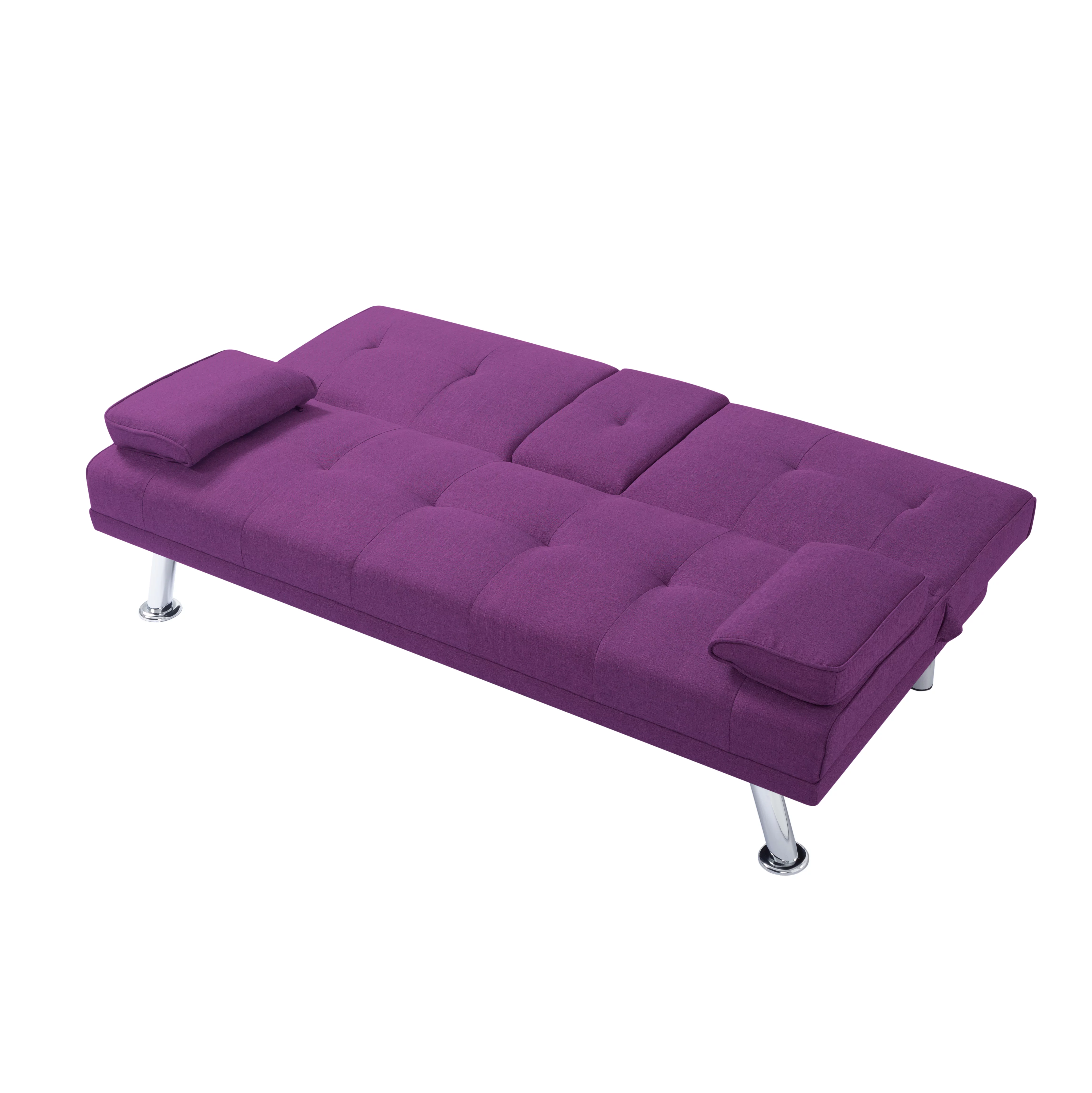 BSHTI Convertible Sofa Bed,Velvet Futon Sofa ,Sleeper Couch with Armrest and 2 Pillows for Living Room,Office( Black)