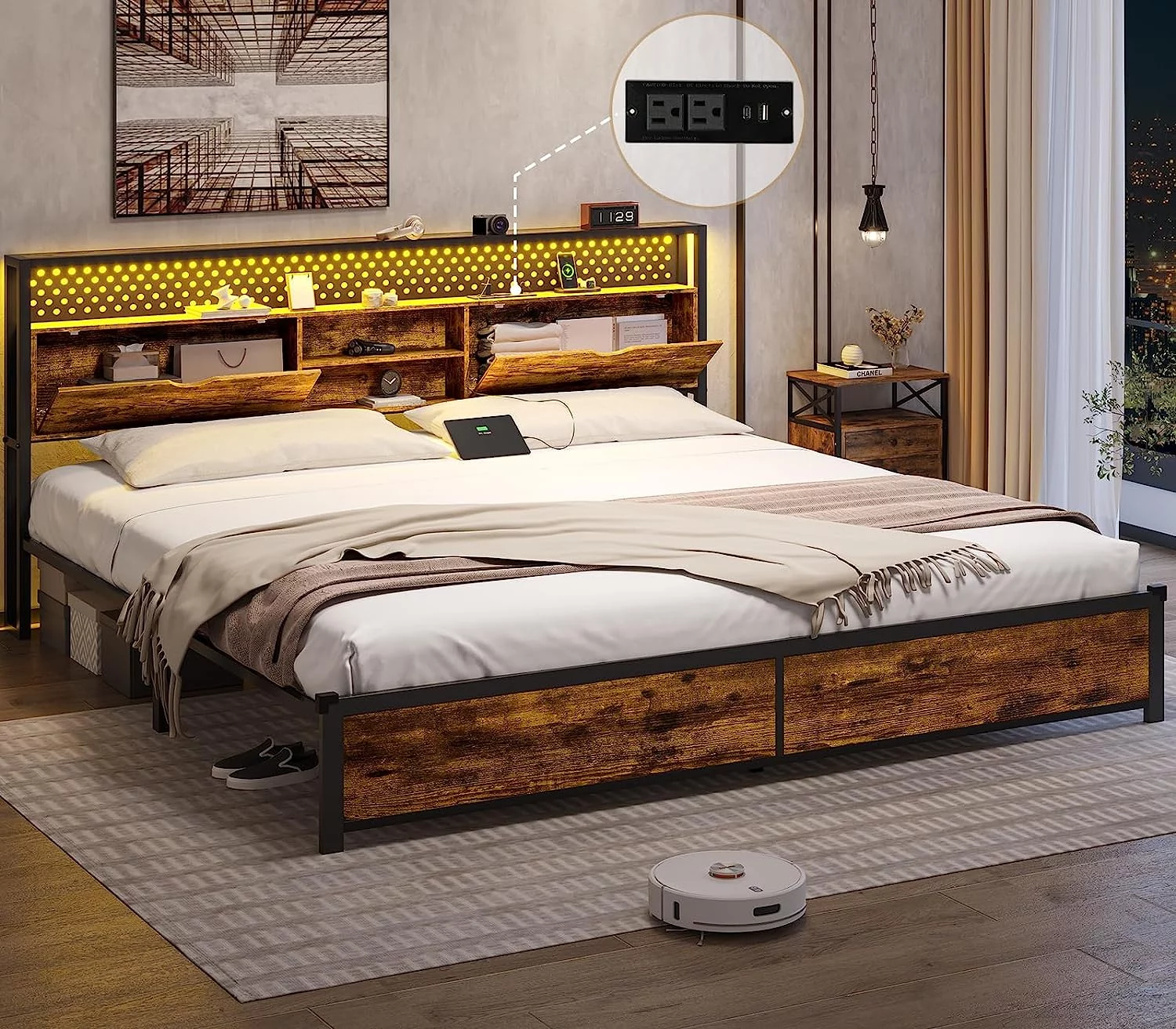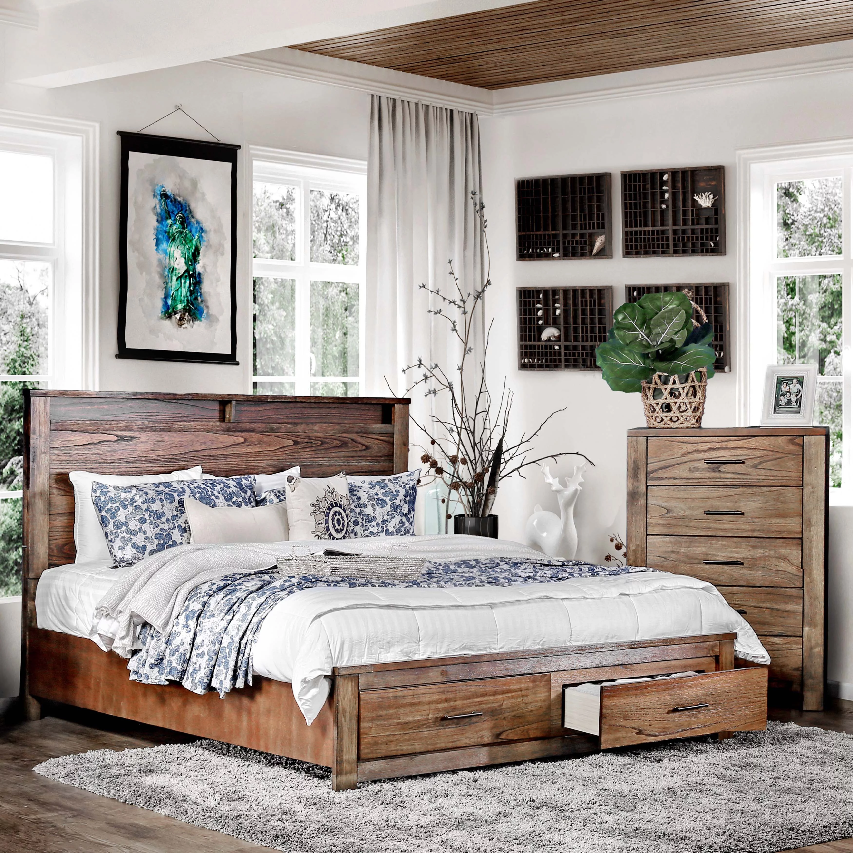 Carbon Loft Llewella Rustic Antique Oak Queen Wood 2-Piece Storage Platform Bed Set by