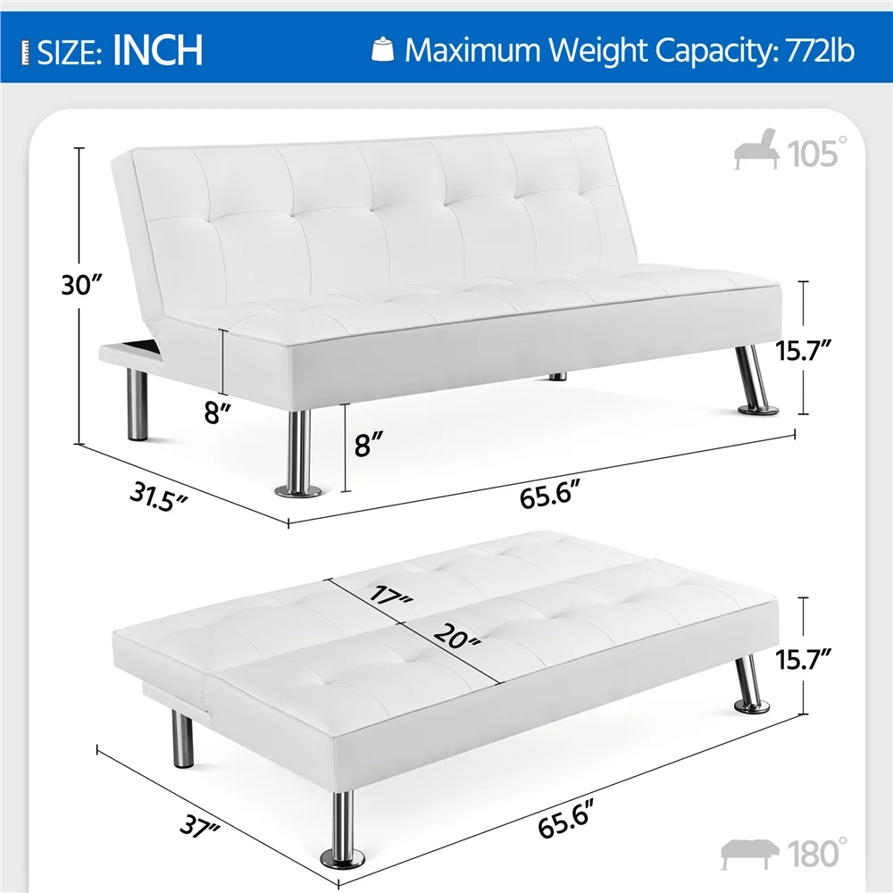 BSHTI 65.7 inch Futon Sleeper Sofa Bed, Tufted Backrest Sleeper Sofa Bed with Pillow Top Armrest
