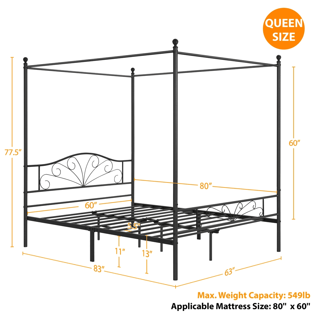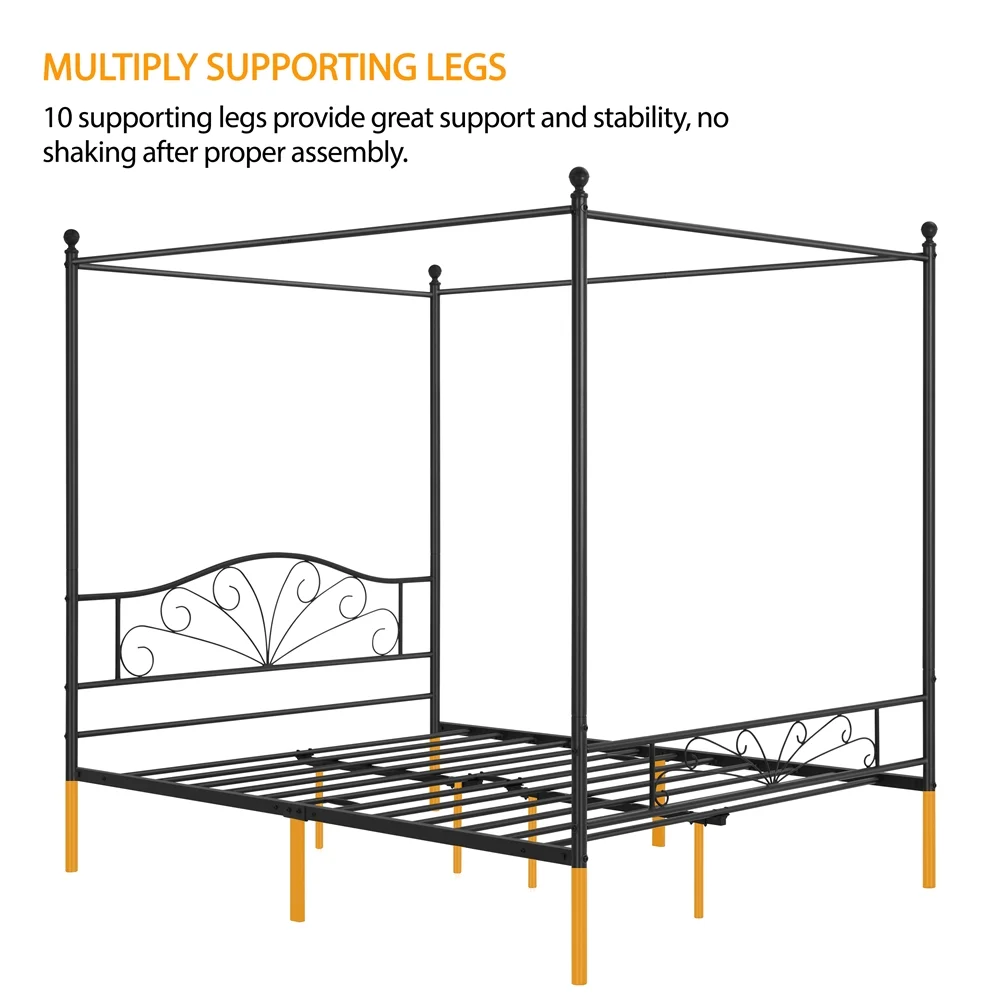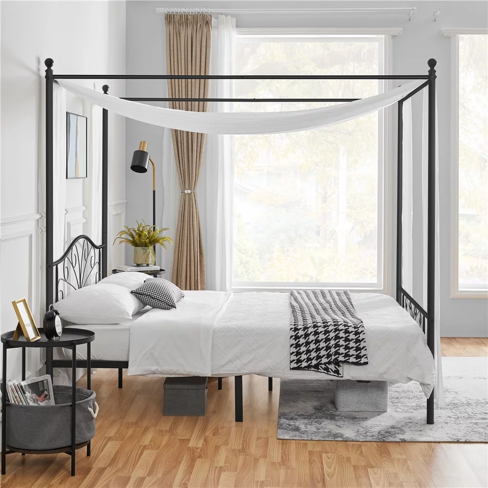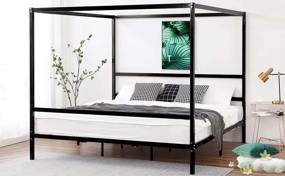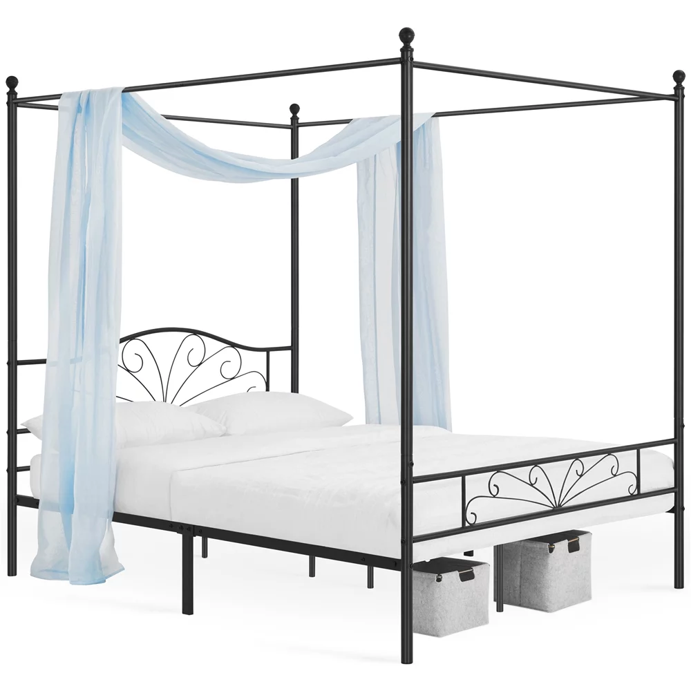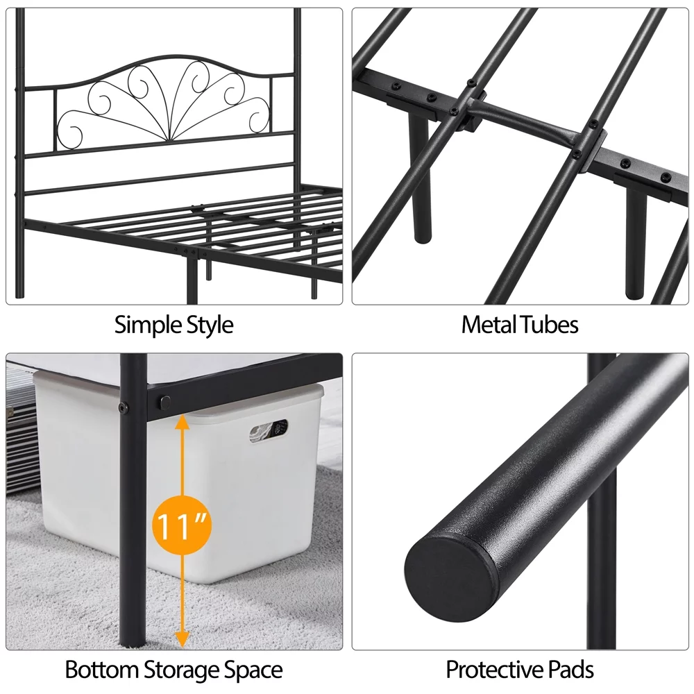 Topeakmart Four-poster Metal Canopy Platform Bed with Arched Headboard and Footboard, Queen Size, Black