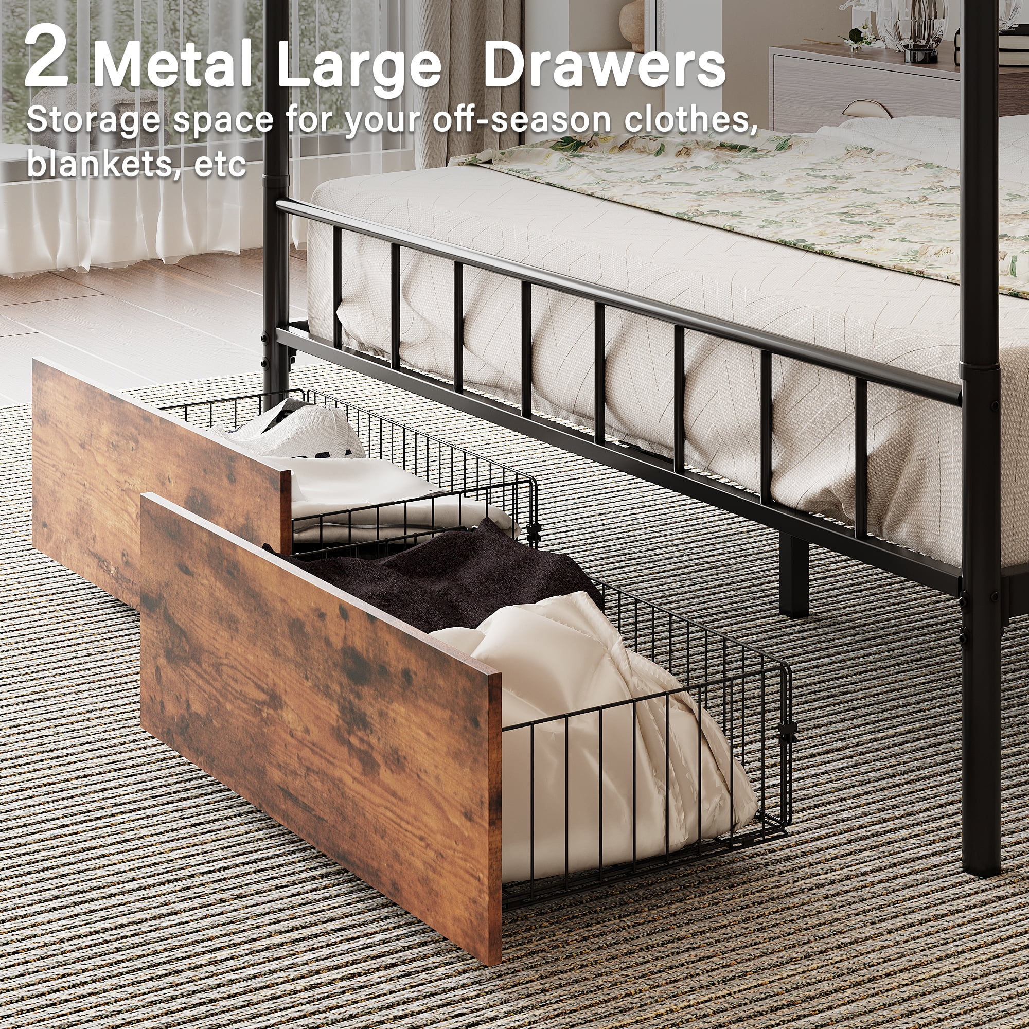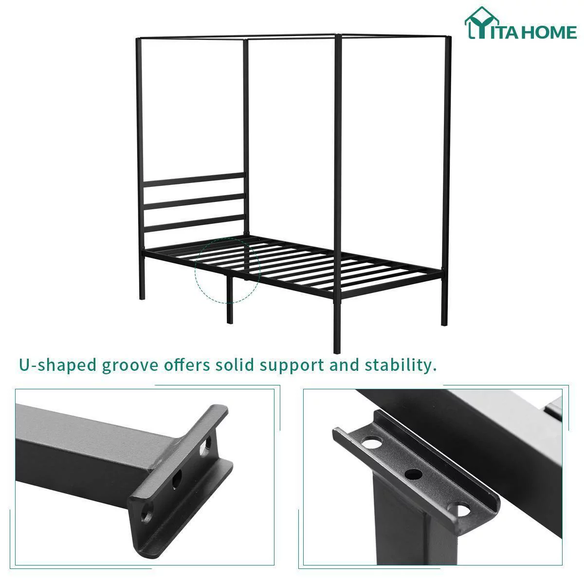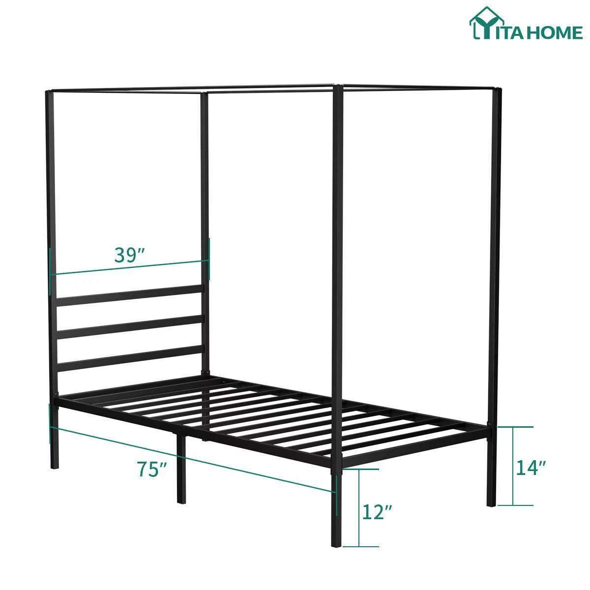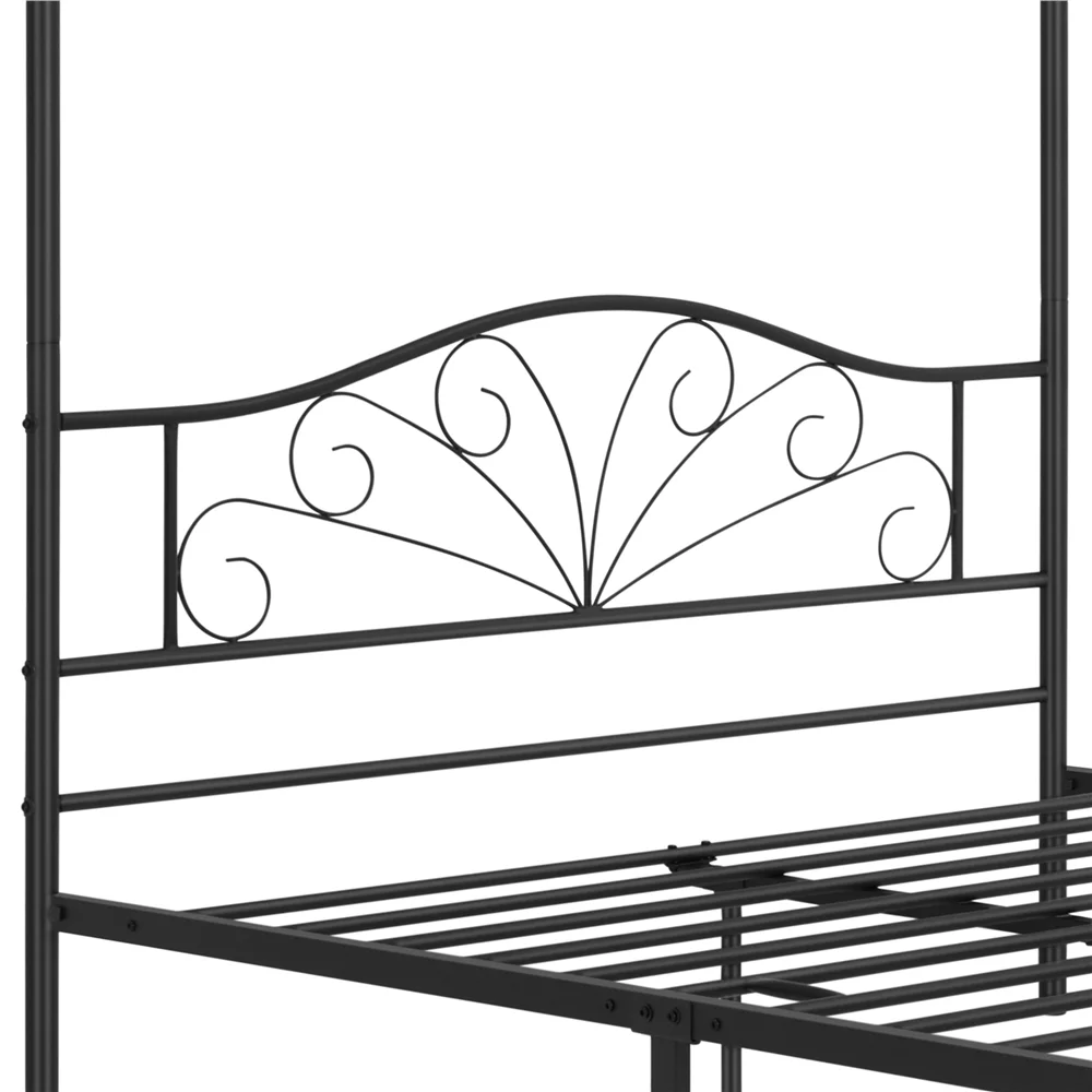 Topeakmart Four-poster Metal Canopy Platform Bed with Arched Headboard and Footboard, Queen Size, Black