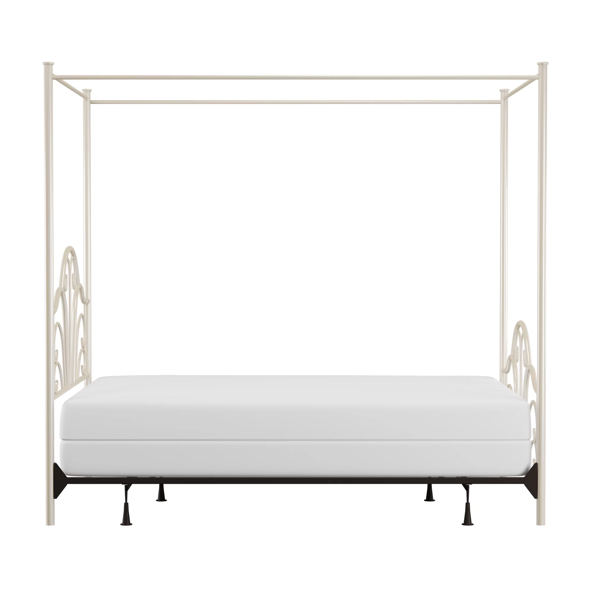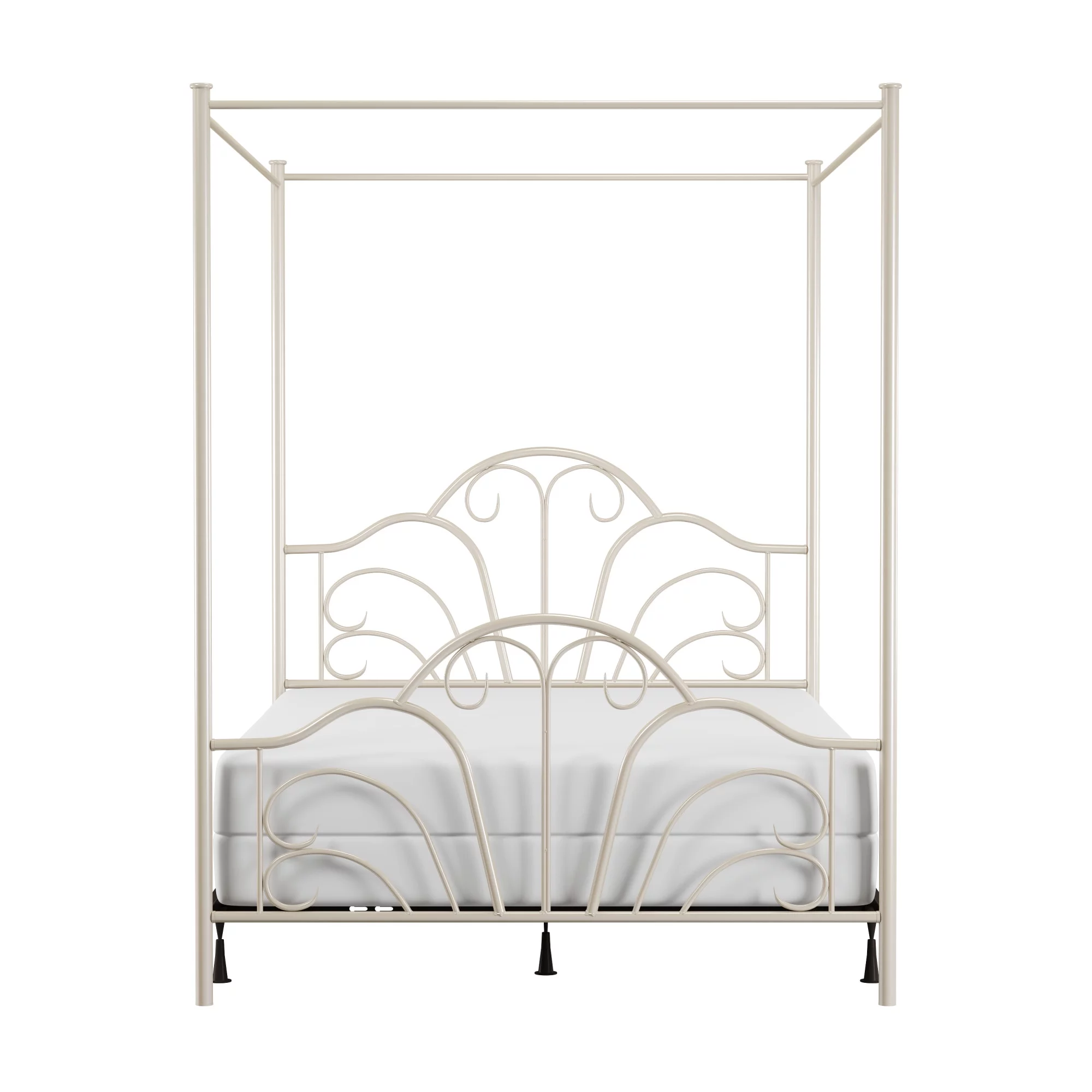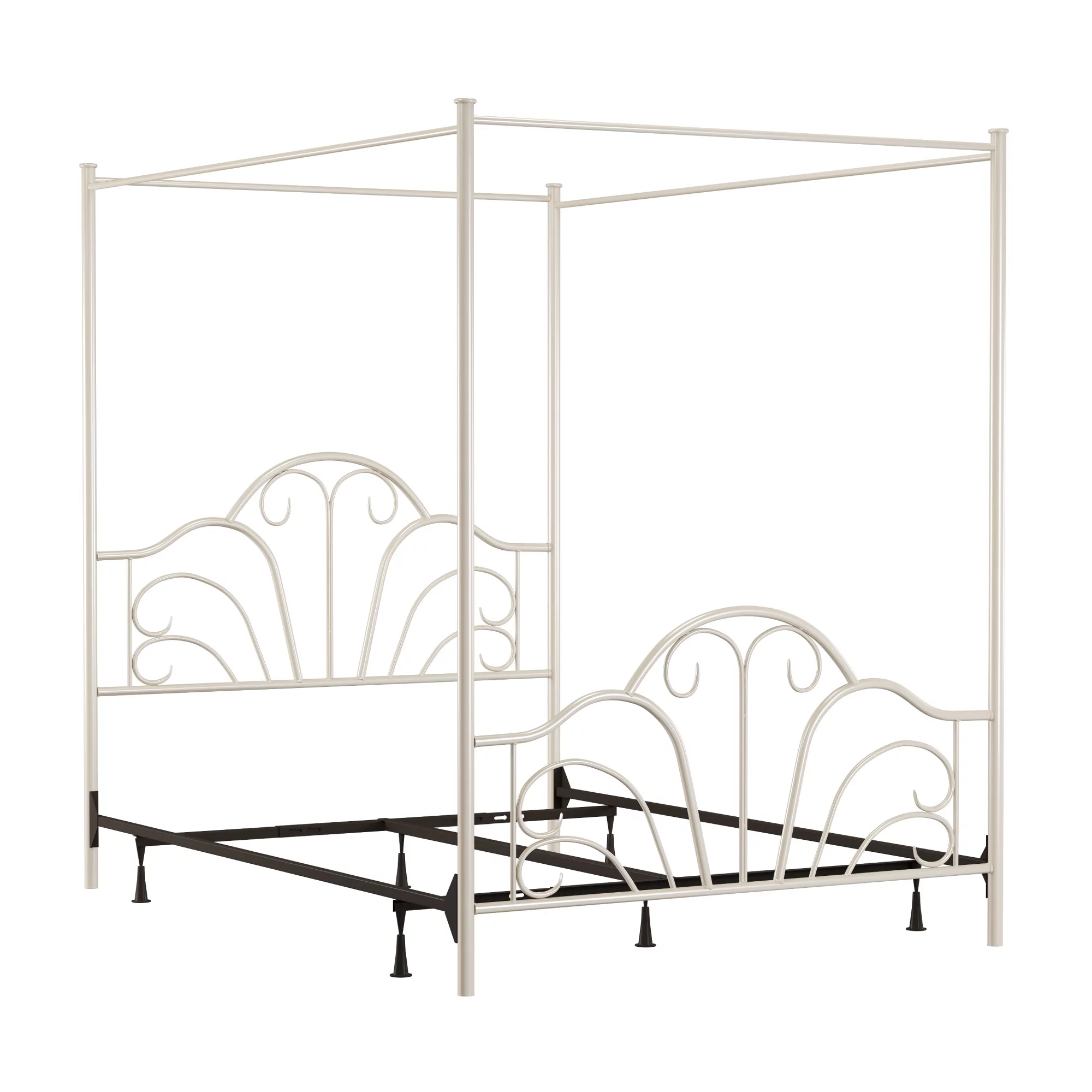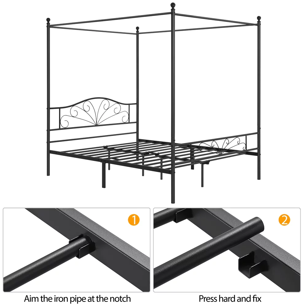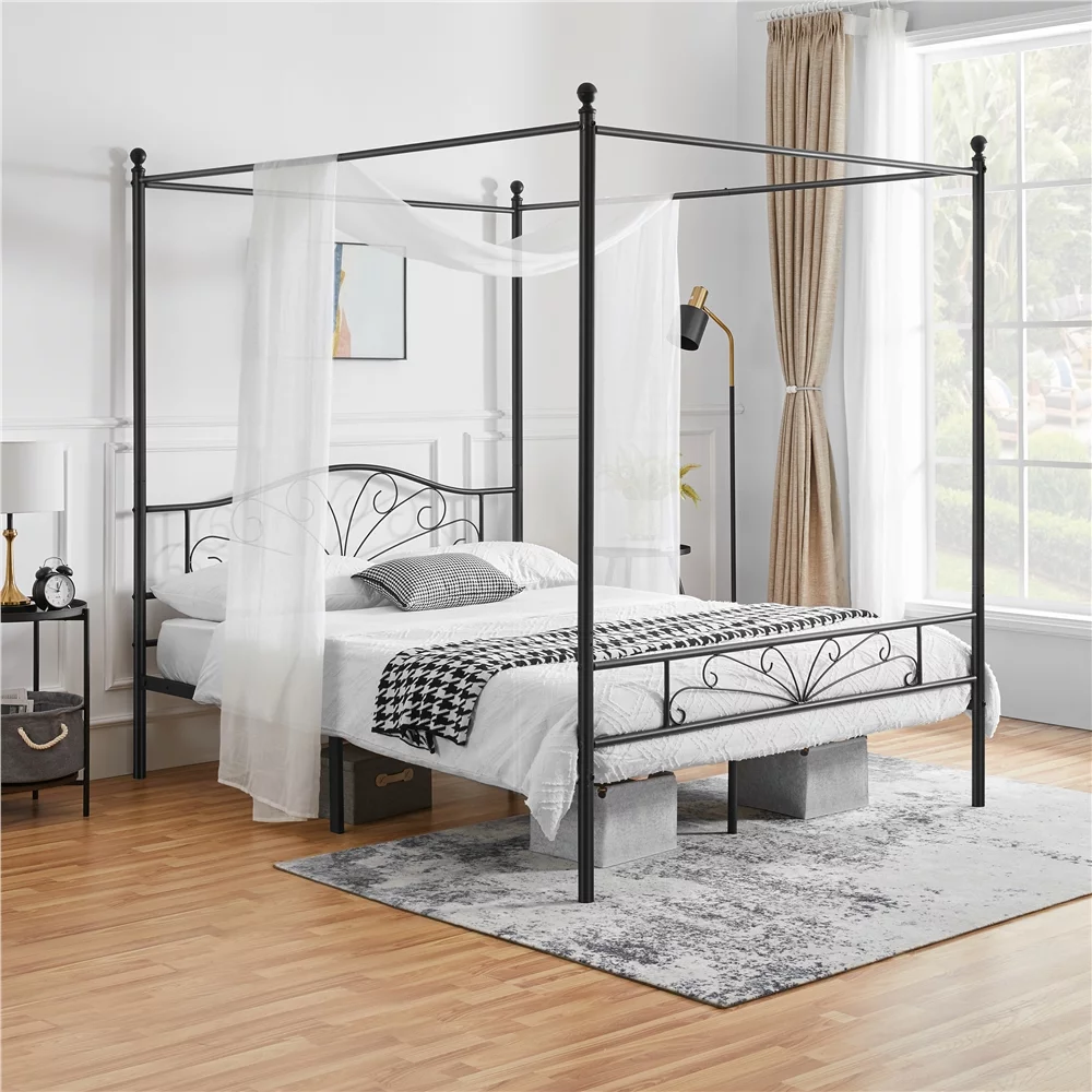 Yaheetech Four-poster Metal Canopy Bed Frame with Graceful Scroll,Full,White