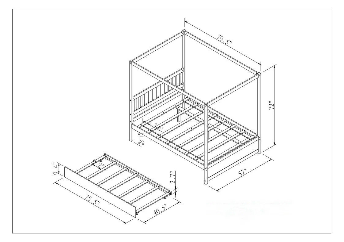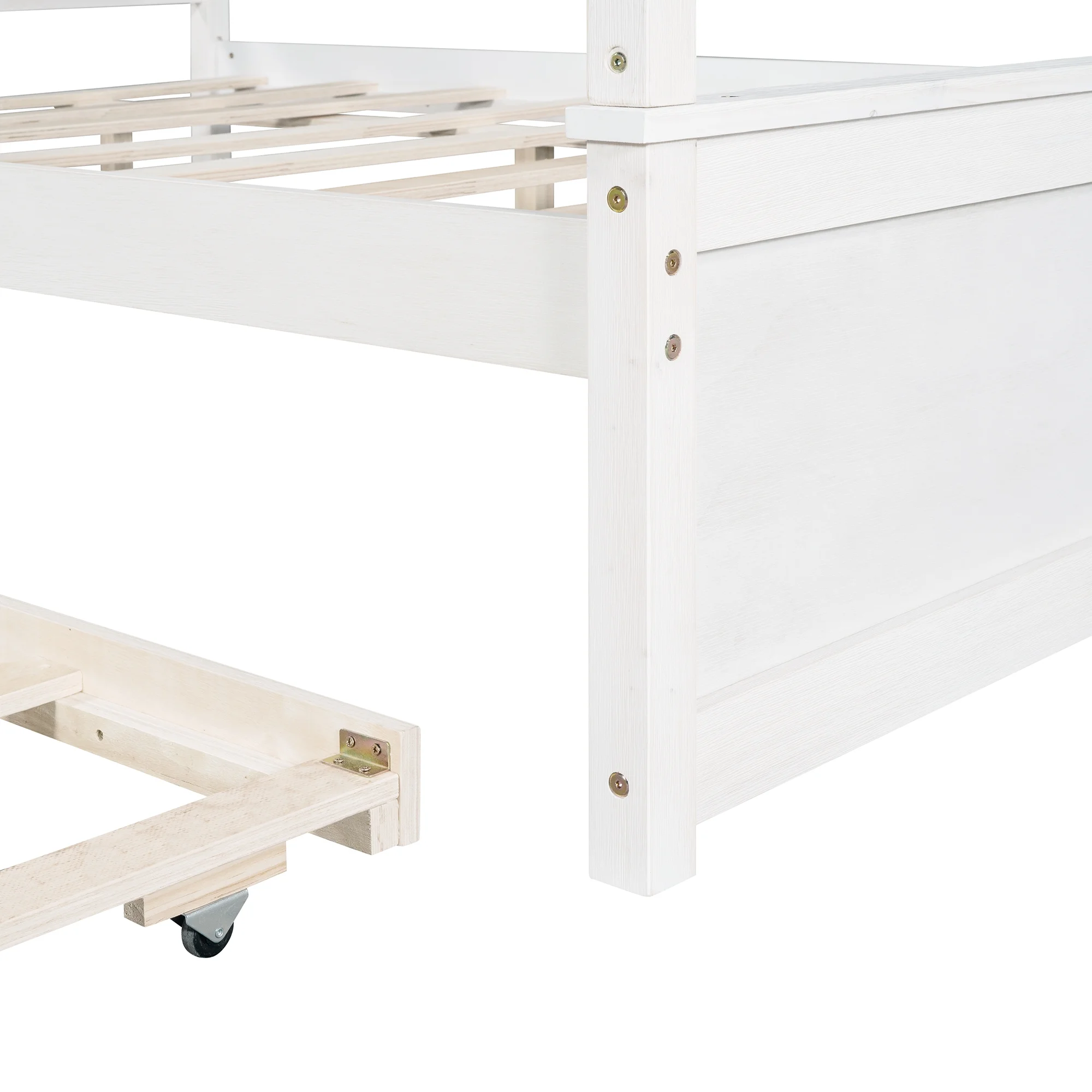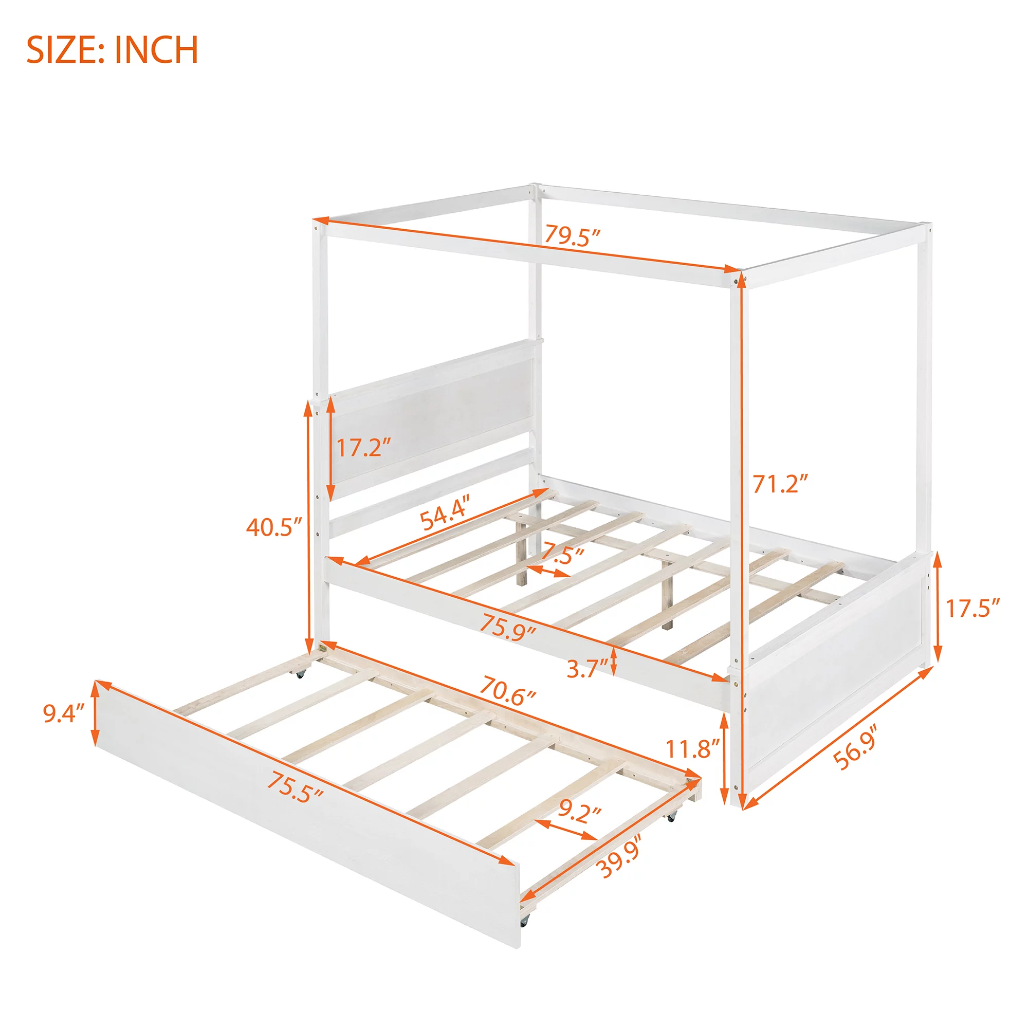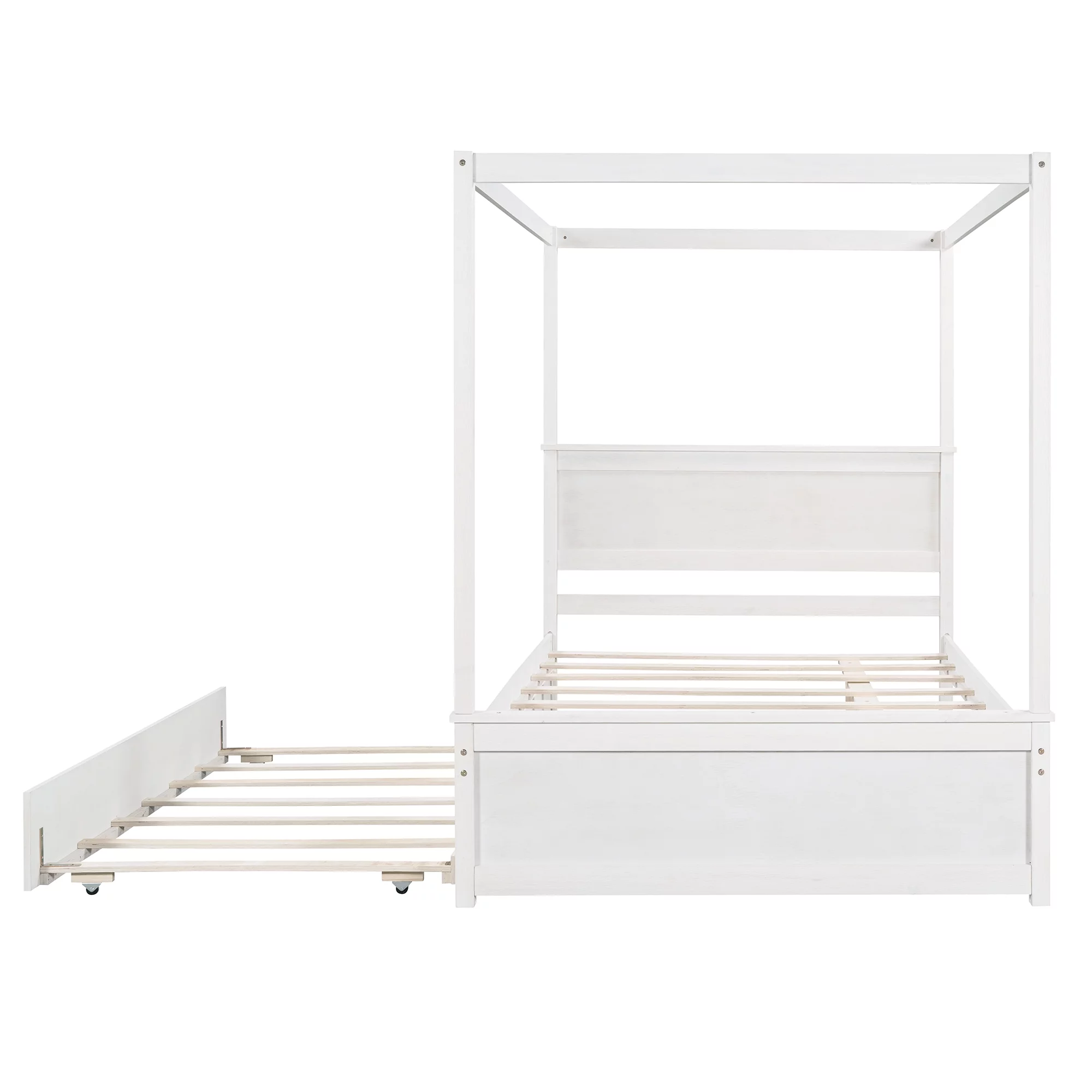 Gewnee Wood Canopy Bed ,Full Size Platform Bed Frame with Trundle and Headboard,White