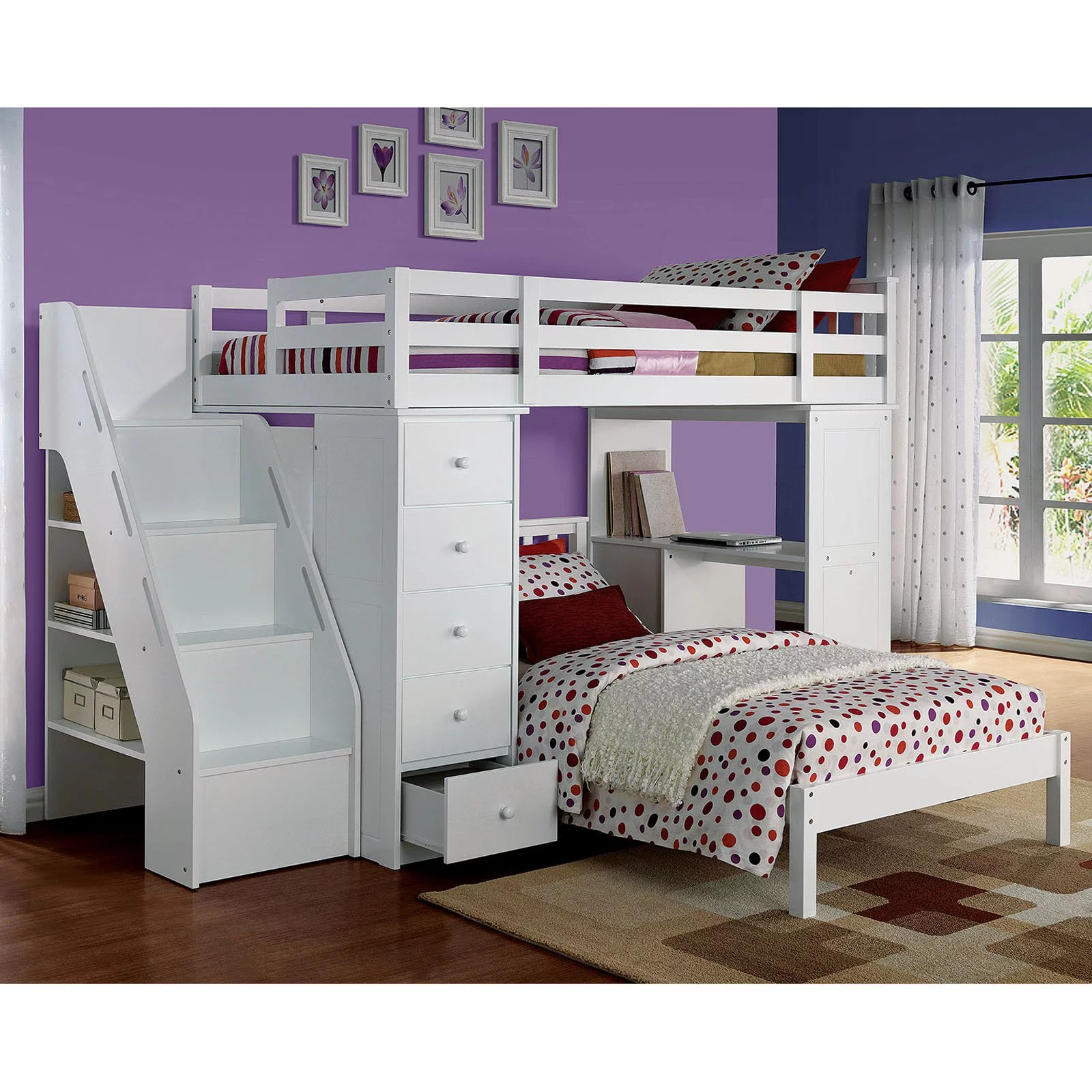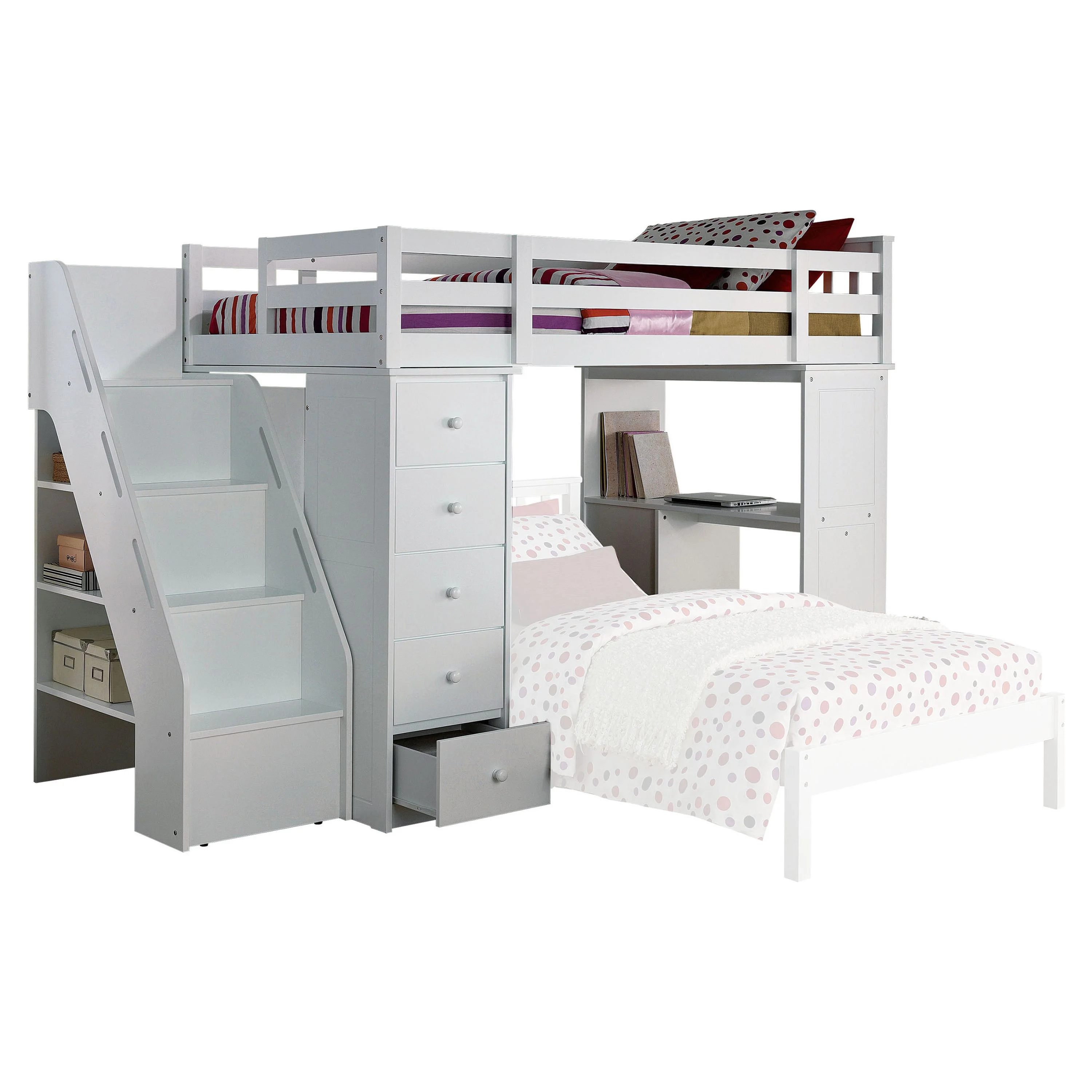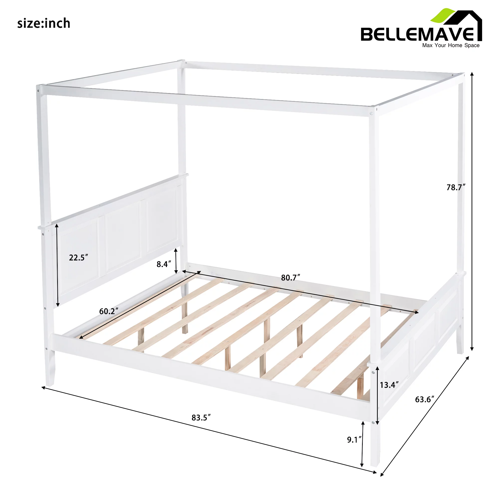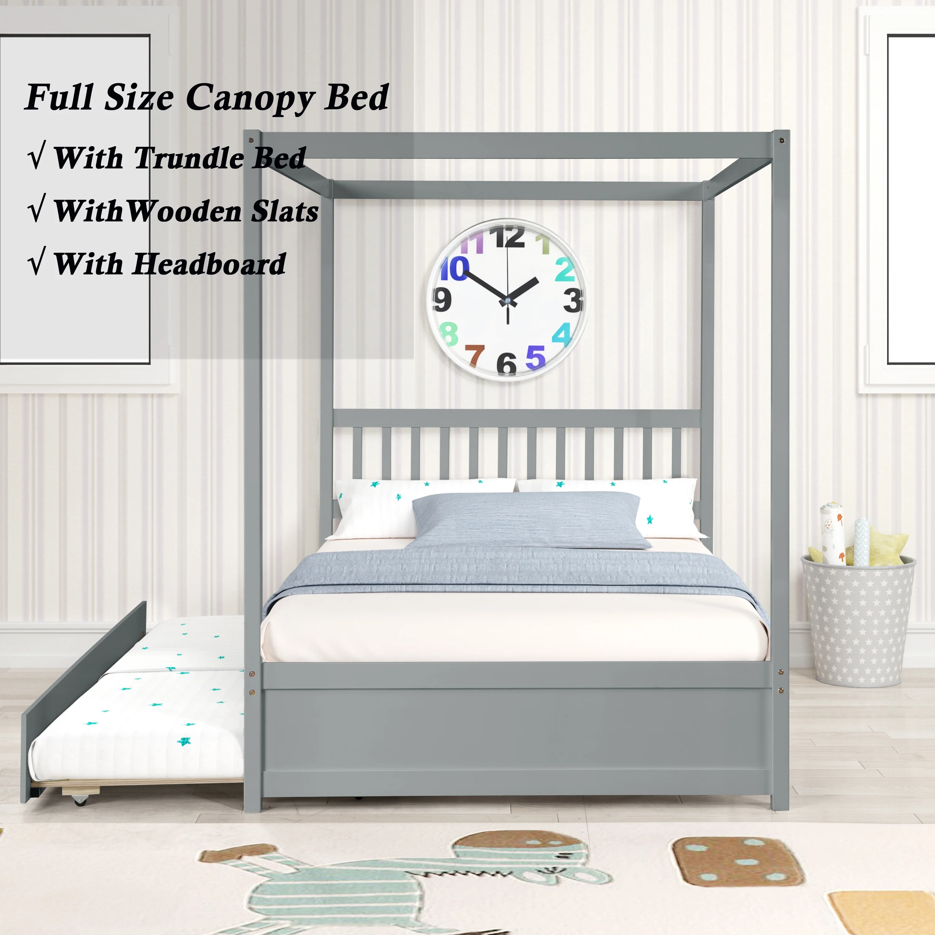 Gewnee Wood Canopy Bed ,Full Size Platform Bed Frame with Trundle and Headboard,White