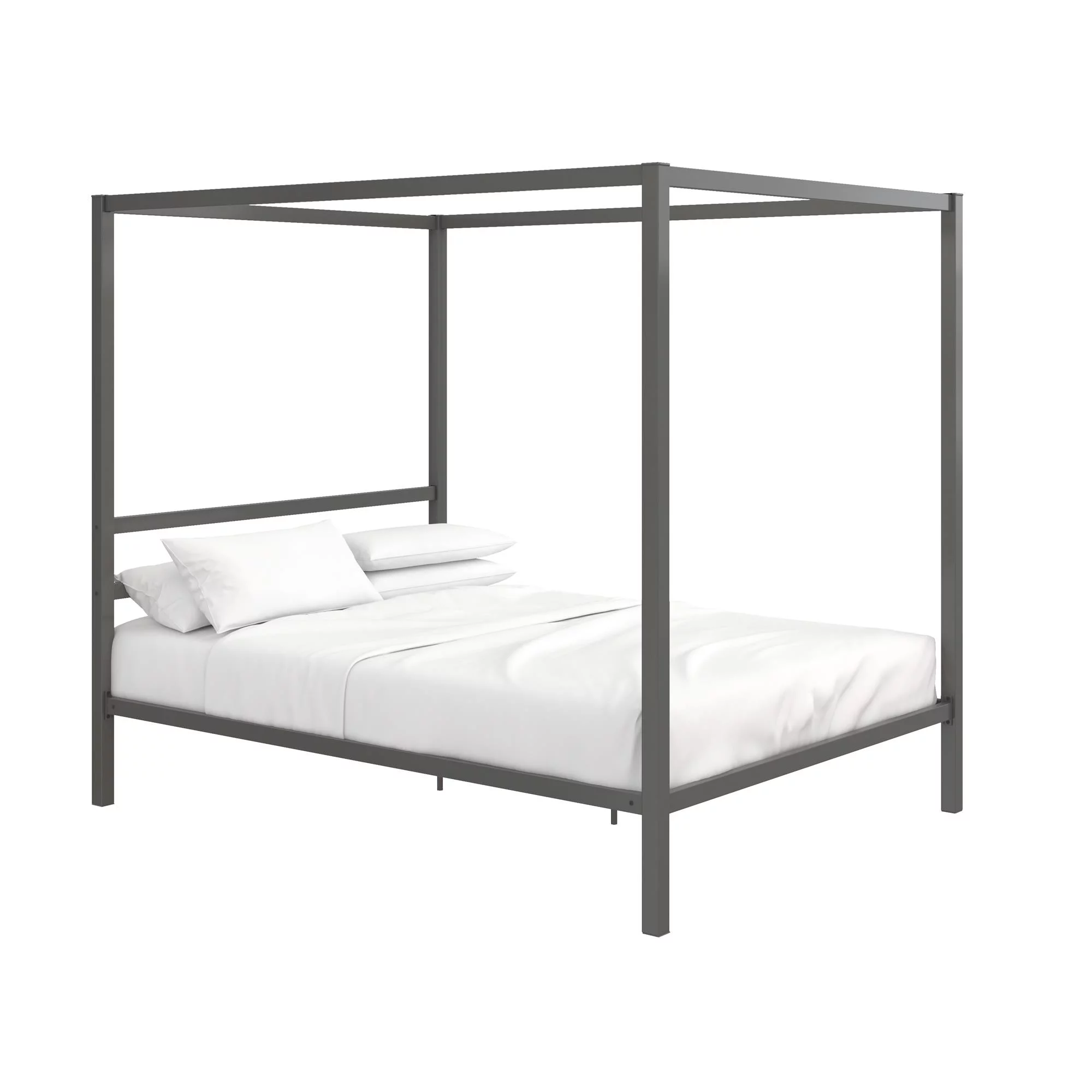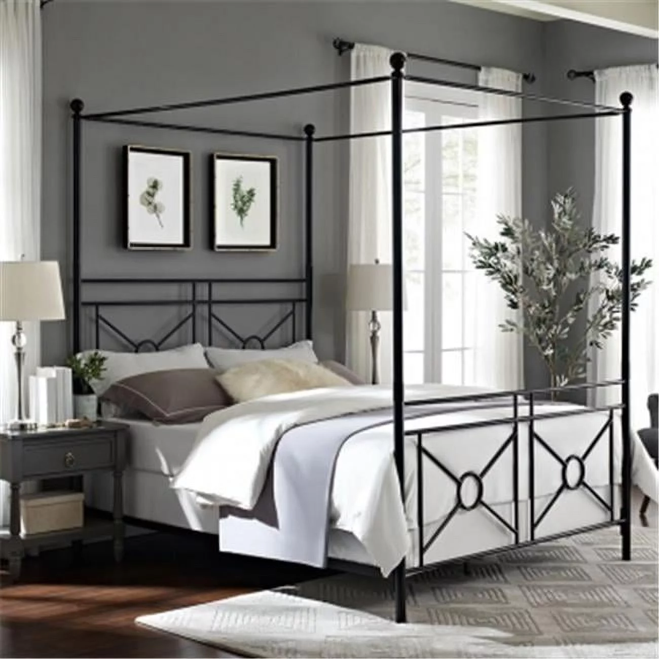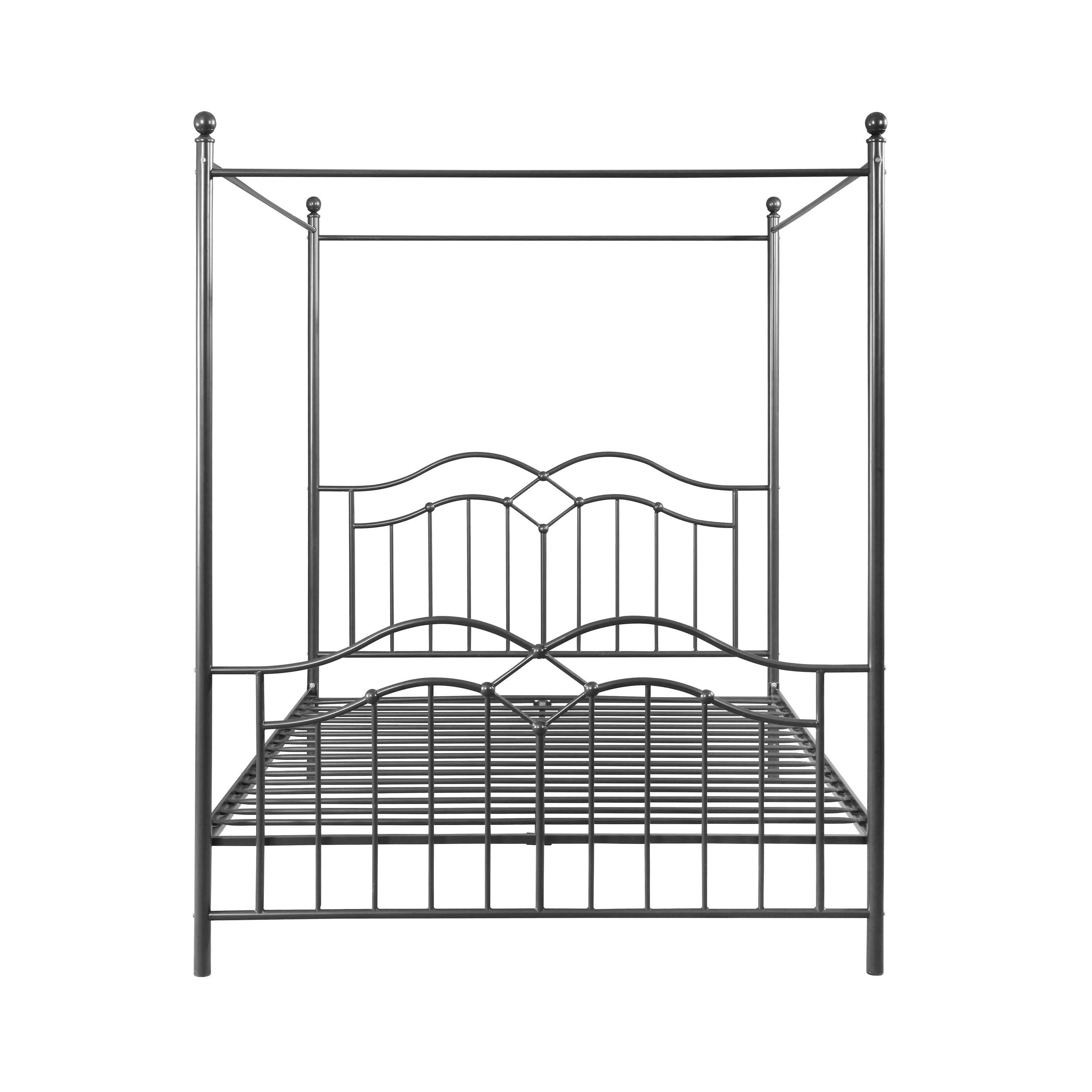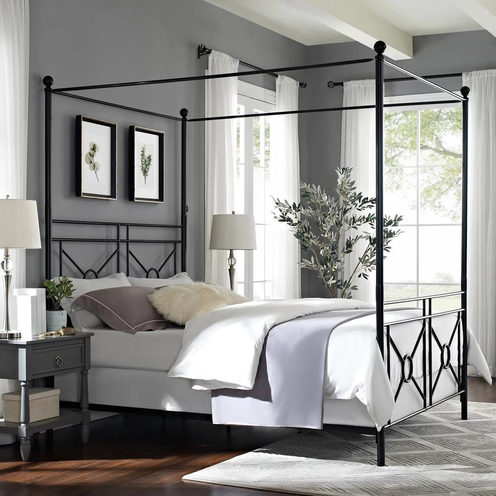 Noble House Selene Traditional Iron Canopy Queen Bed Frame, Charcoal Gray