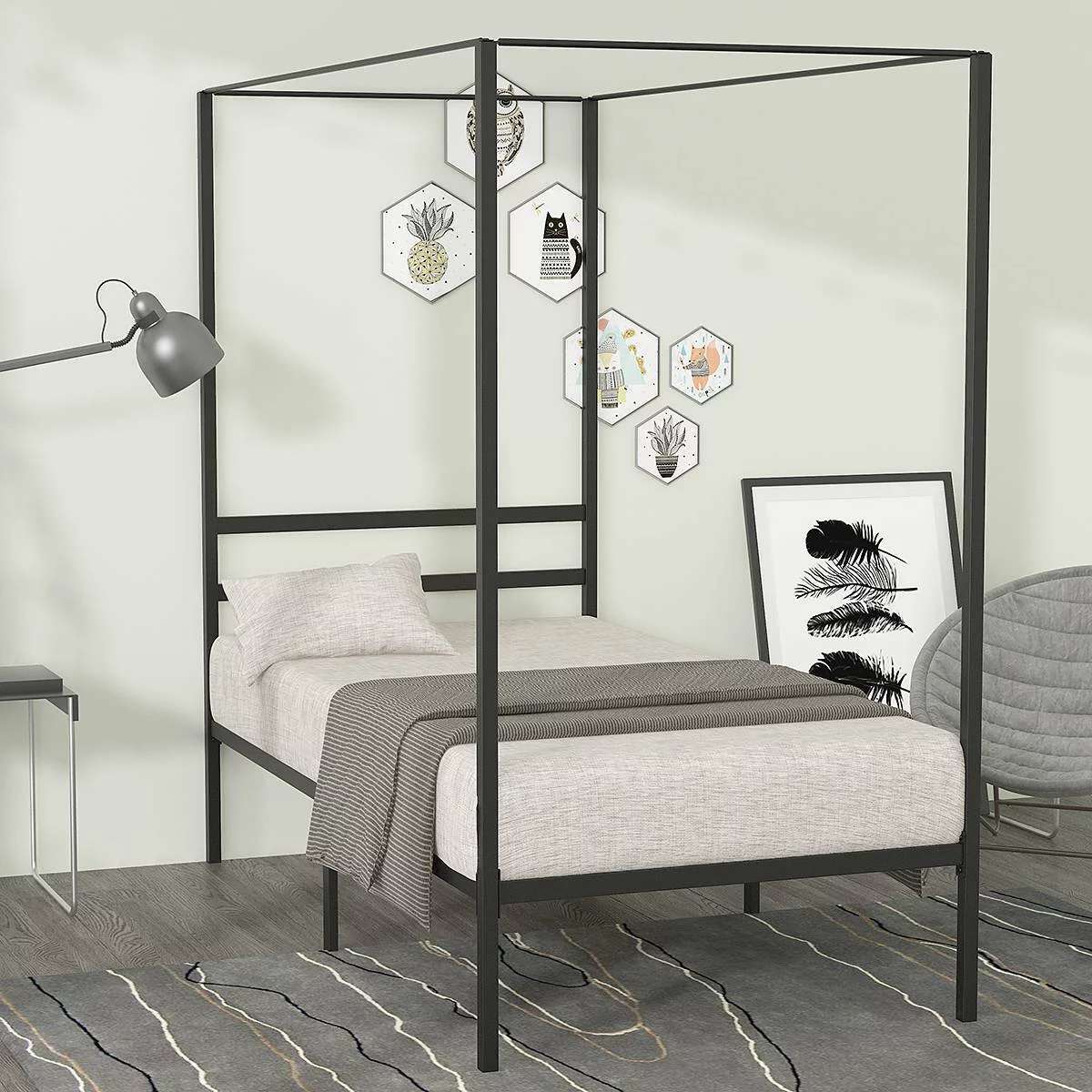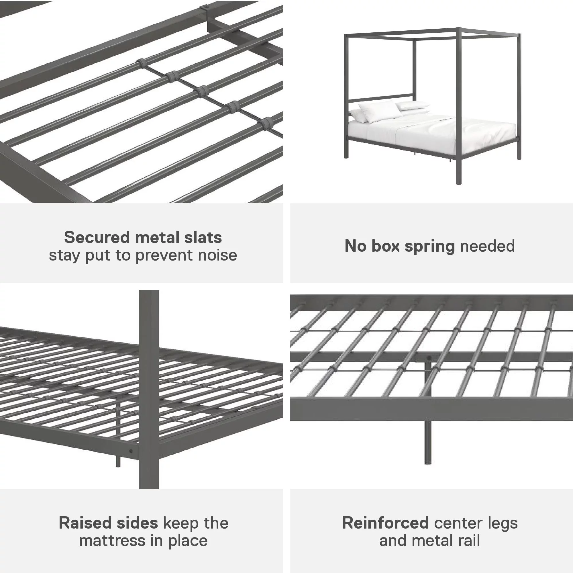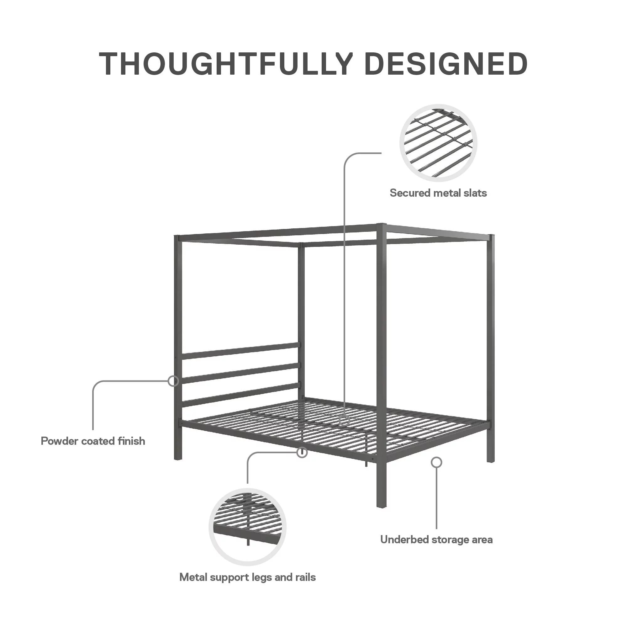 Noble House Selene Traditional Iron Canopy Queen Bed Frame, Charcoal Gray