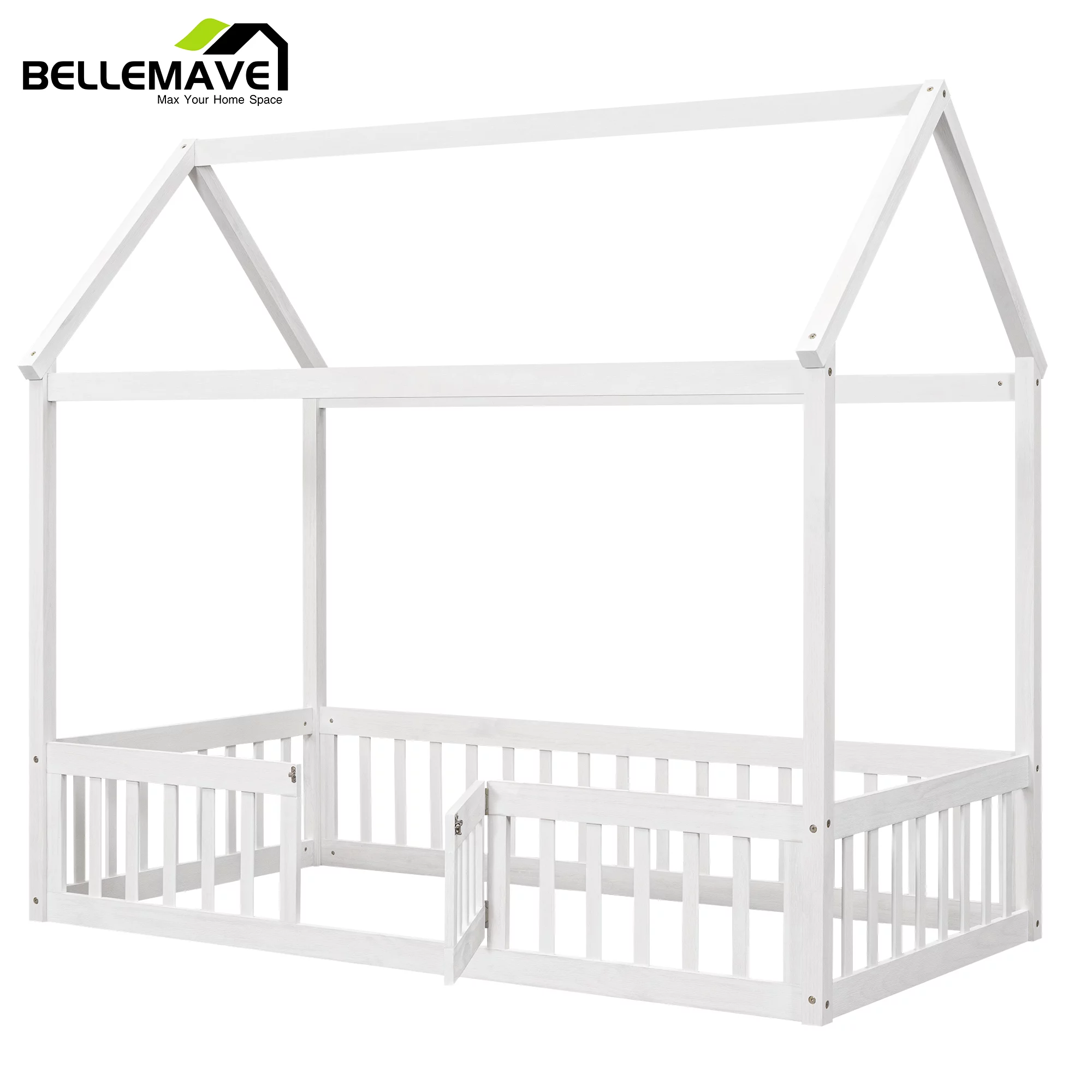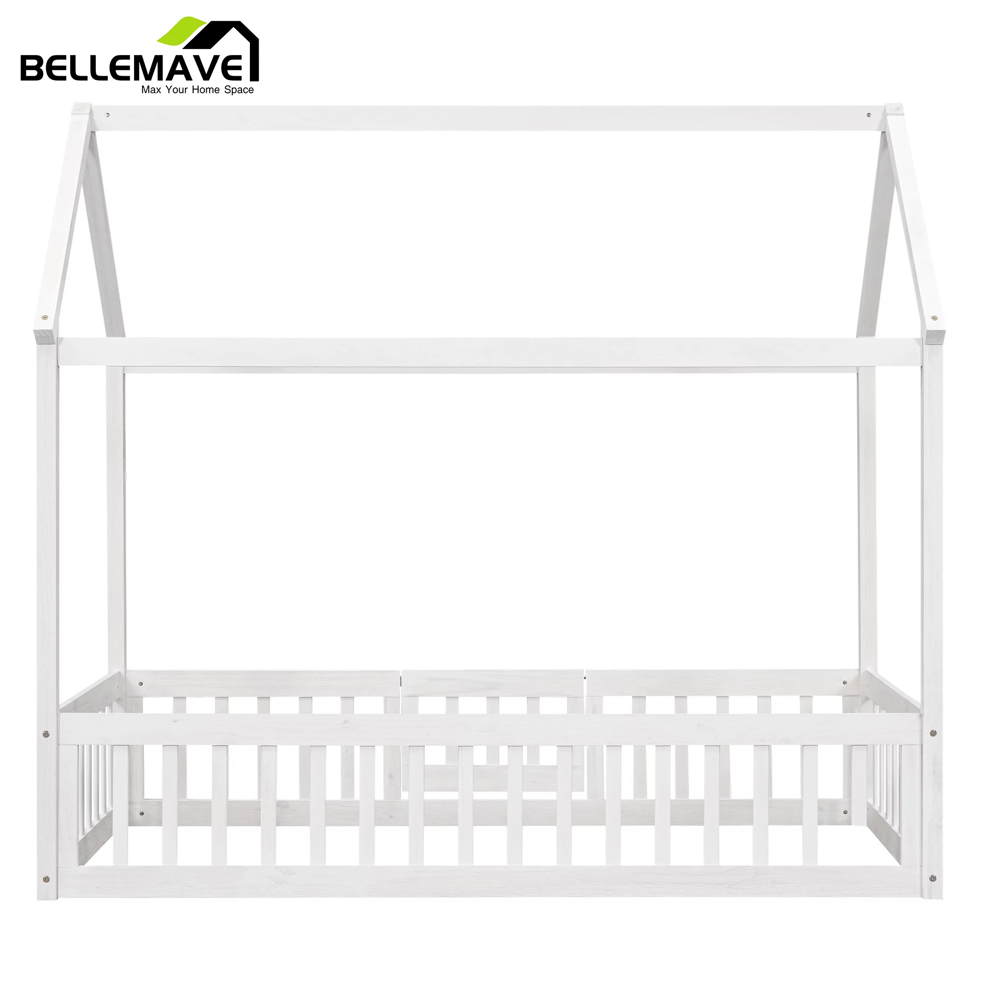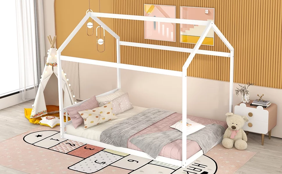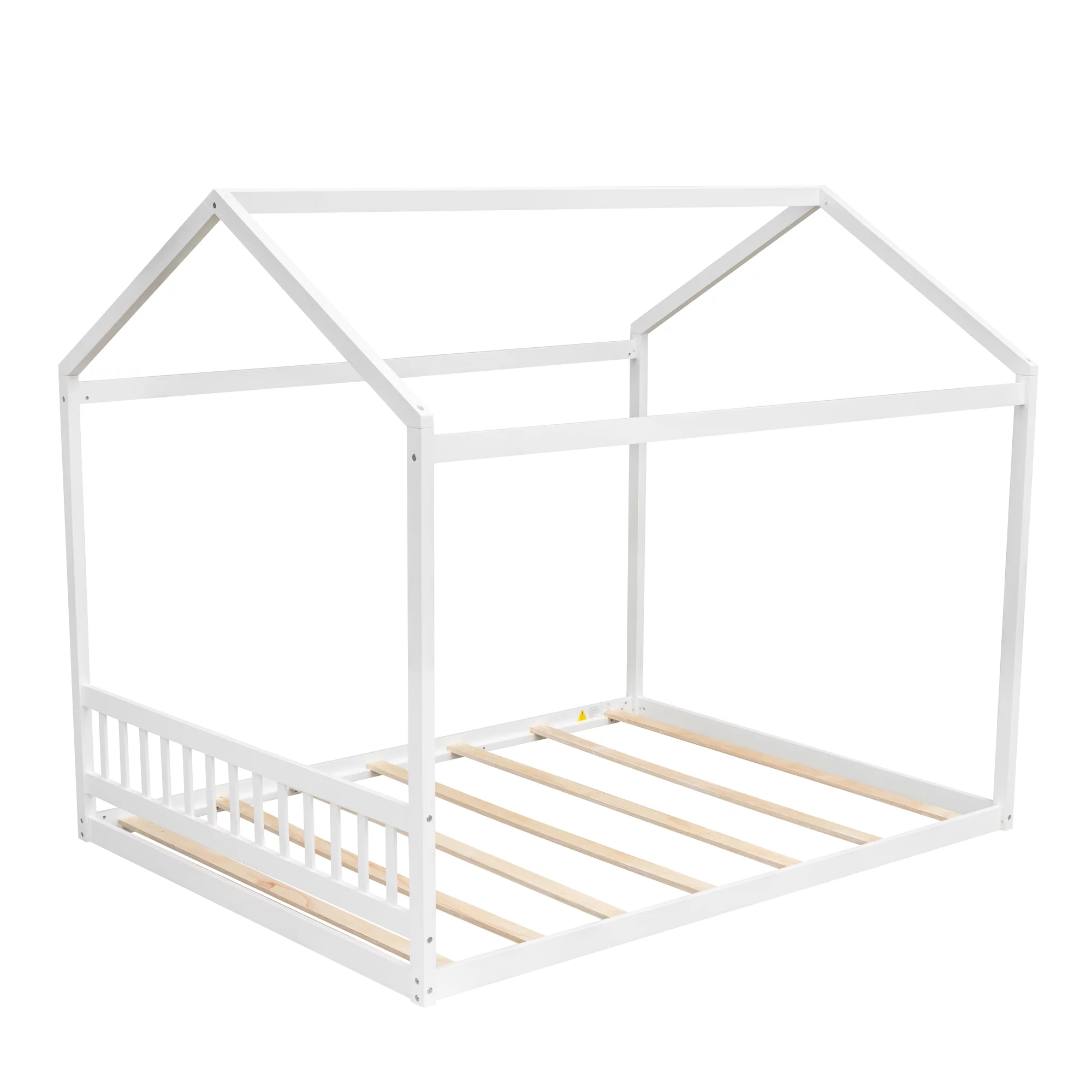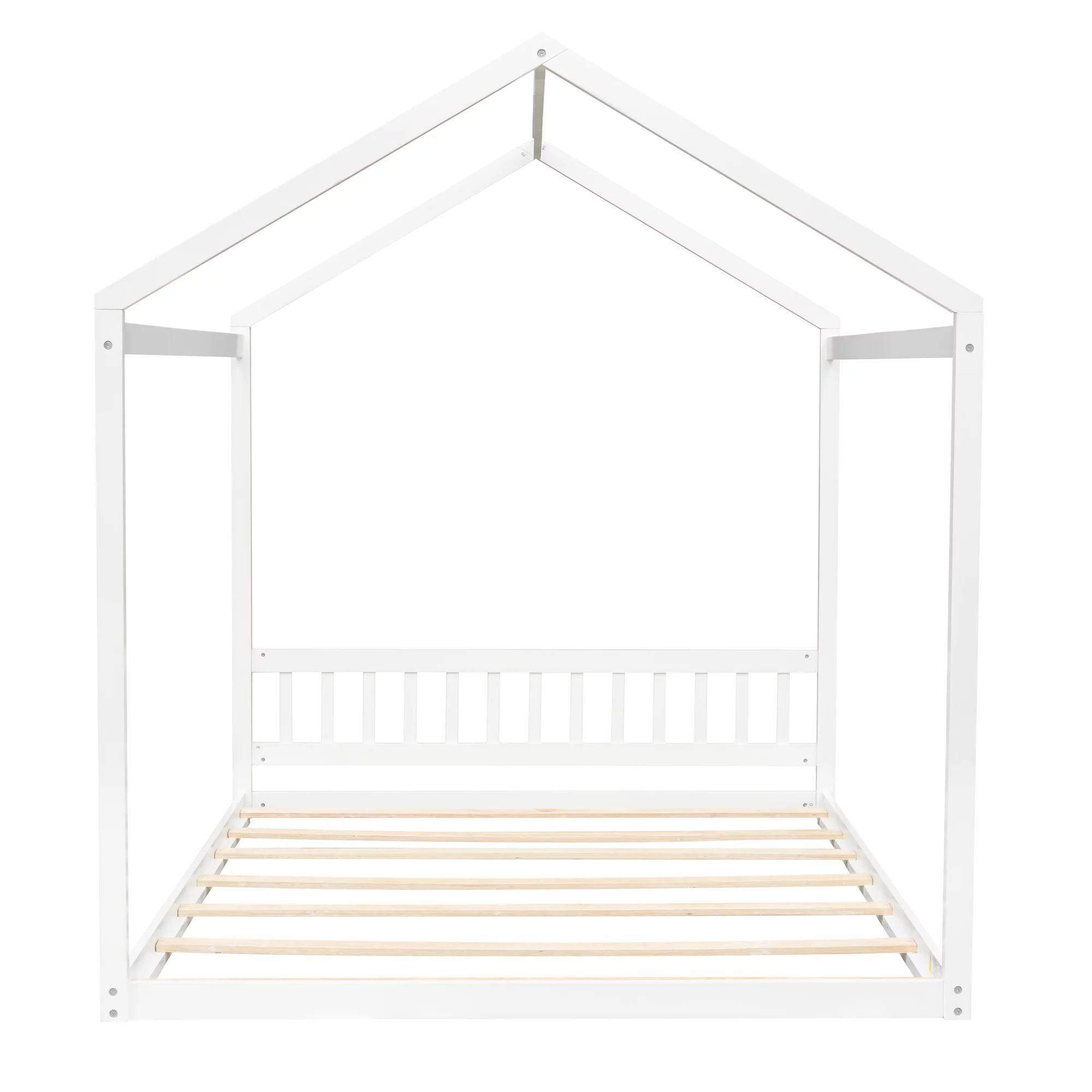Euroco Pine Wood Queen Size House Shaped Canopy Bed for Bedroom, House Platform Bed for Living Room, White