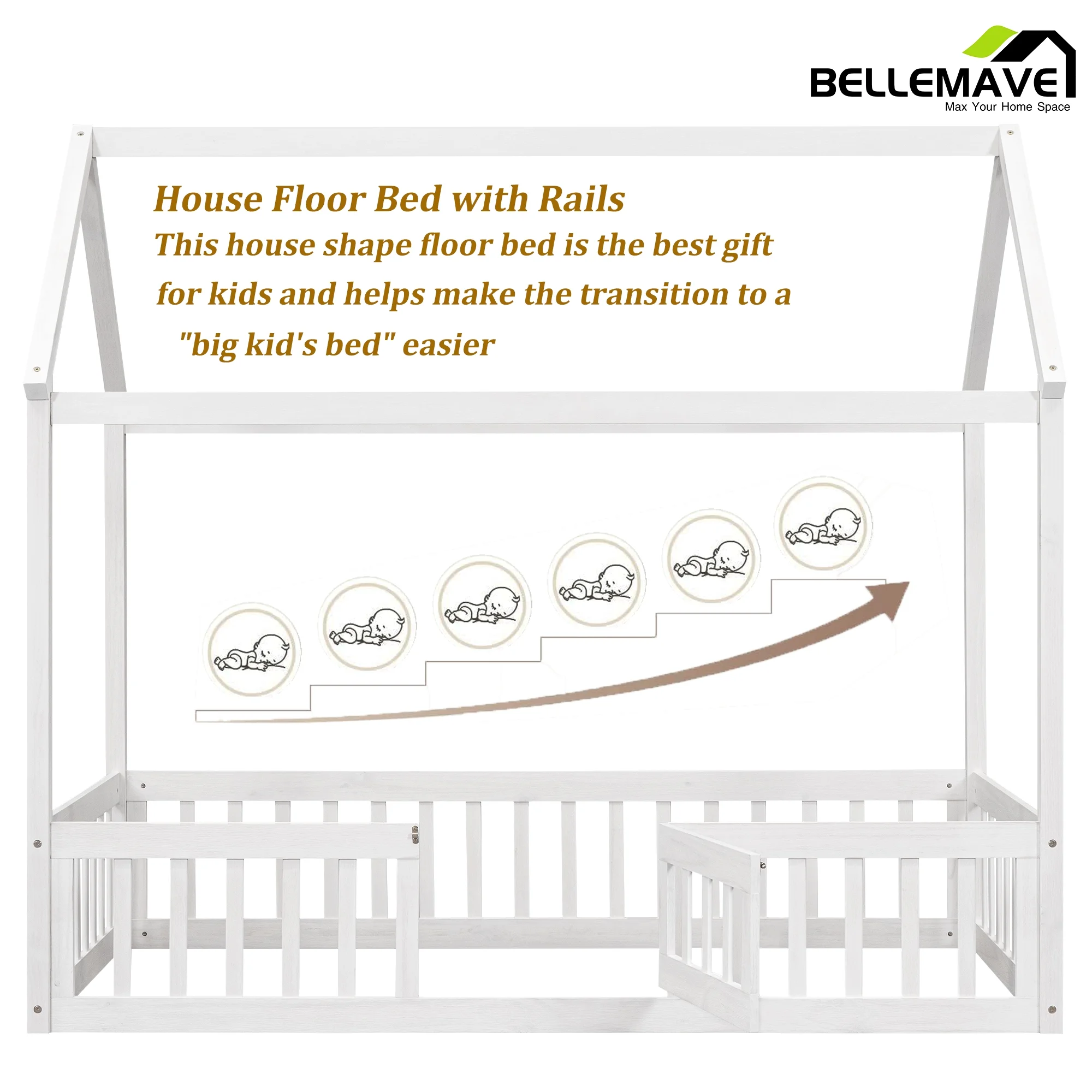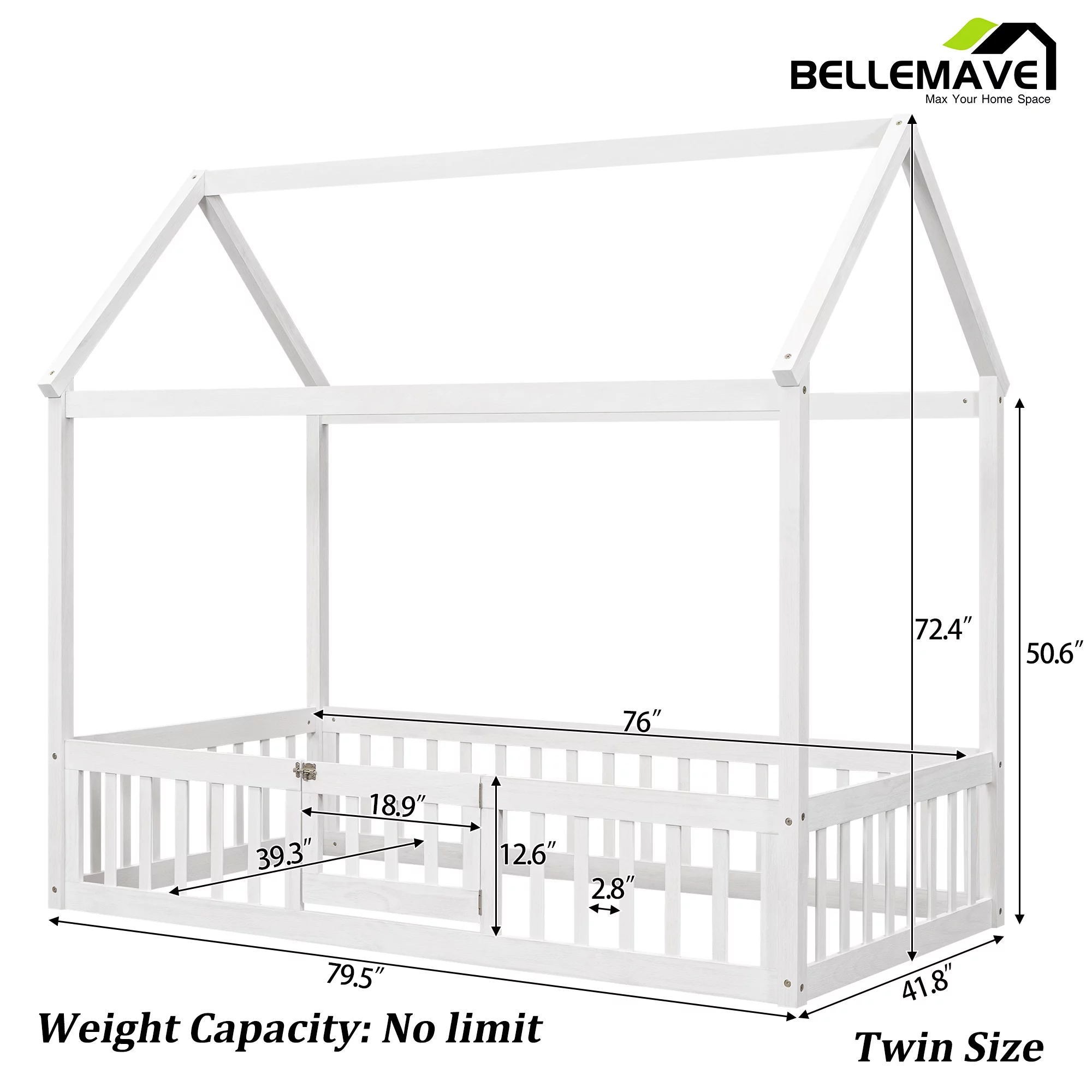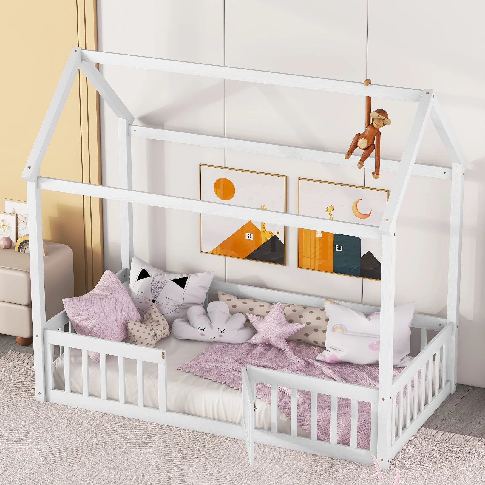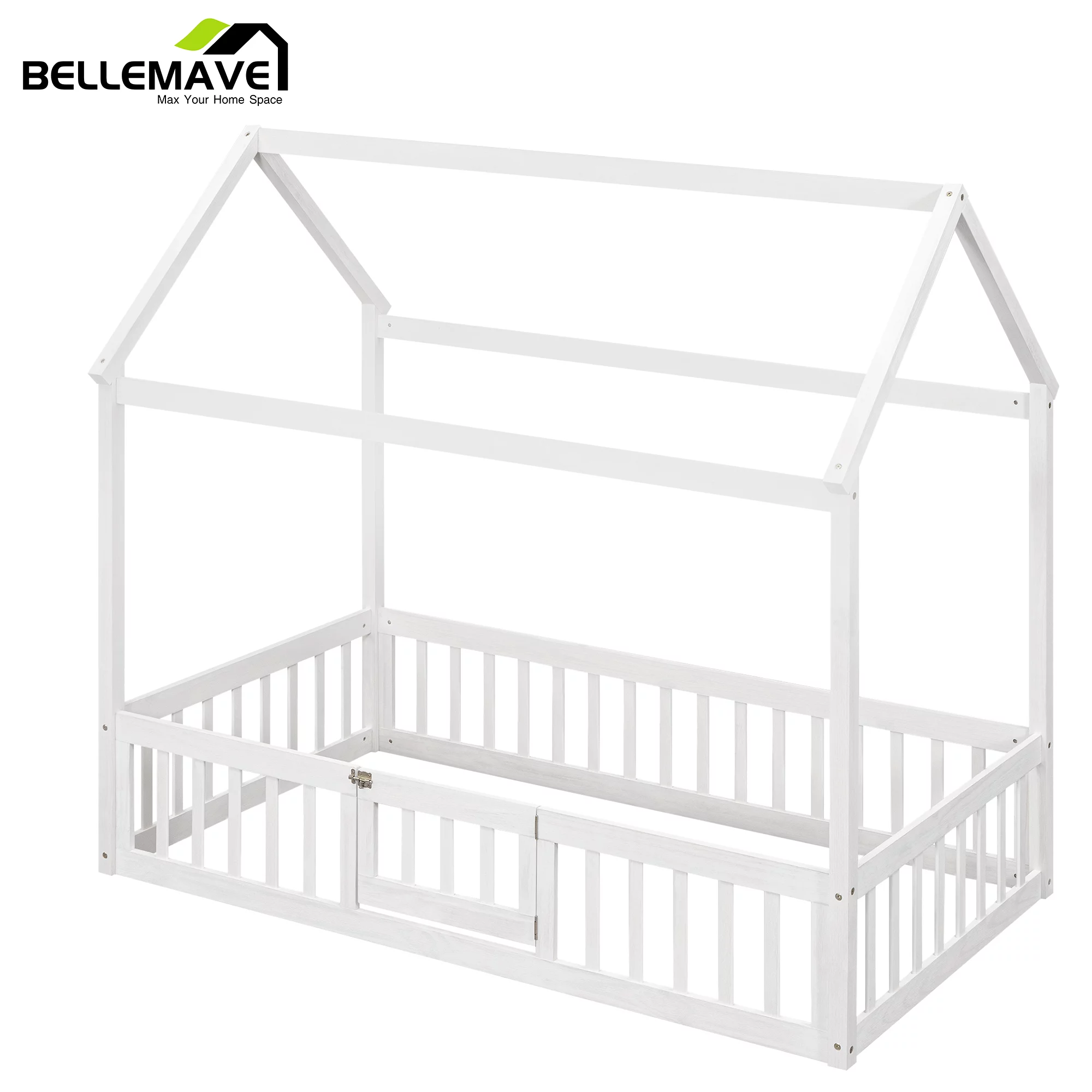 Euroco Pine Wood Queen Size House Shaped Canopy Bed for Bedroom, House Platform Bed for Living Room, White