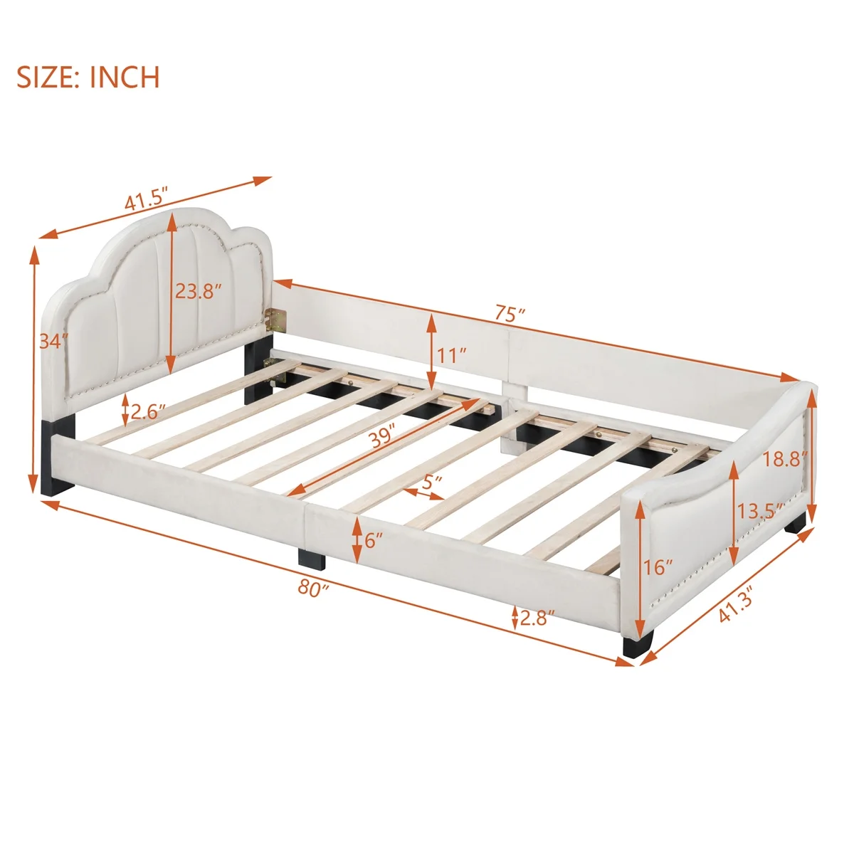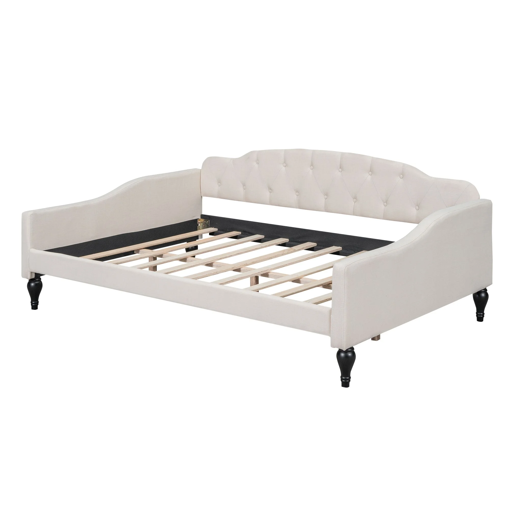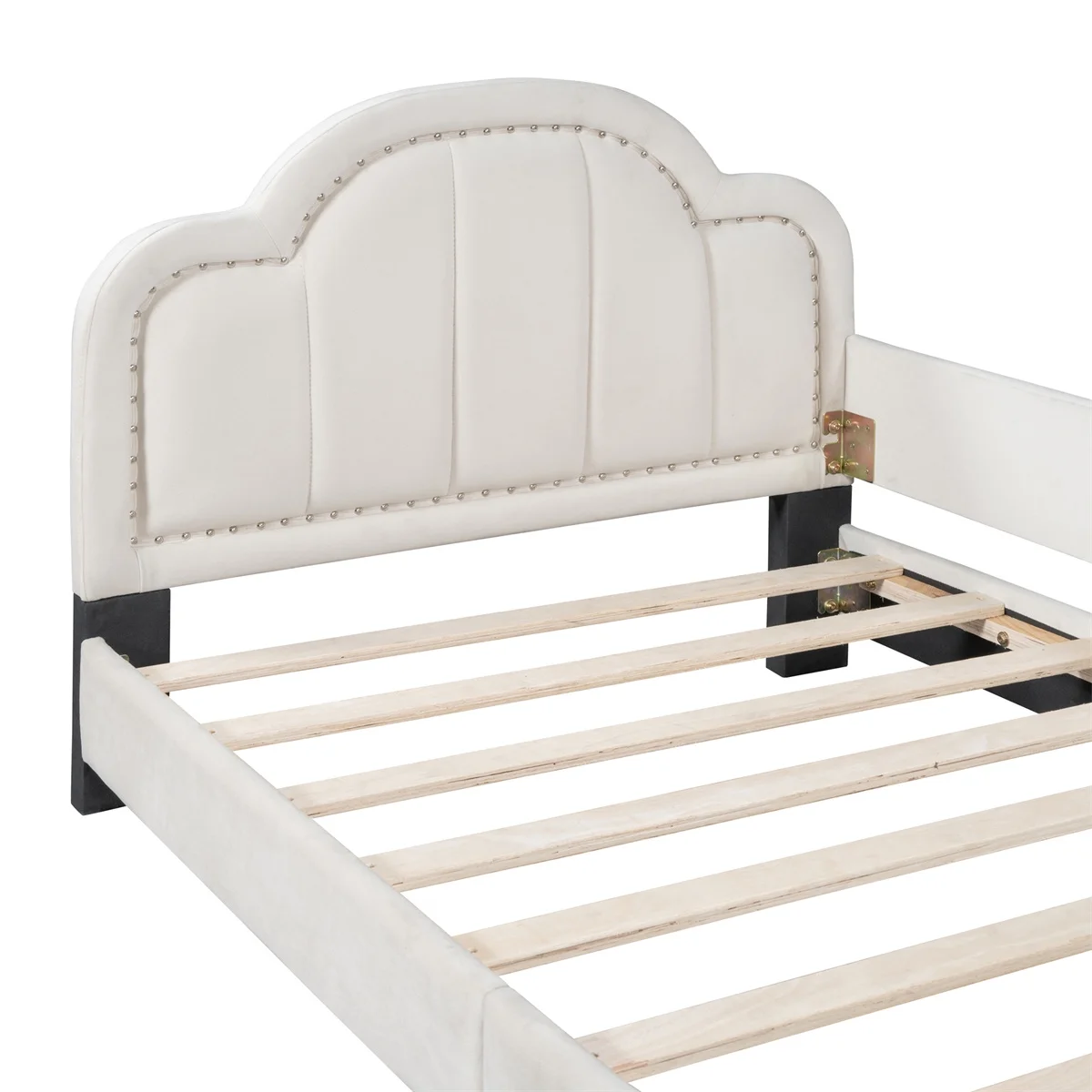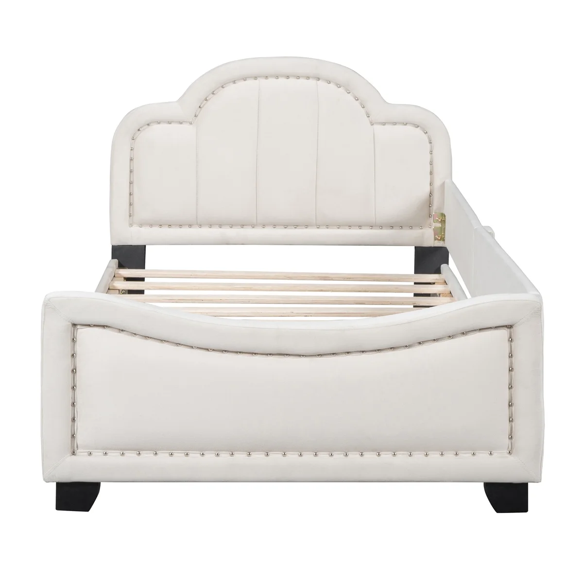Twin Size Upholstered Daybed with Headboard Elegant Copper Nail Design, Beige