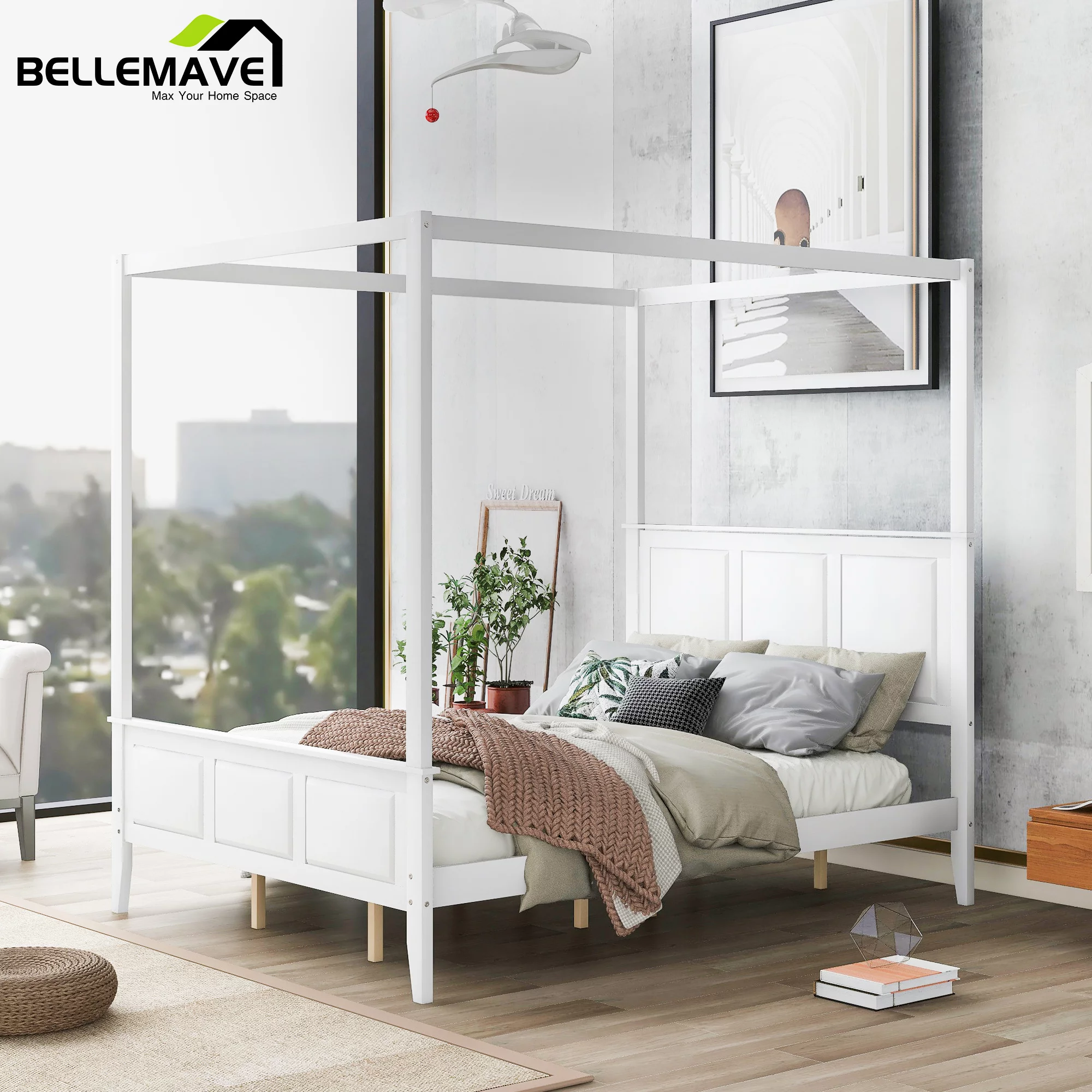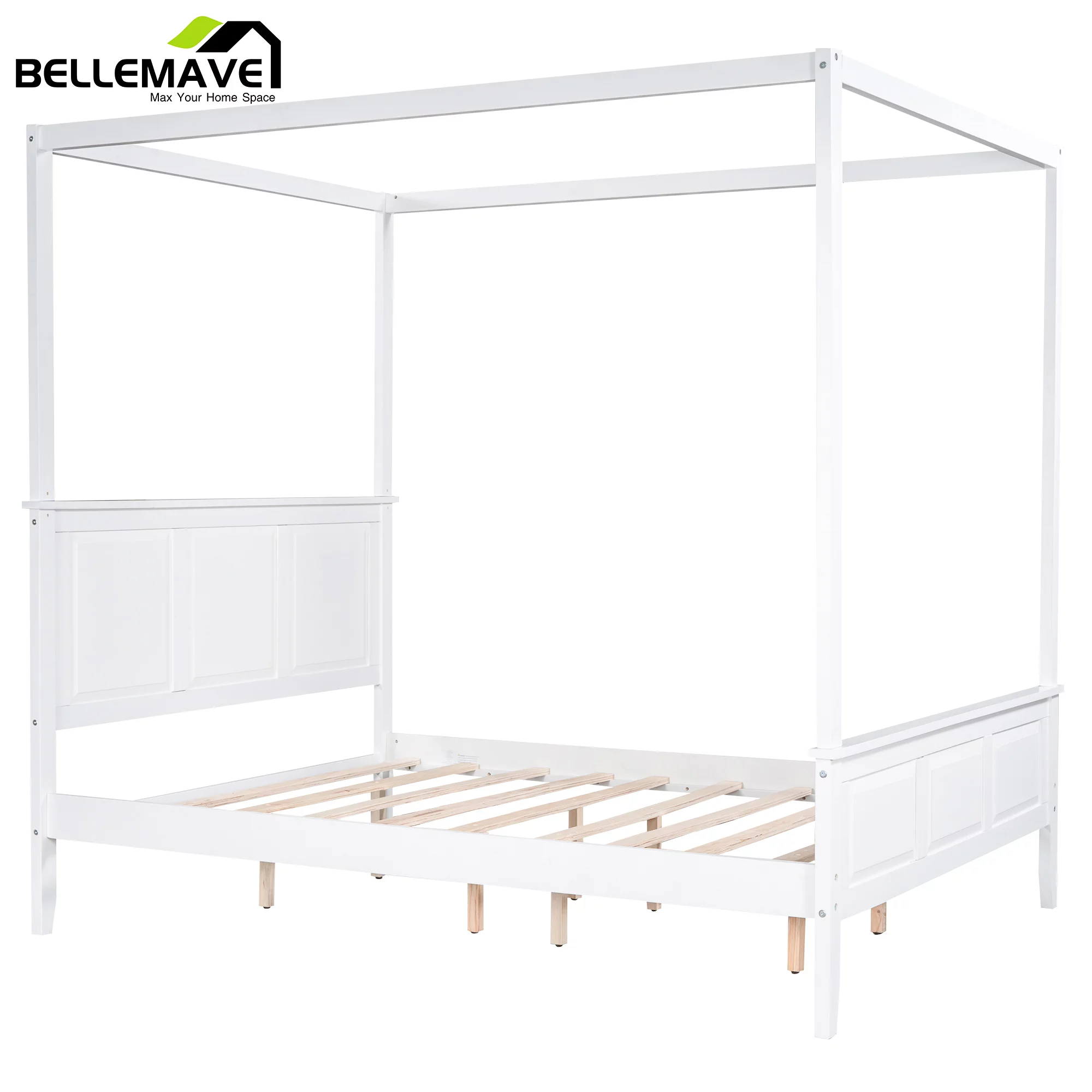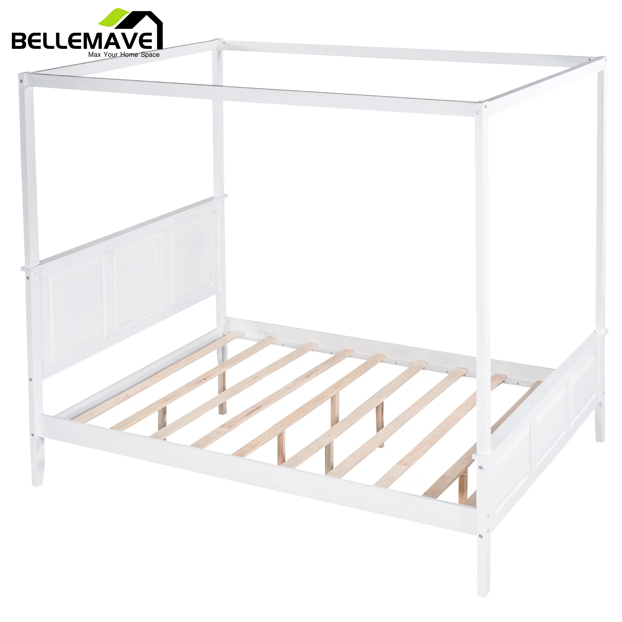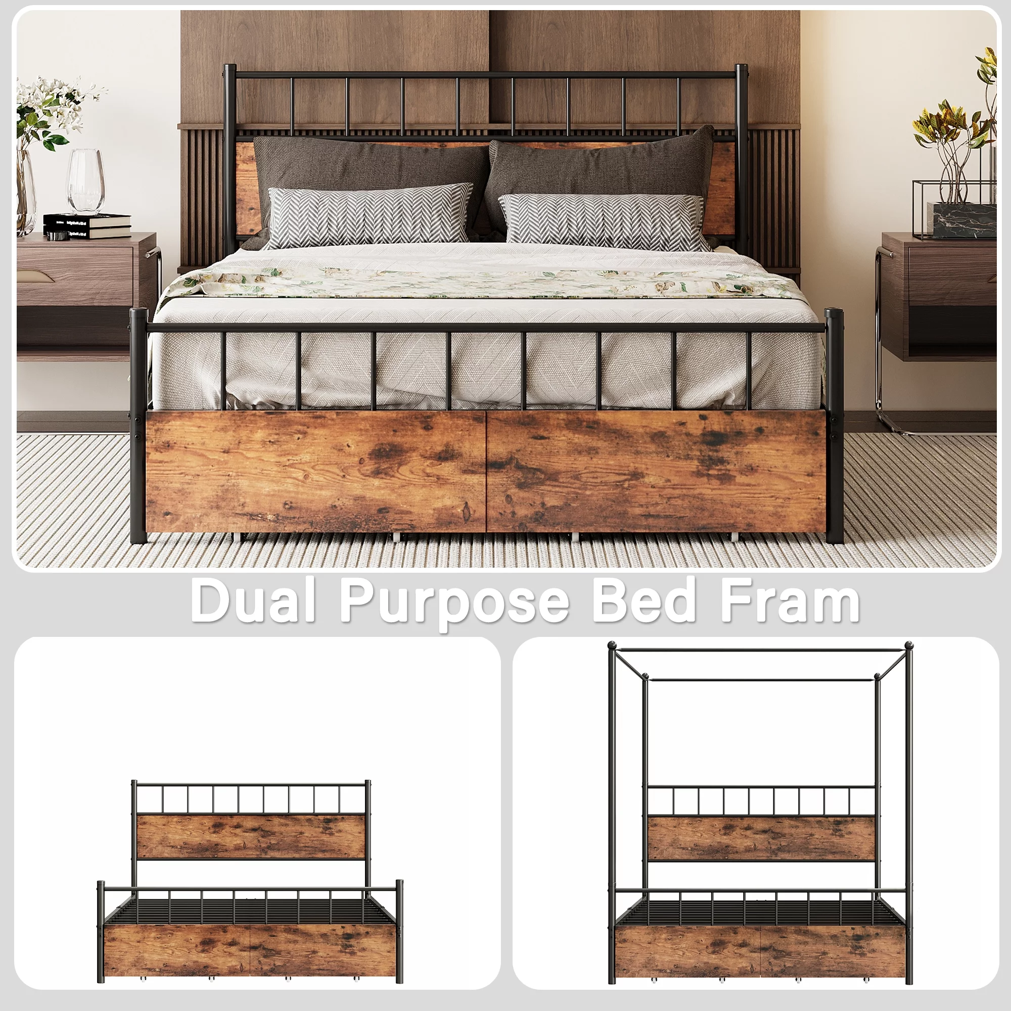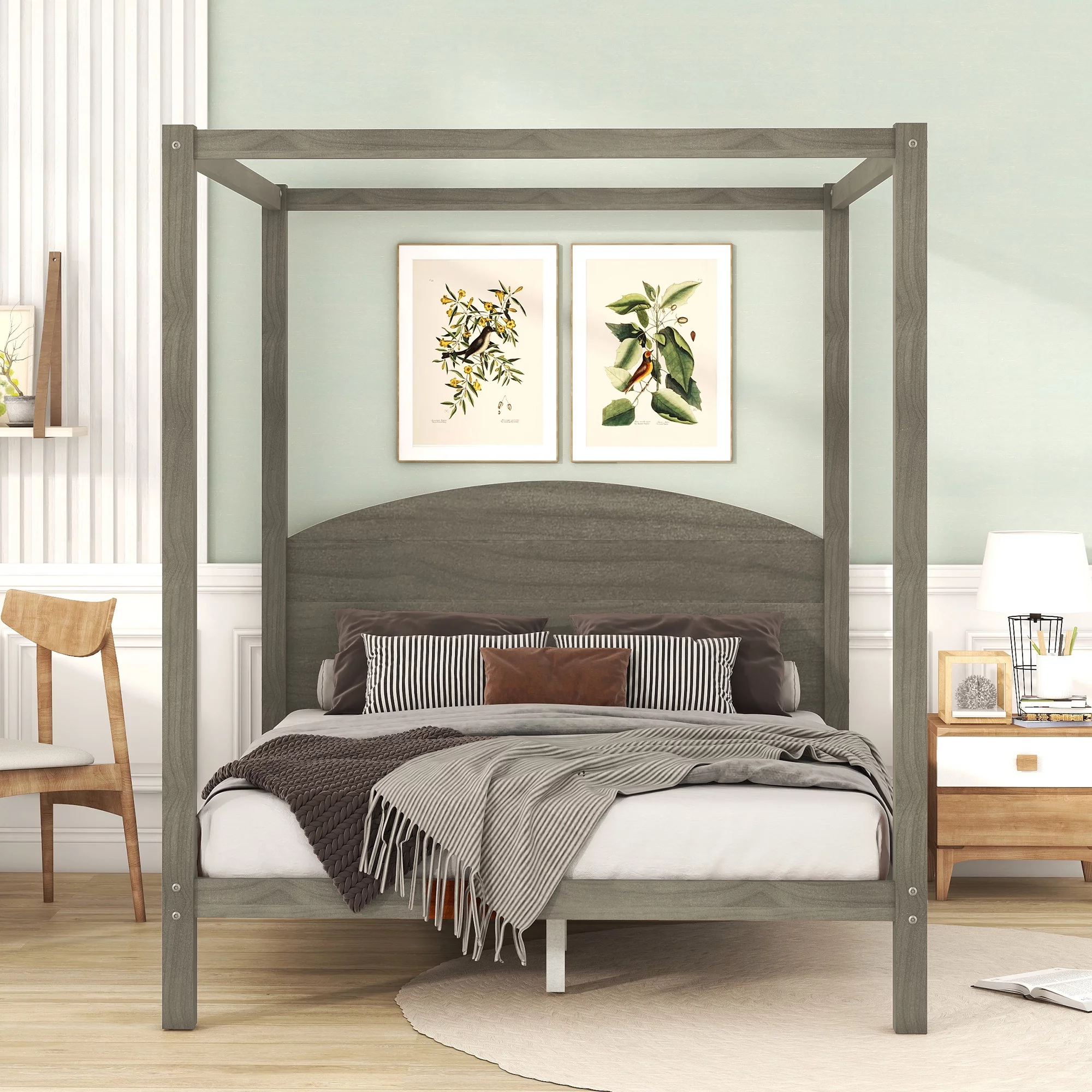 Allewie Full Size Canopy Platform Bed Frame with Wooden Headboard, Sanders