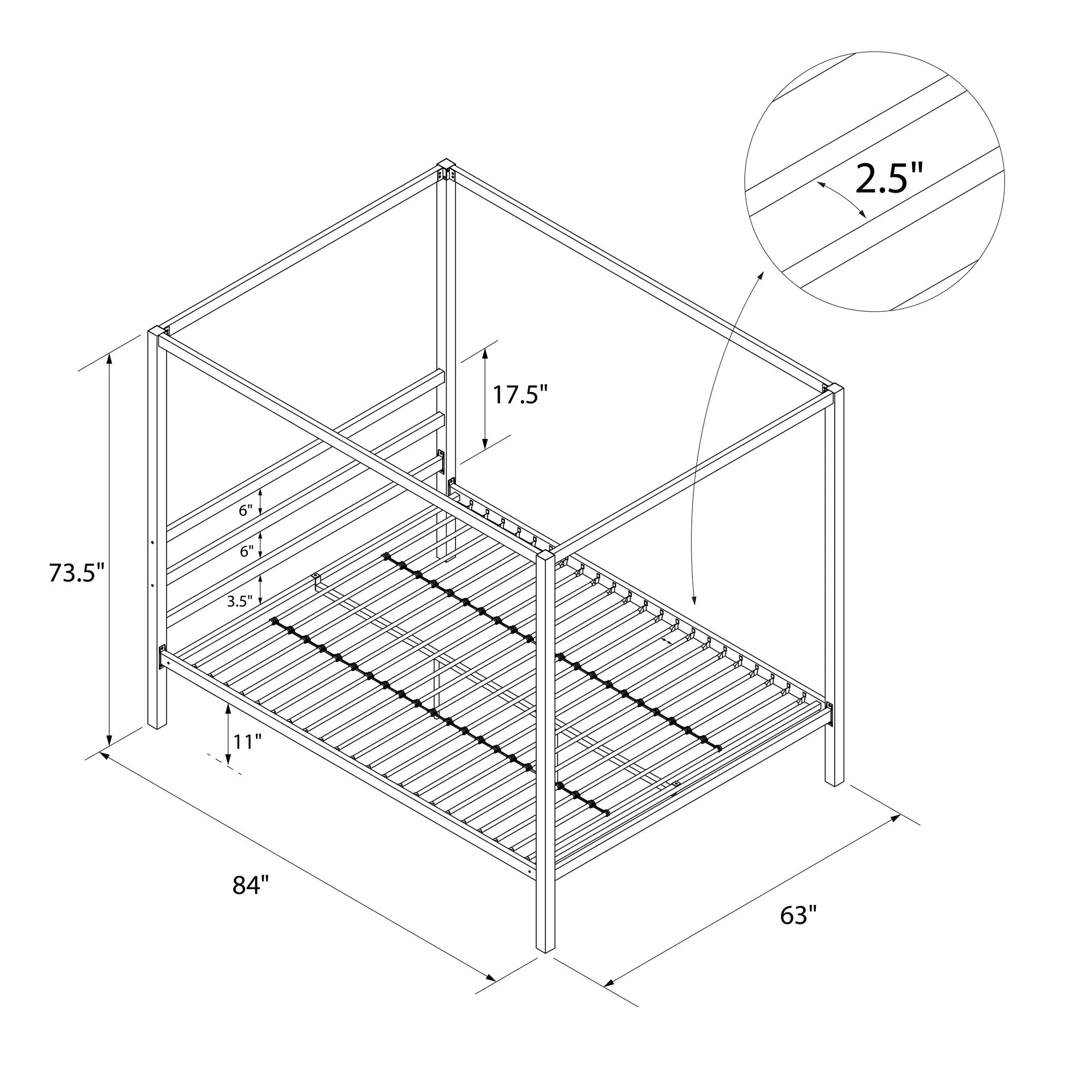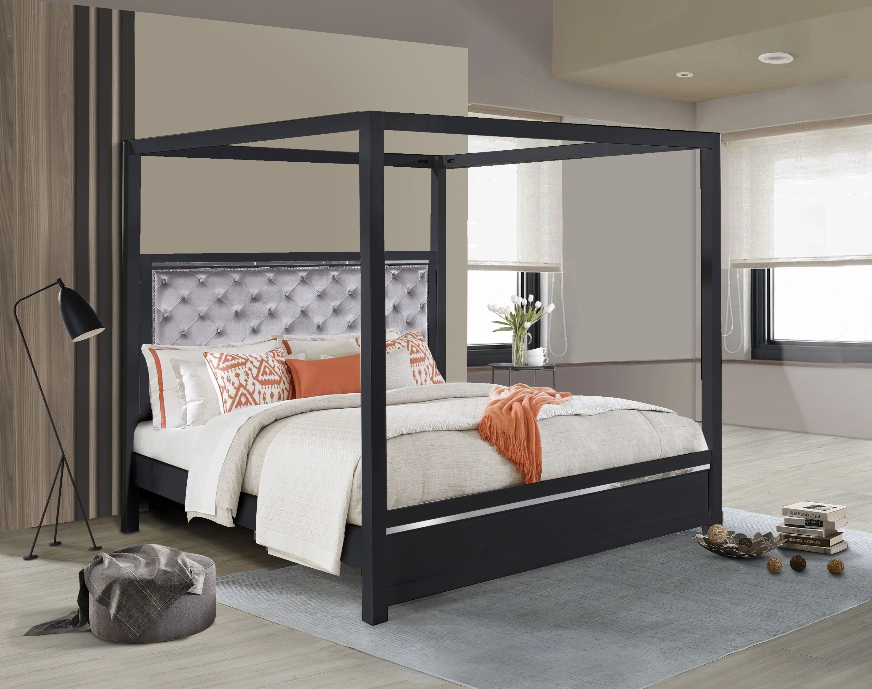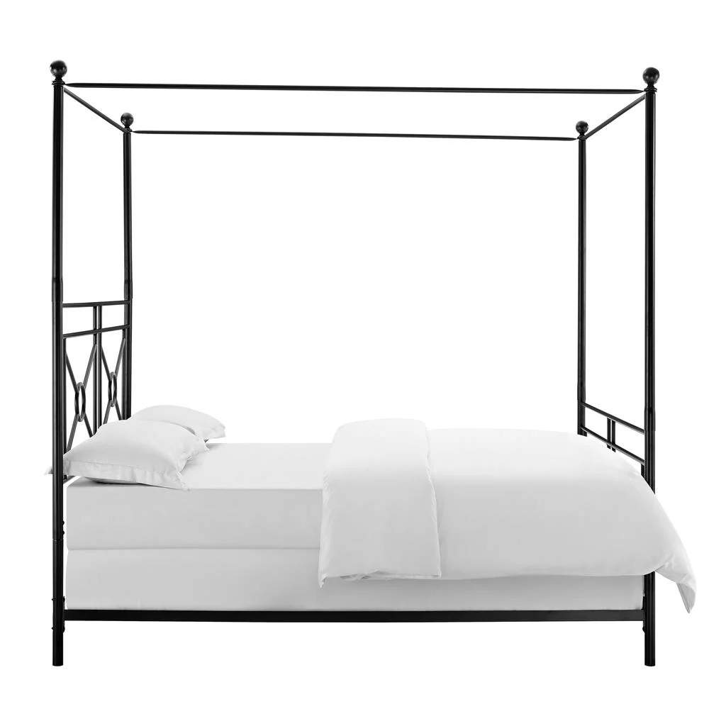 Crosley Furniture Montgomery Metal Frame Queen Canopy Bed in Black Powder Coat