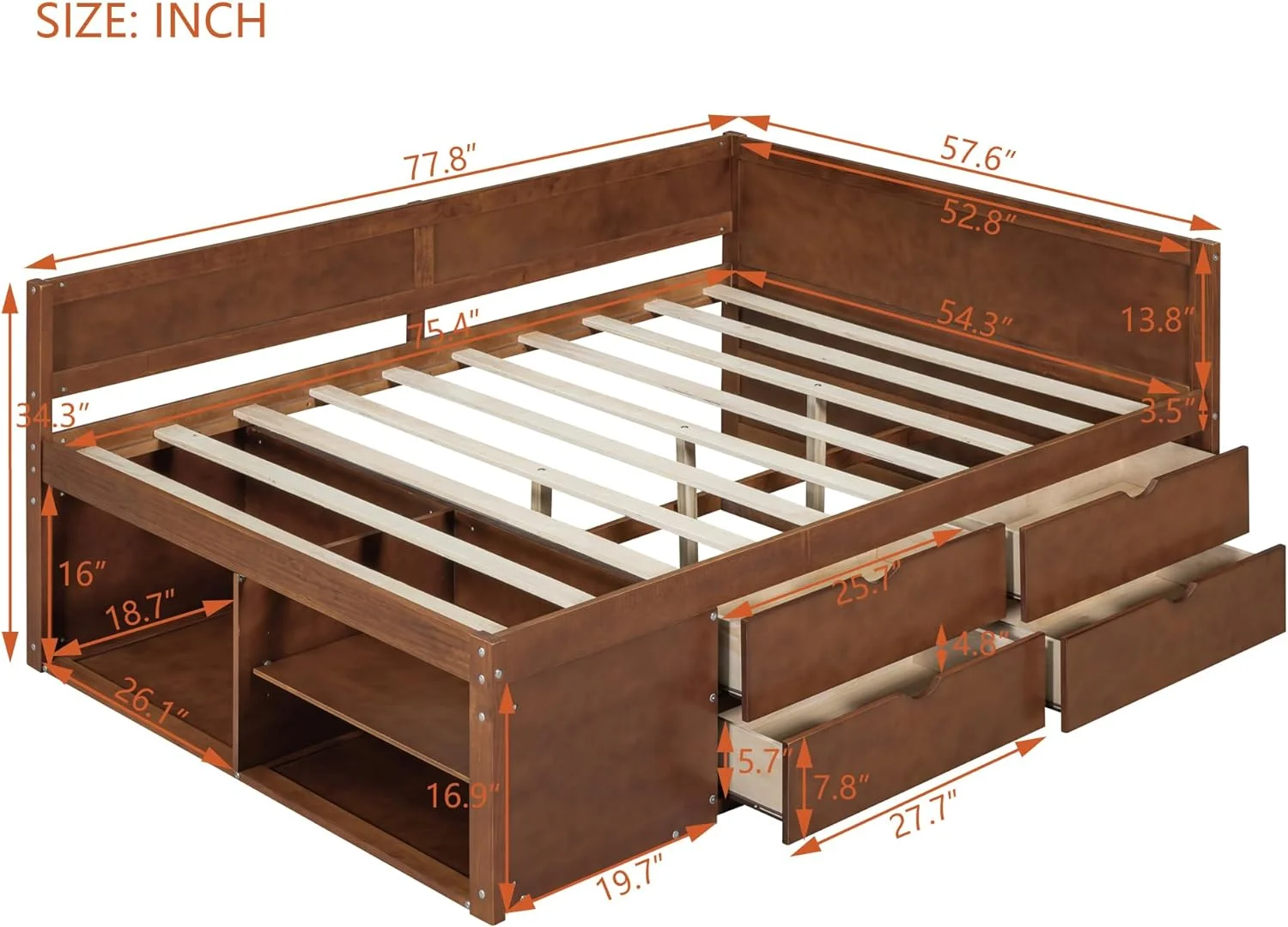 Platform Bed Frame With Two Storage Drawers/Mattress Foundation/Wood Slat Support, Daybed For Kids, Teens, Espresso