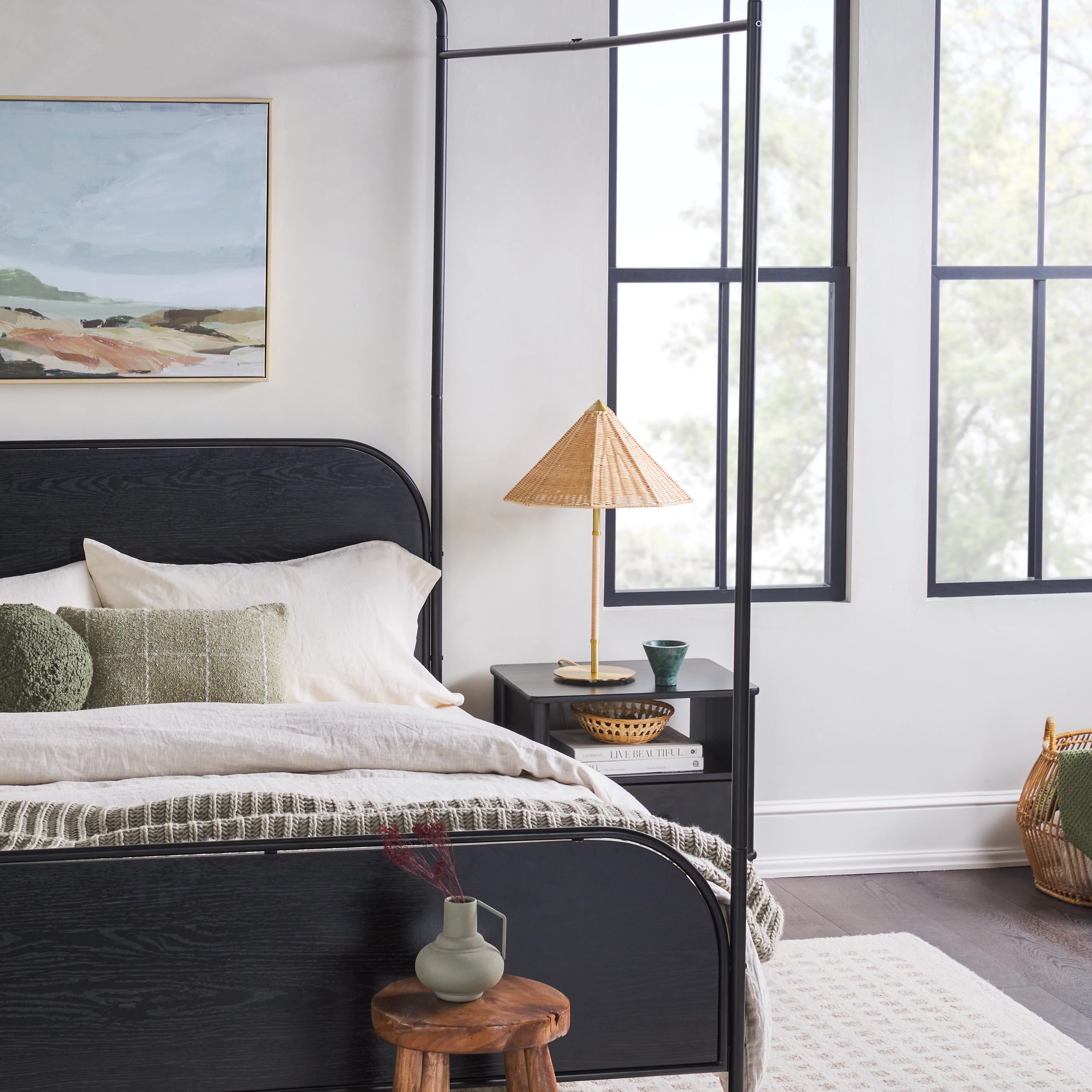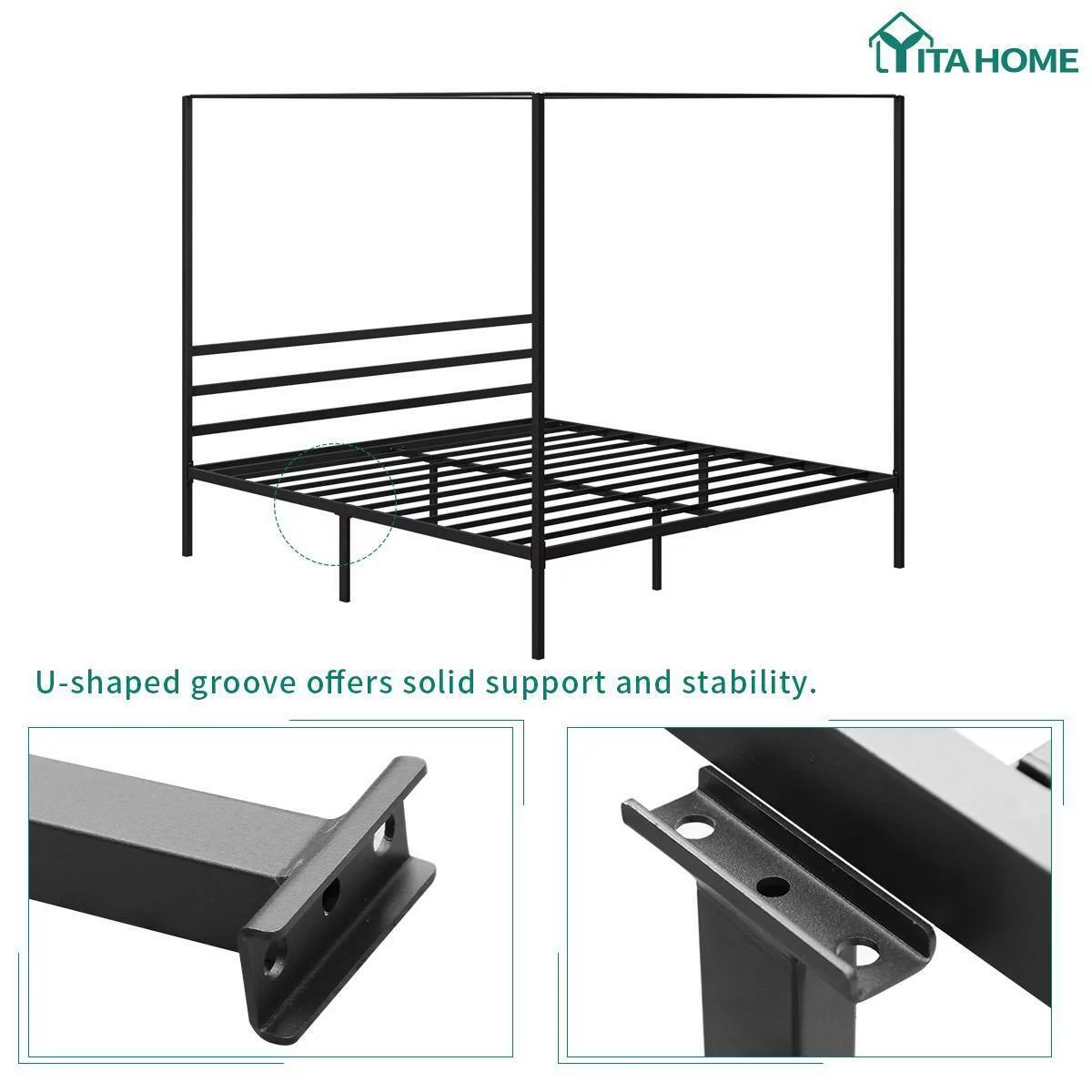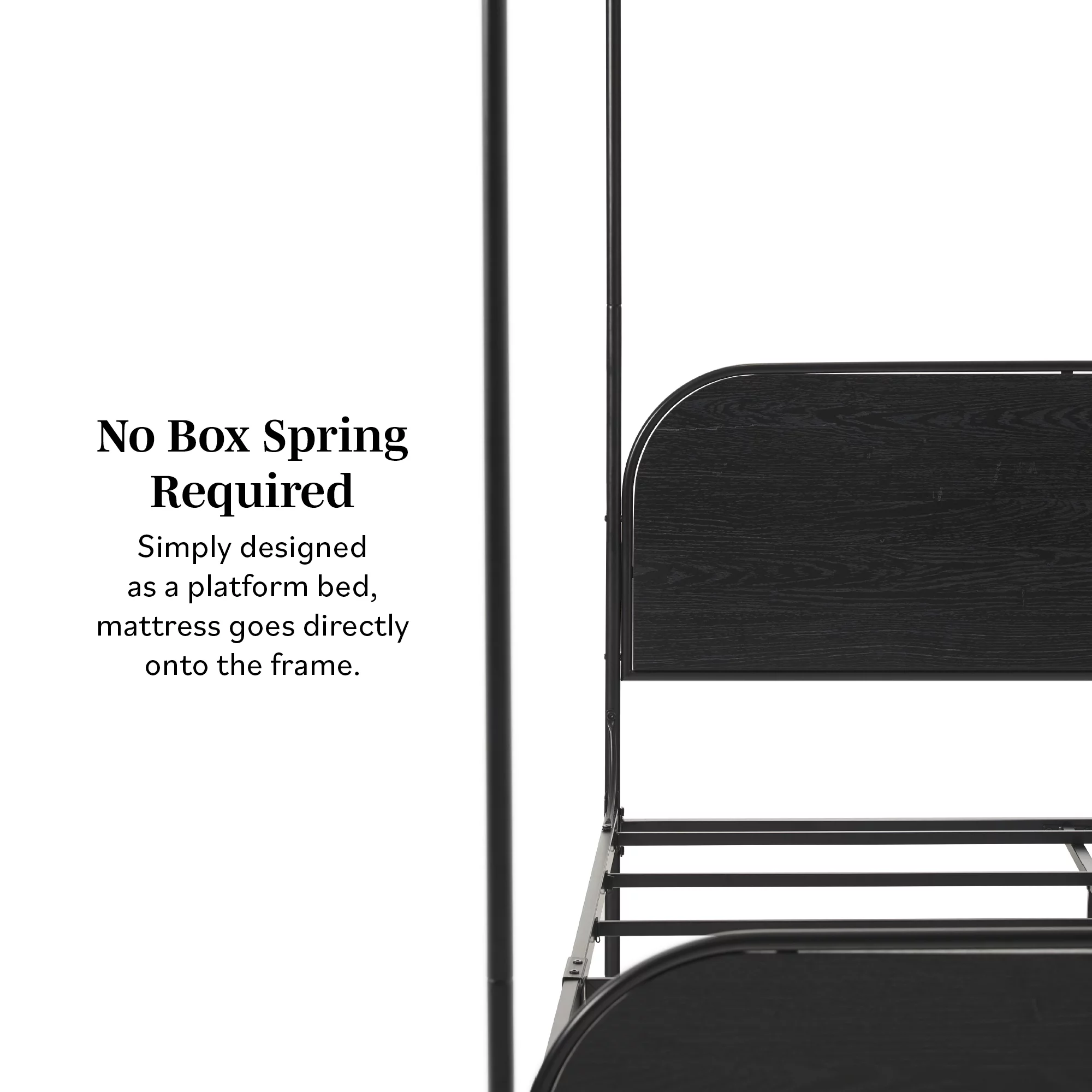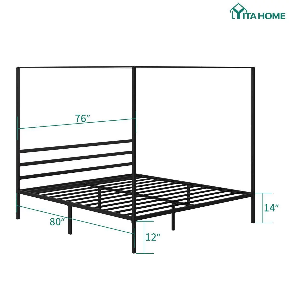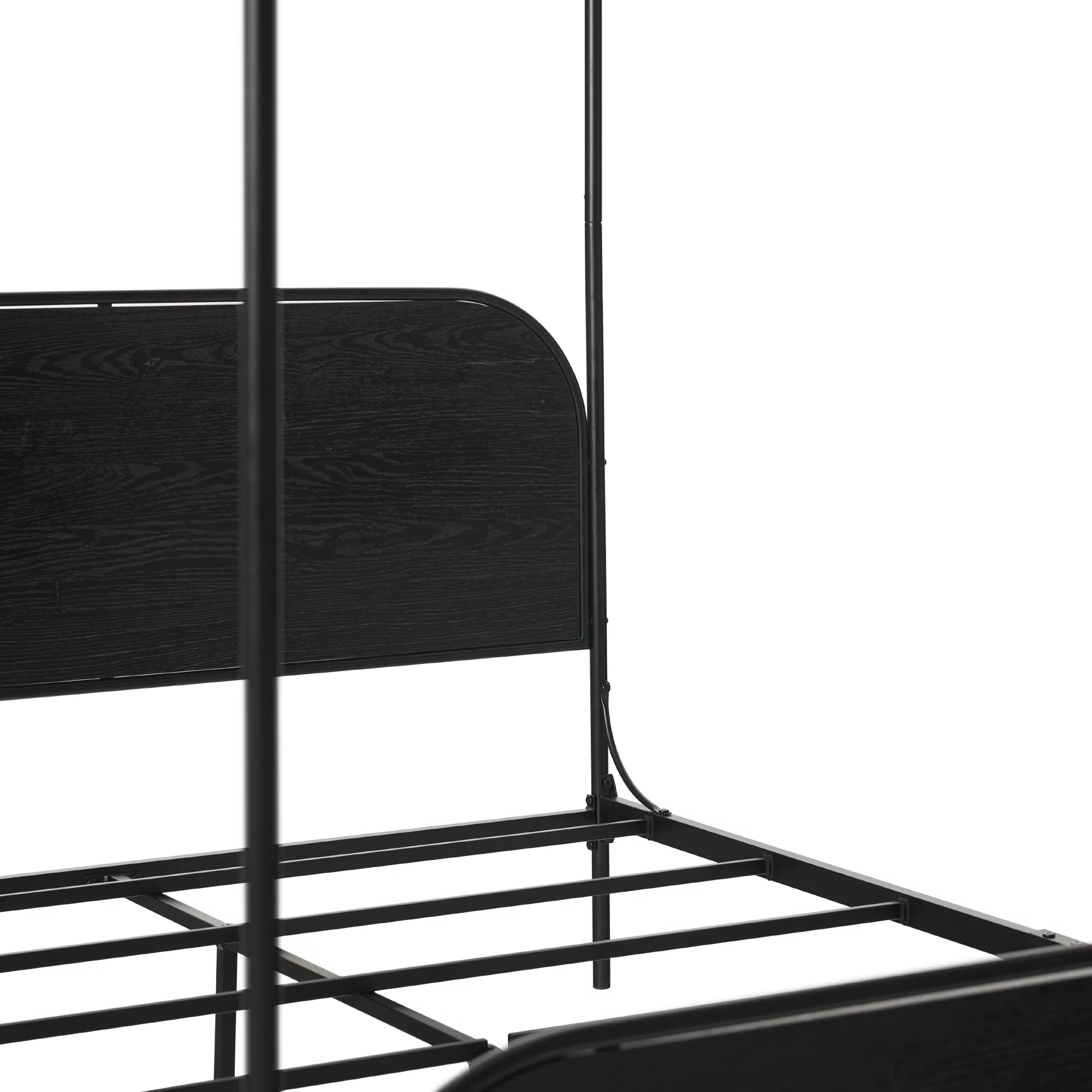 Kama Traditional Fabric Canopy Queen Bed with Iron Frame, Gray and Flat Black