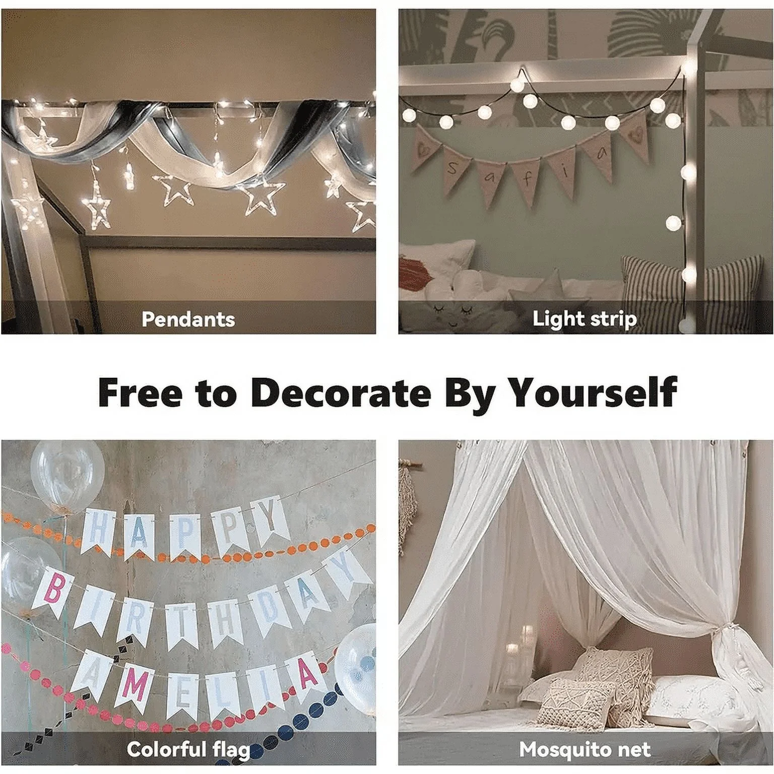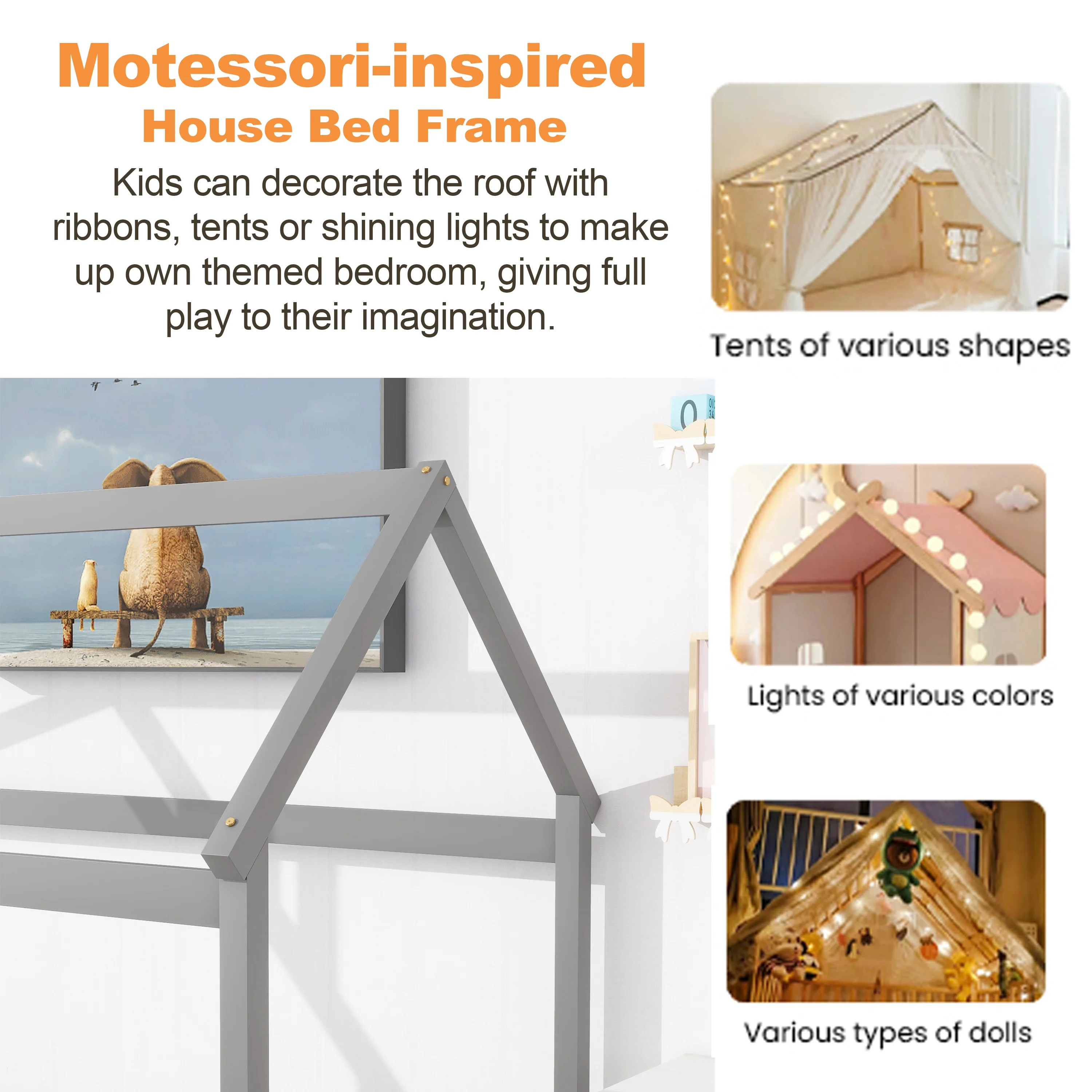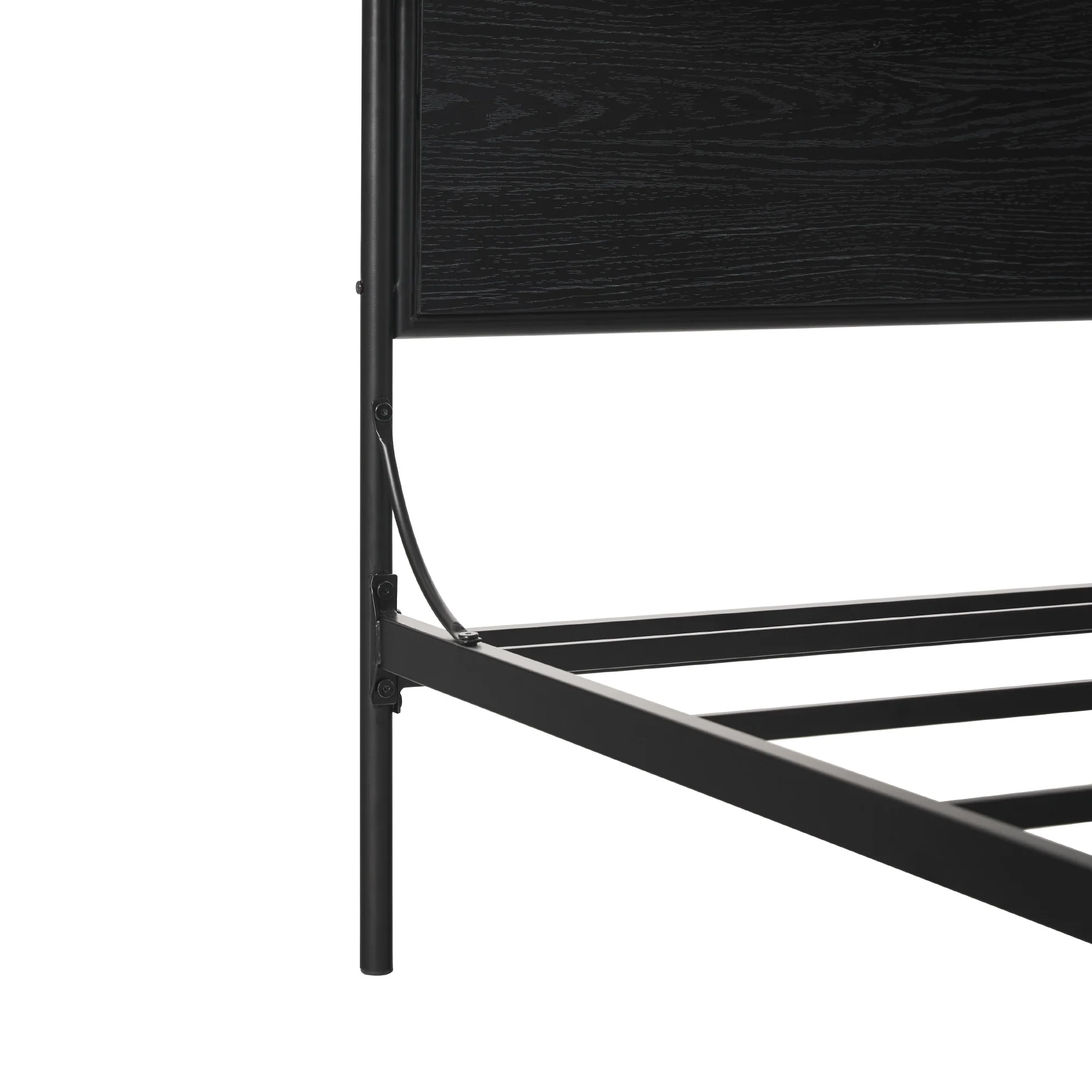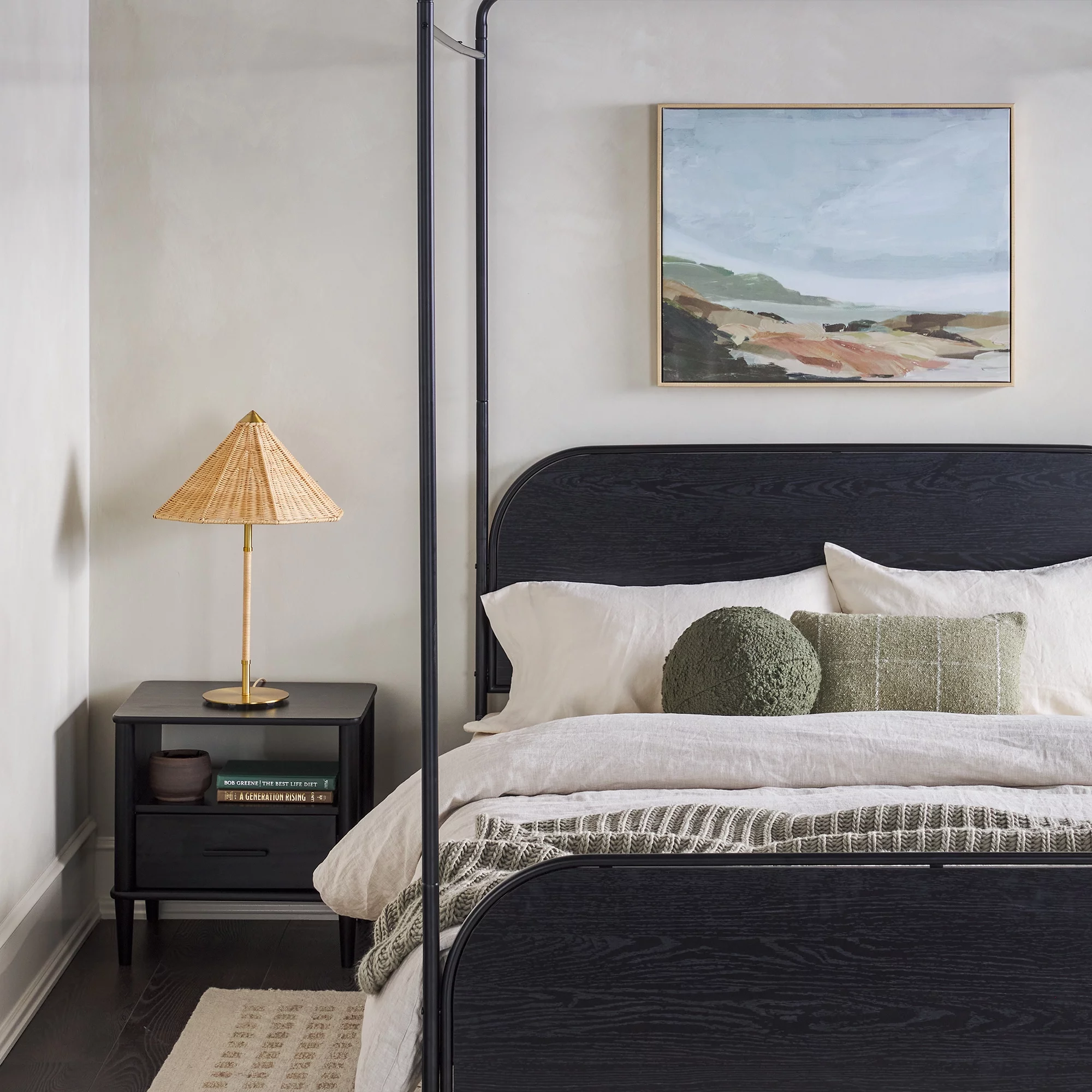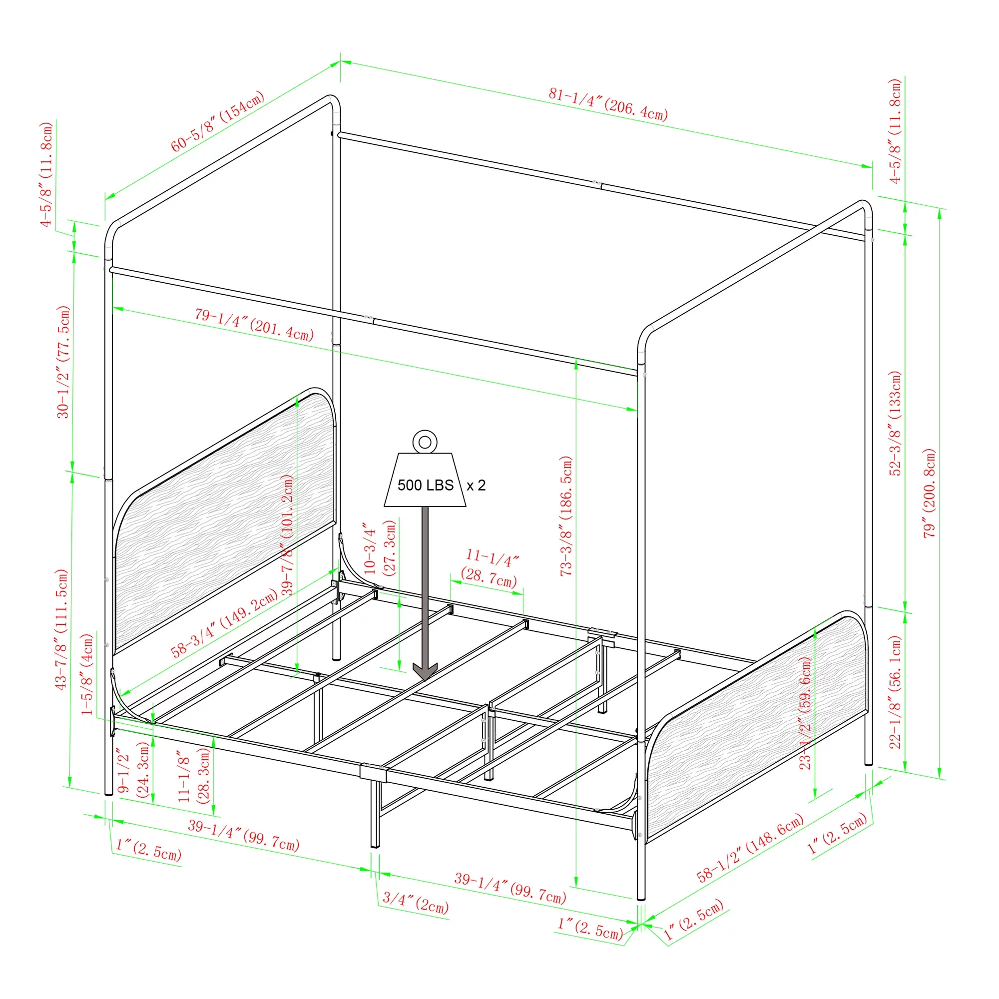 Kama Traditional Fabric Canopy Queen Bed with Iron Frame, Gray and Flat Black