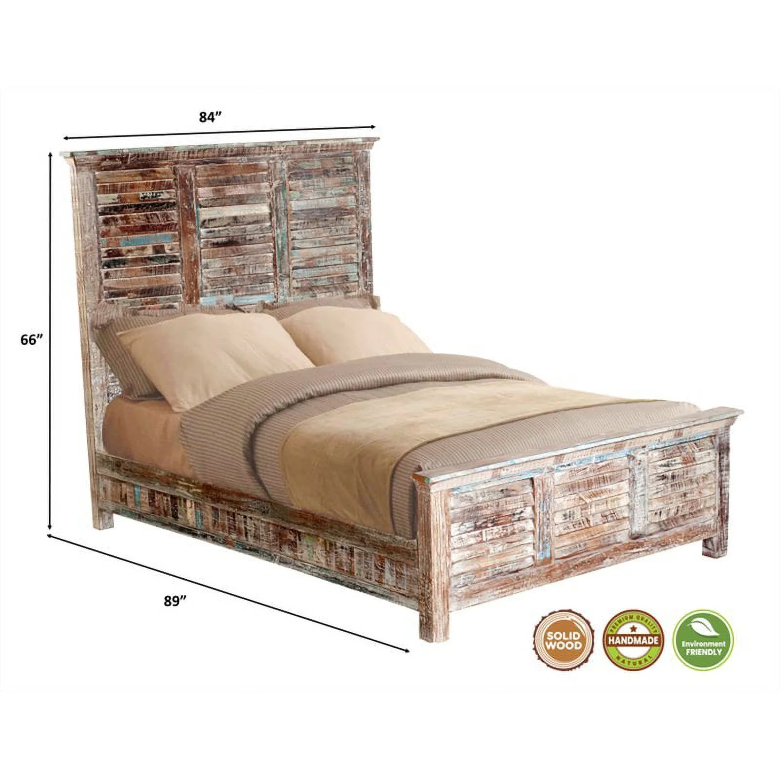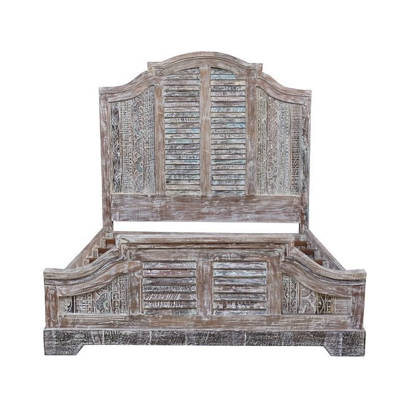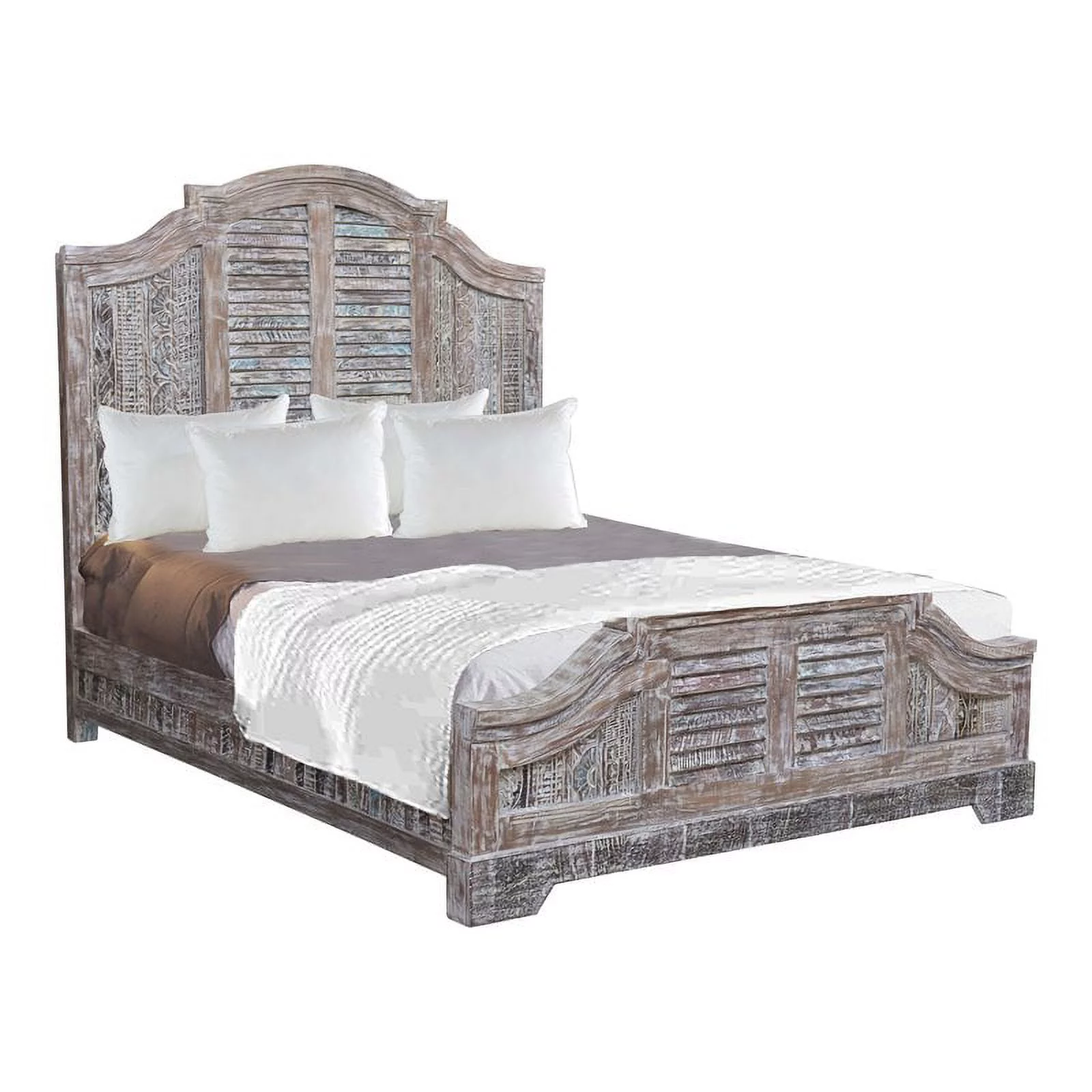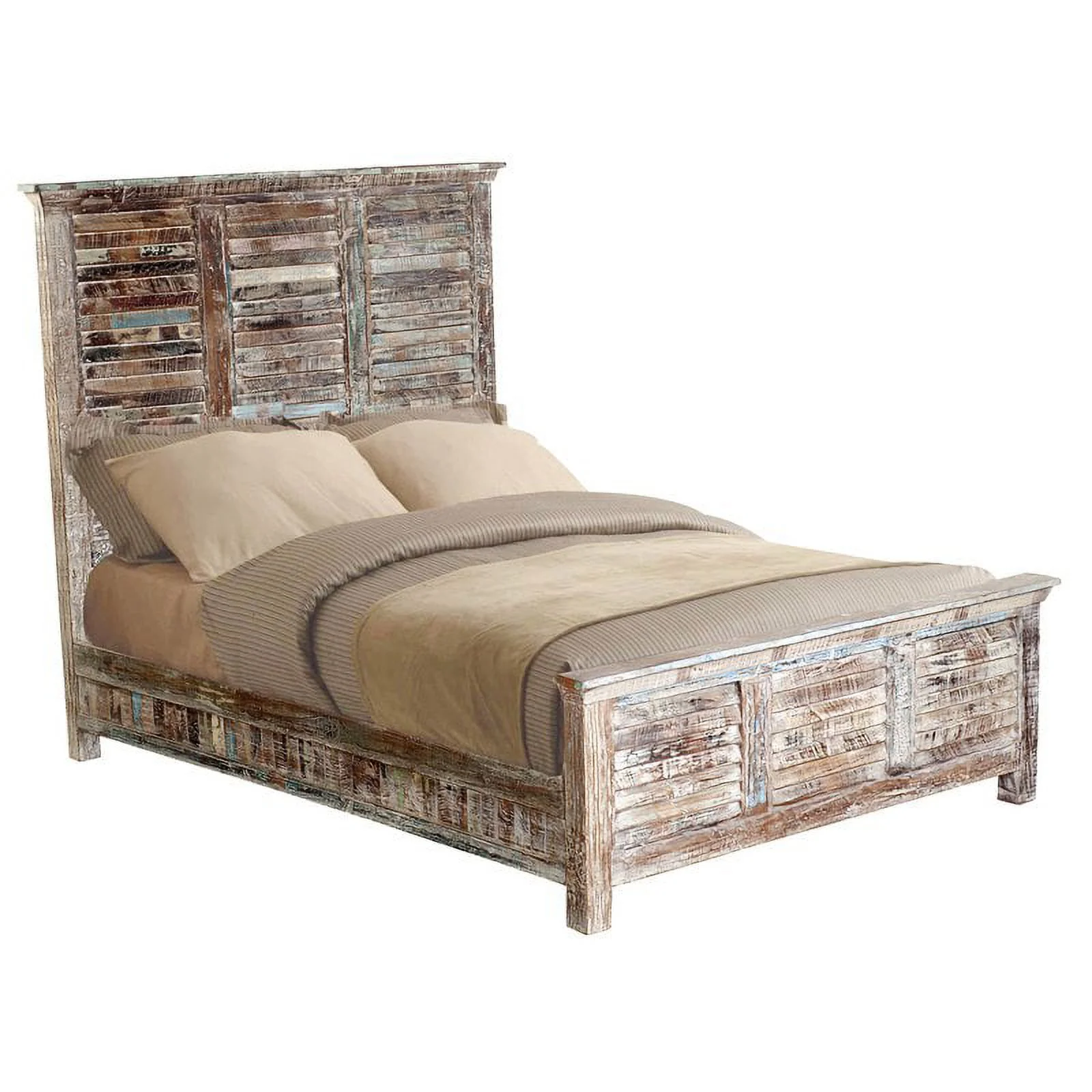 Taran Designs Hayden Shutter Solid Wood King Panel Bed in White Multicolor