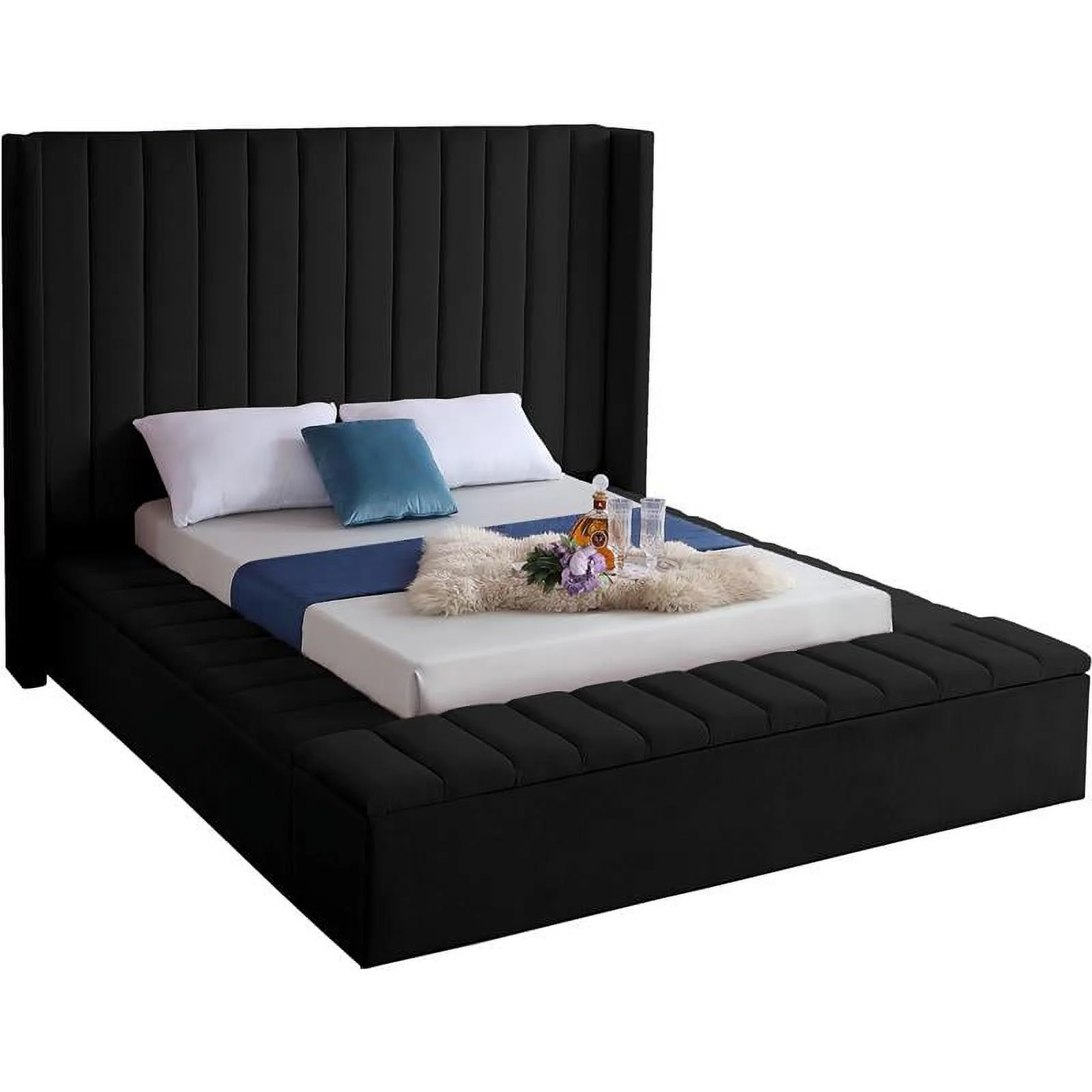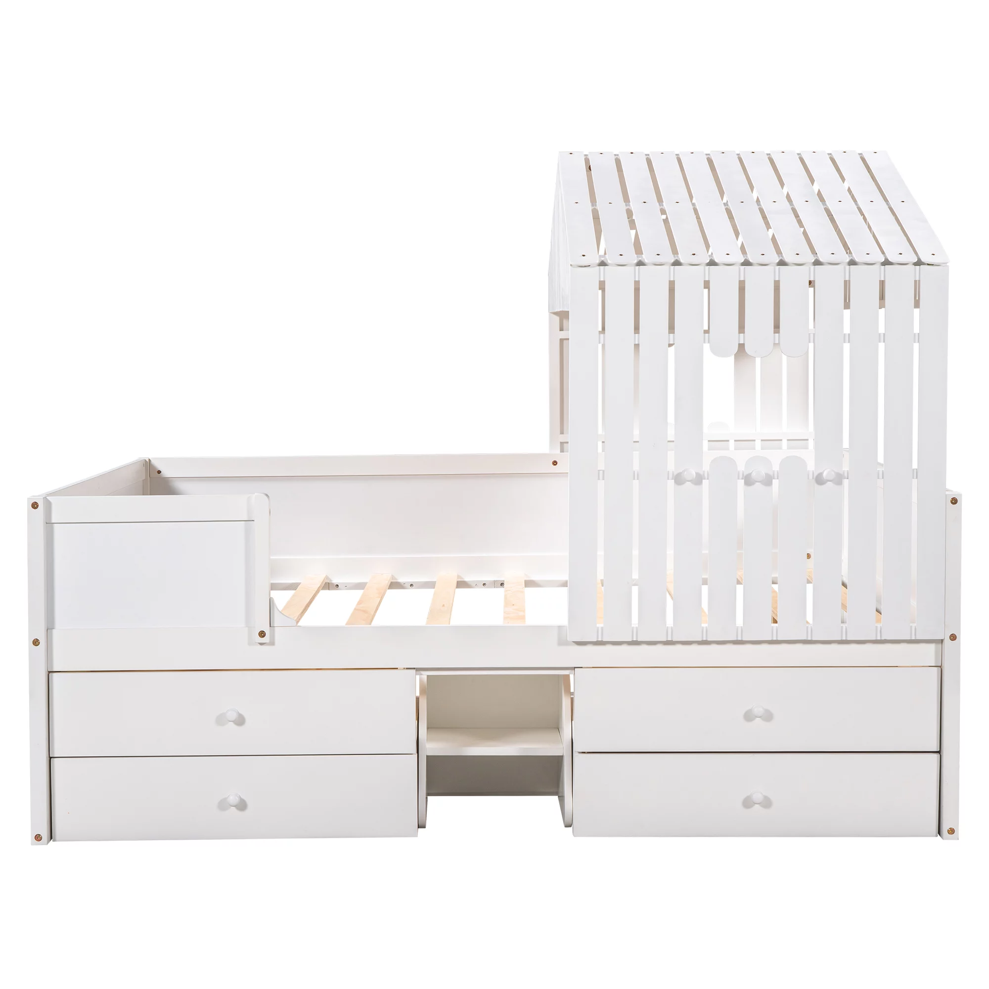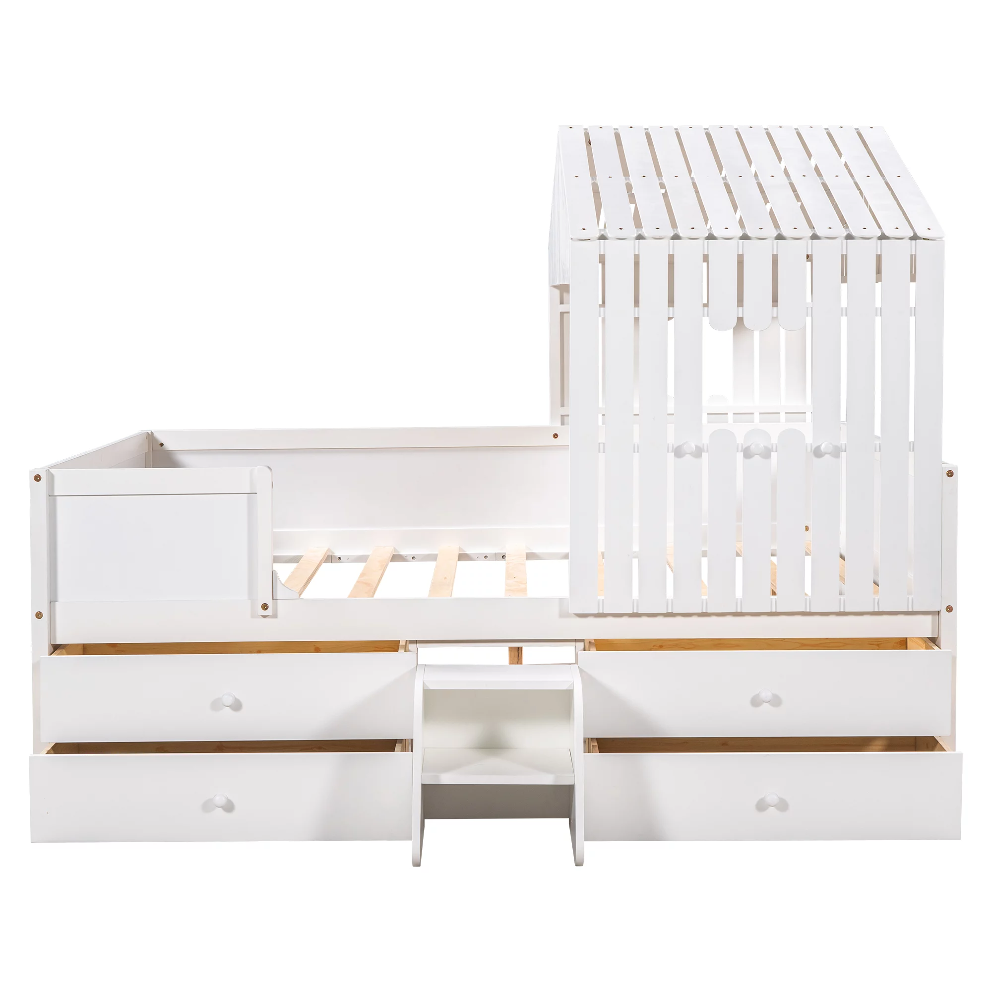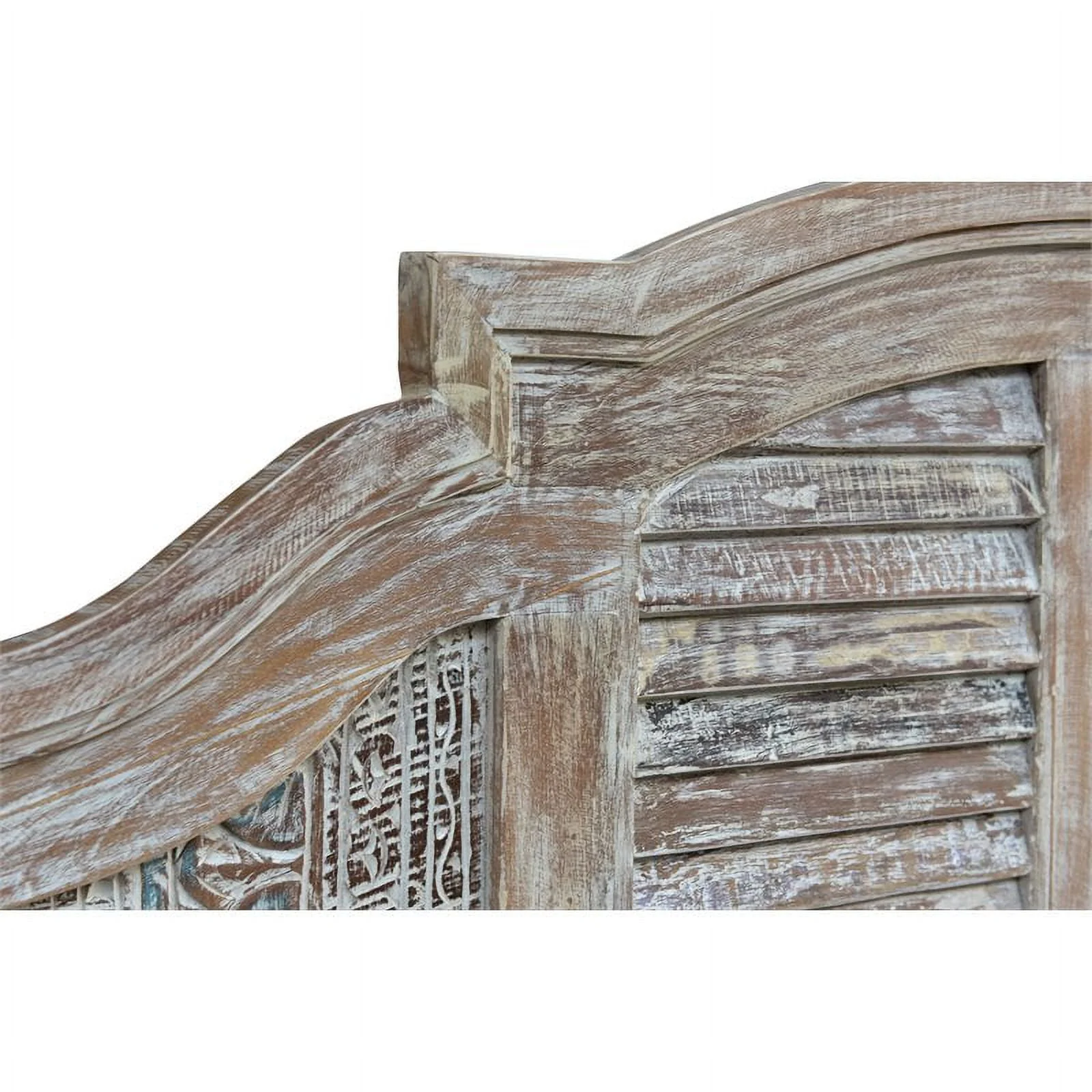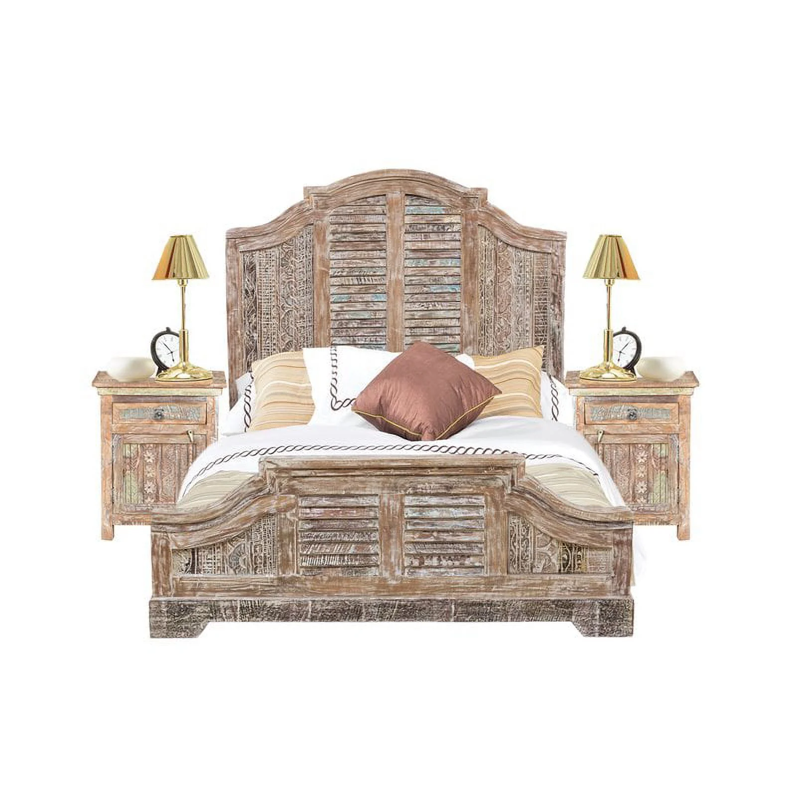 Taran Designs Hayden Shutter Solid Wood King Panel Bed in White Multicolor