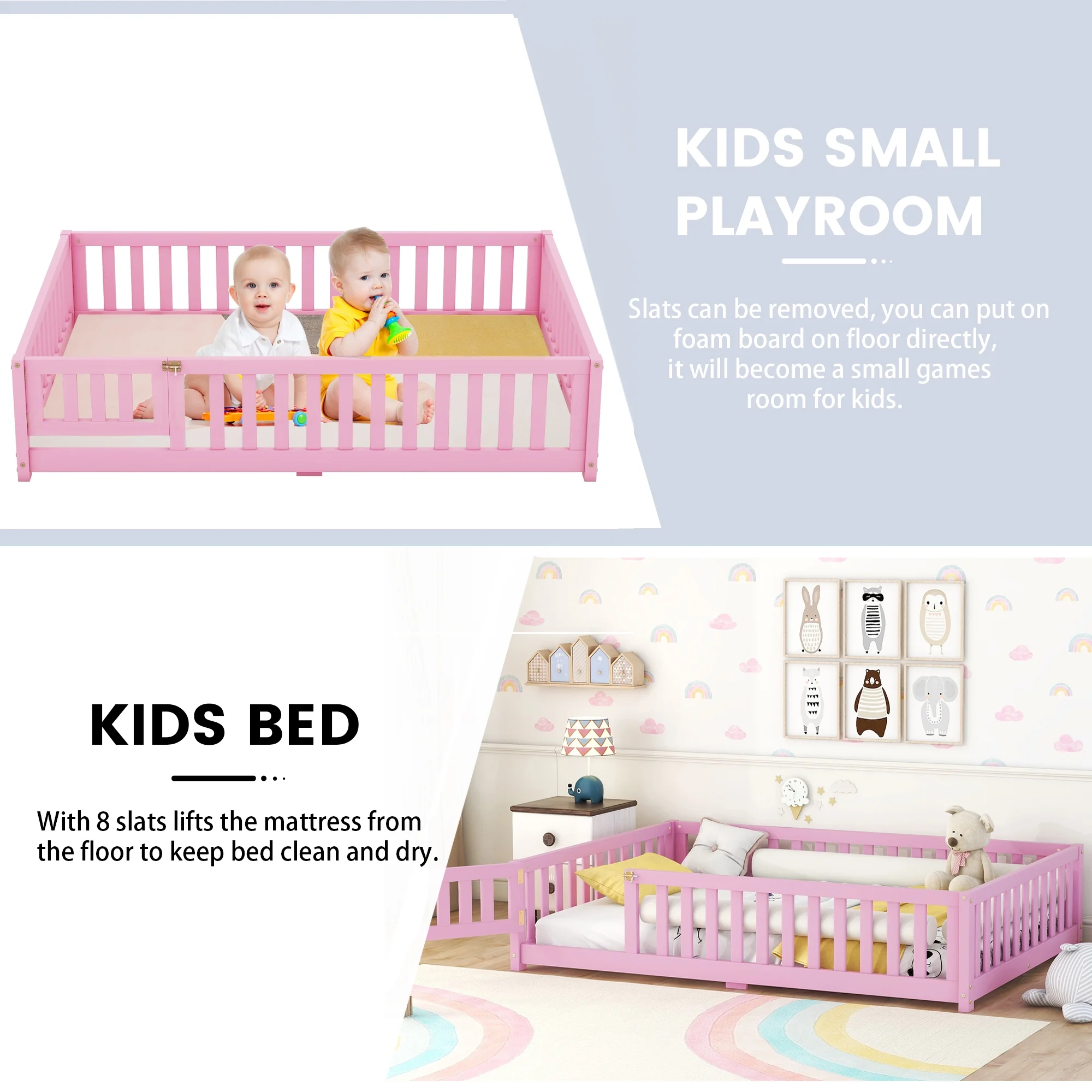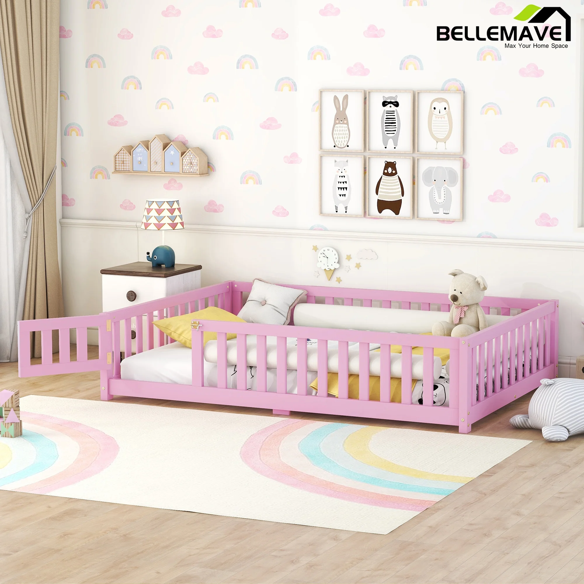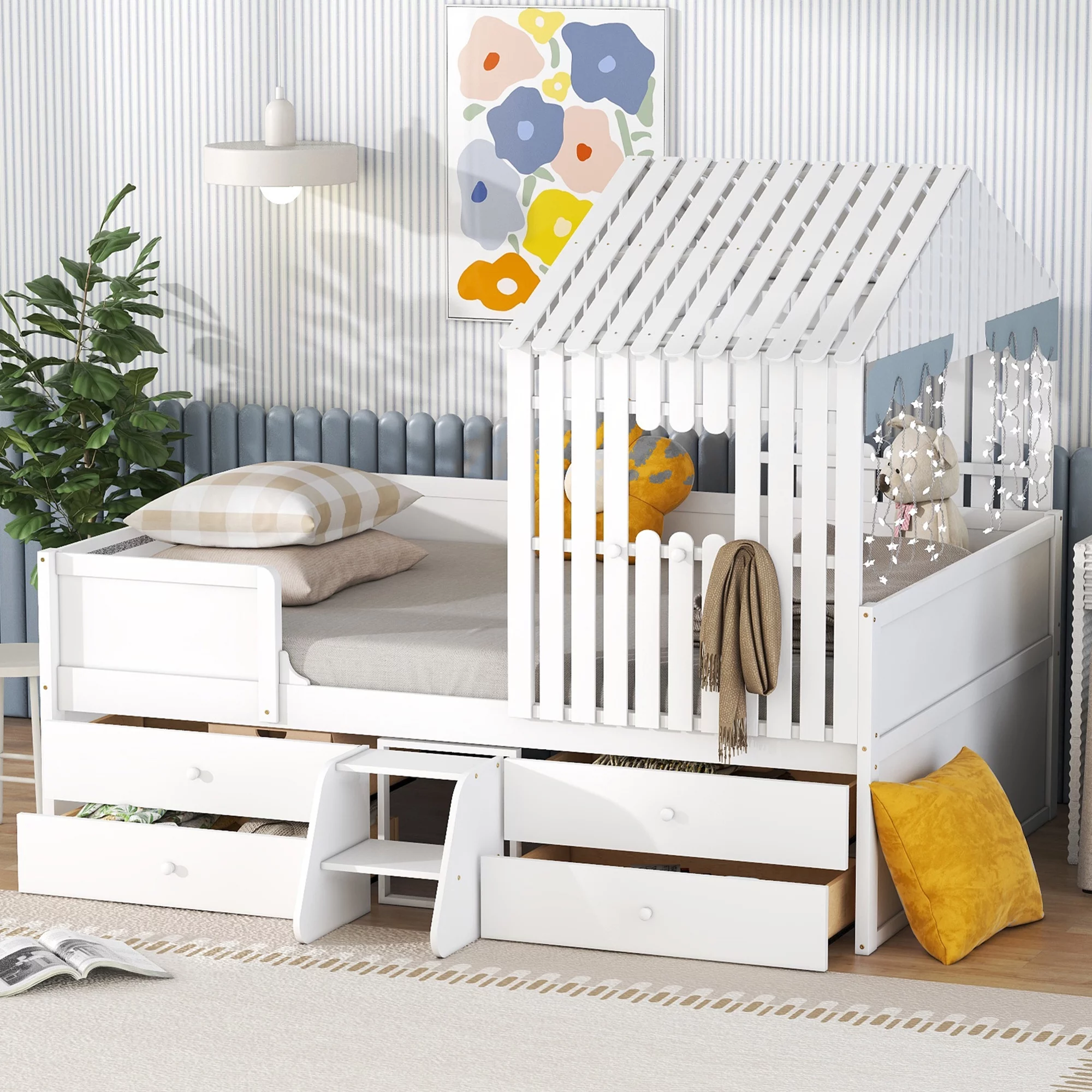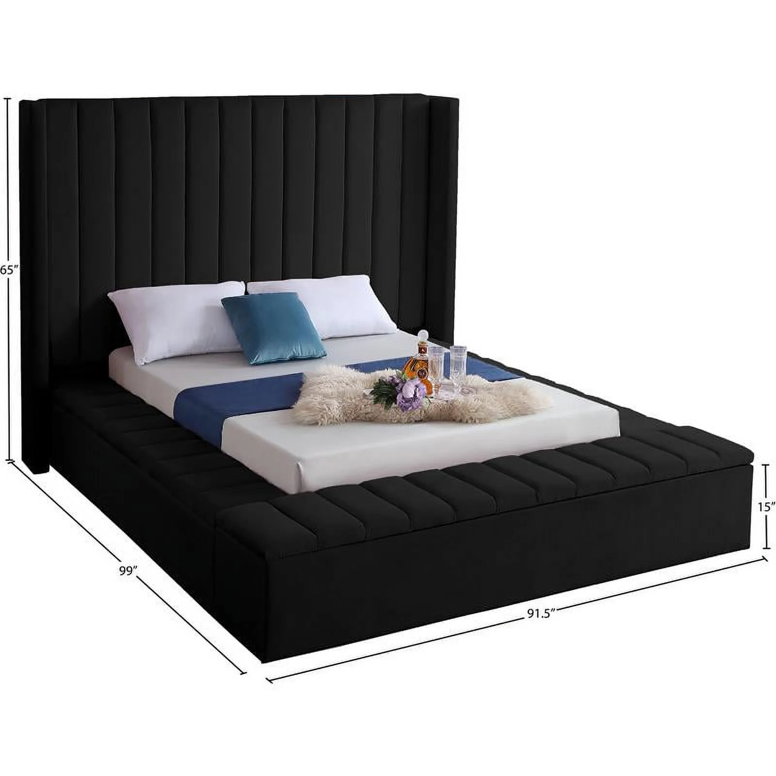 Taran Designs Hayden Shutter Solid Wood King Panel Bed in White Multicolor