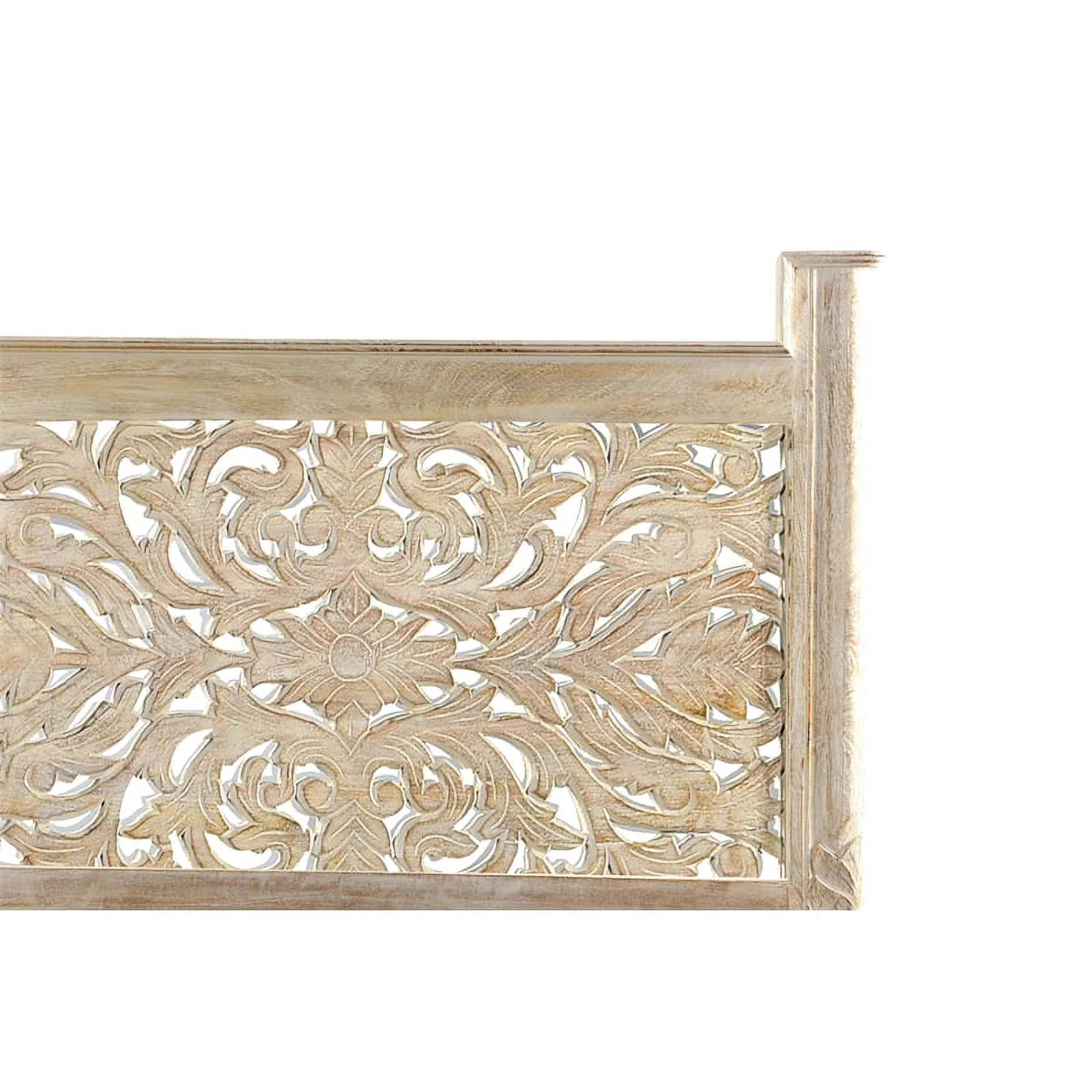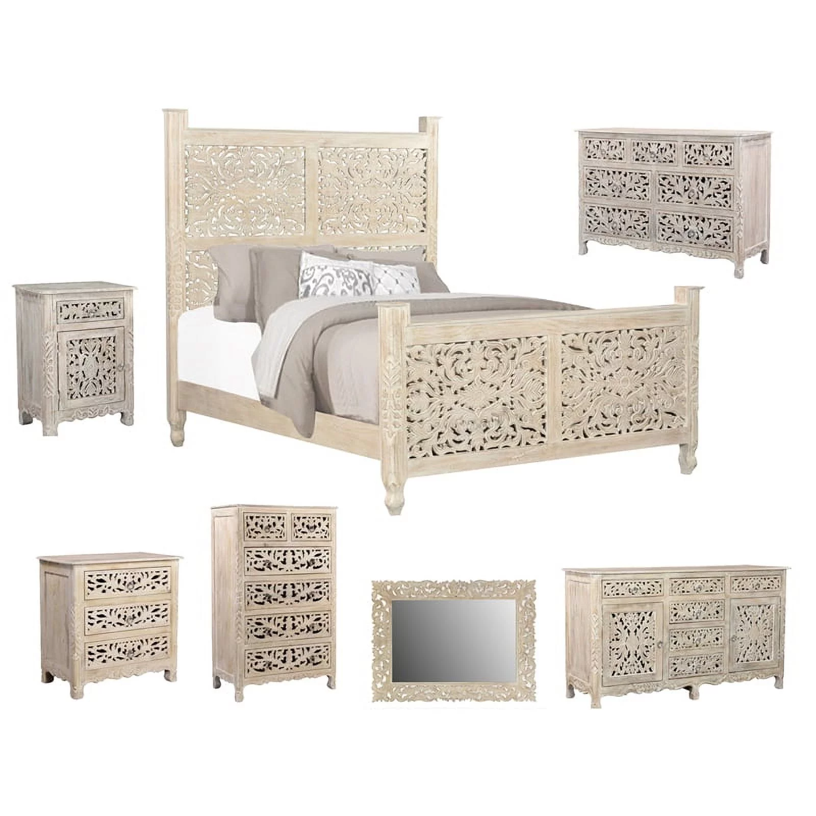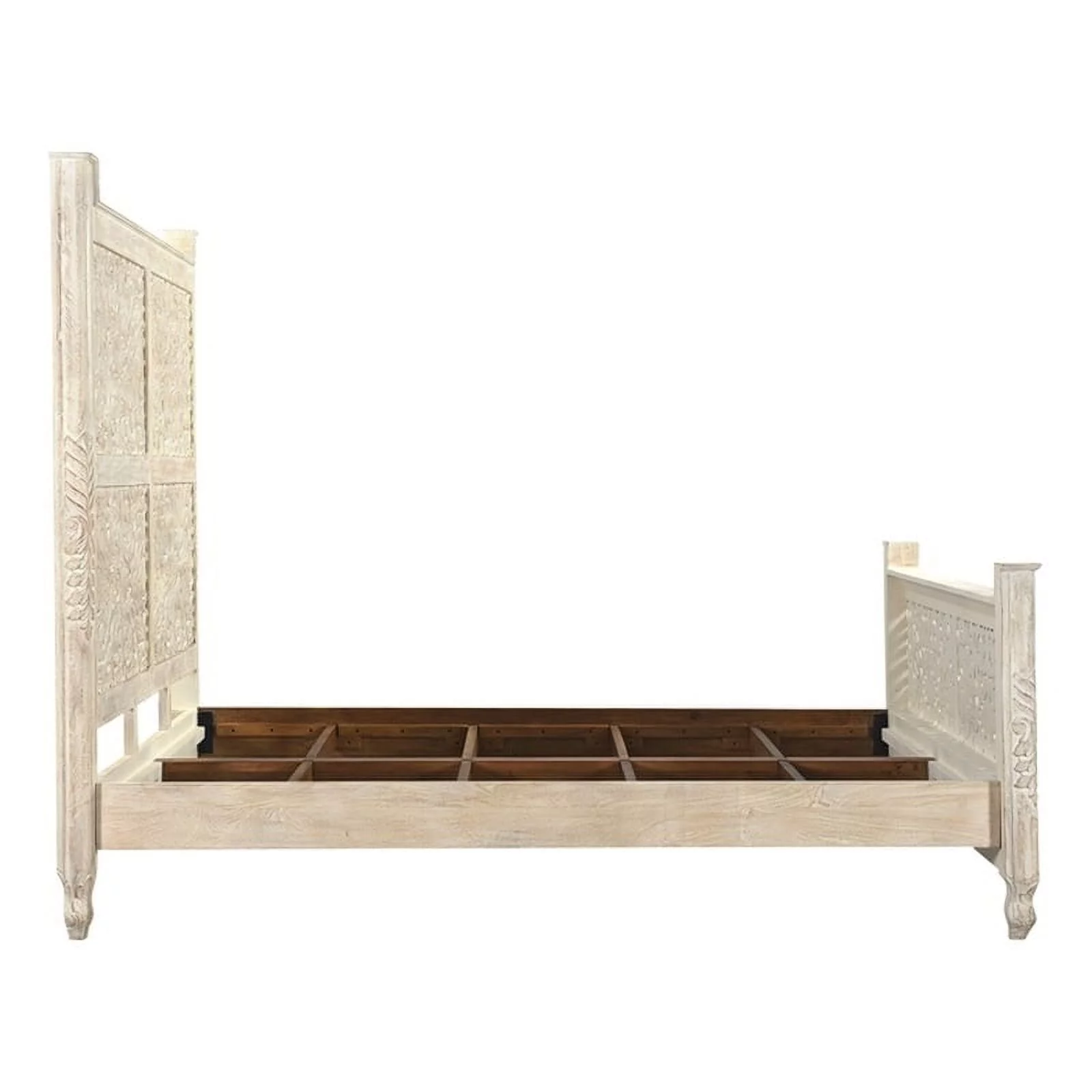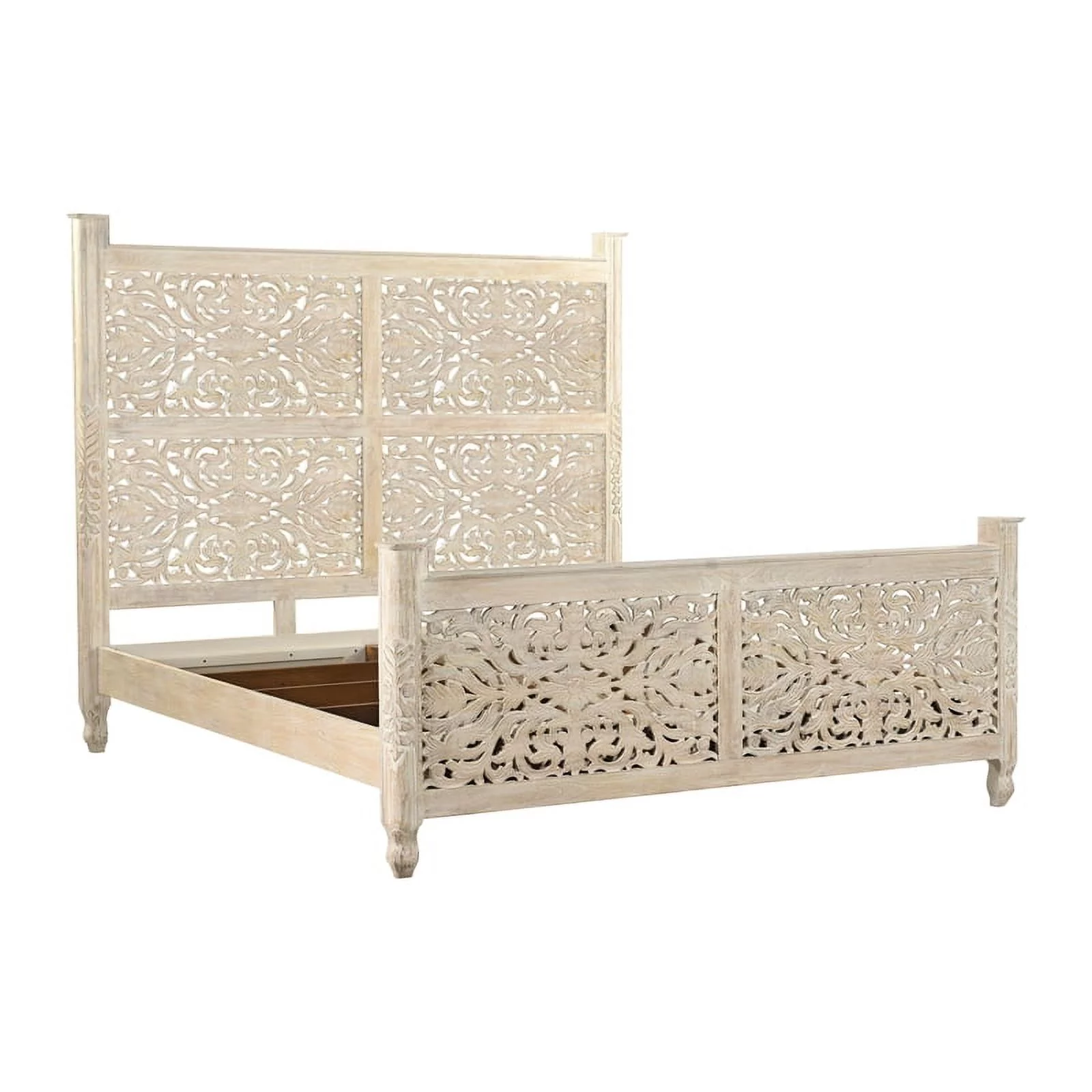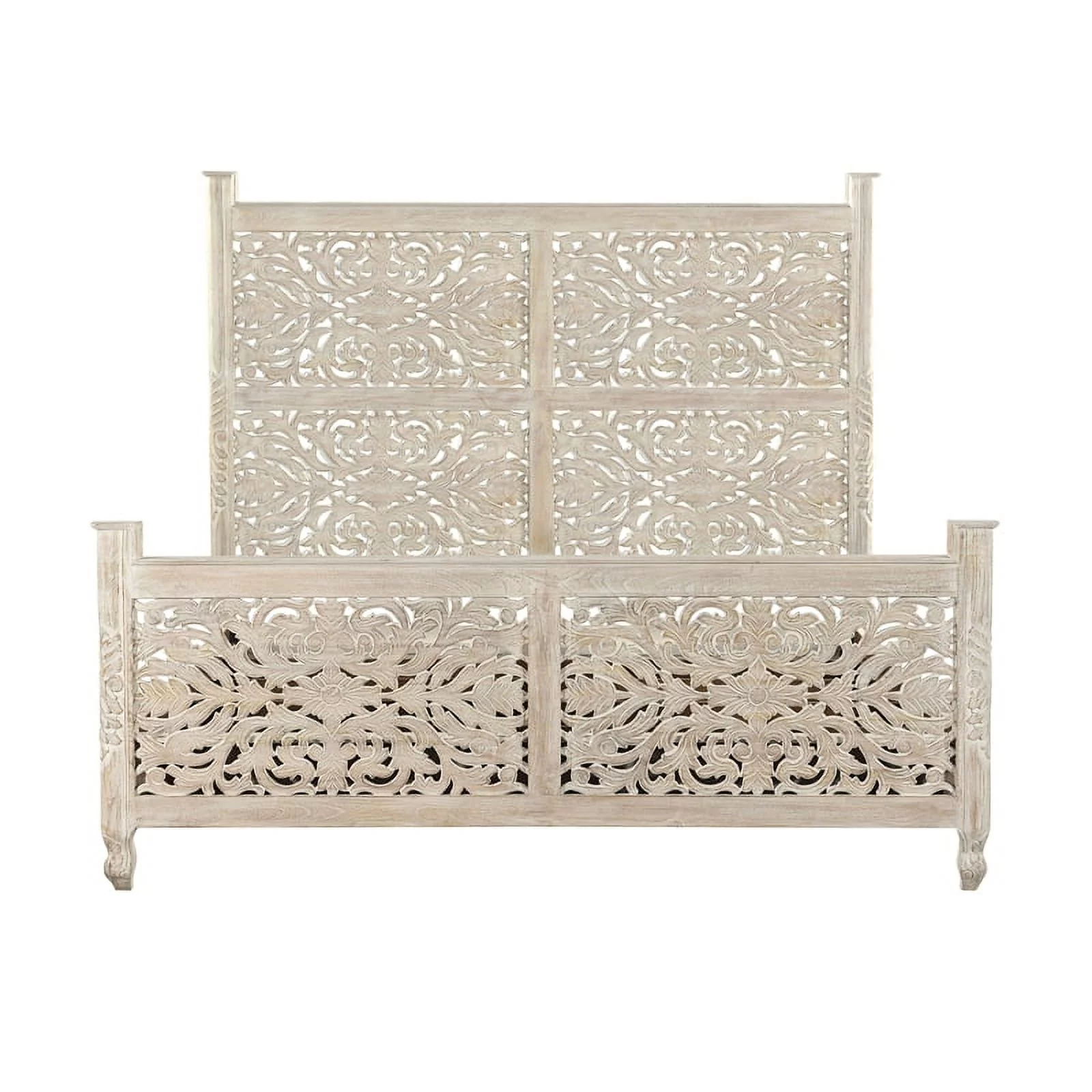 Taran Designs Monte Floral Carved Solid Wood King Panel Bed in White