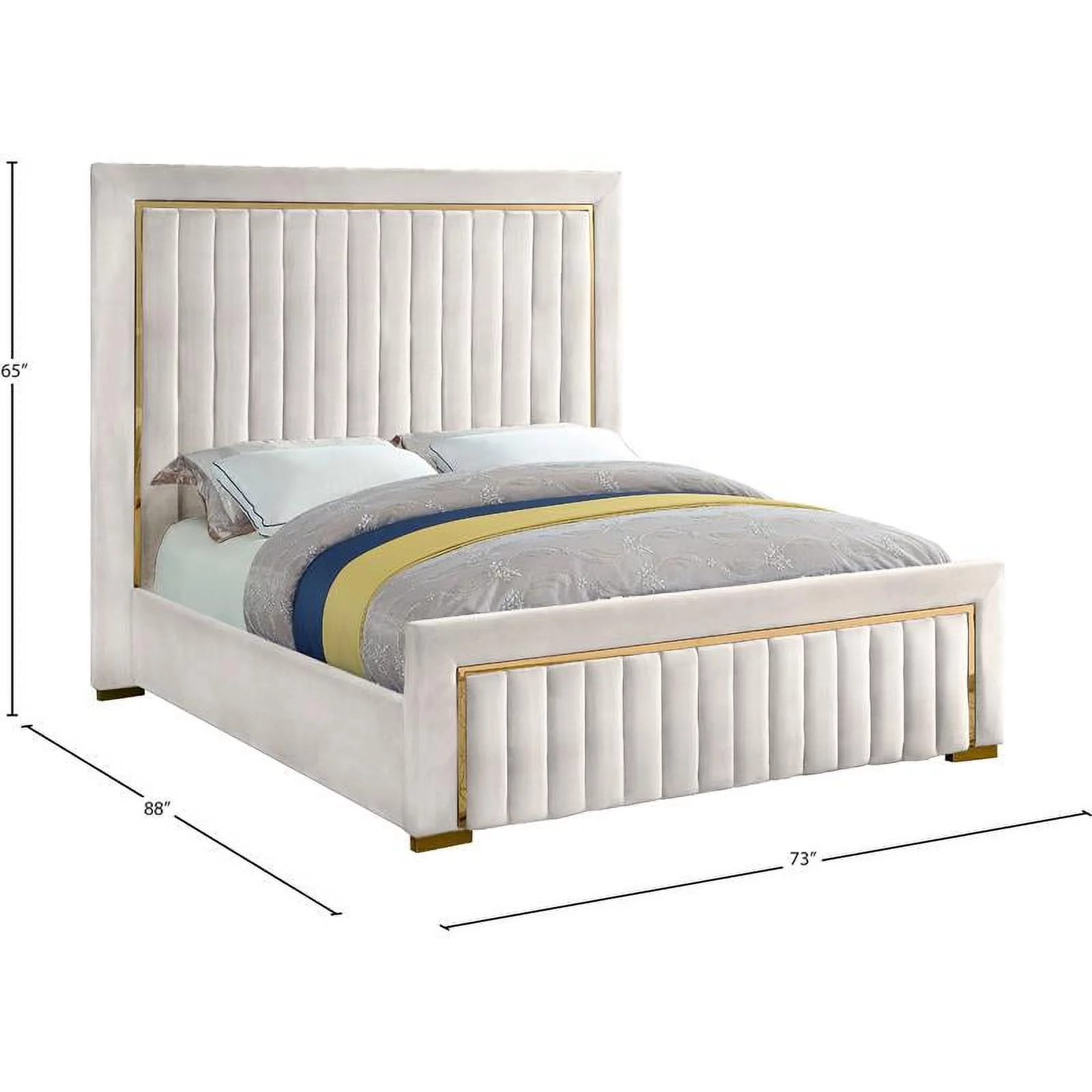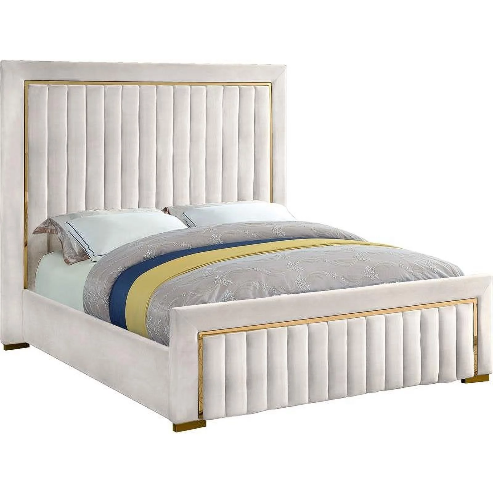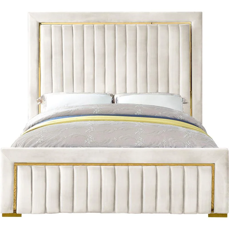 Meridian Furniture Lily Solid Wood and Tufted Velvet Full Bed in Cream