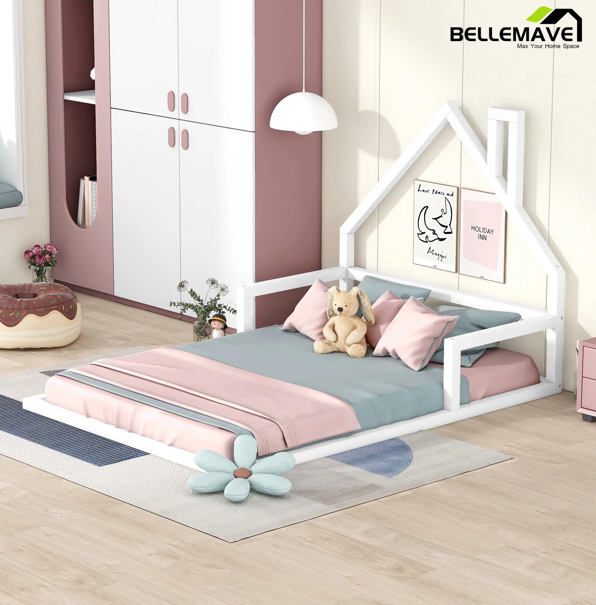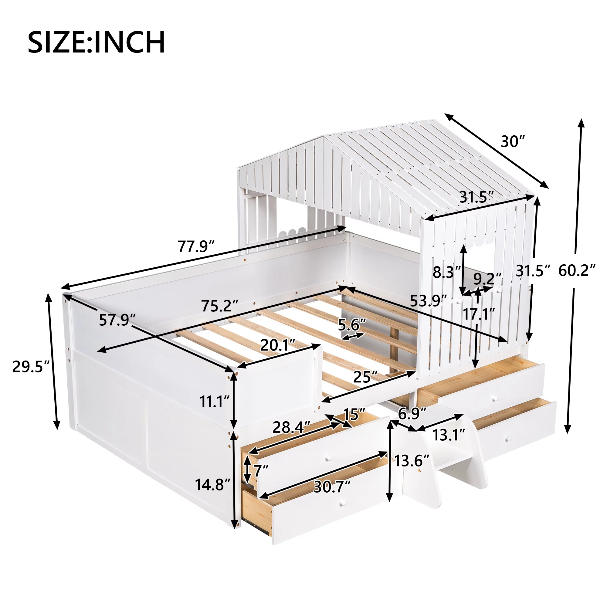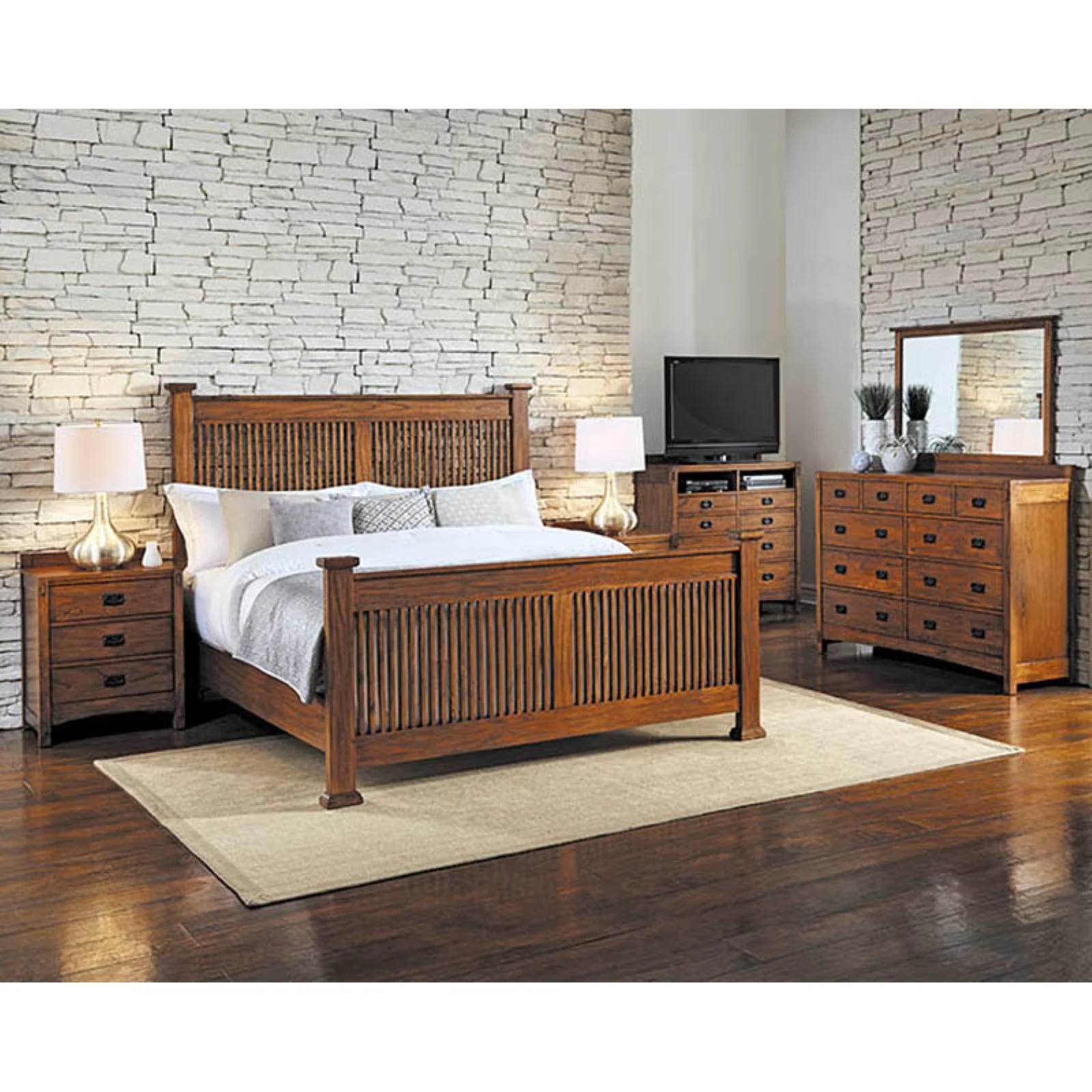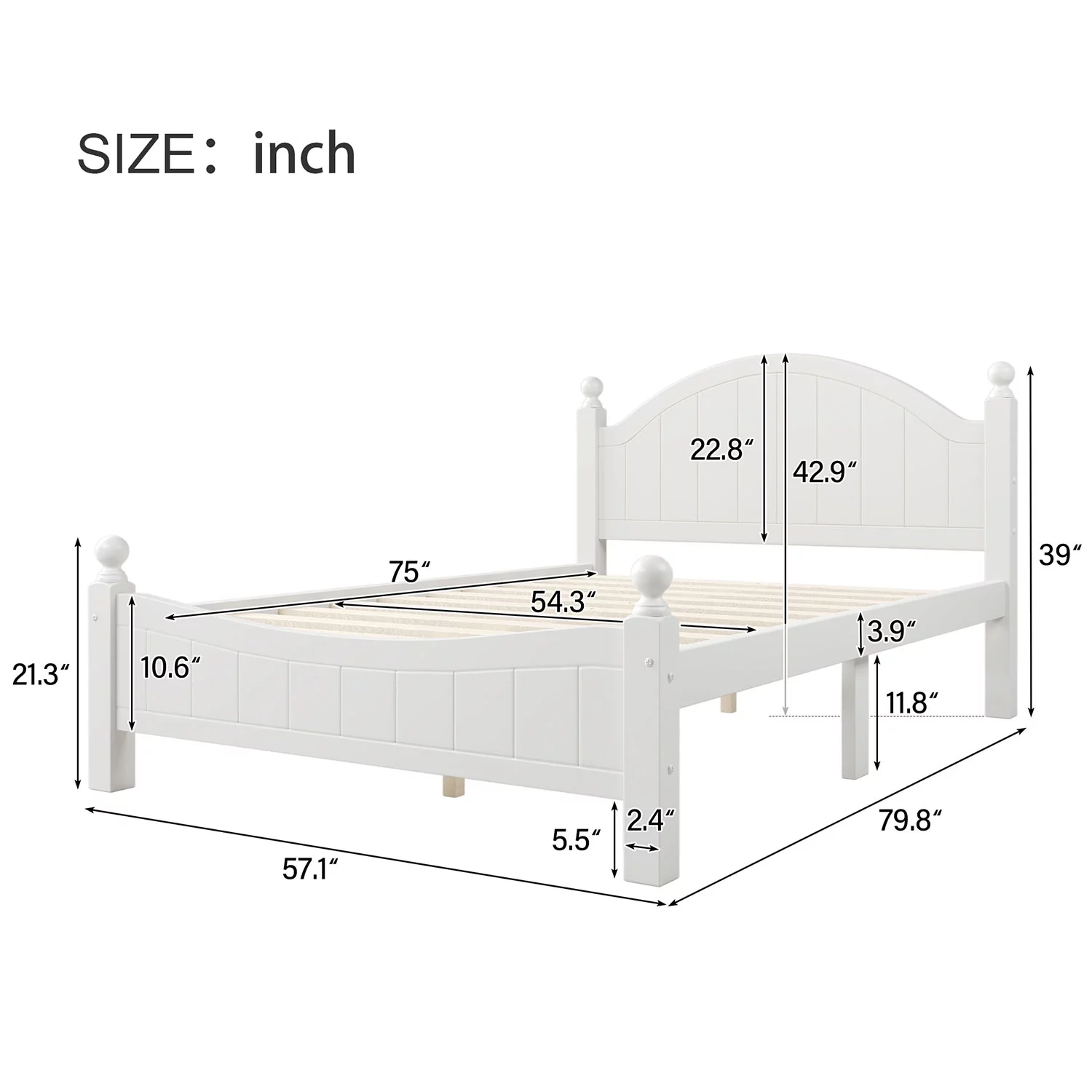 Leo & Lacey Farmhouse Solid Wood Full Platform Bed w/ USB Charger in White