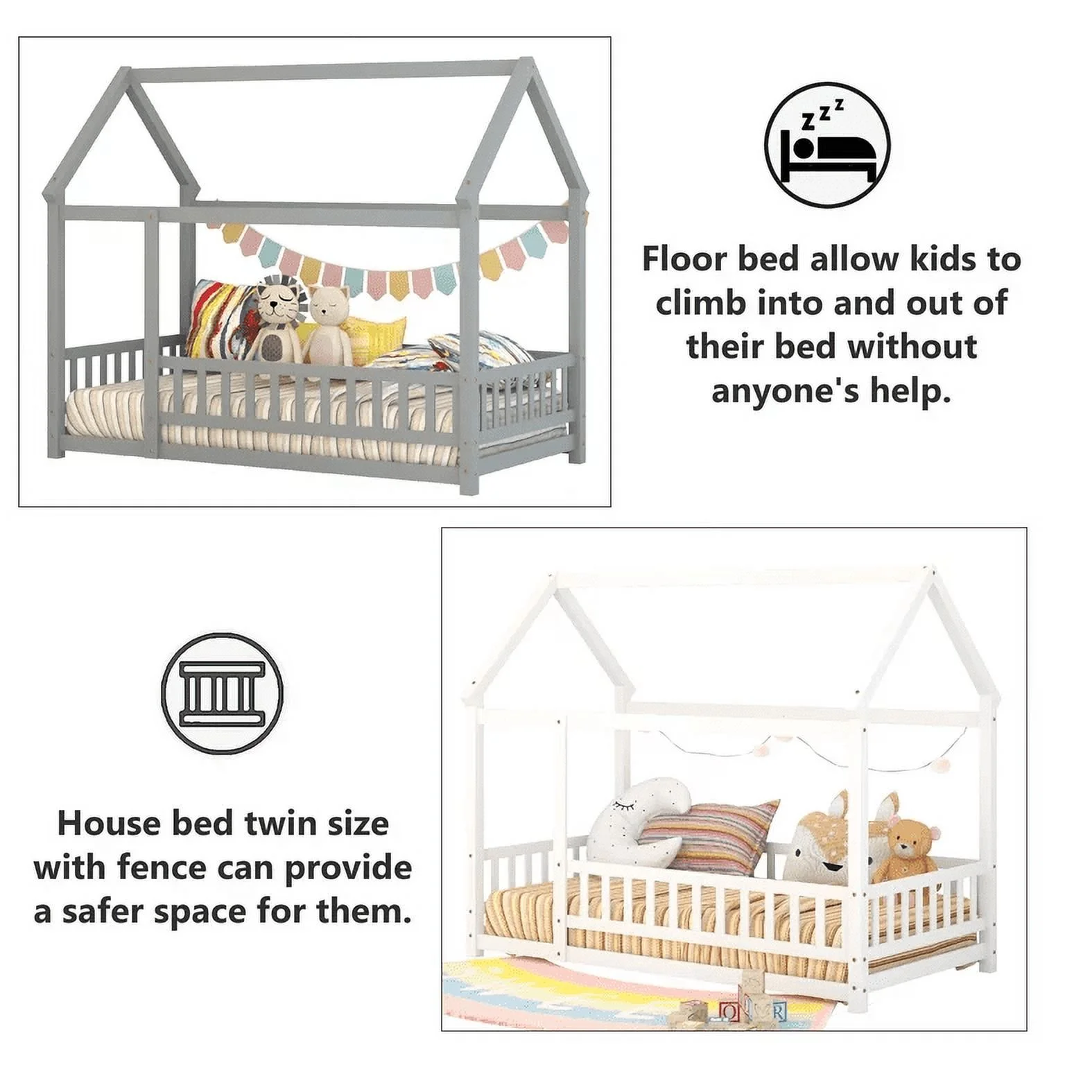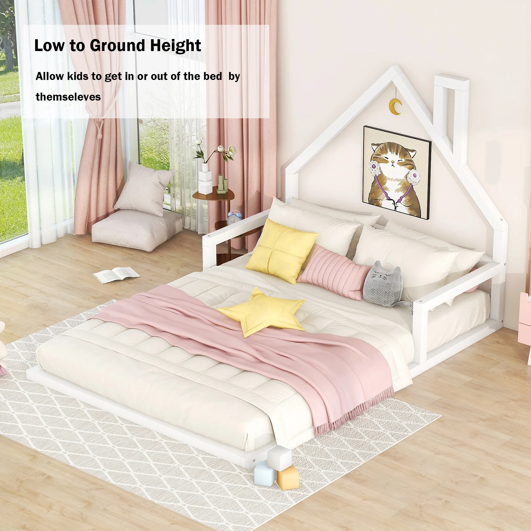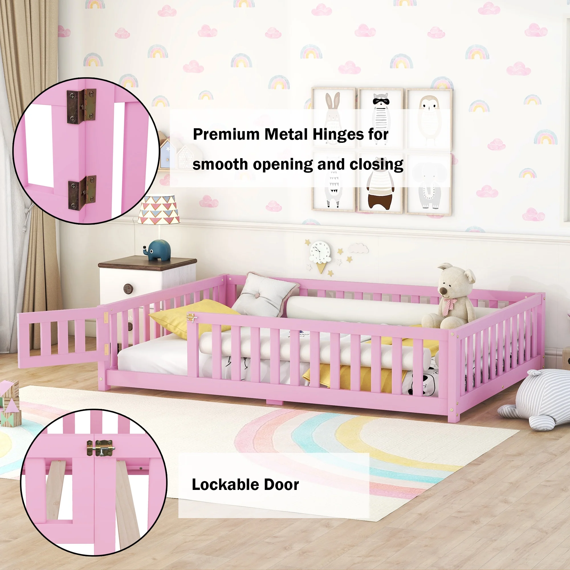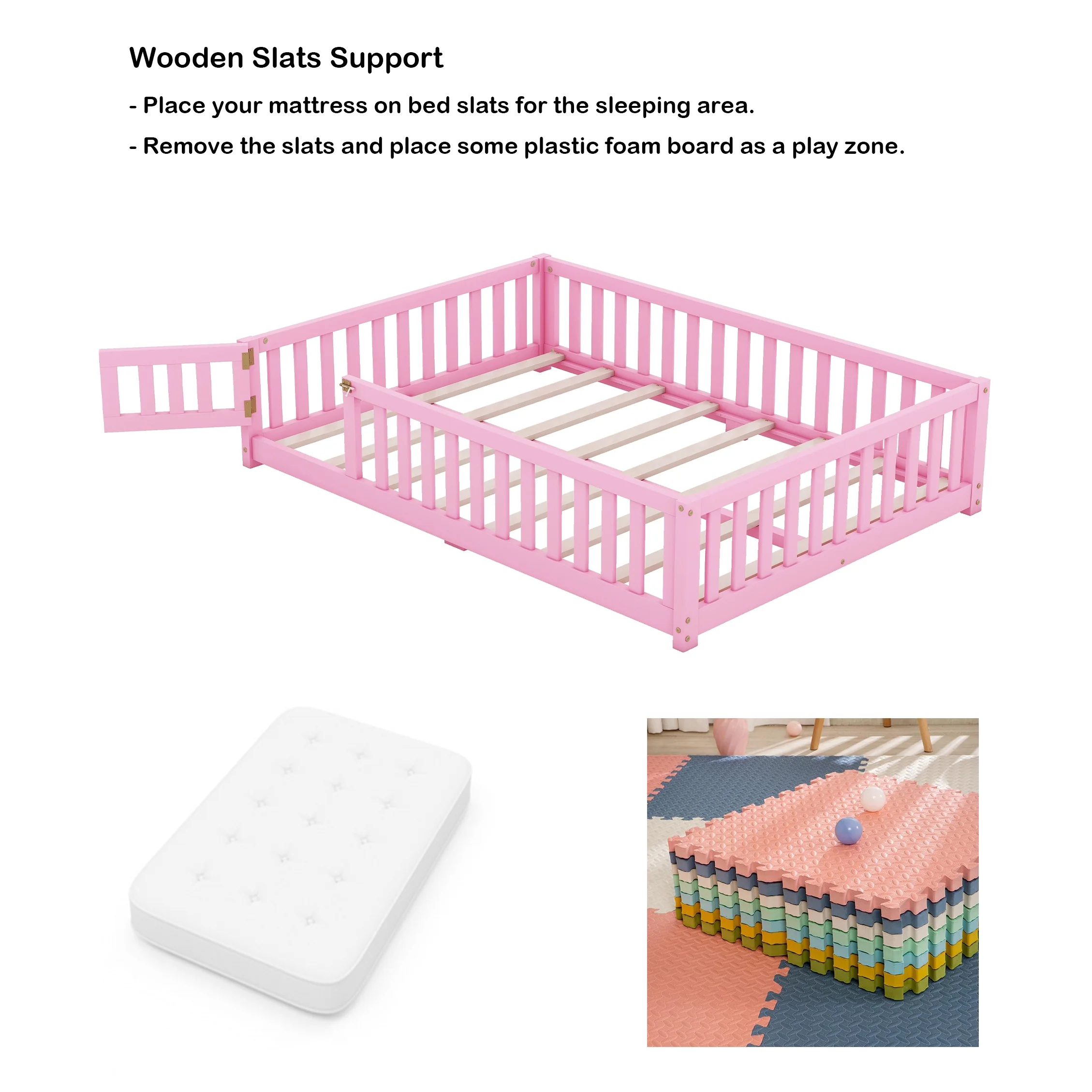 Leo & Lacey Farmhouse Solid Wood Full Platform Bed w/ USB Charger in White