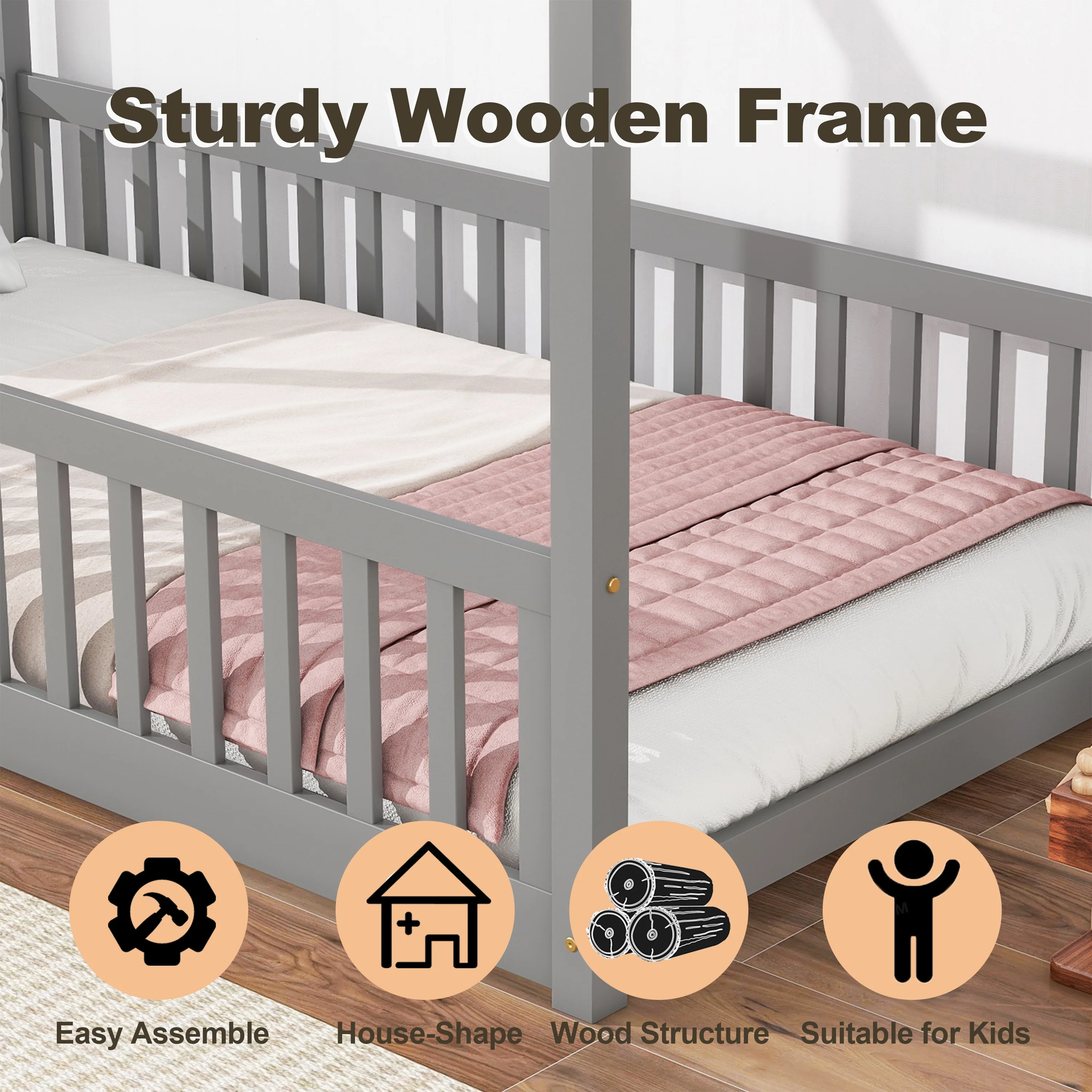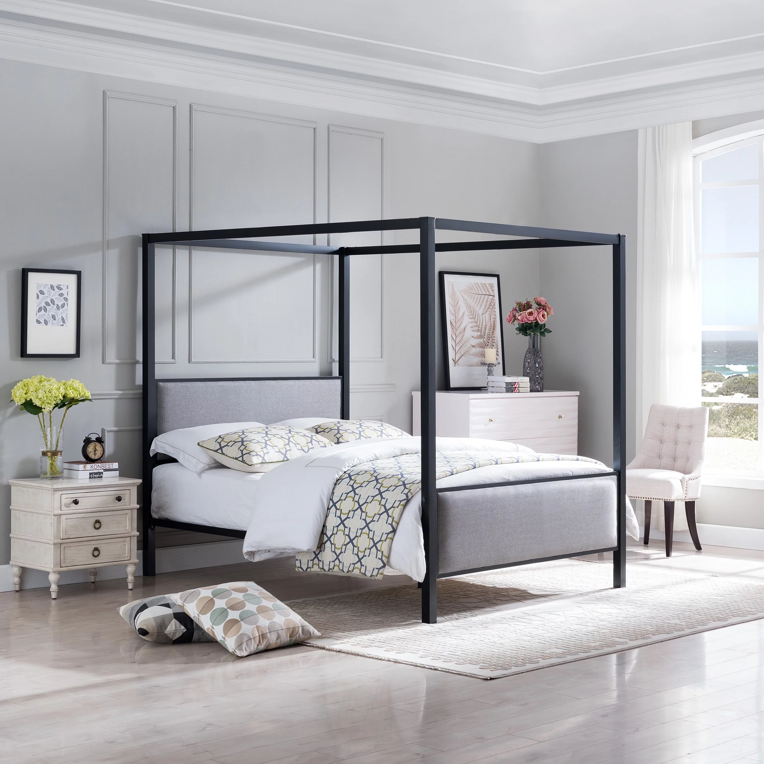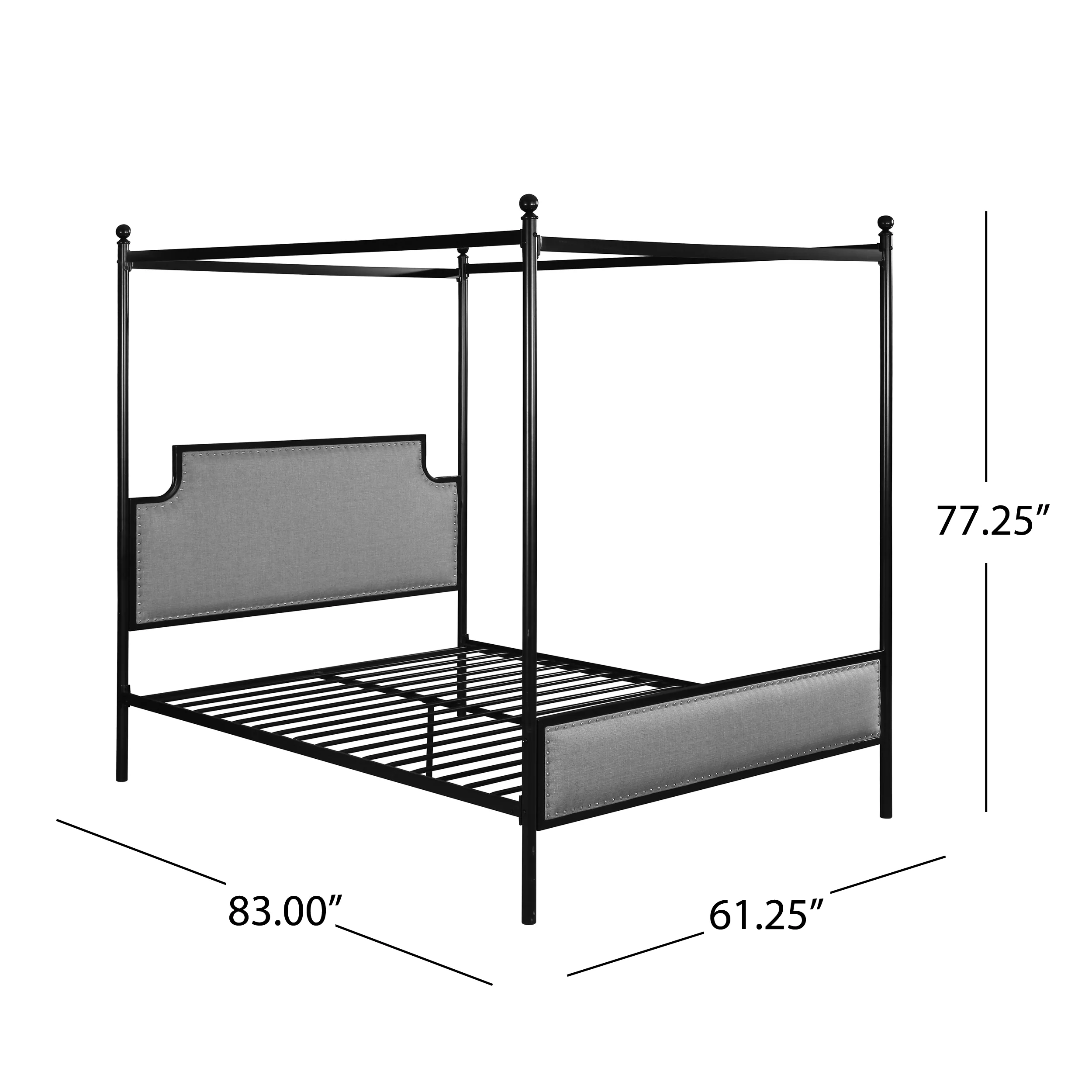 GDF Studio Cabot Contemporary Fabric Queen Canopy Bed Frame, Gray and Flat Black