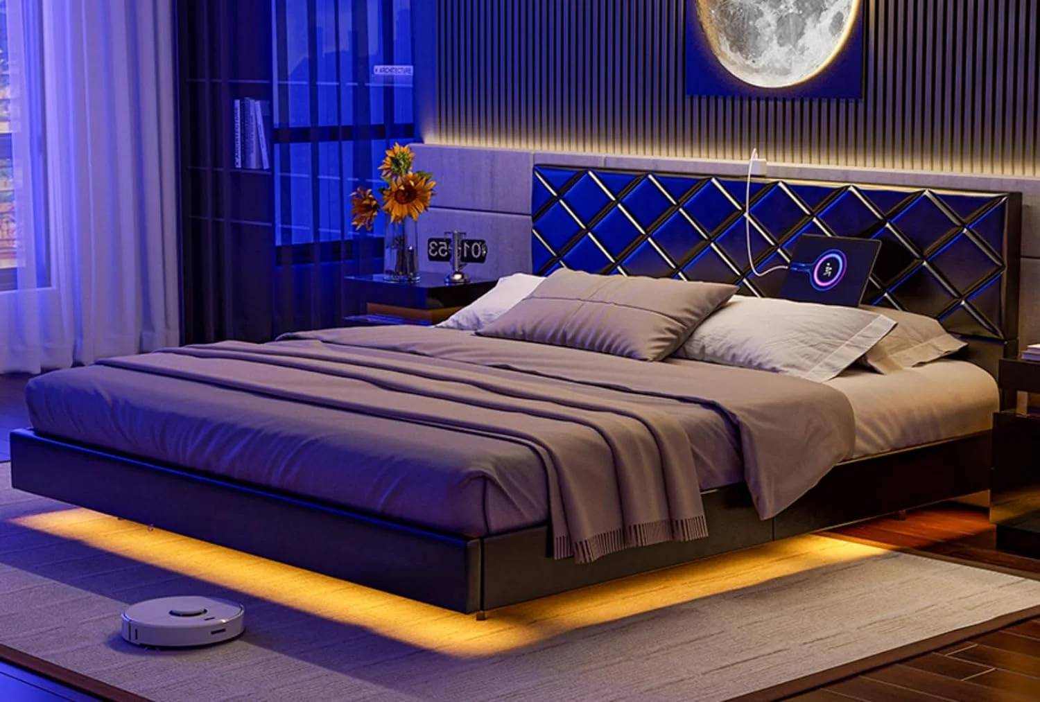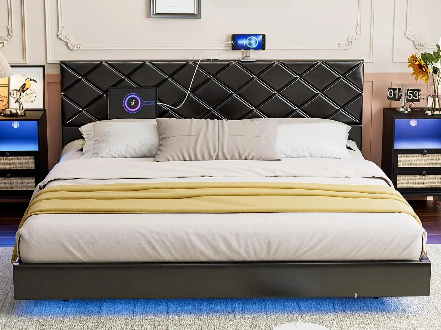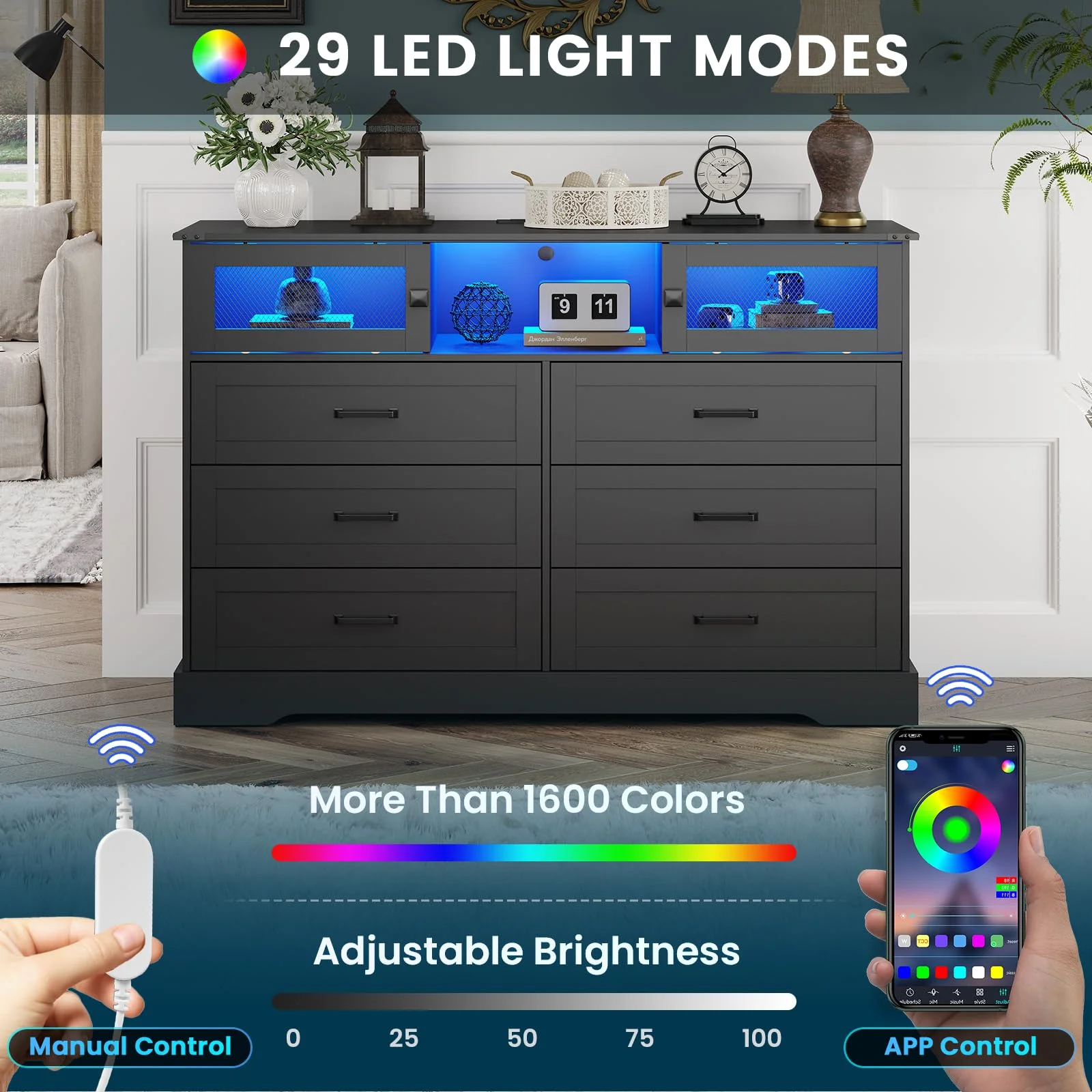 Weiplehoom 6 Drawers Dresser with LED Lights and Charging Station, Black