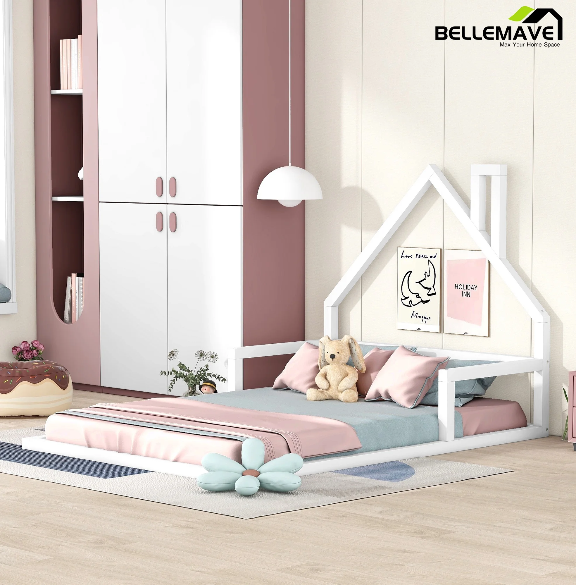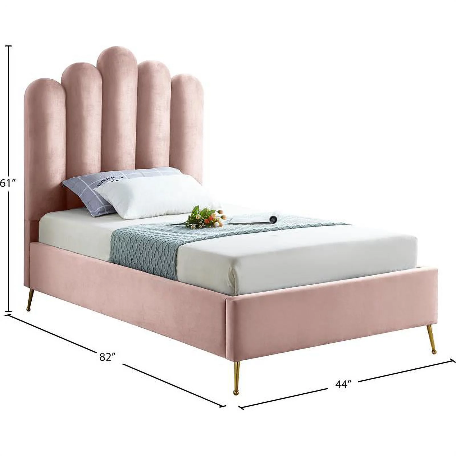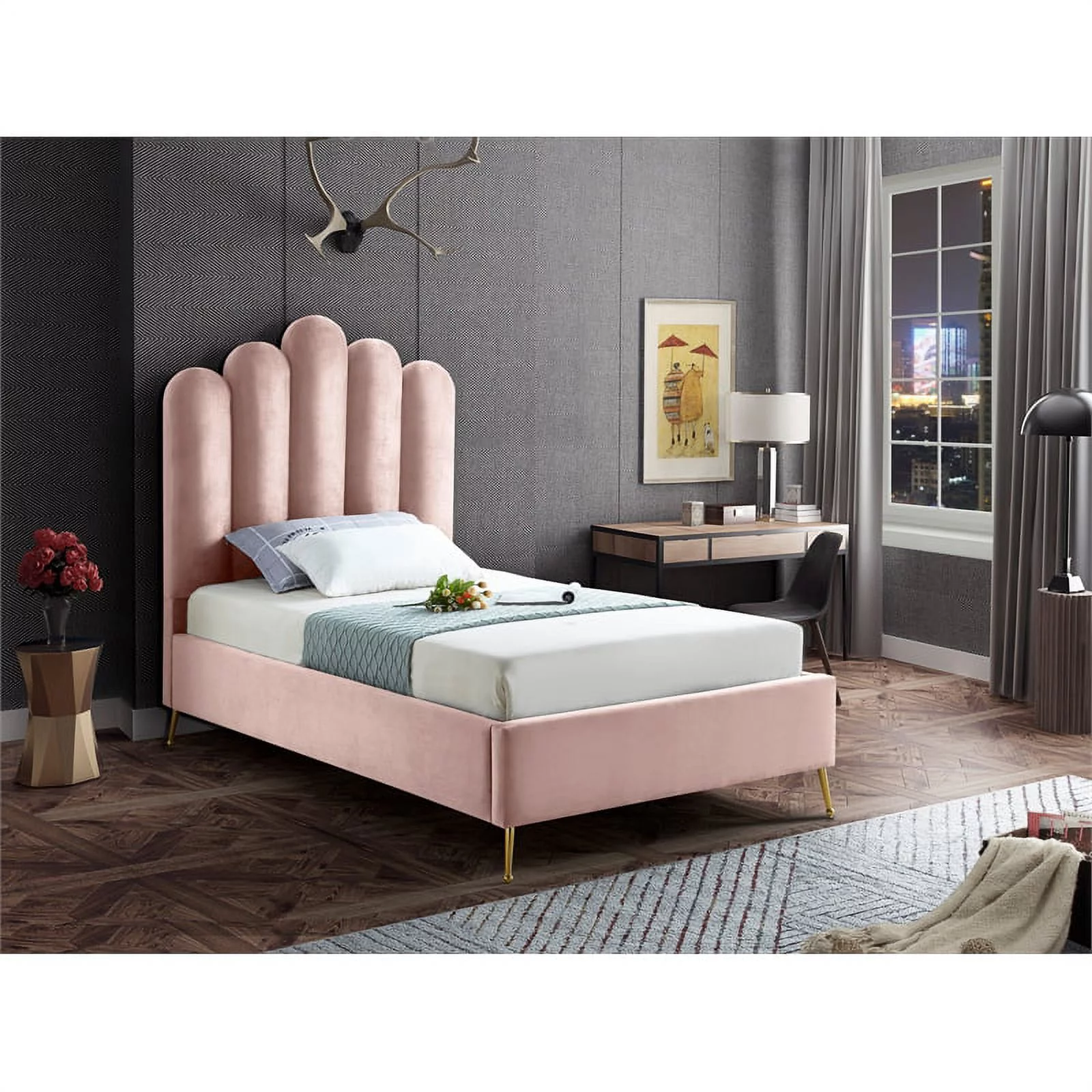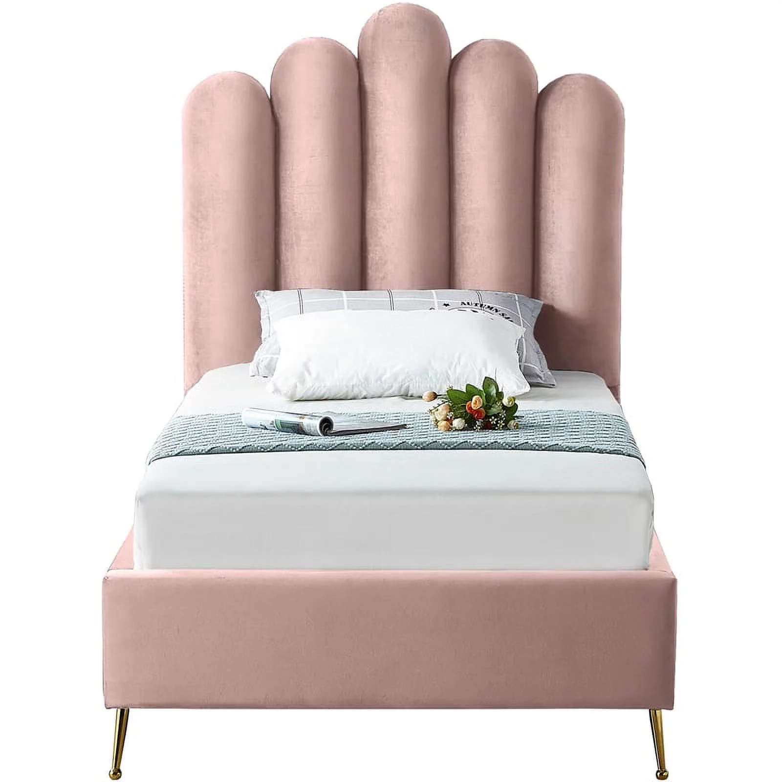 Meridian Furniture Lily Solid Wood and Tufted Velvet Twin Bed in Pink