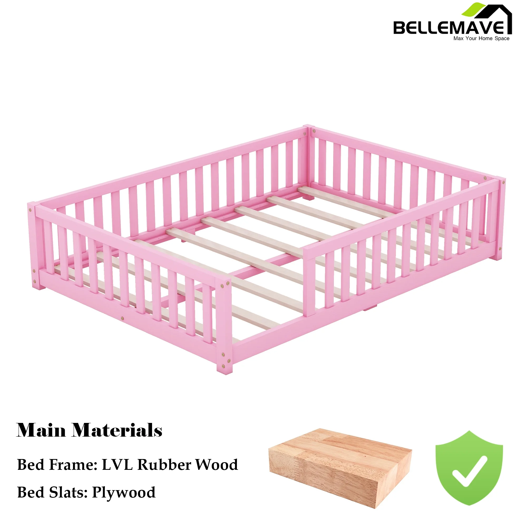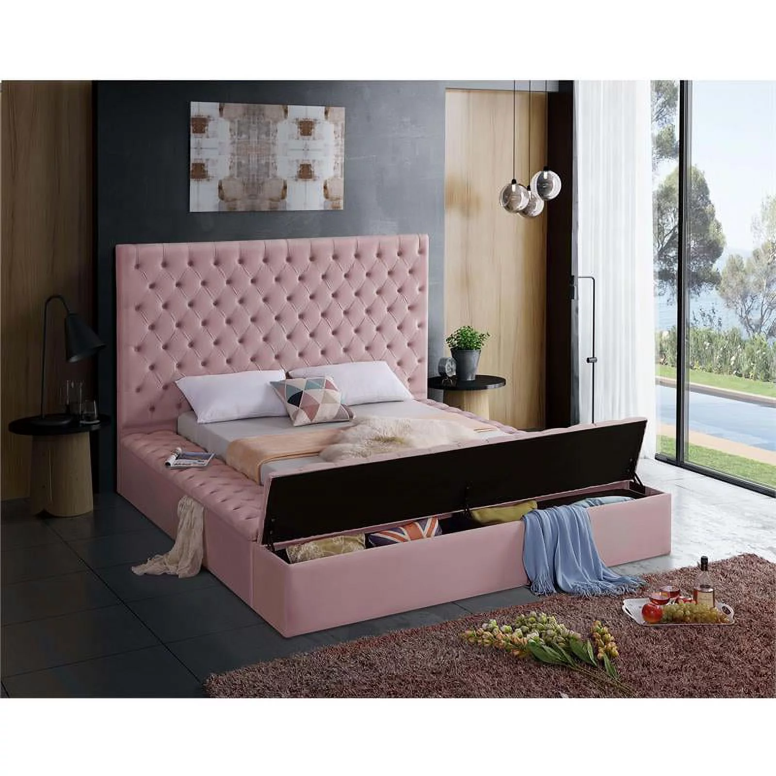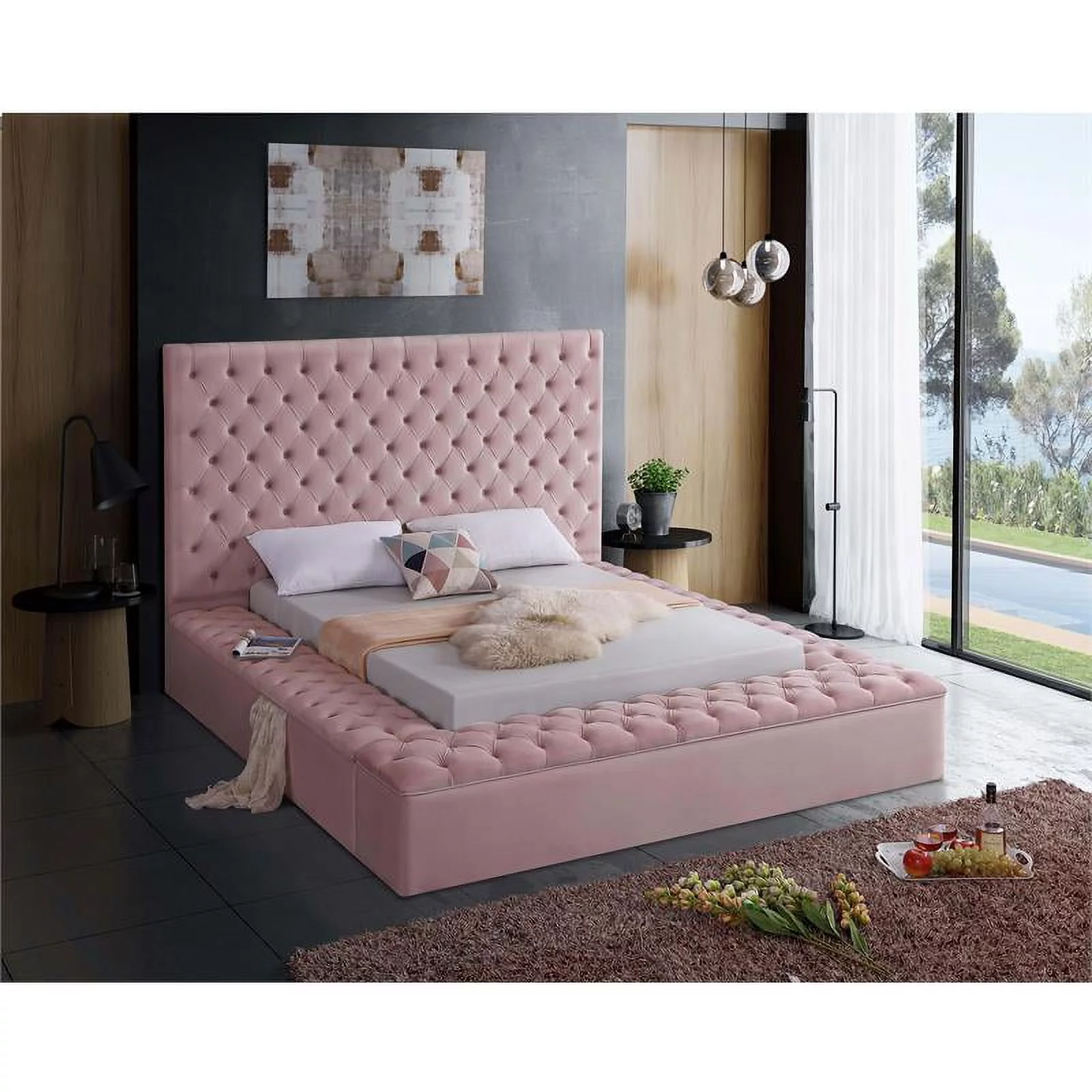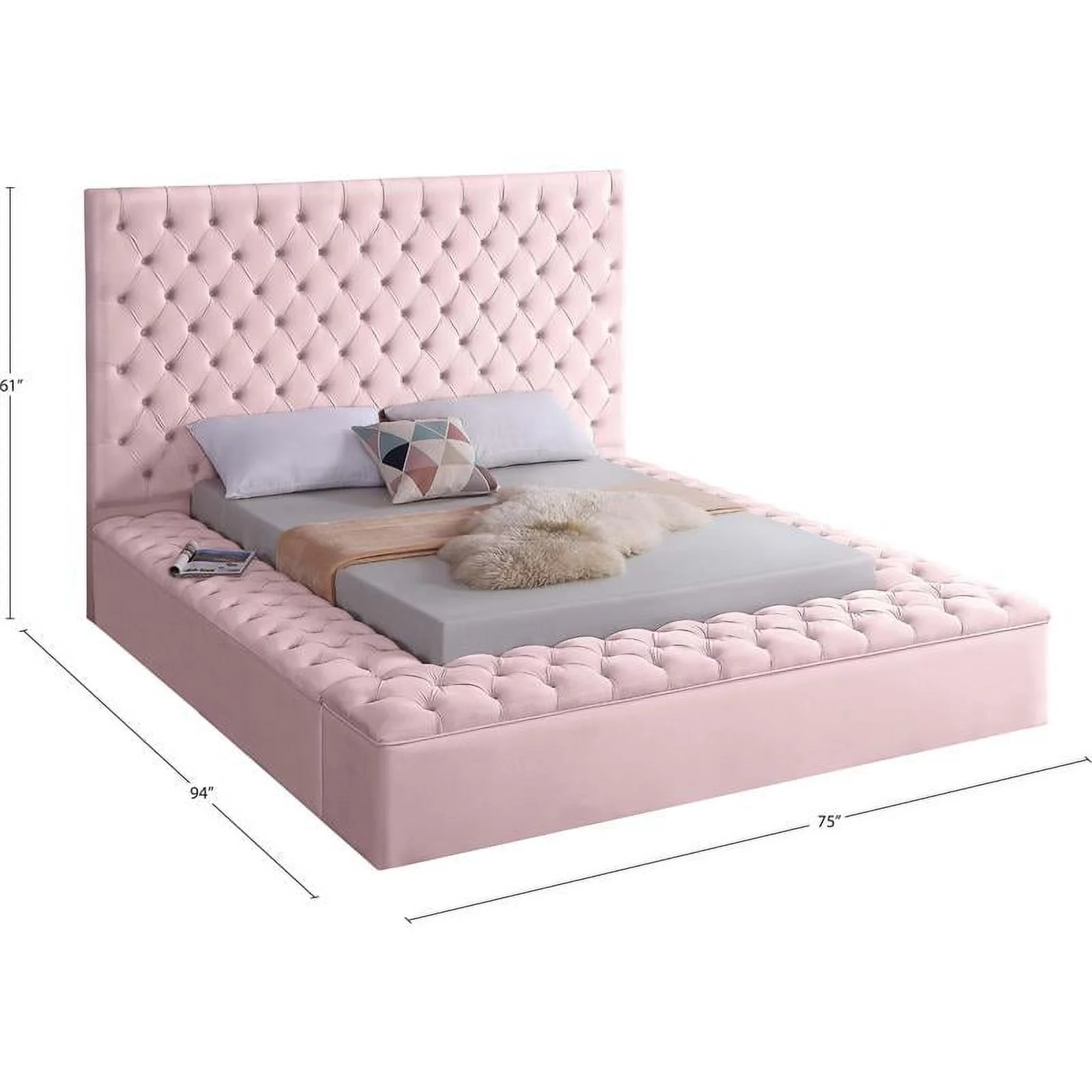 Meridian Furniture Bliss Solid Wood Tufted Velvet Full Bed in Pink