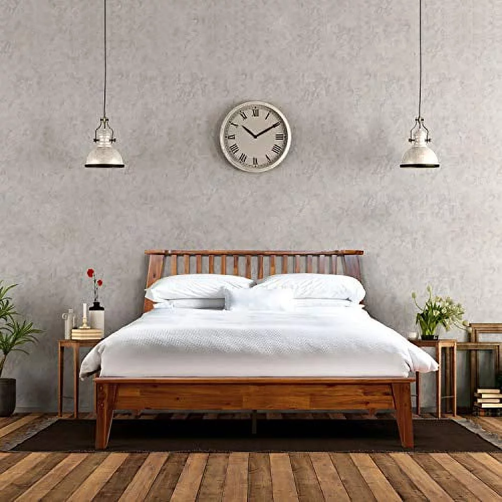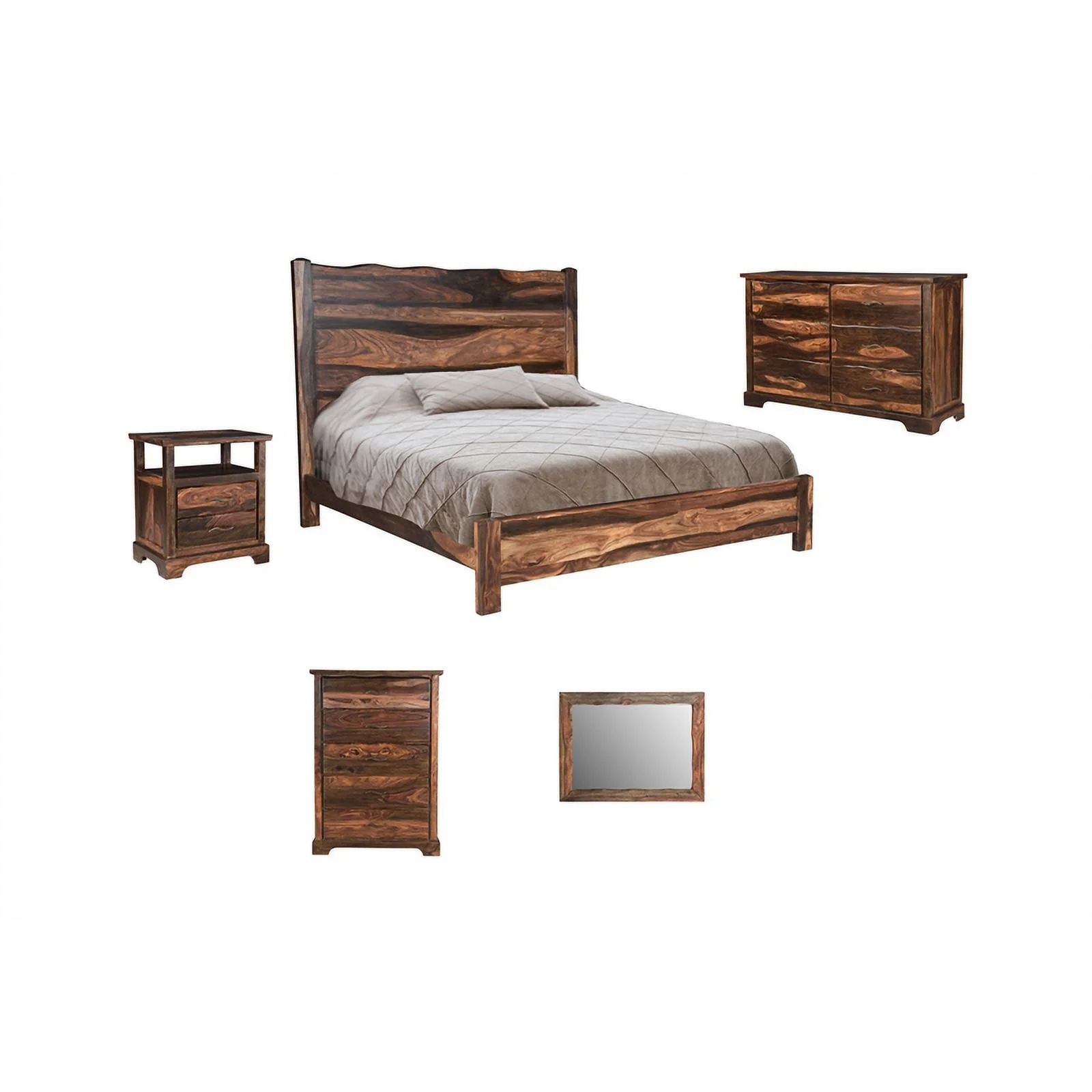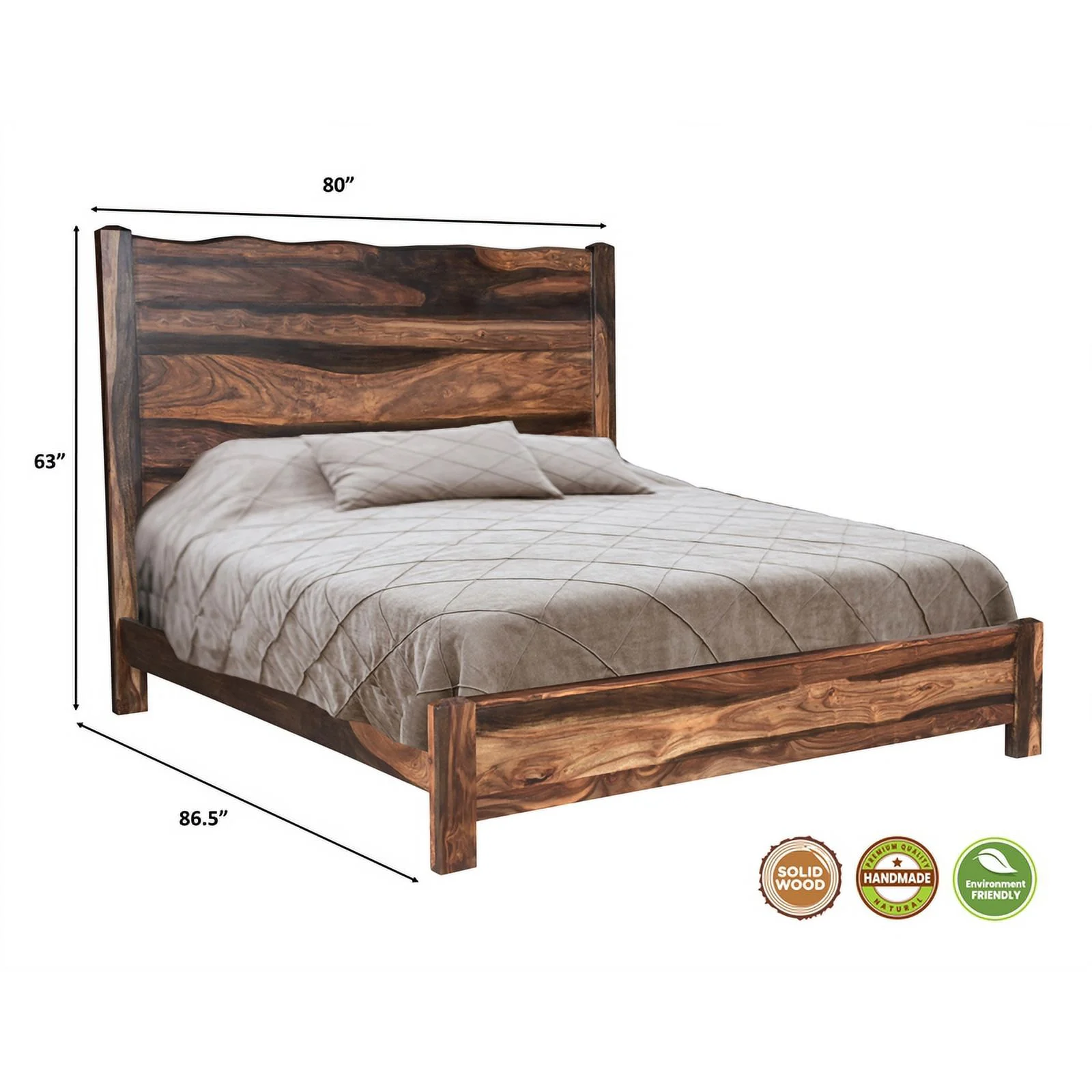 Taran Designs Darcy Live Edge Solid Wood King Panel Bed in Dark Brown