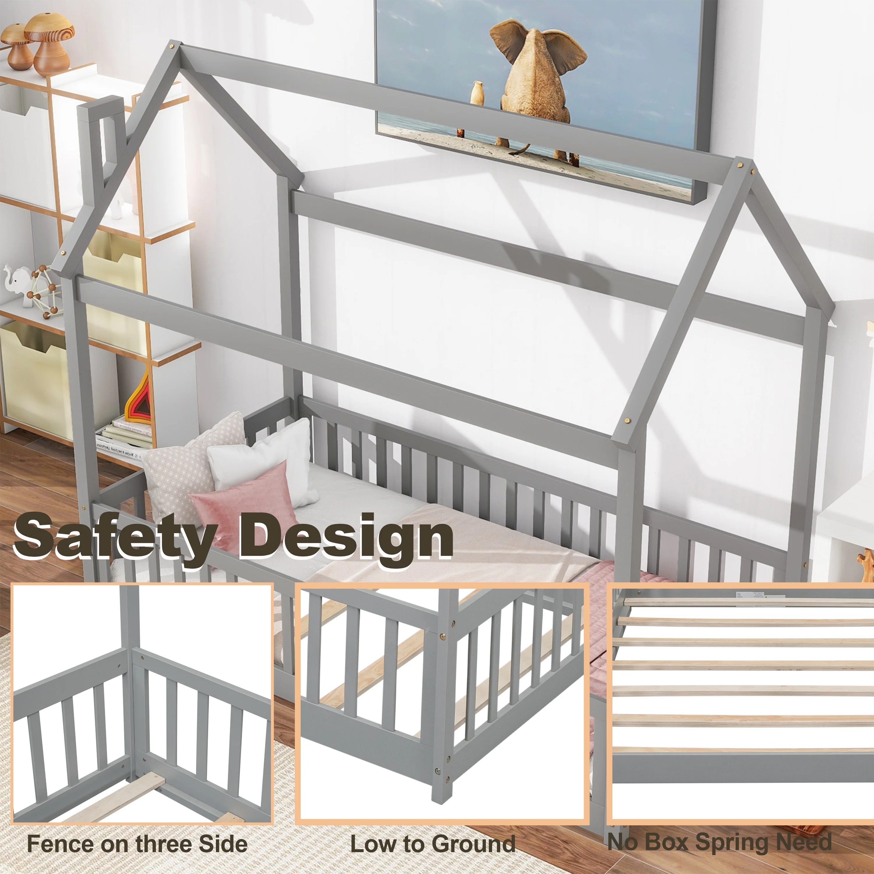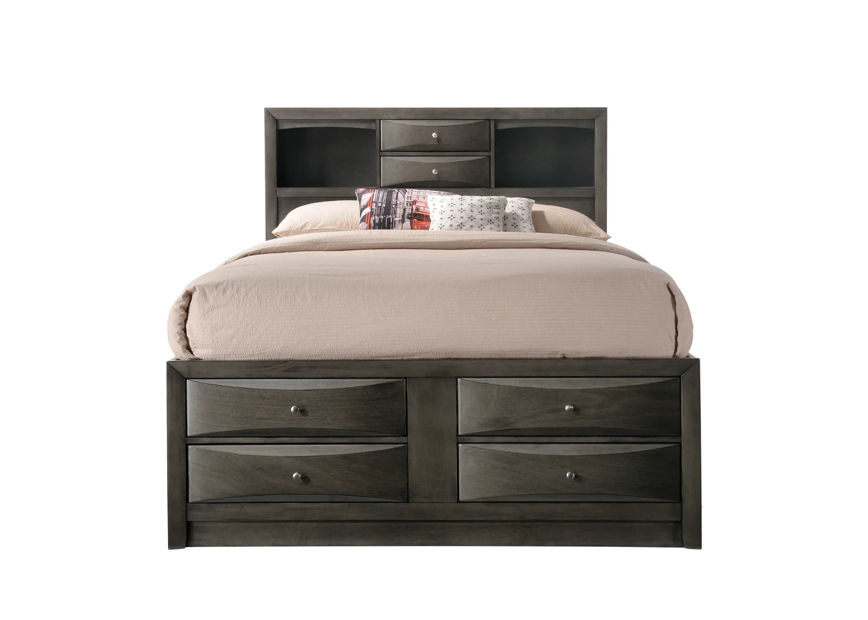 Contemporary Gray Finish 1pc King Size Captains Bed Storage Drawers Solid Wood Bedroom Furniture