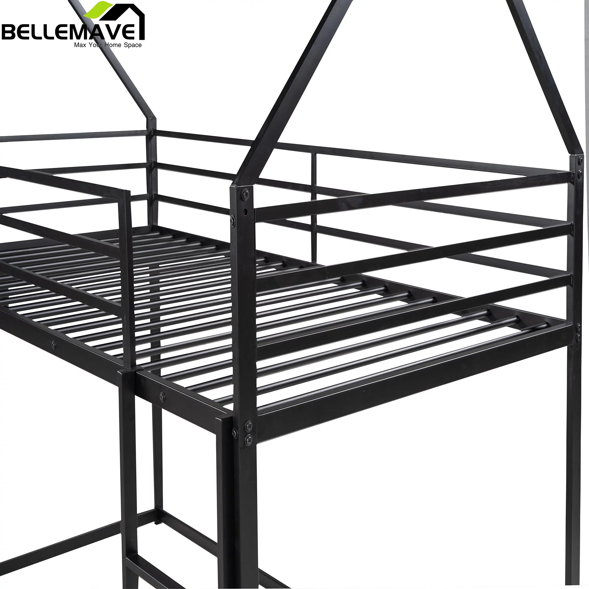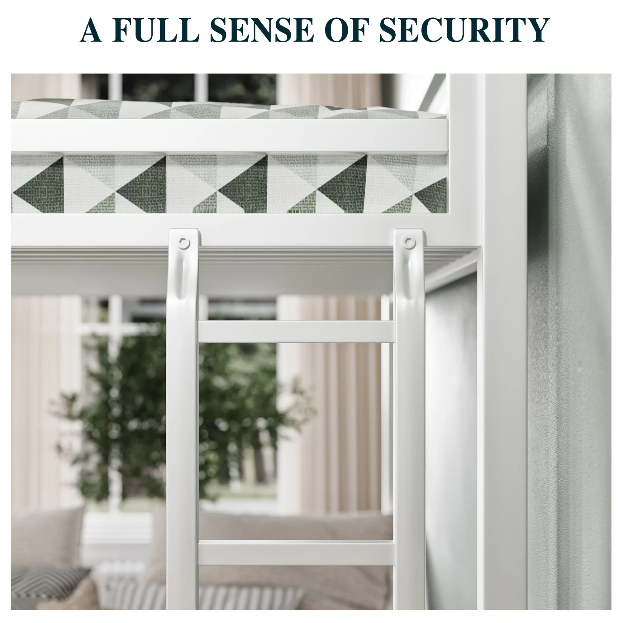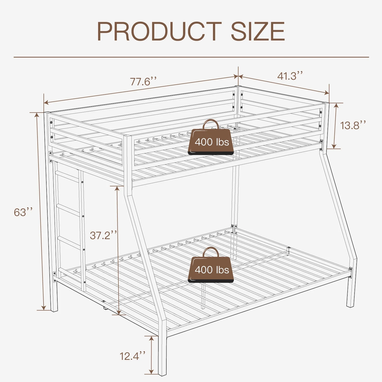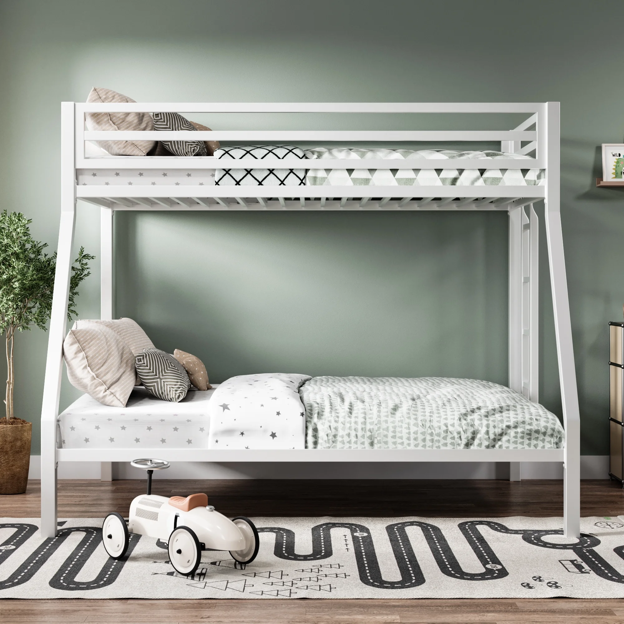 Sha Cerlin White Metal Bunk Bed Twin Over Full Size with Removable Durable Stairs