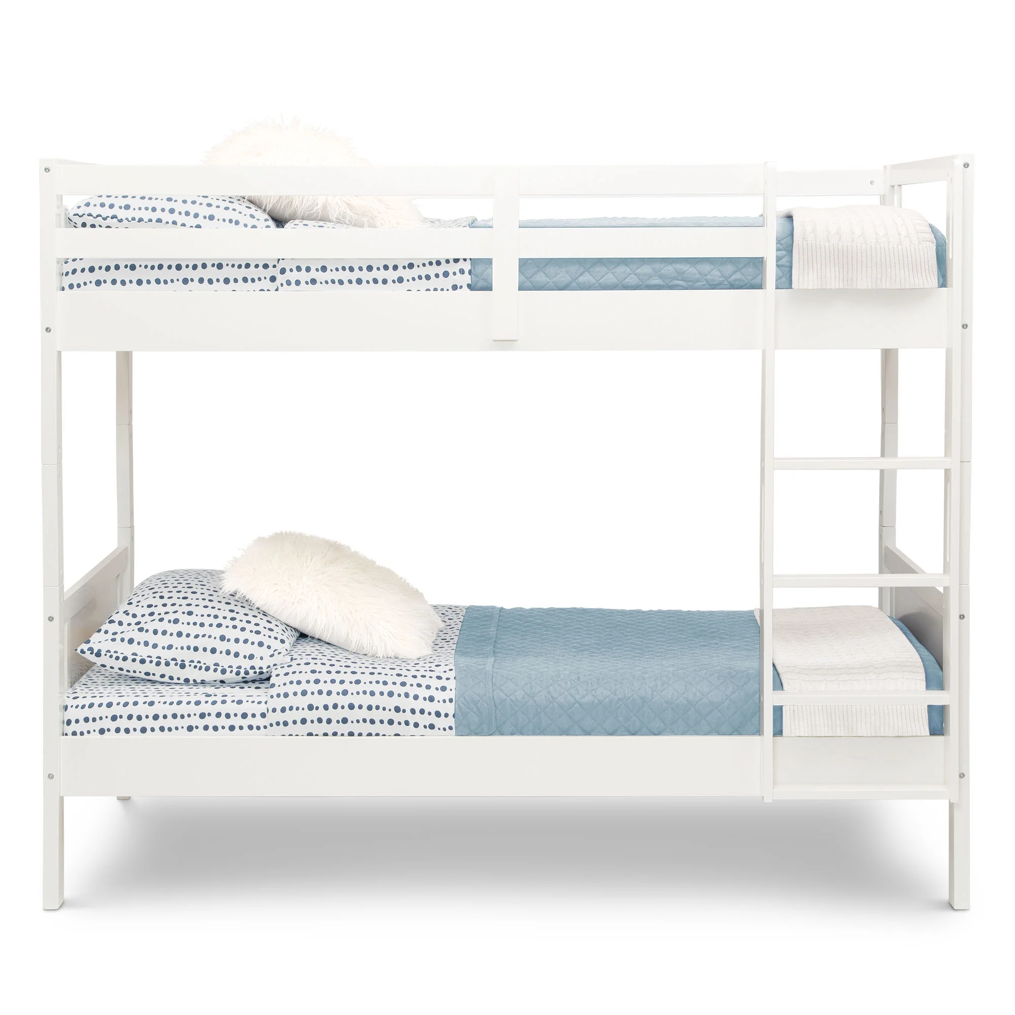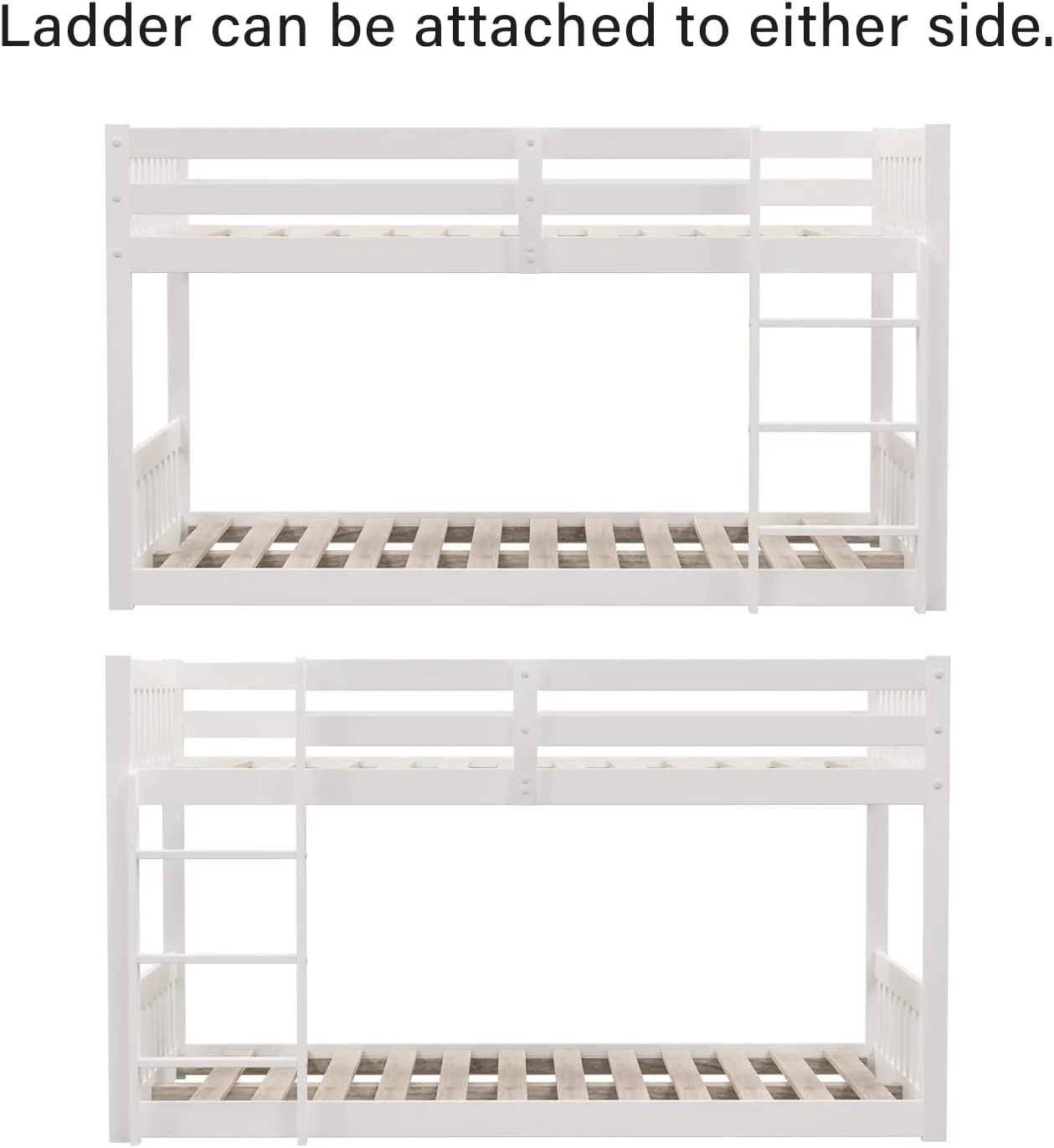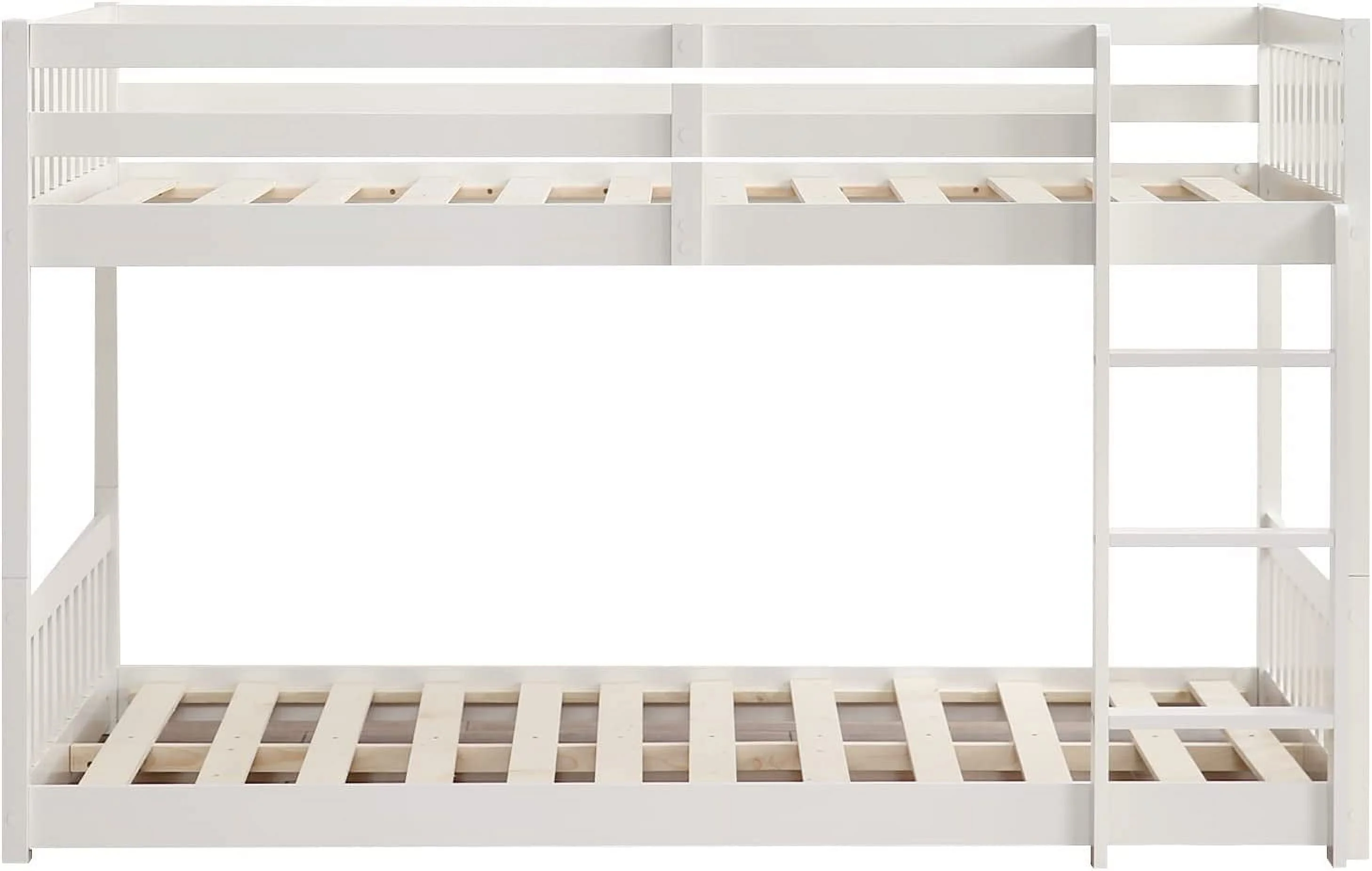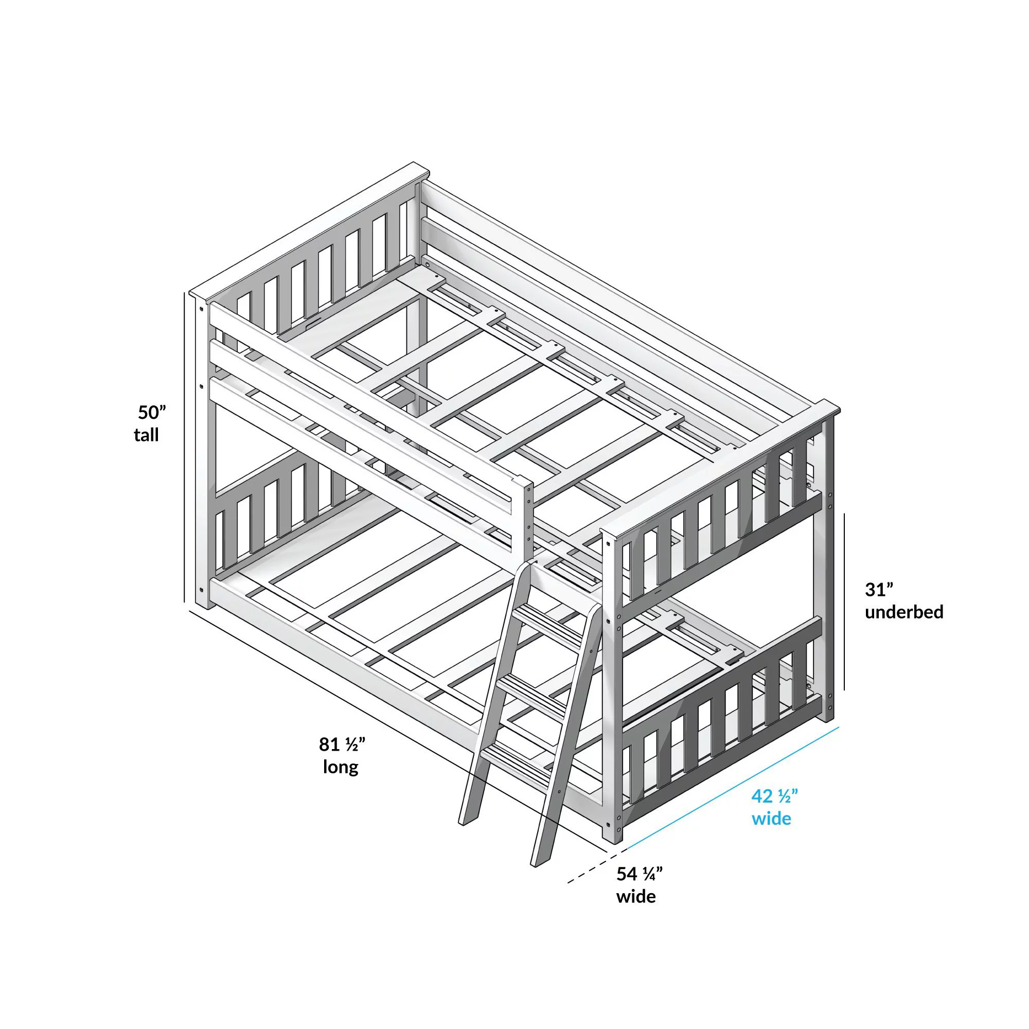 Max & Lily Twin Over Twin Low Bunk Bed, Modern Farmhouse Wooden Bunk Beds for Kids, White Wash