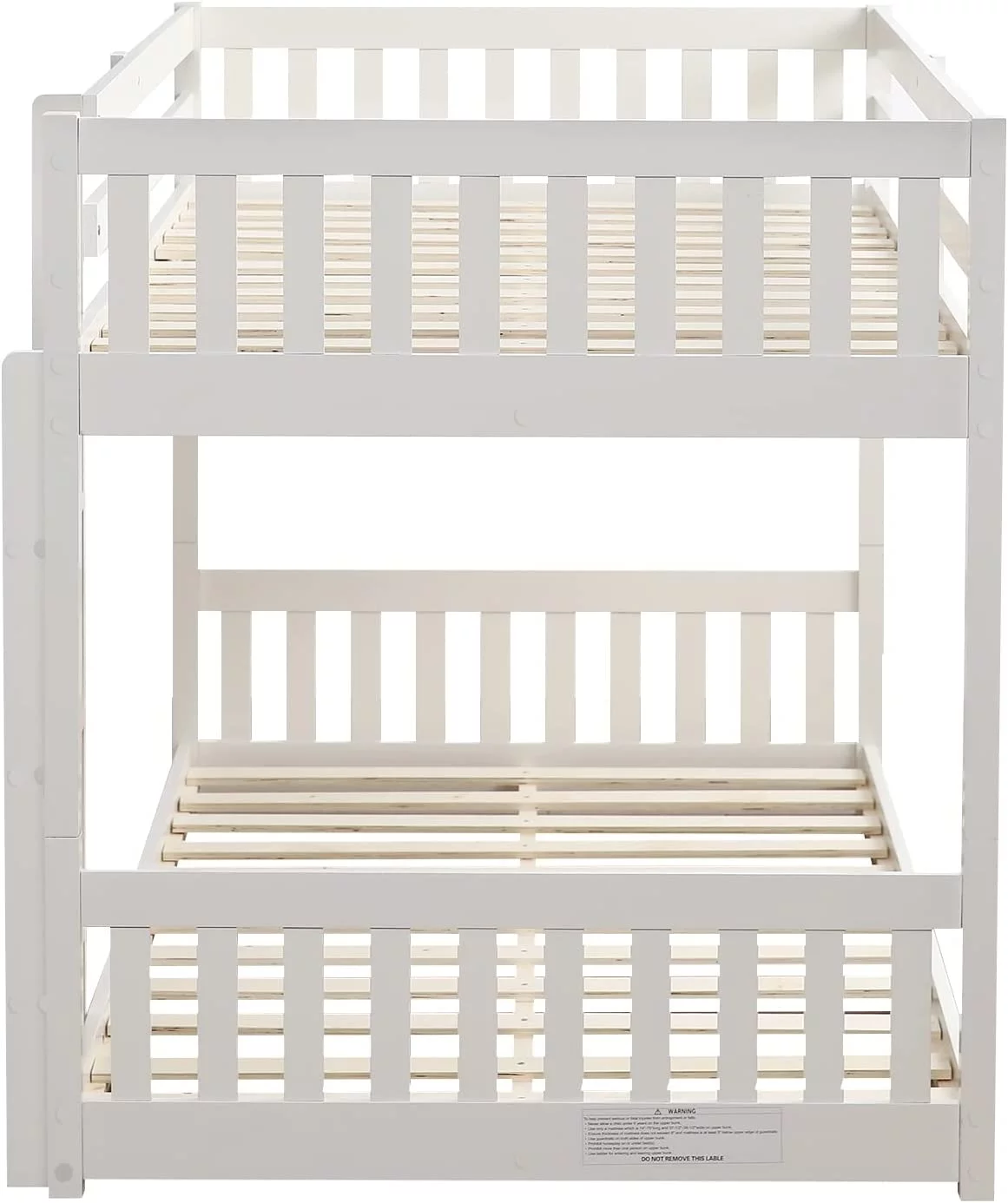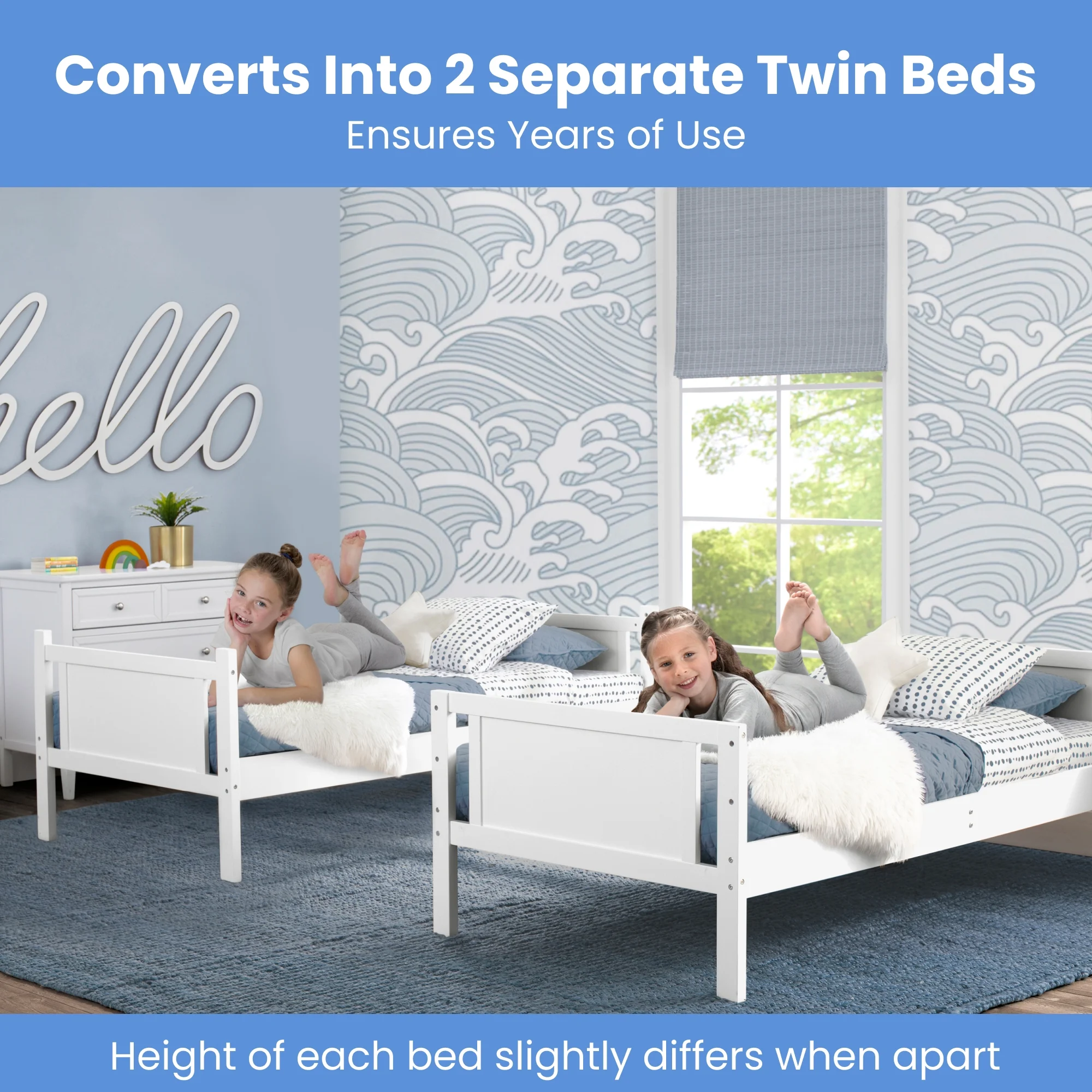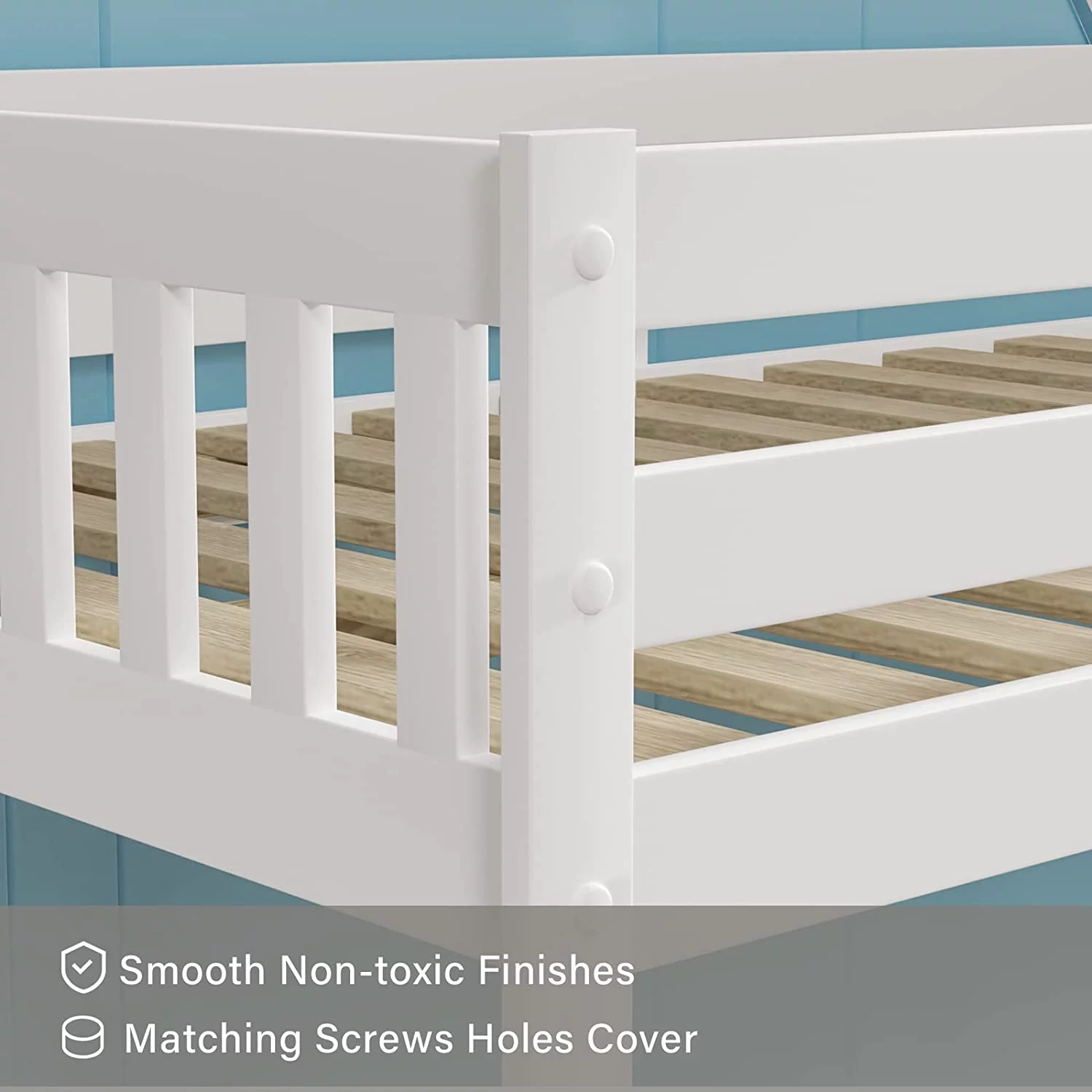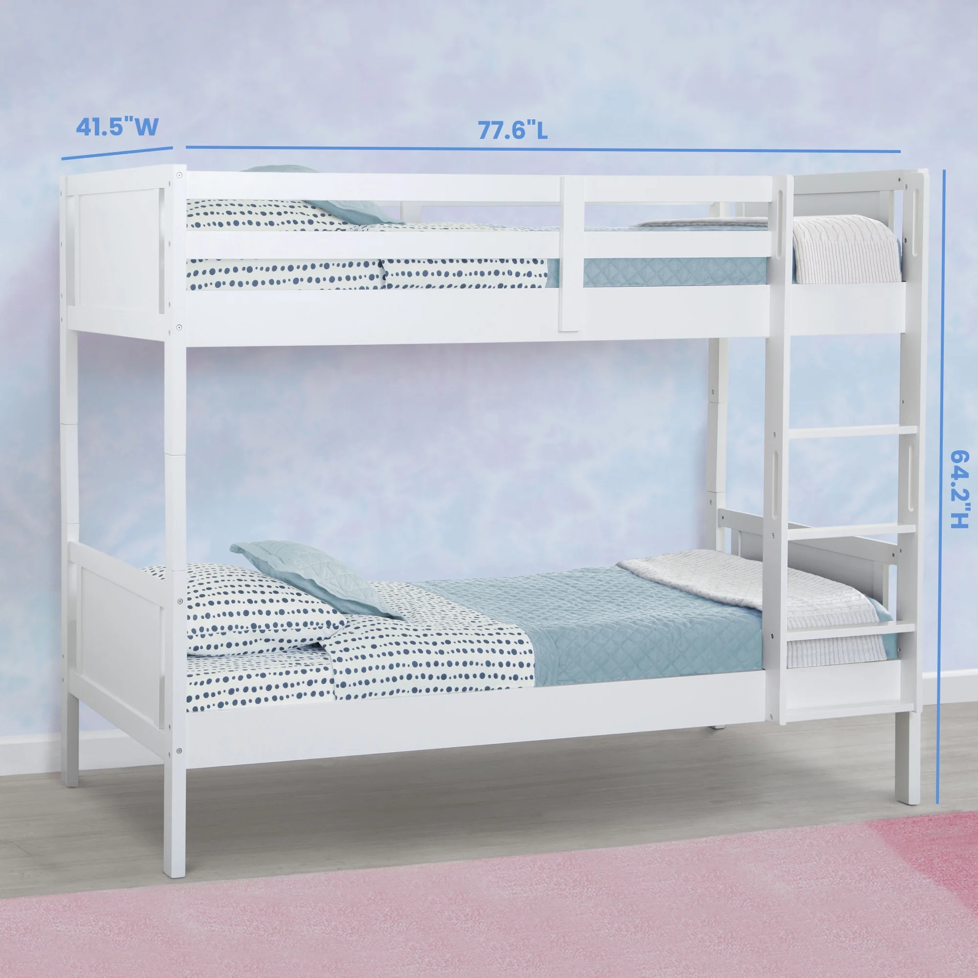 Max & Lily Twin Over Twin Low Bunk Bed, Modern Farmhouse Wooden Bunk Beds for Kids, White Wash