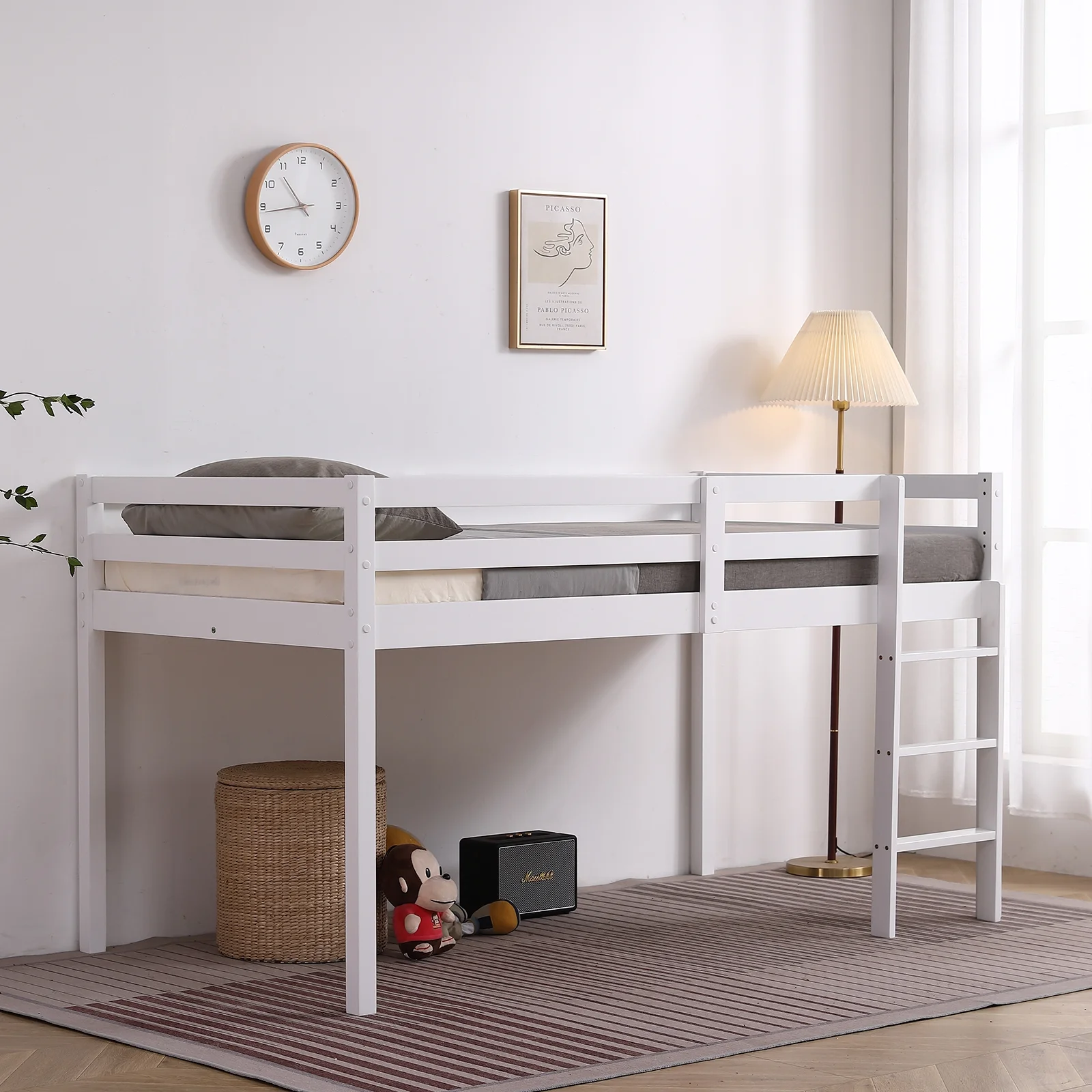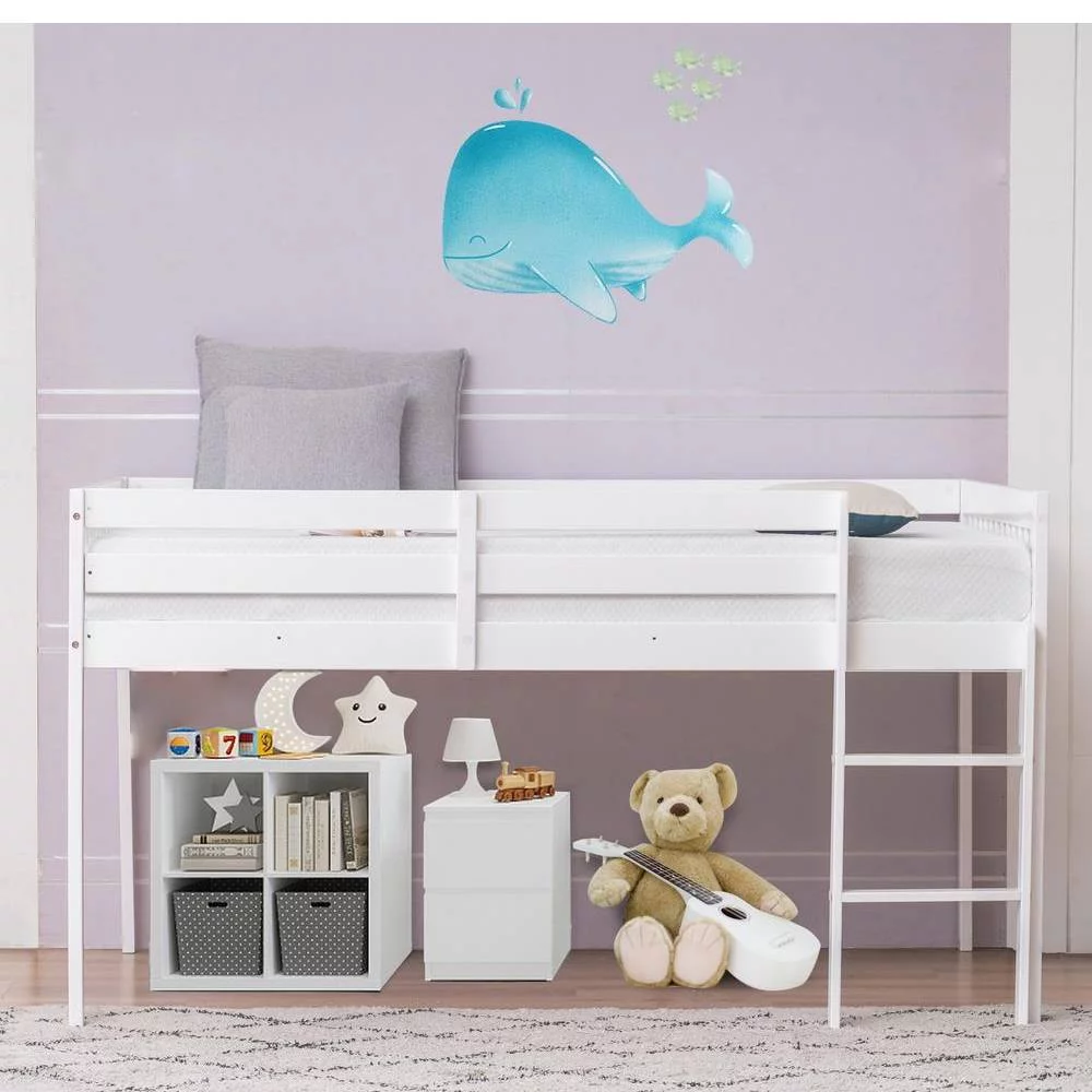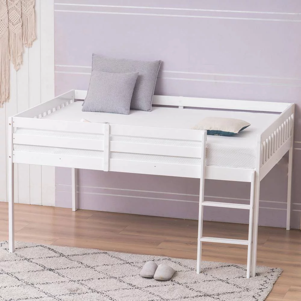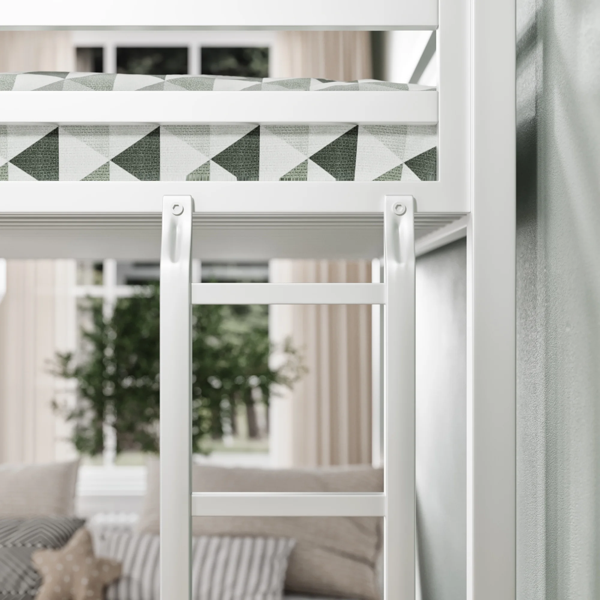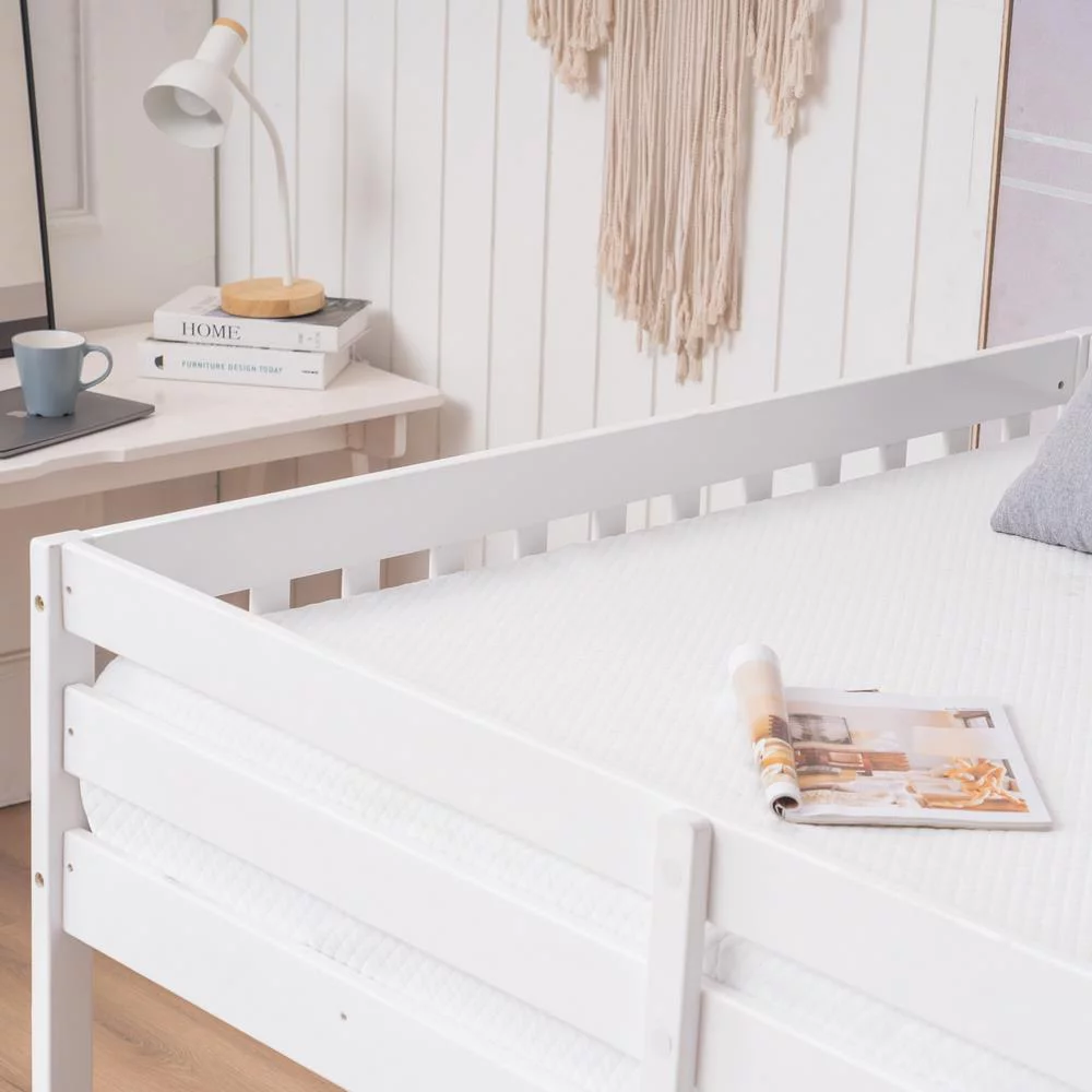 Max & Lily Twin Over Twin Low Bunk Bed, Modern Farmhouse Wooden Bunk Beds for Kids, White Wash