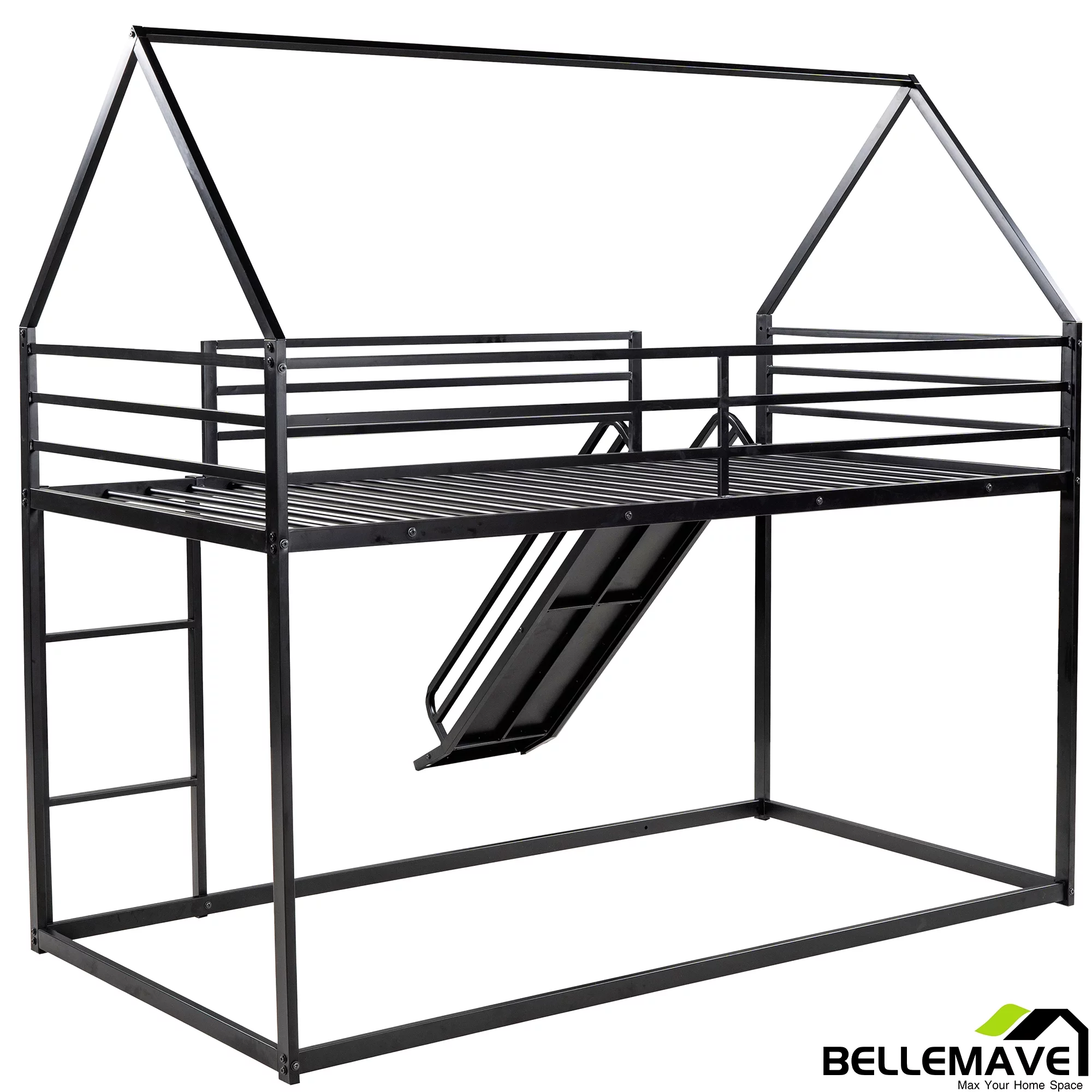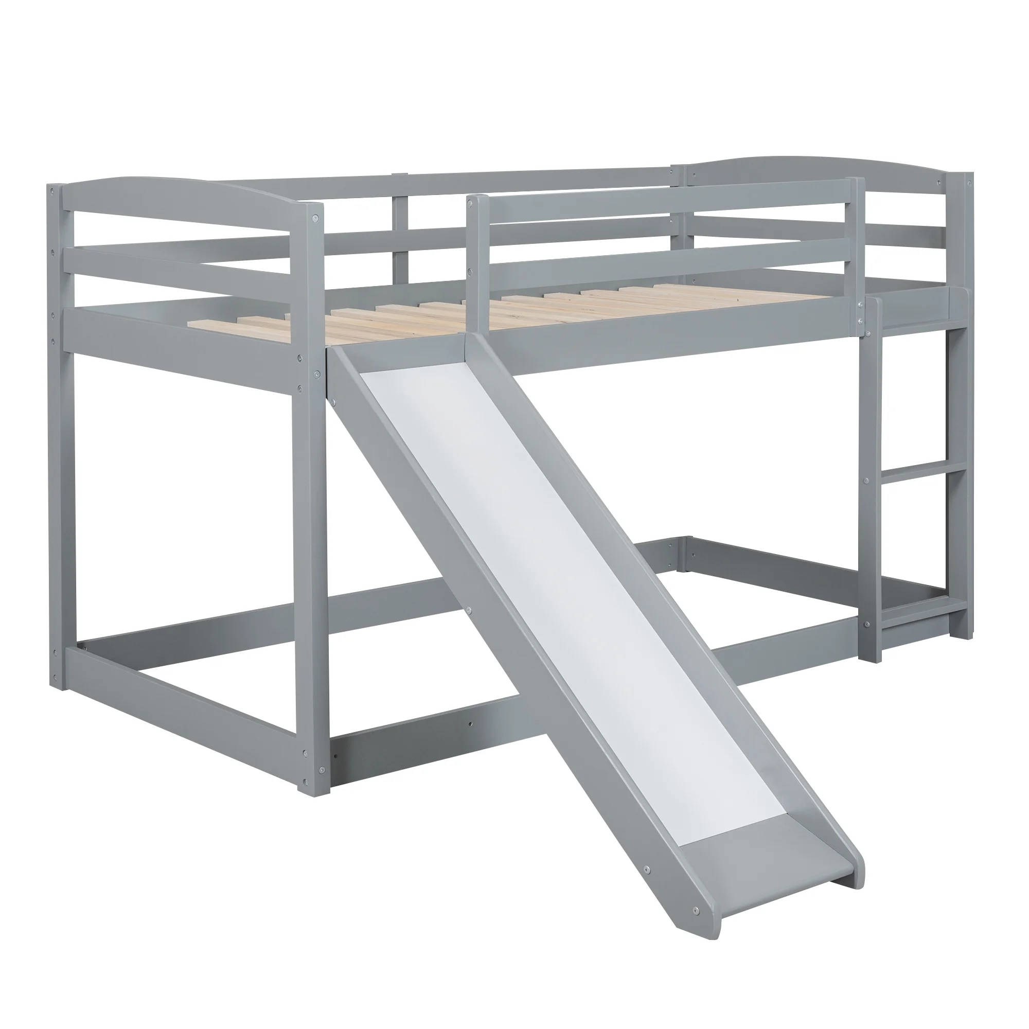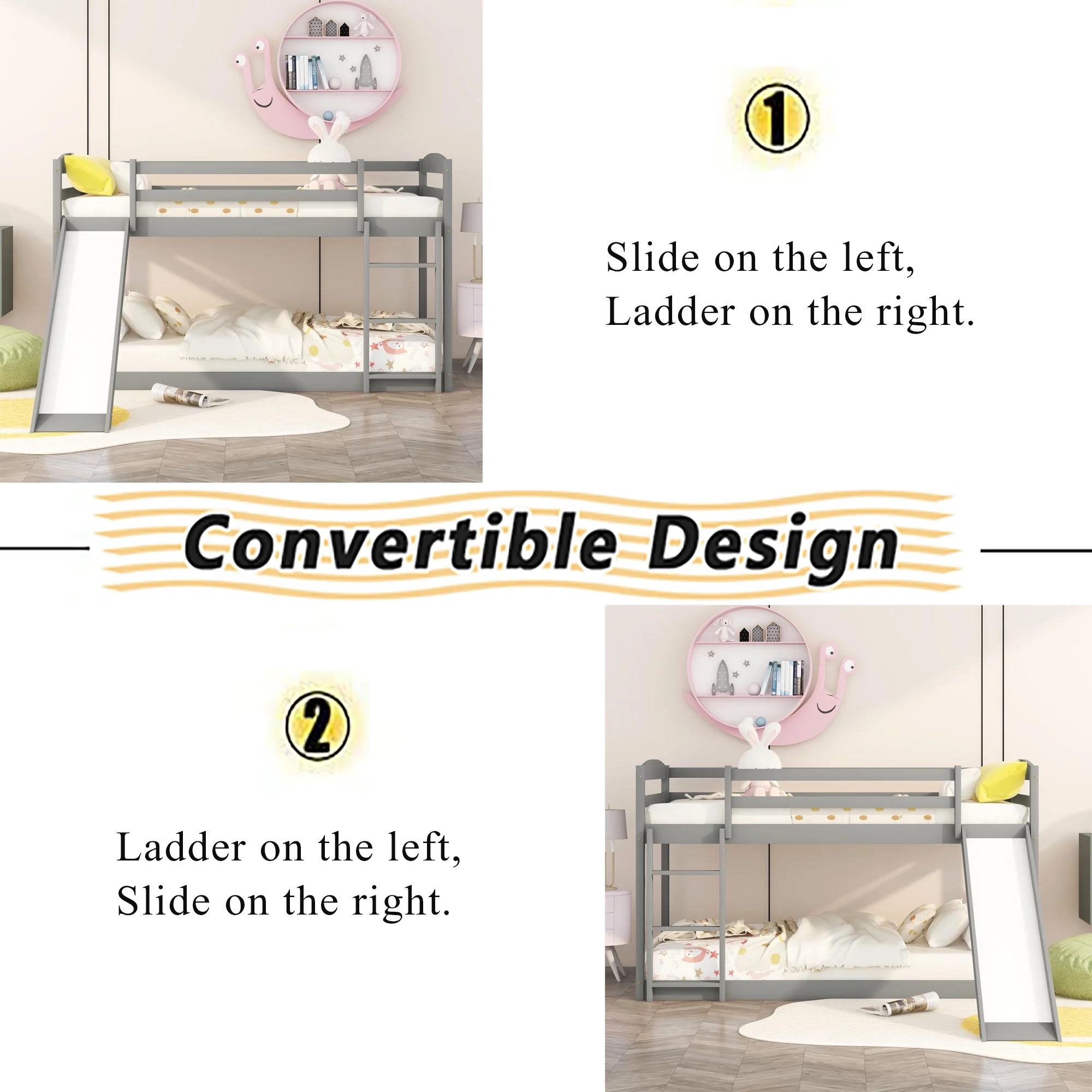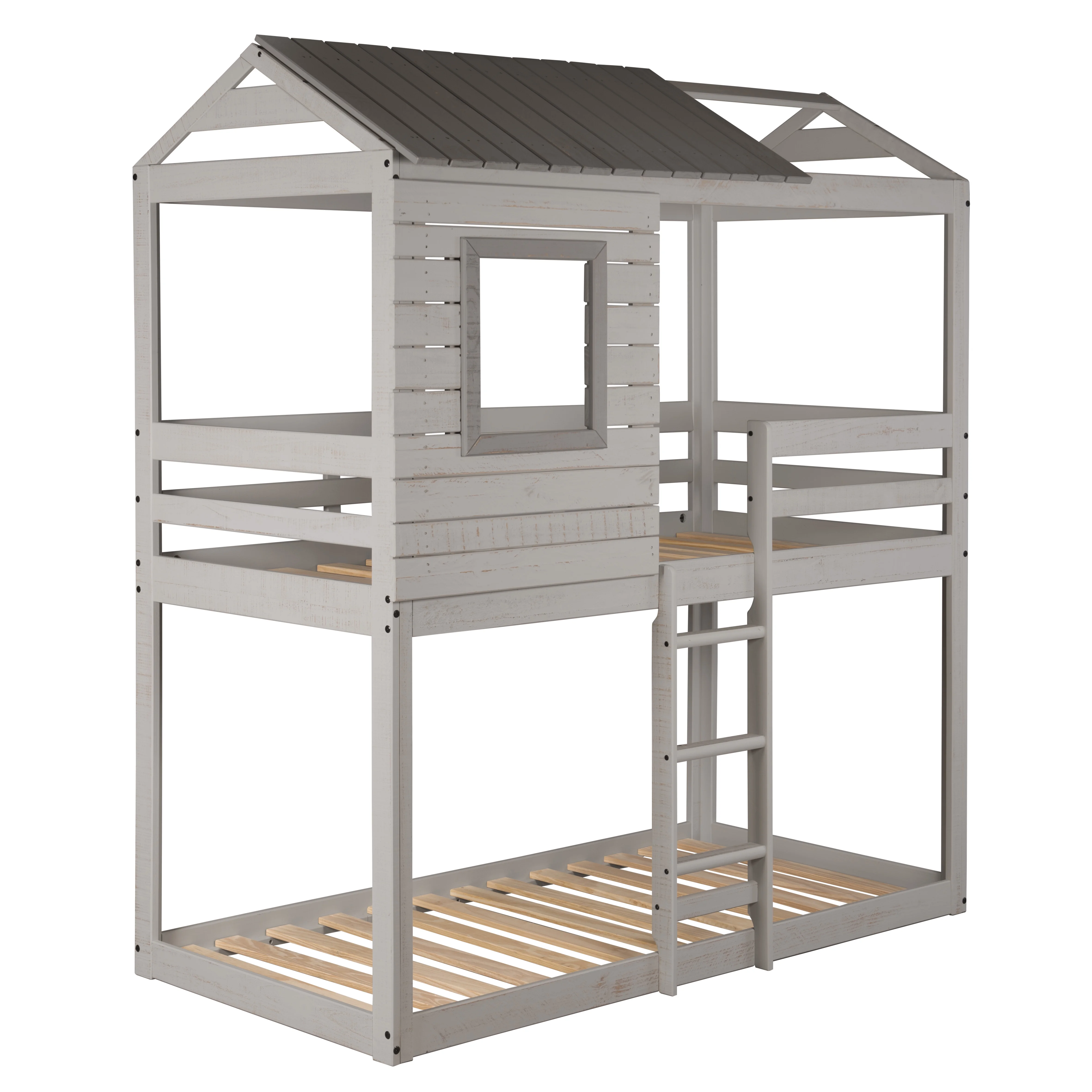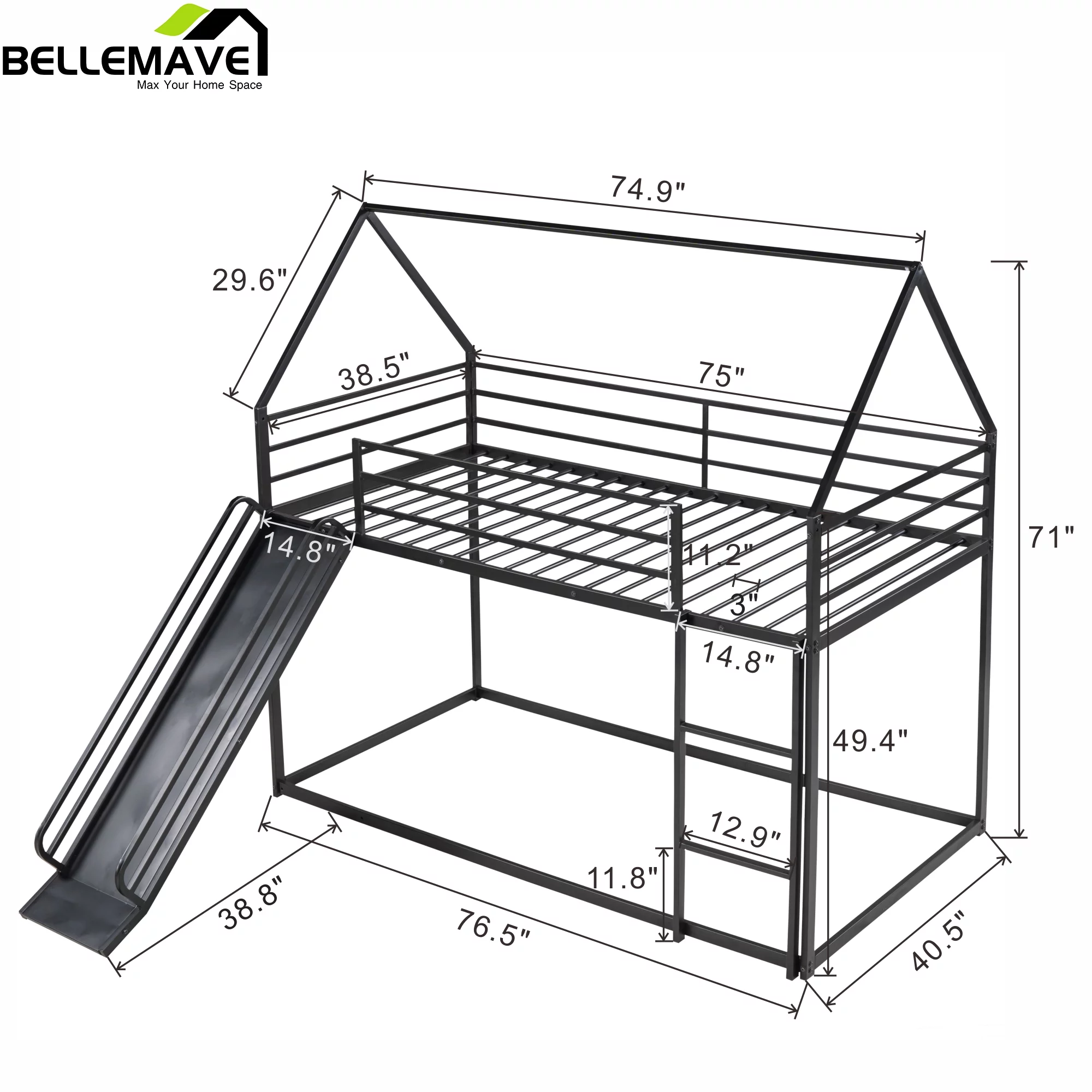 Bellemave Bunk Bed with Slide, Wood Twin Over Twin House Bed Frame with Ladder for Kids Teens(Gray)